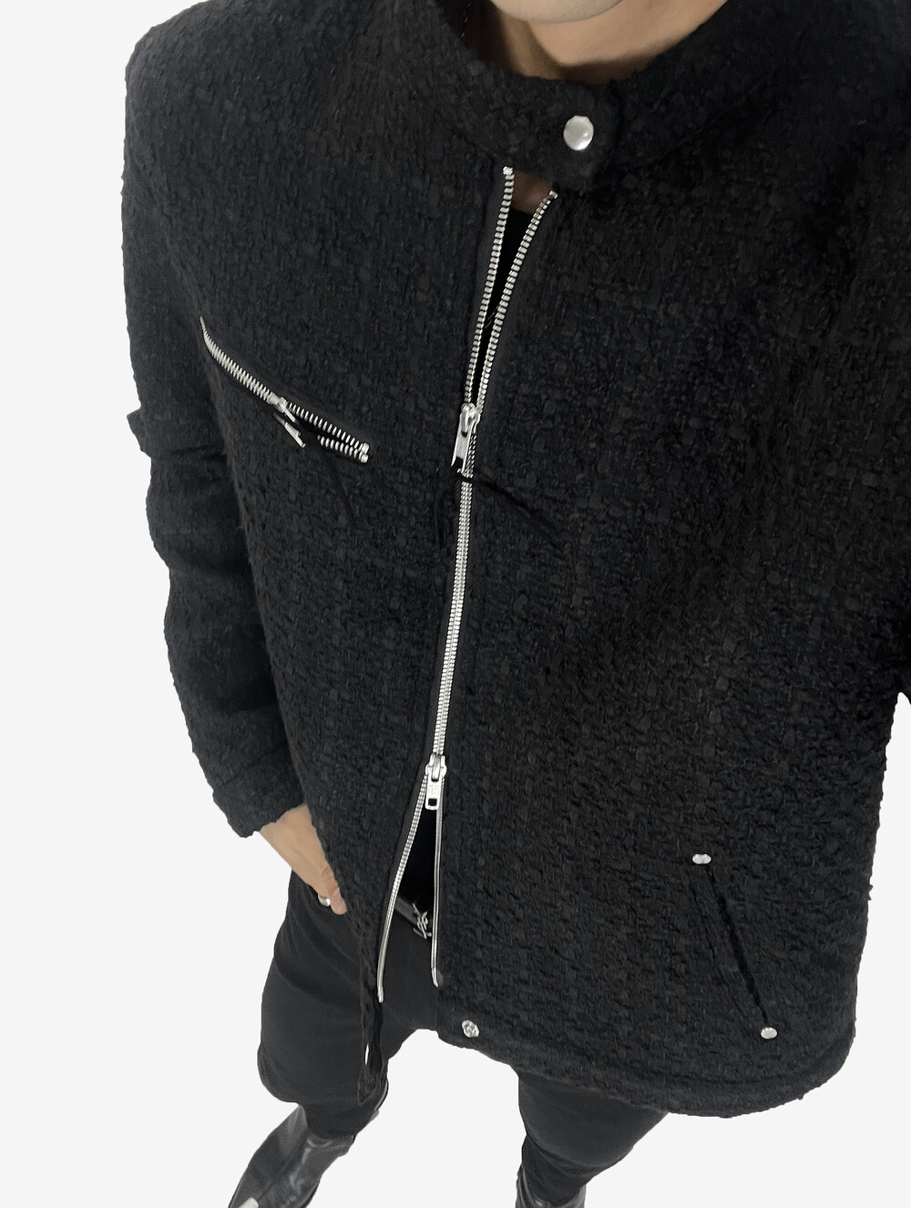 - 採用粗花呢面料,可增添亮點的商品