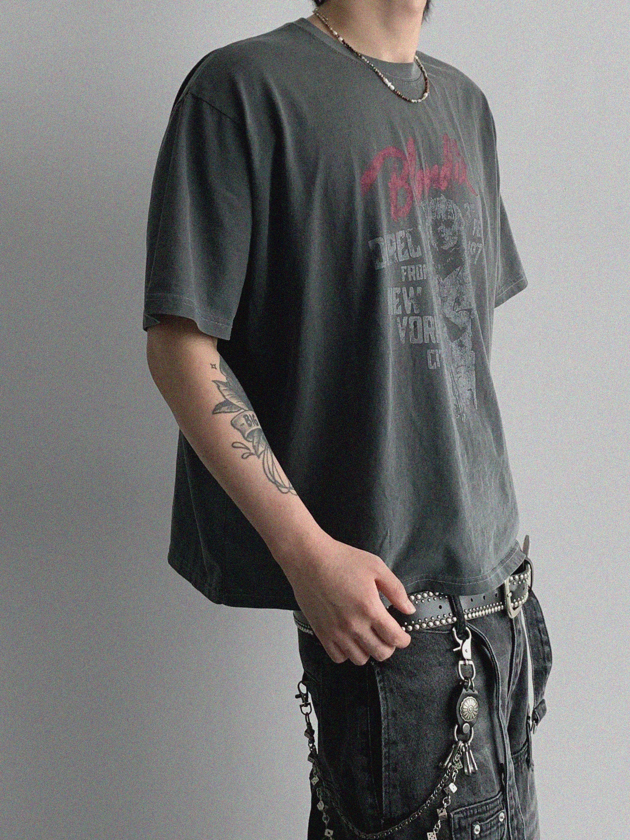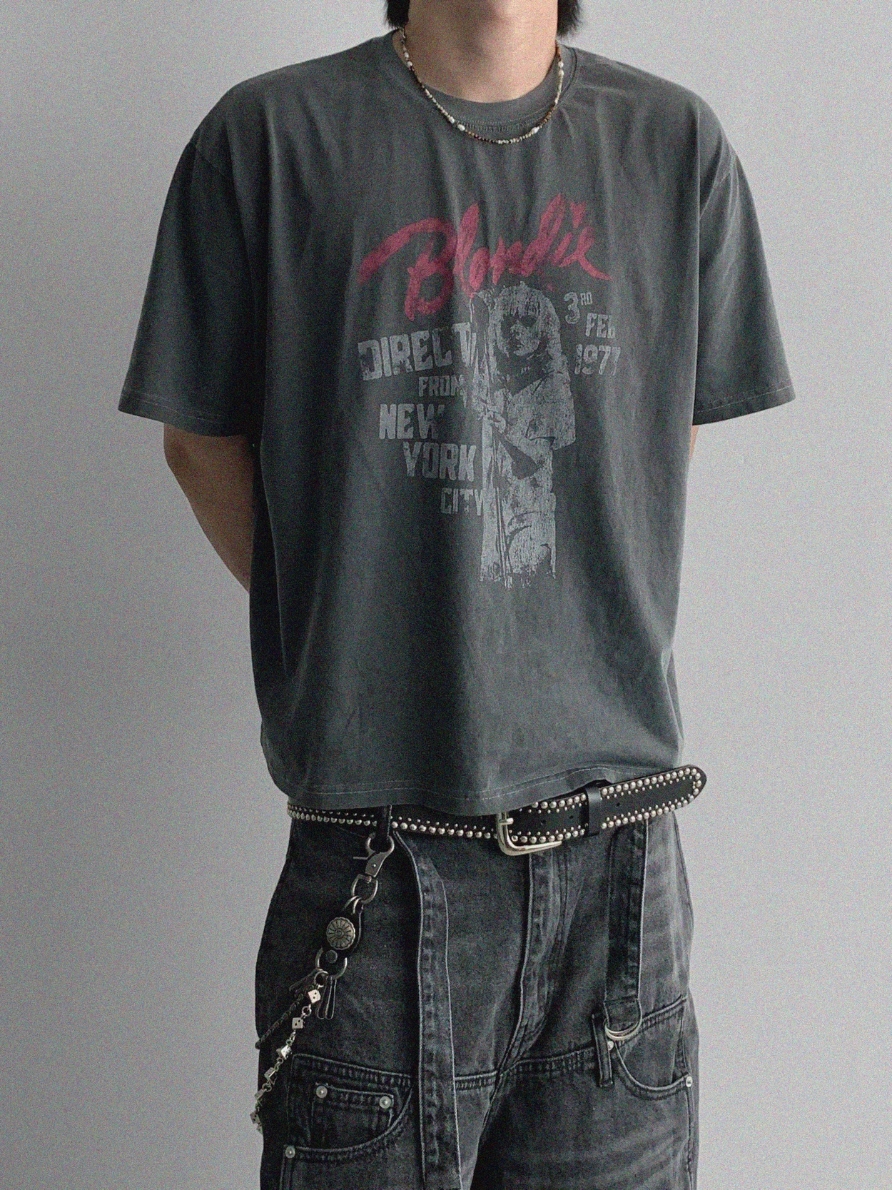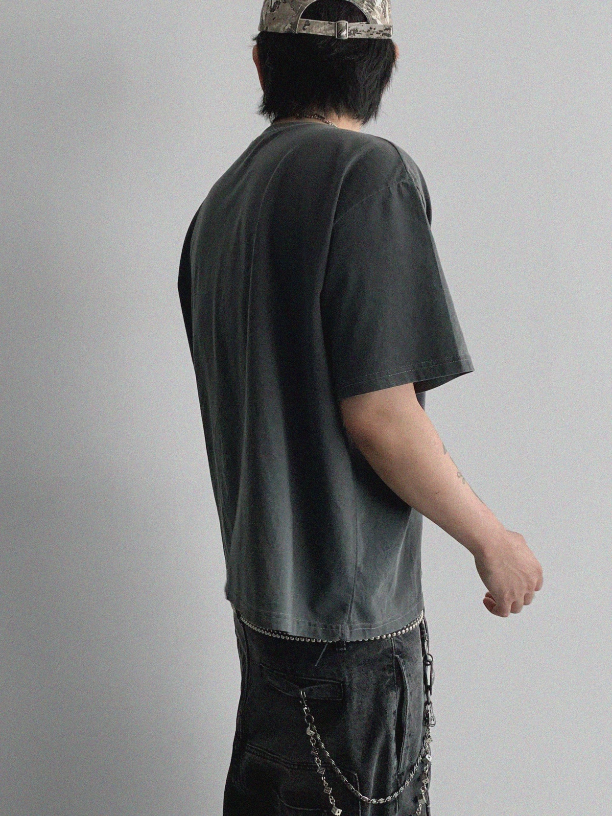 - 採用顏料色和正面印花設計的時尚短袖 T 卹