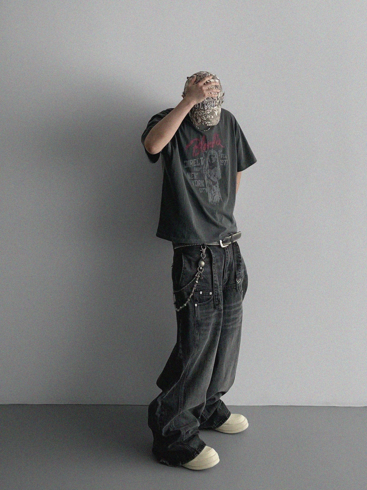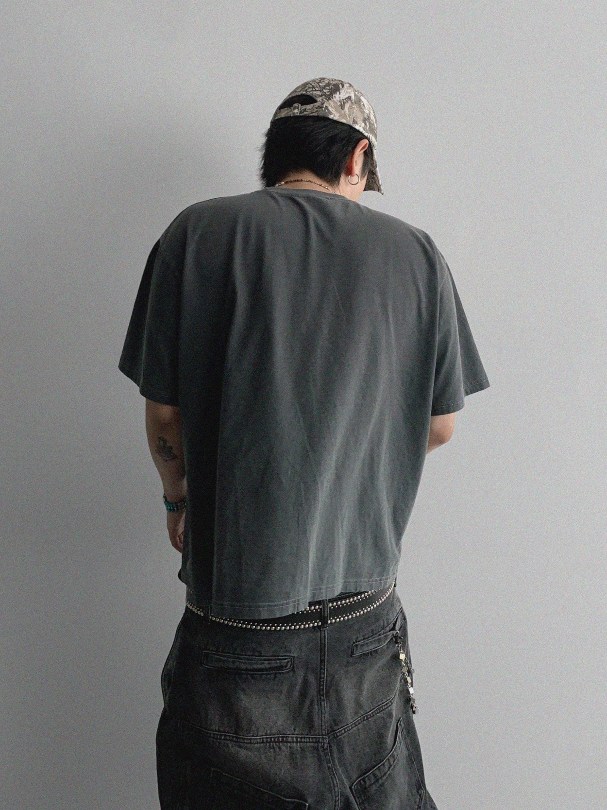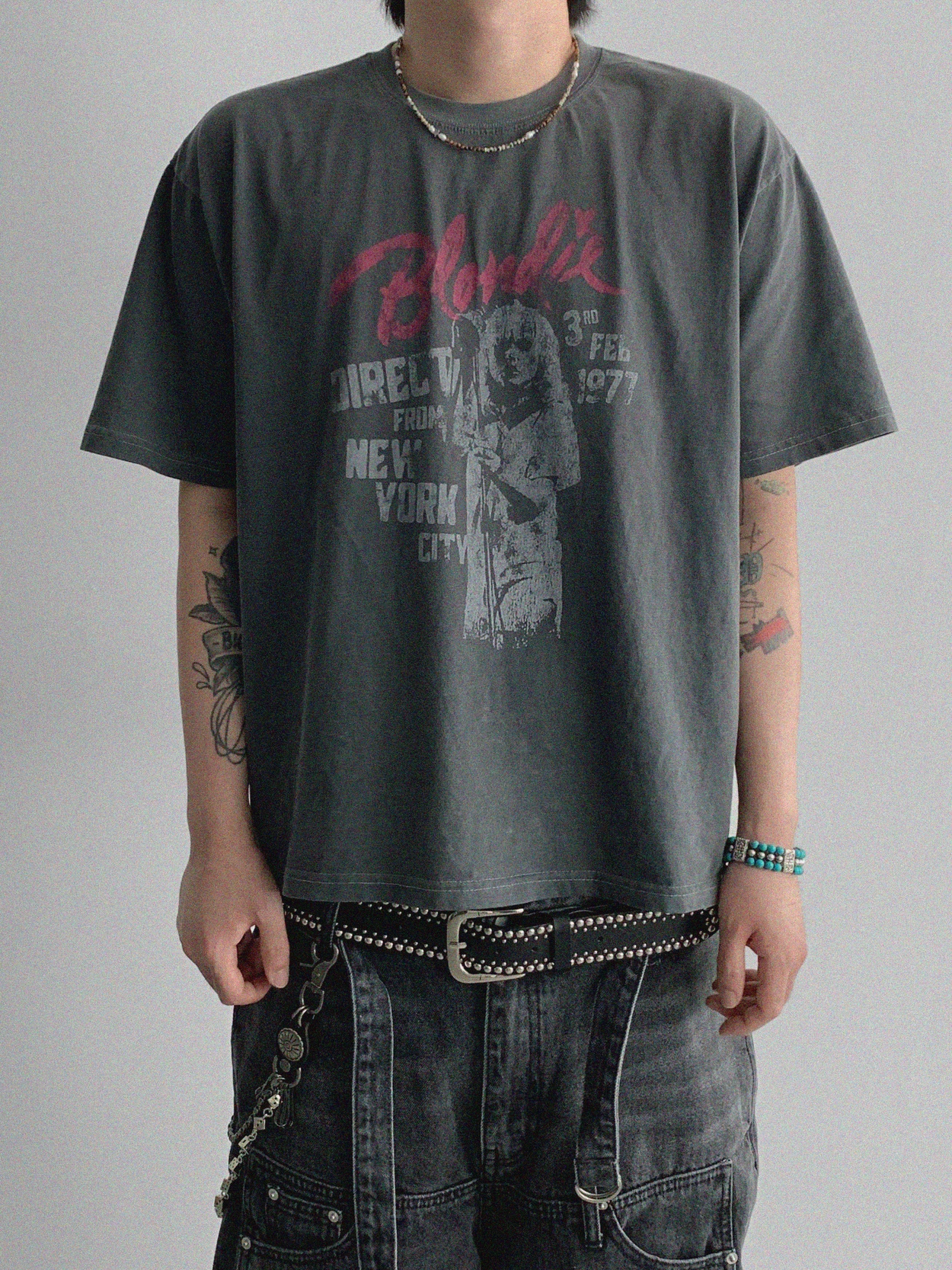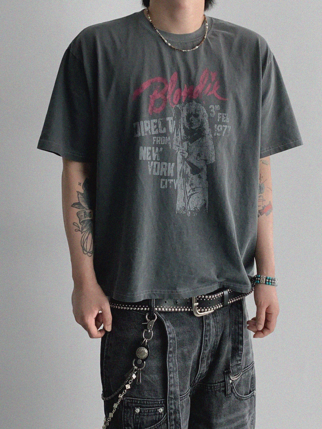 - 採用顏料色和正面印花設計的時尚短袖 T 卹
