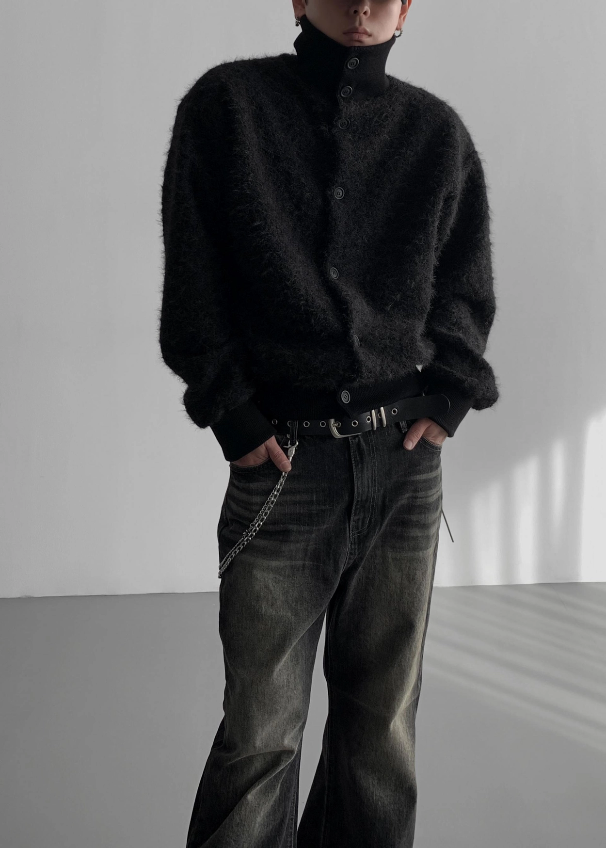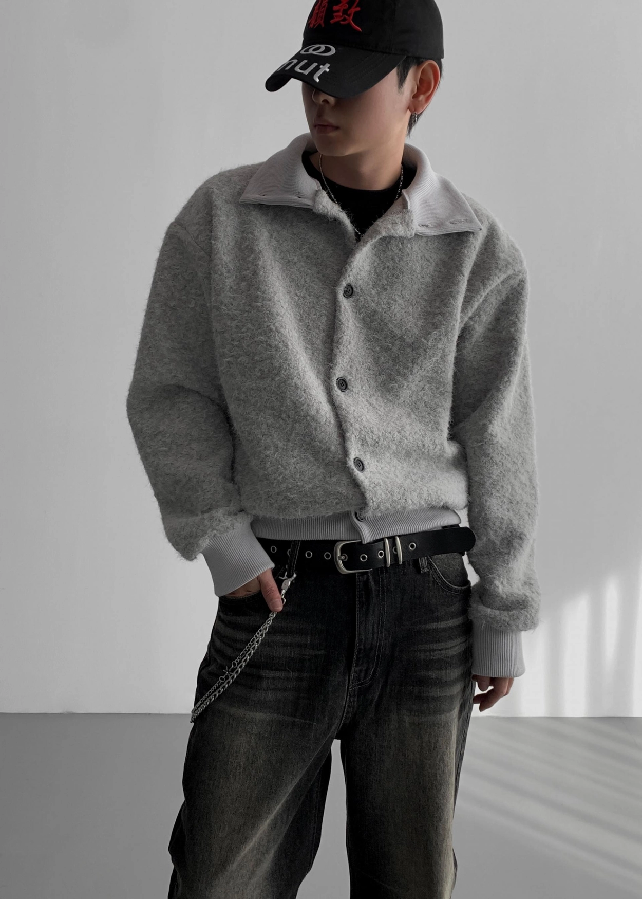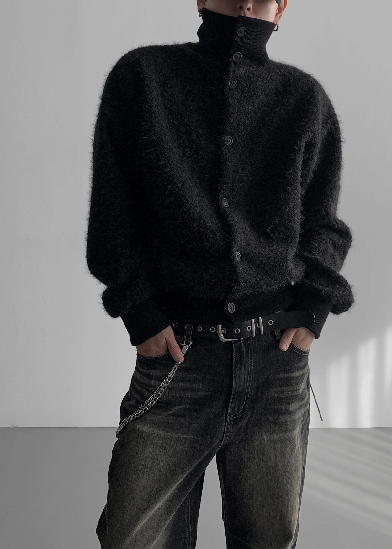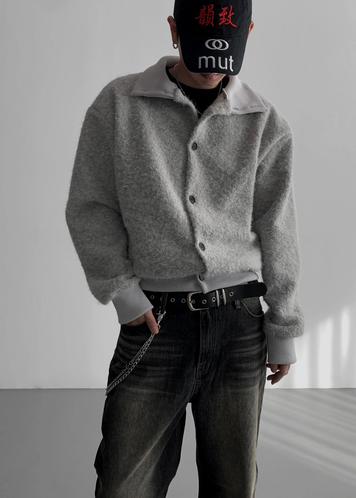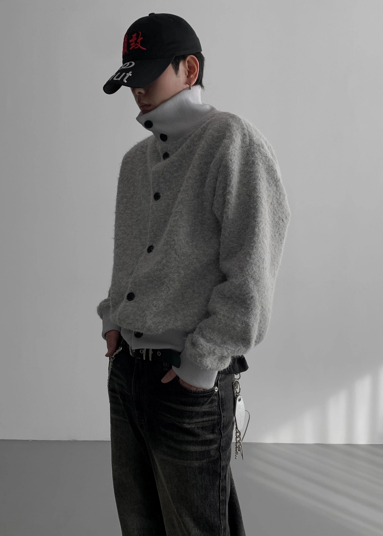 - 領口繫扣向下,形成領口