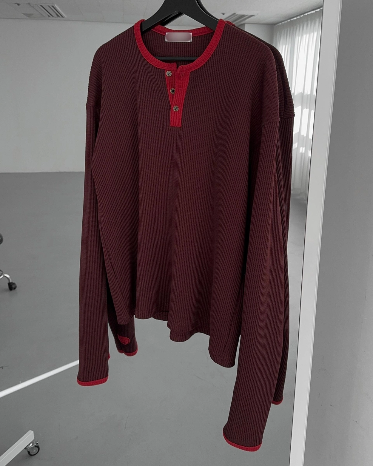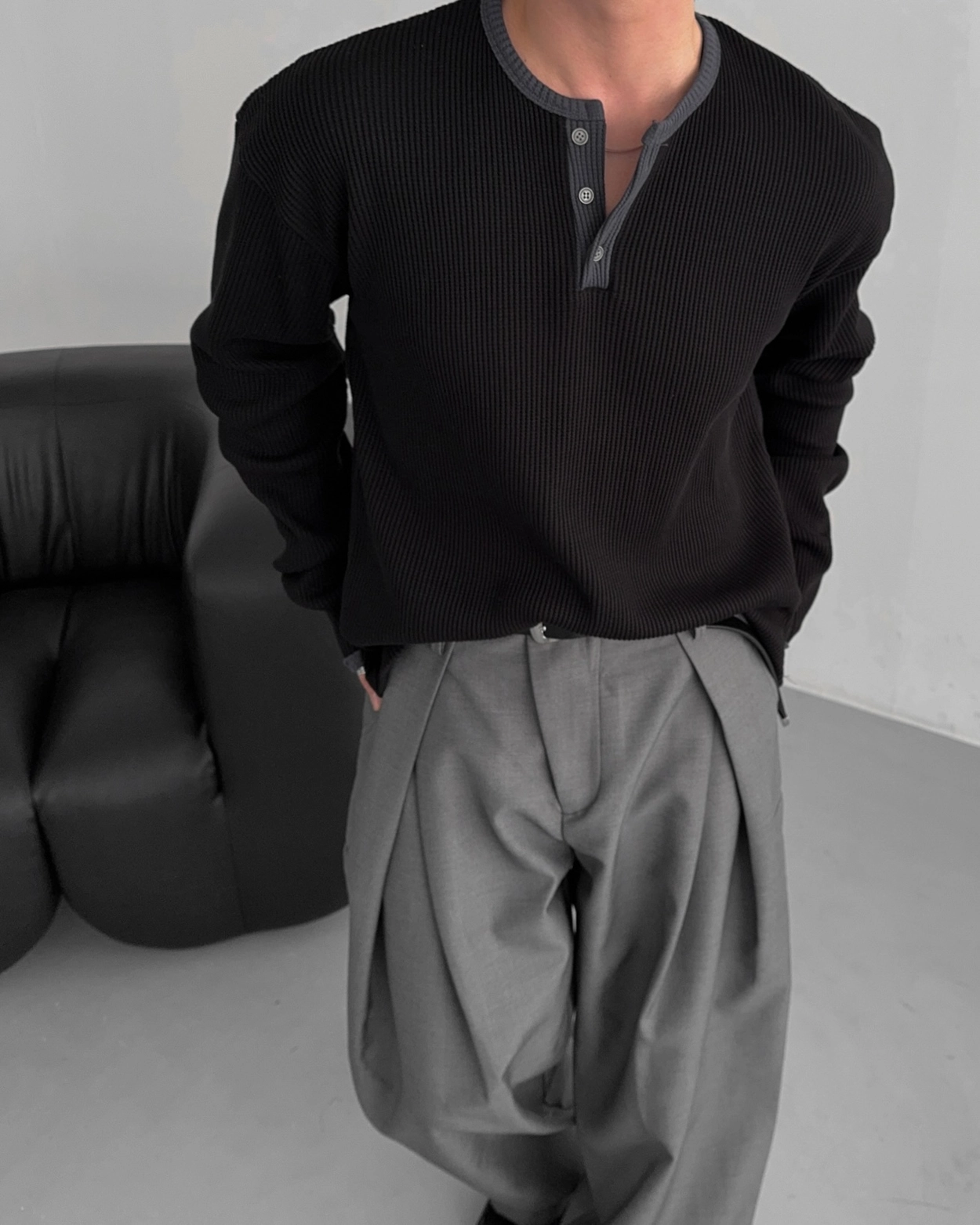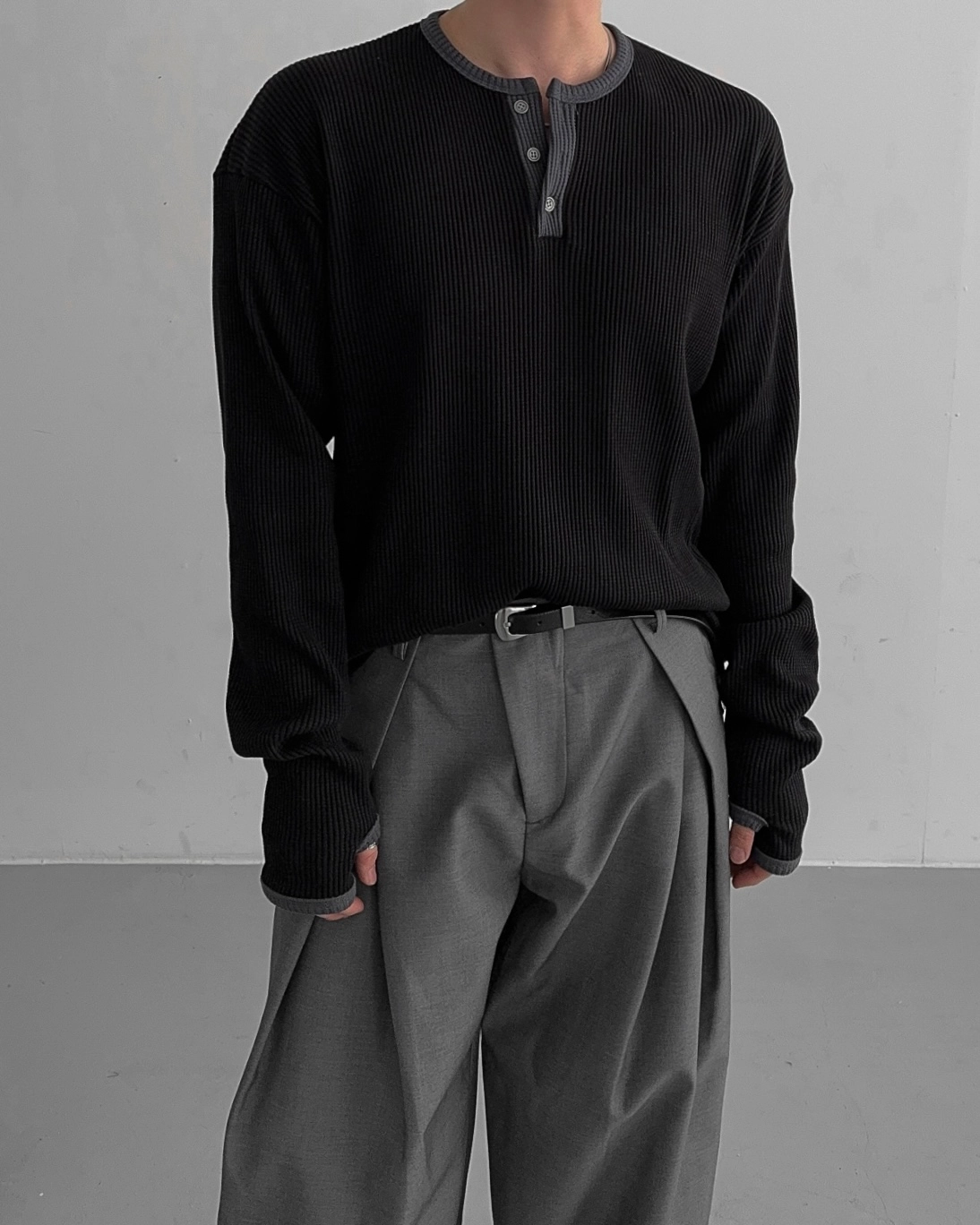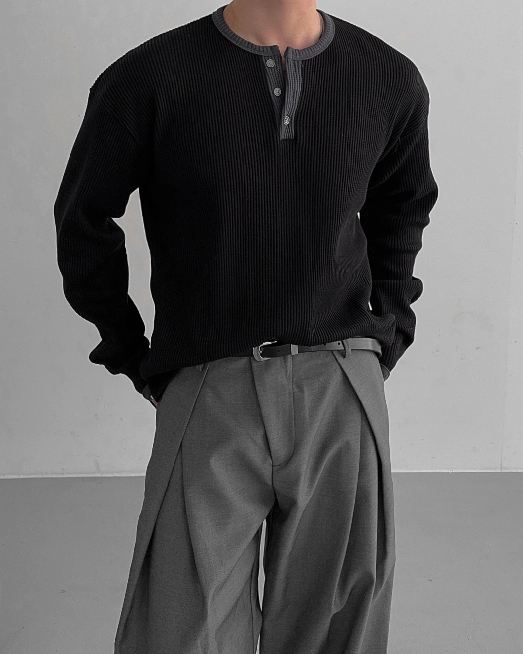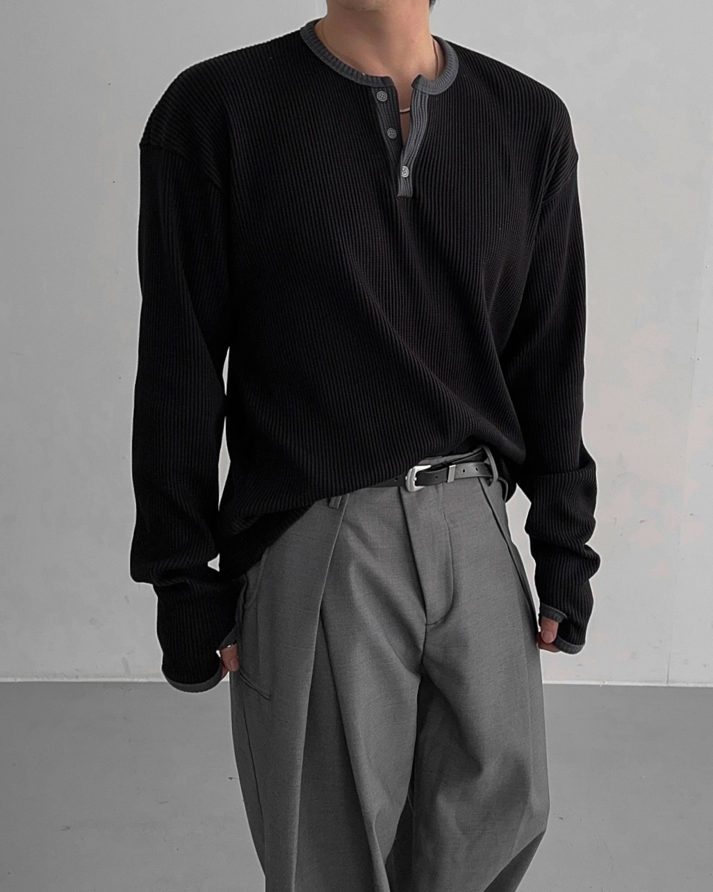 - 亨利領 T 卹採用密實的華夫格材質
