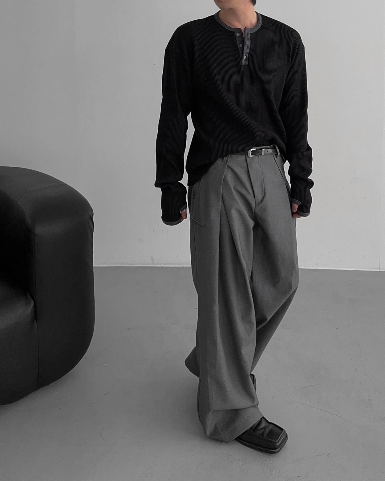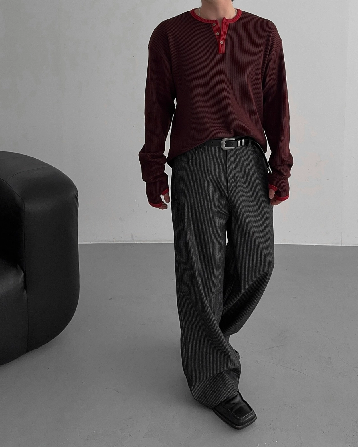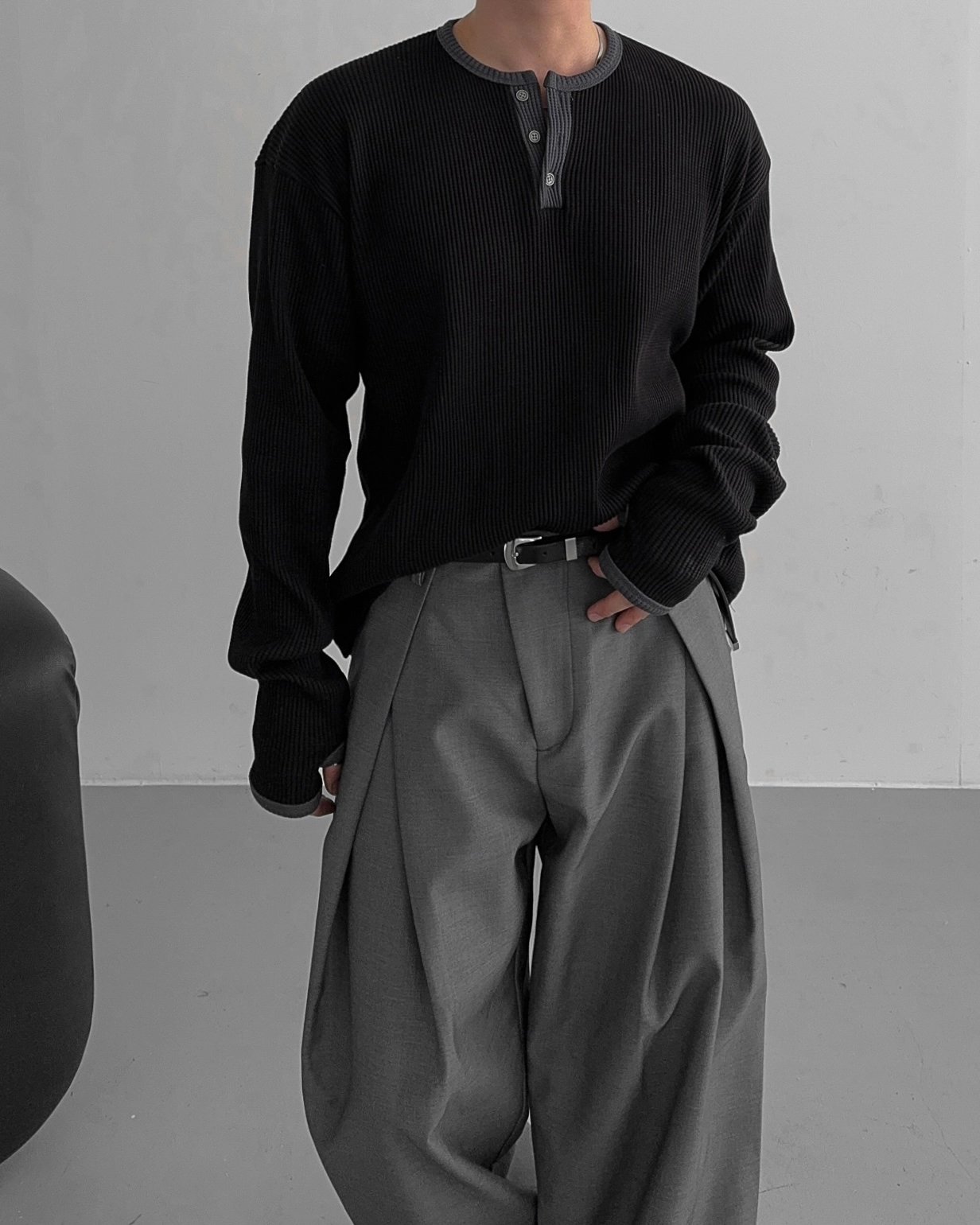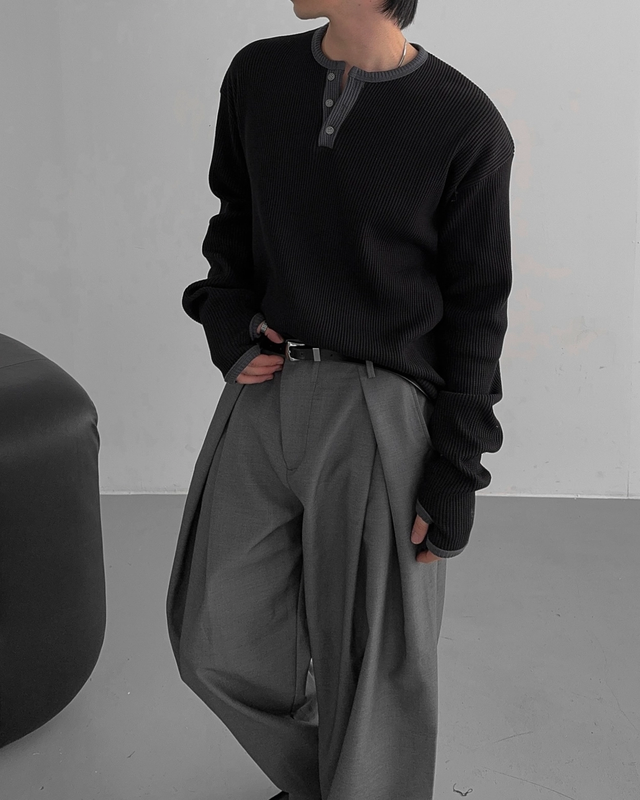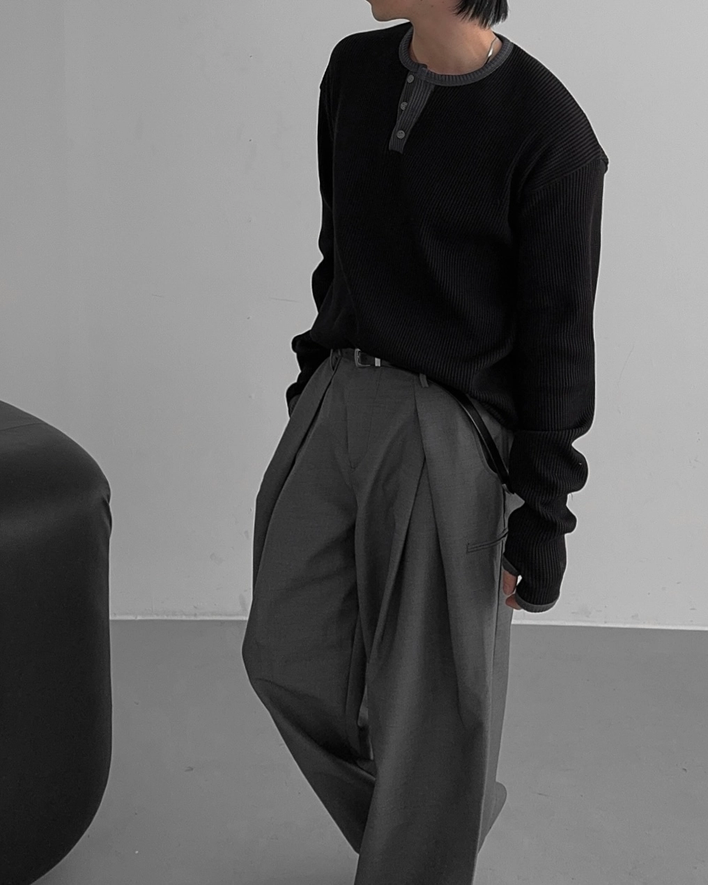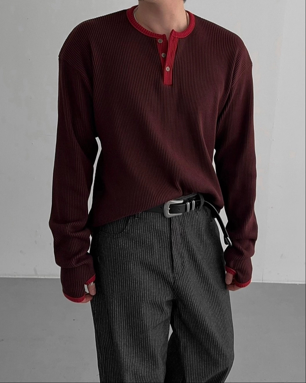 - 亨利領 T 卹採用密實的華夫格材質