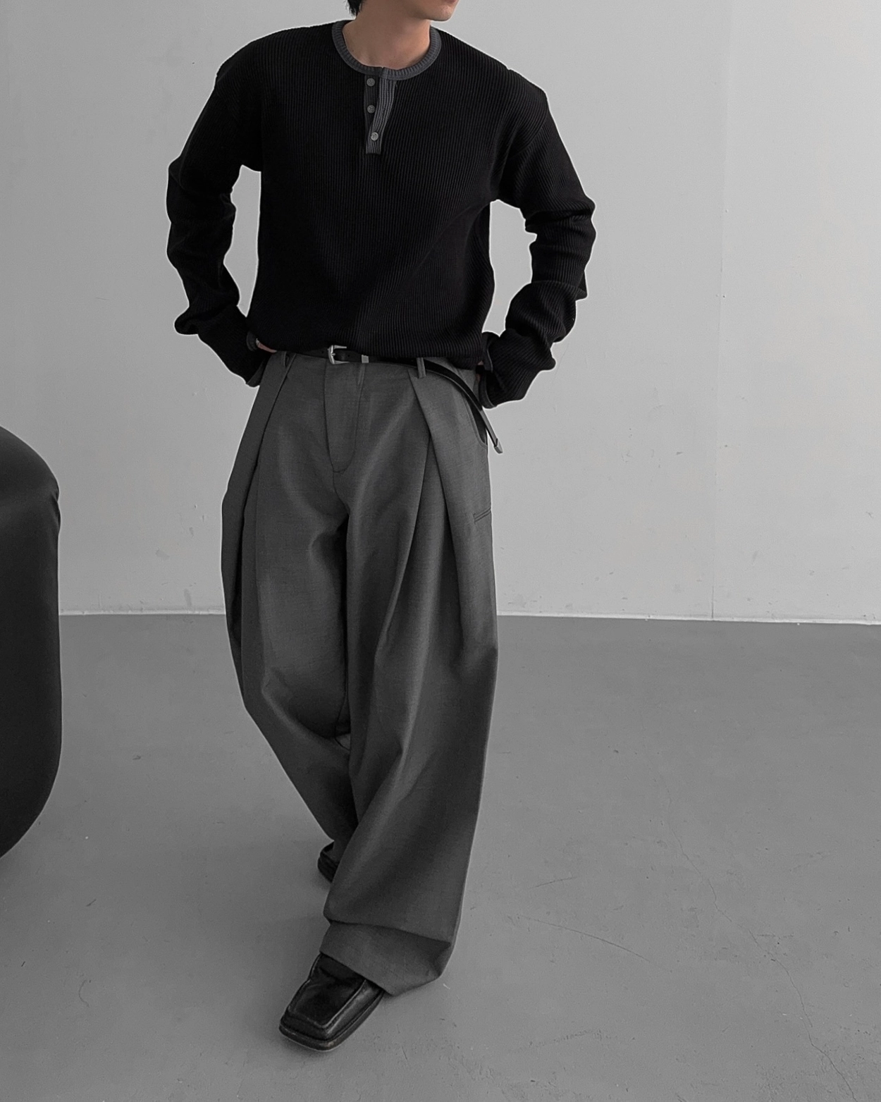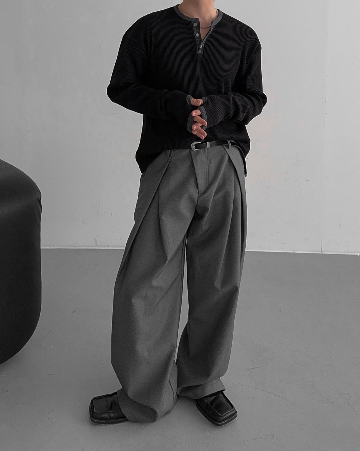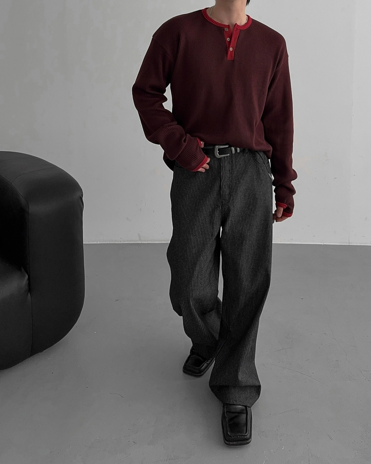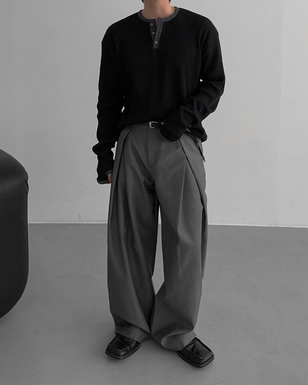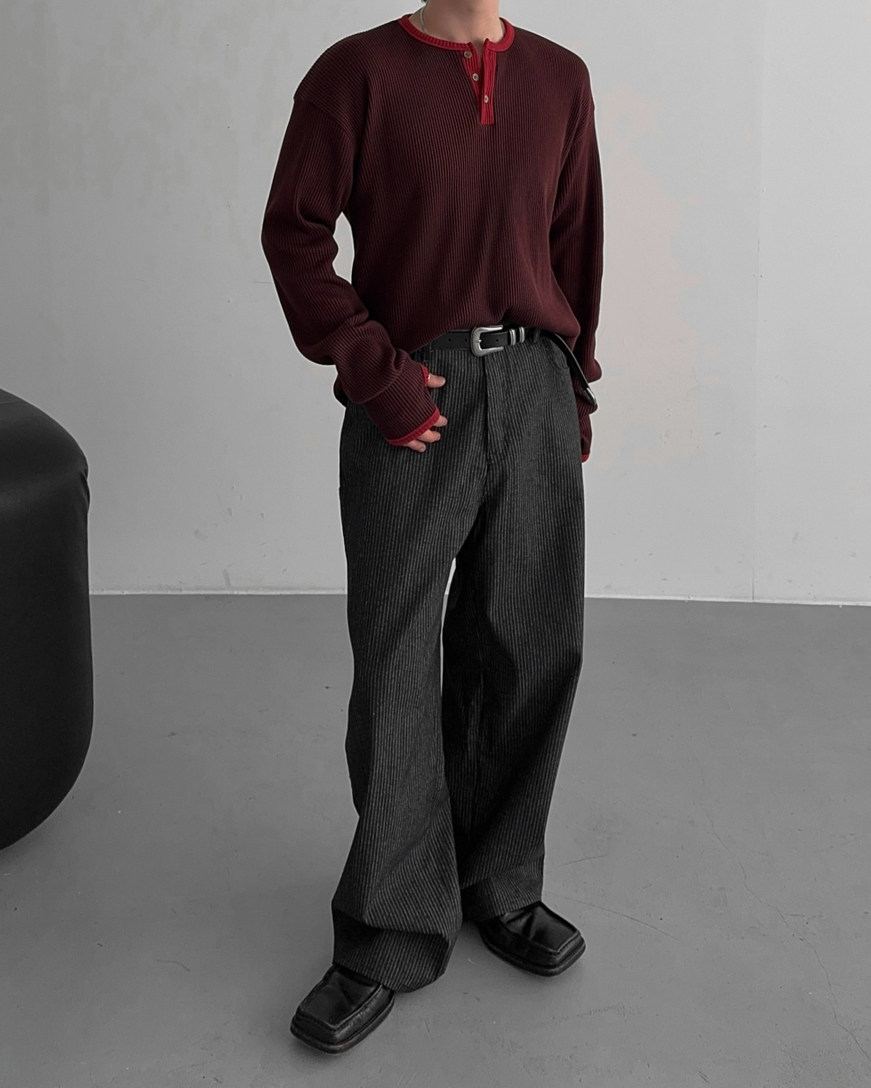 - 亨利領 T 卹採用密實的華夫格材質