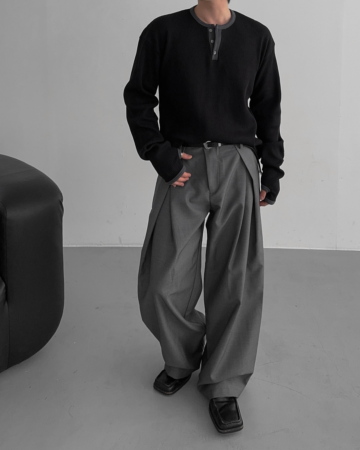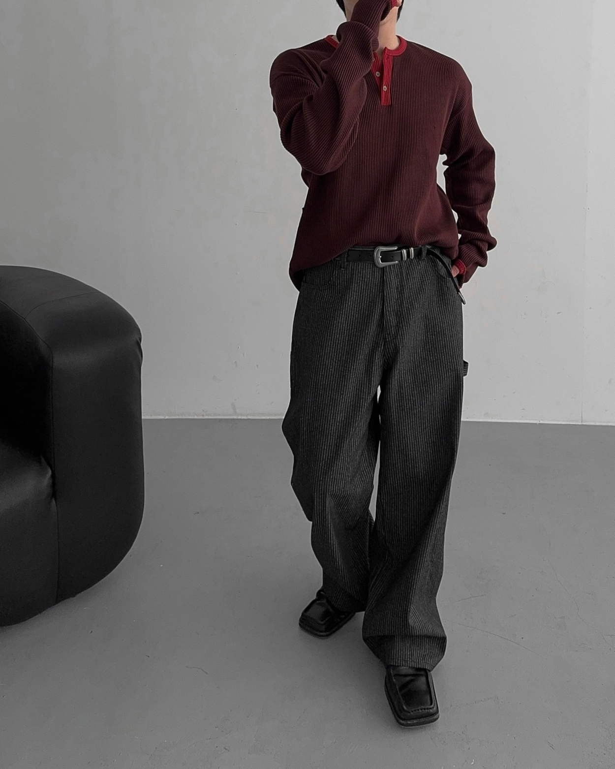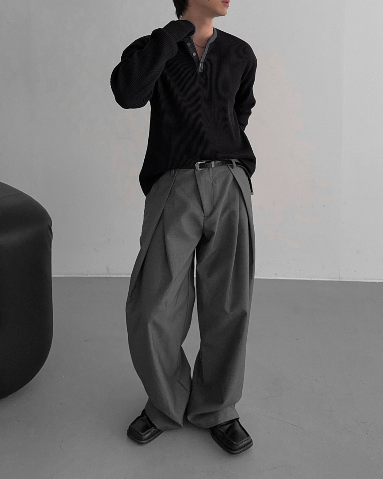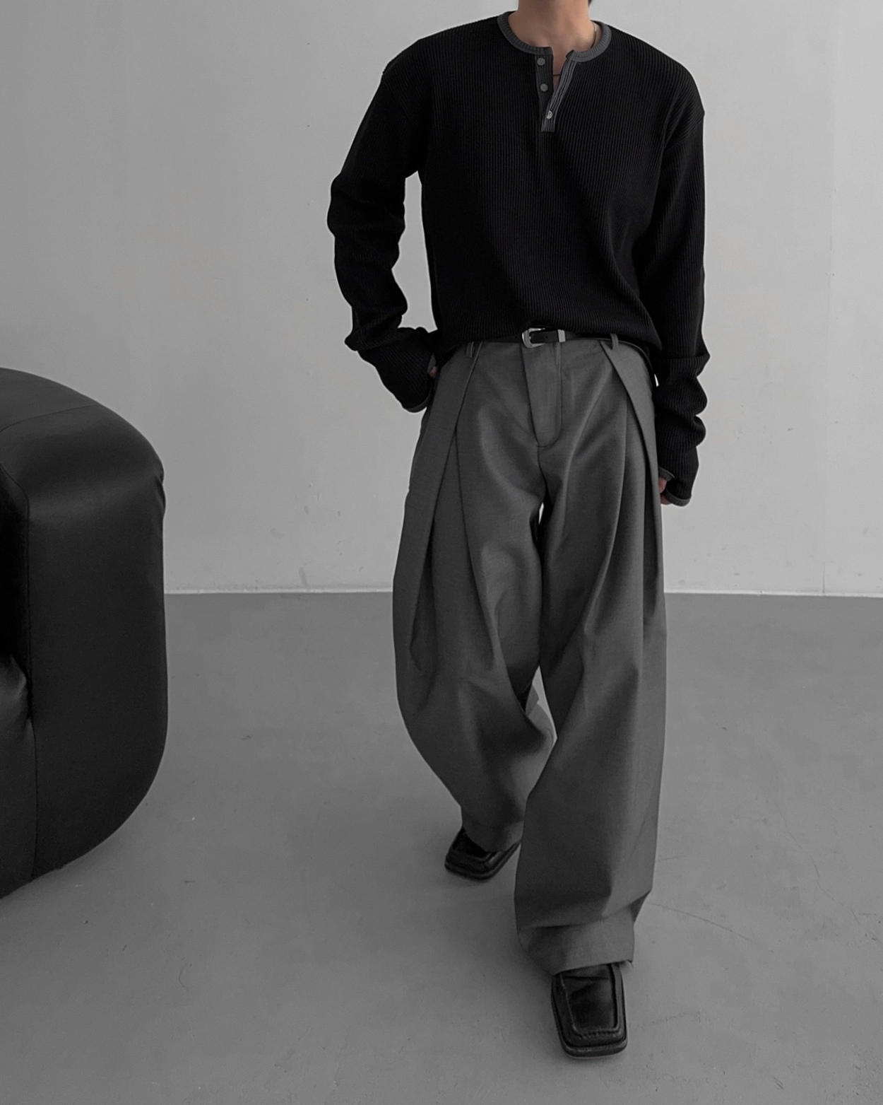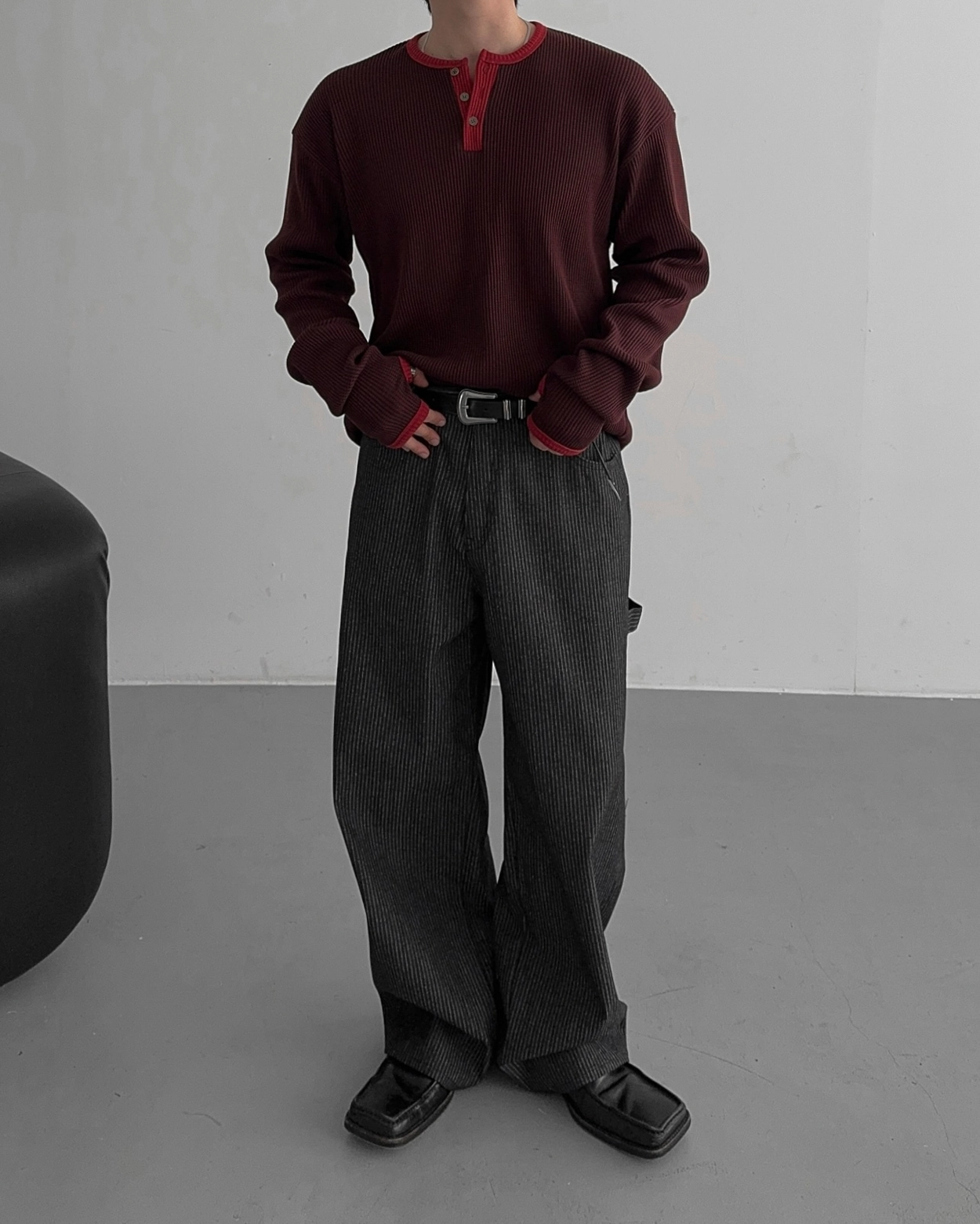 - 亨利領 T 卹採用密實的華夫格材質
