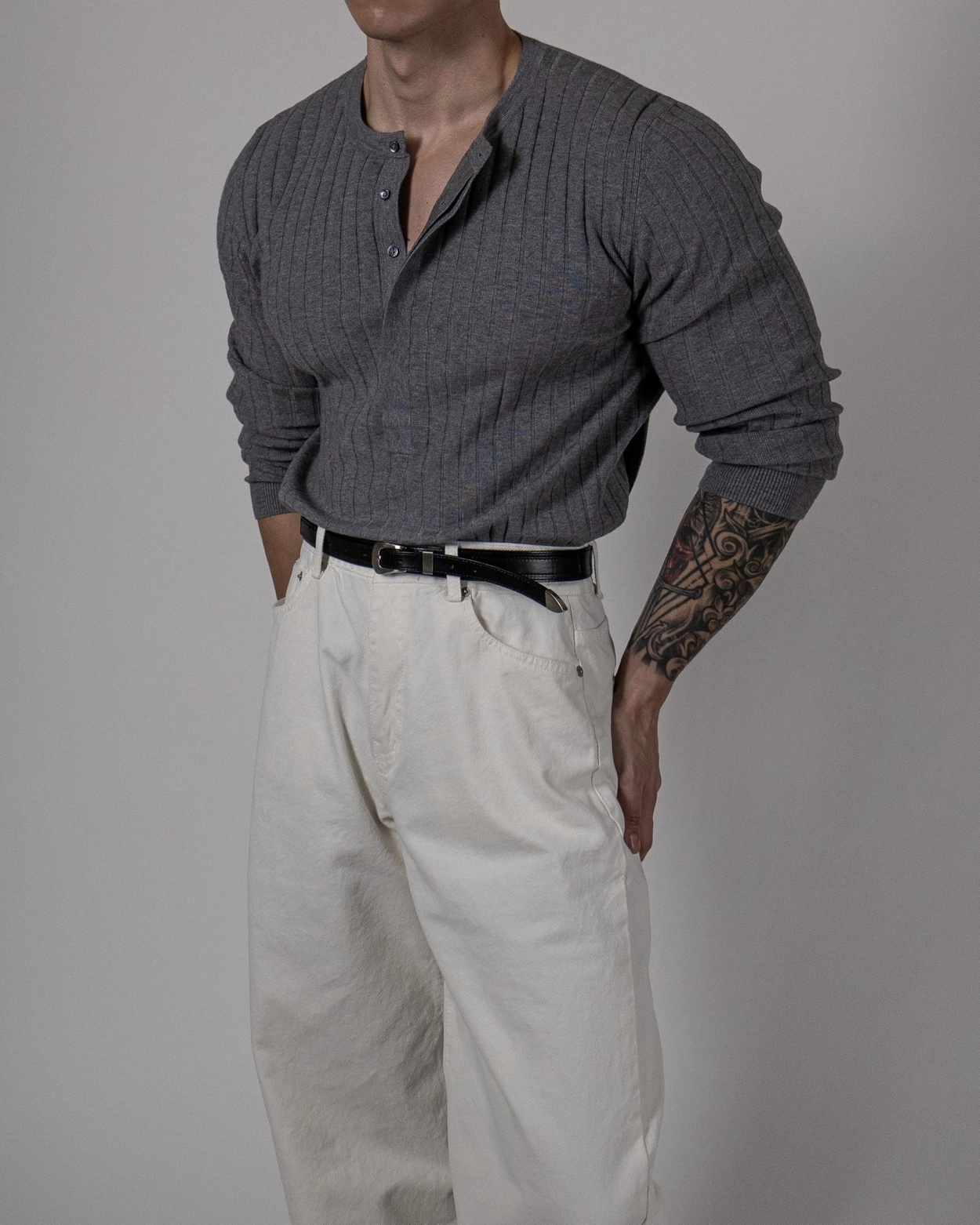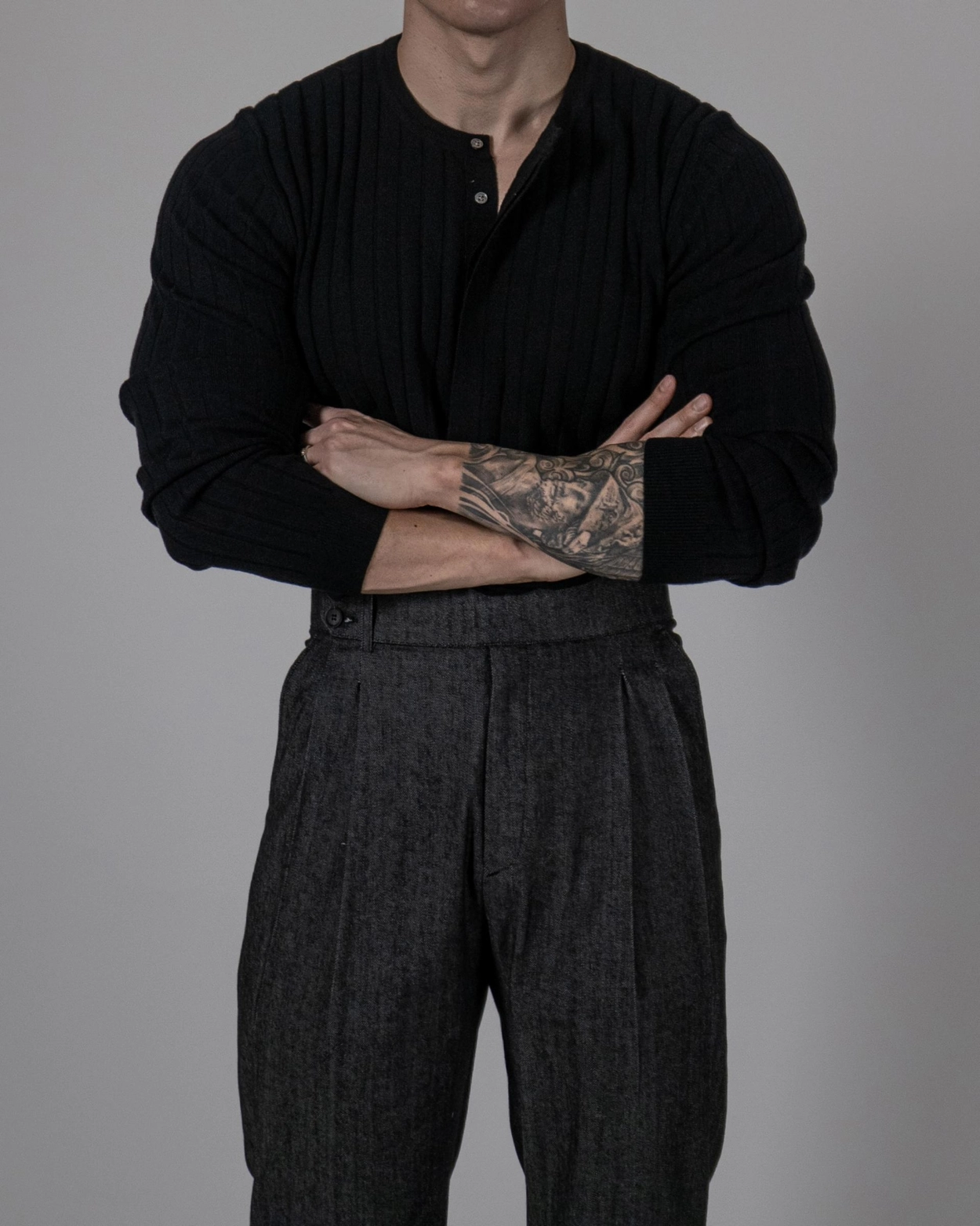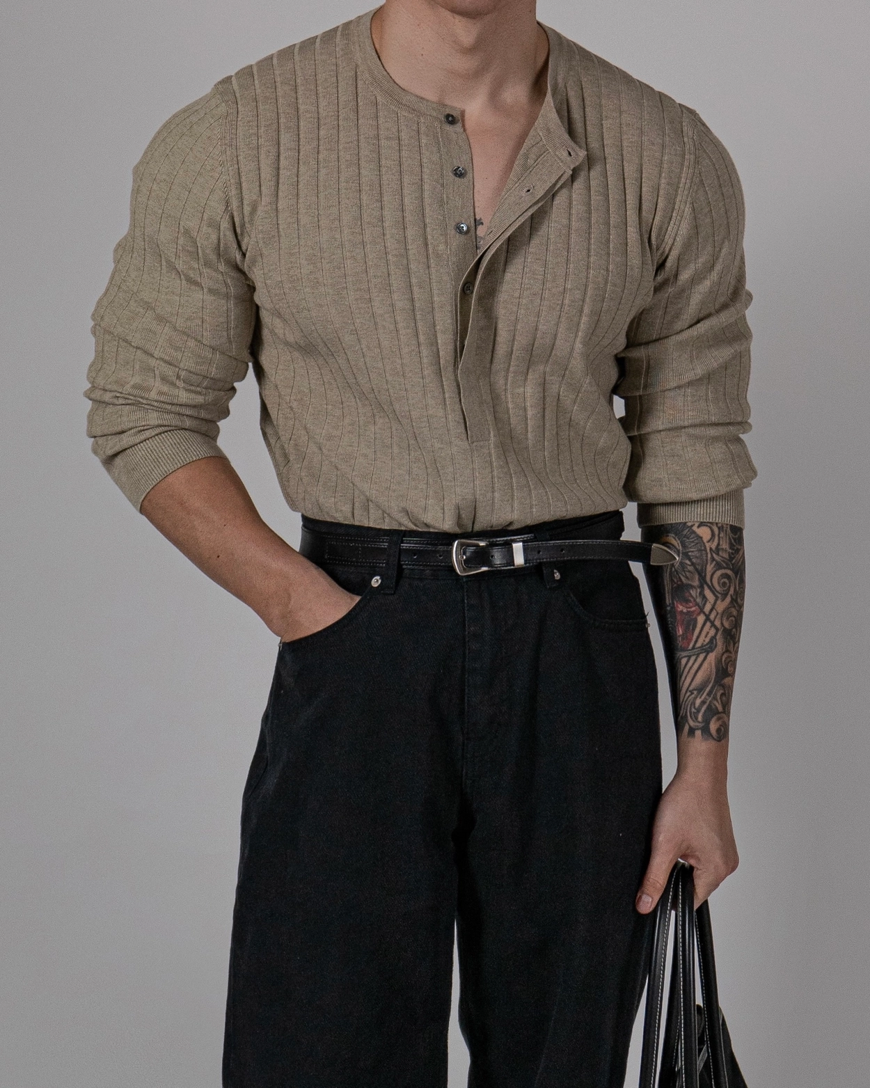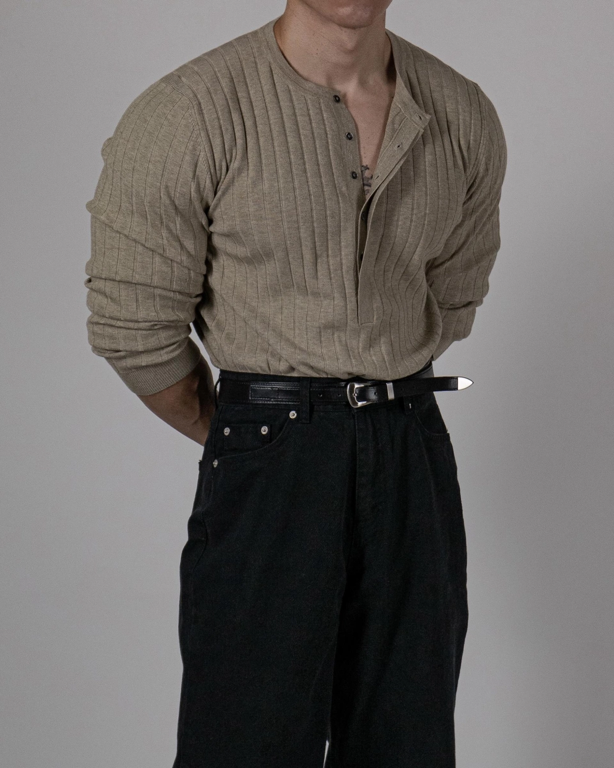- 這是一款觸感柔軟的羅紋亨利領針織衫,採用羊絨替代紗線製成:)