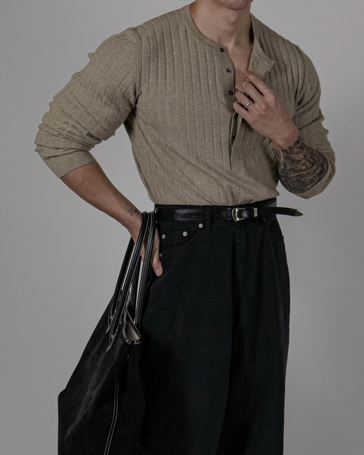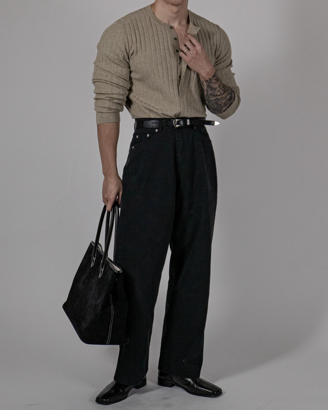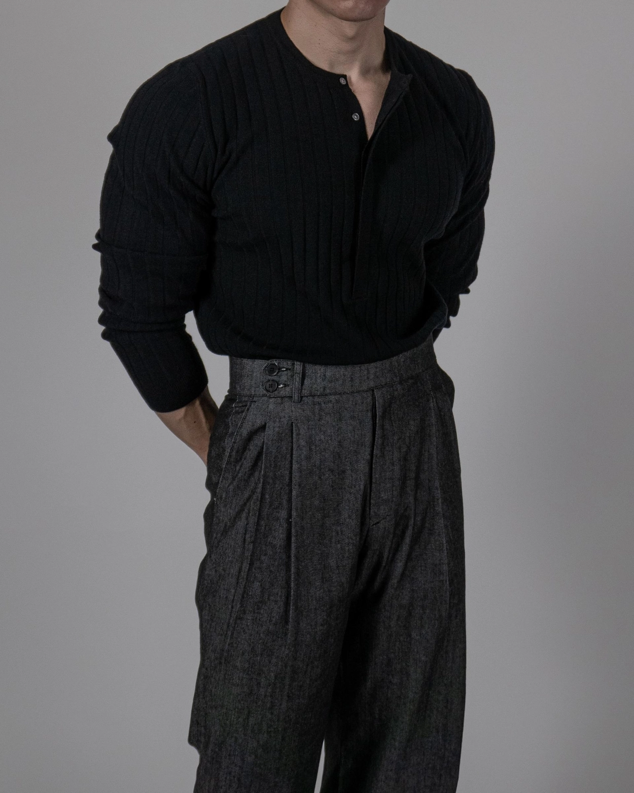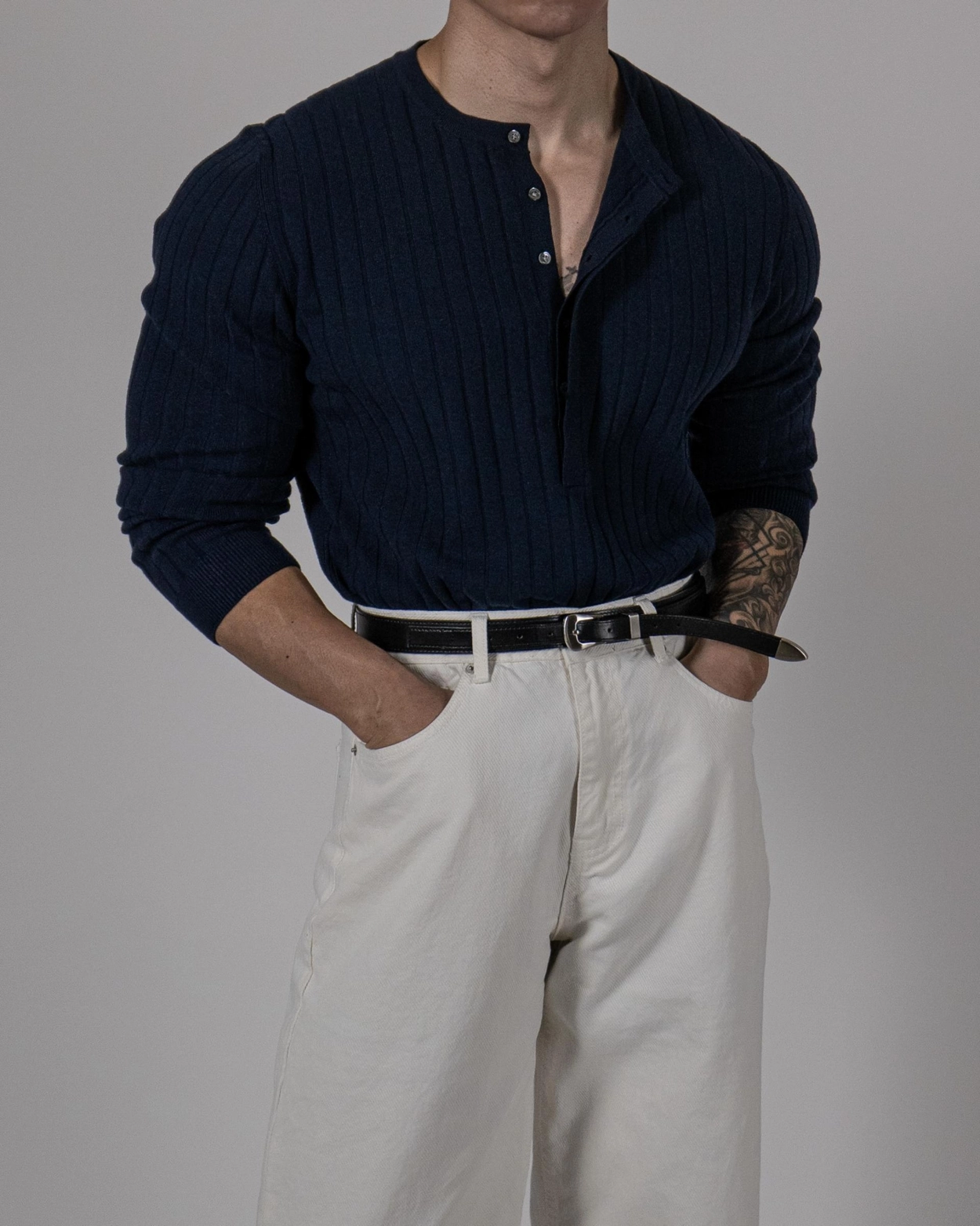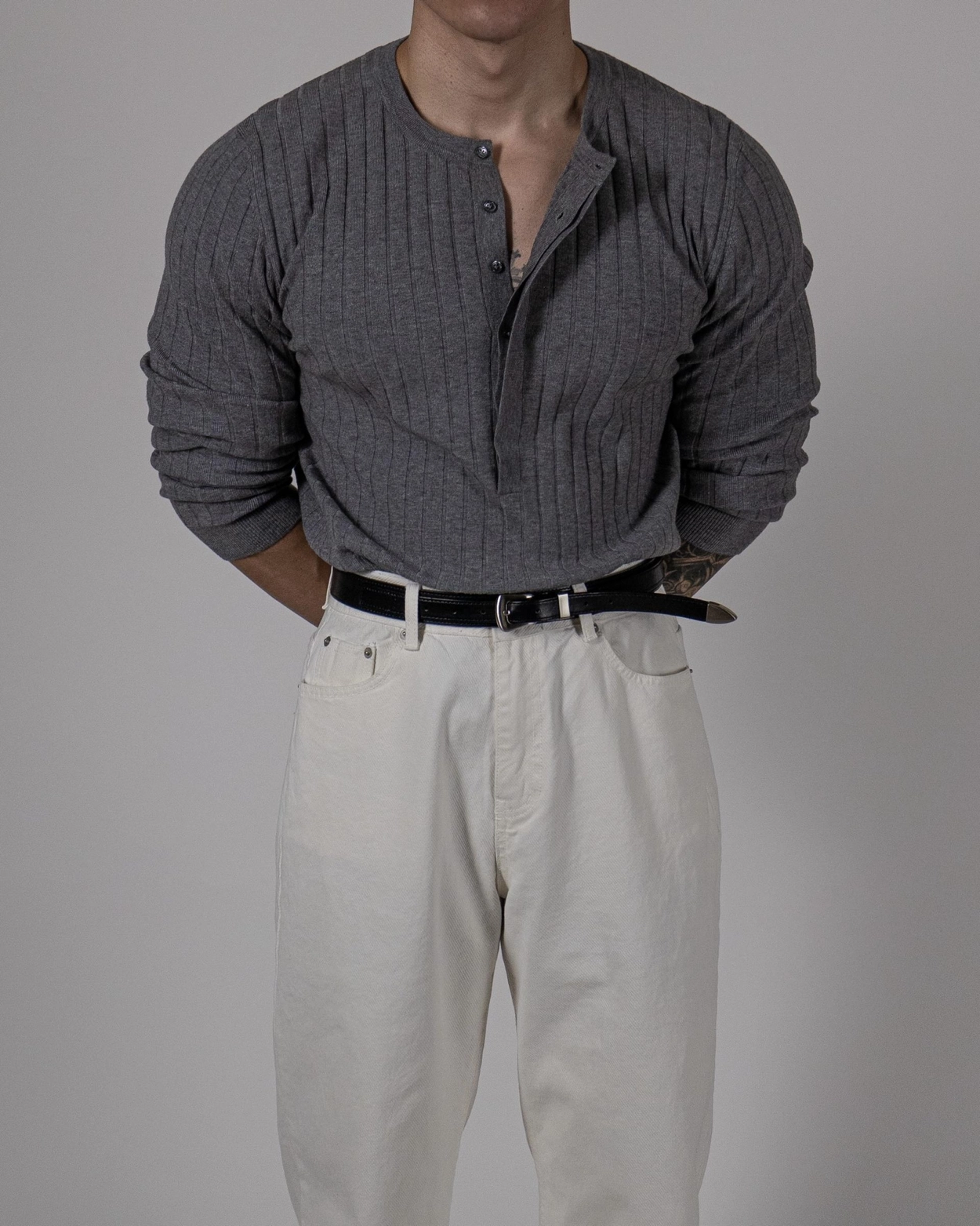 - 這是一款觸感柔軟的羅紋亨利領針織衫,採用羊絨替代紗線製成:)