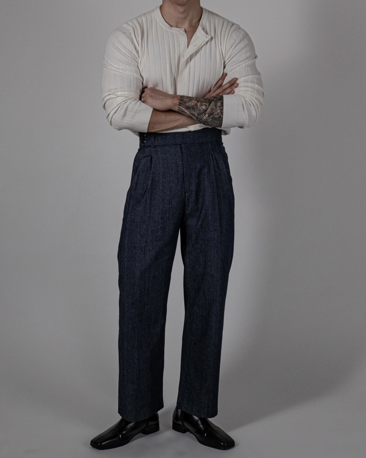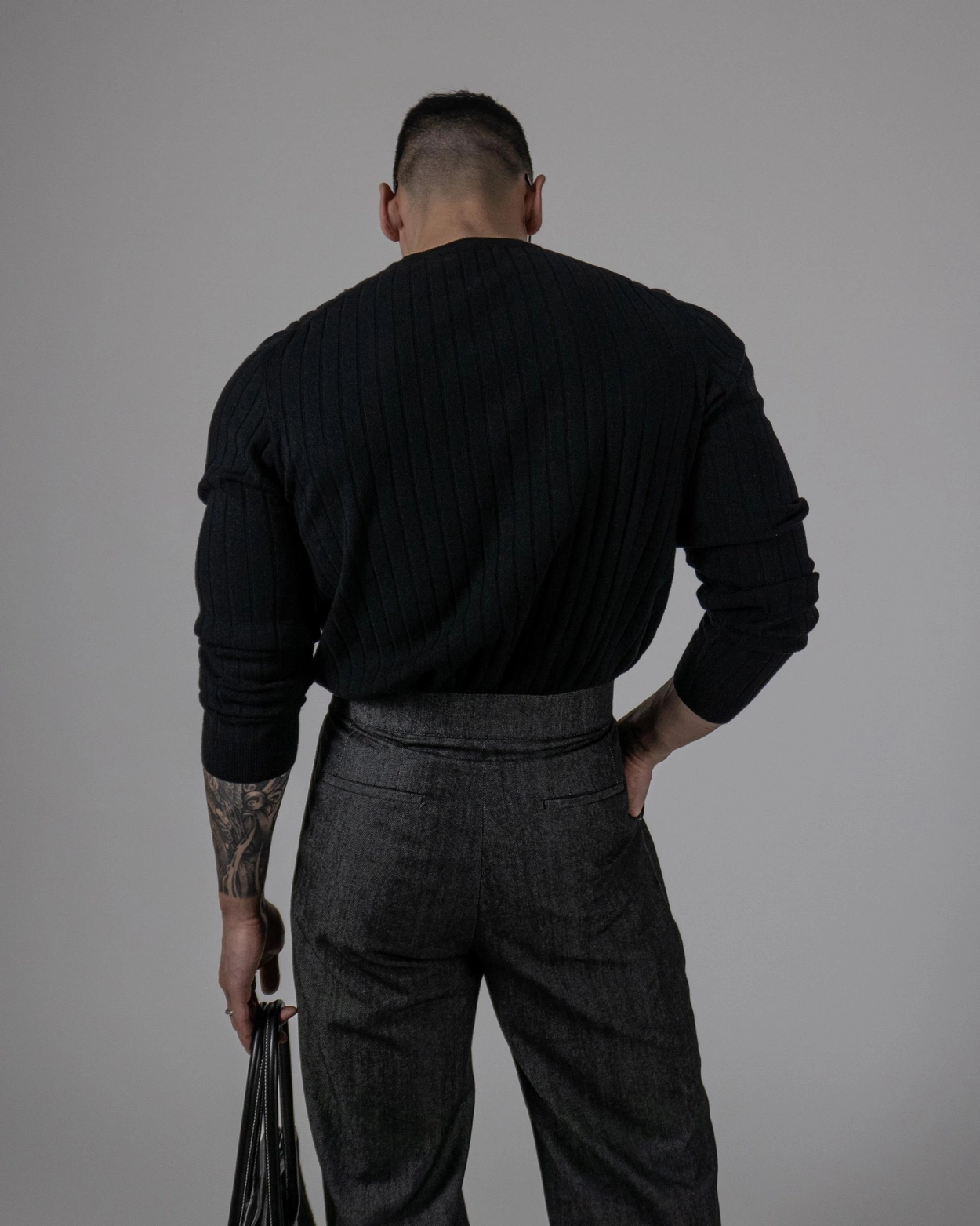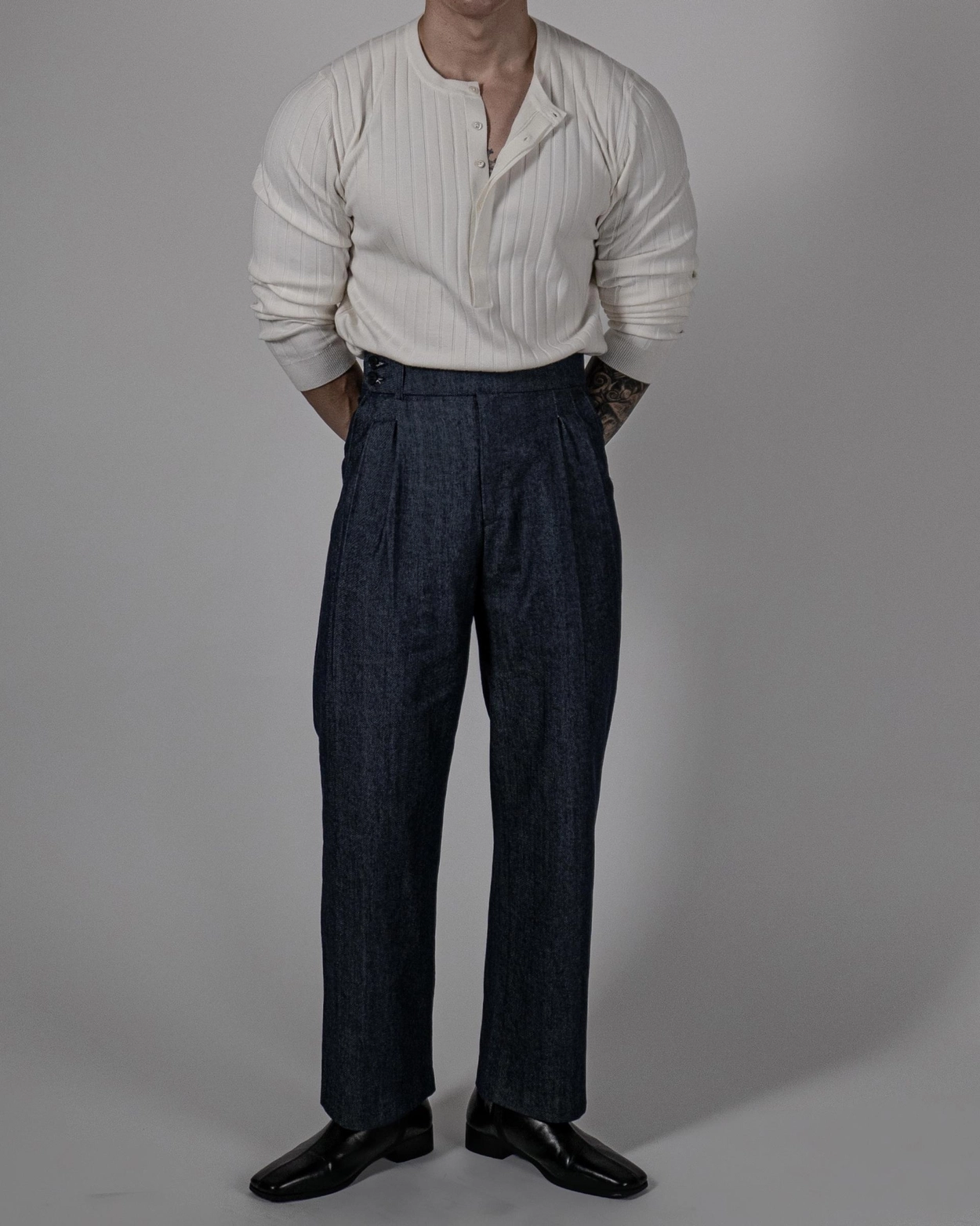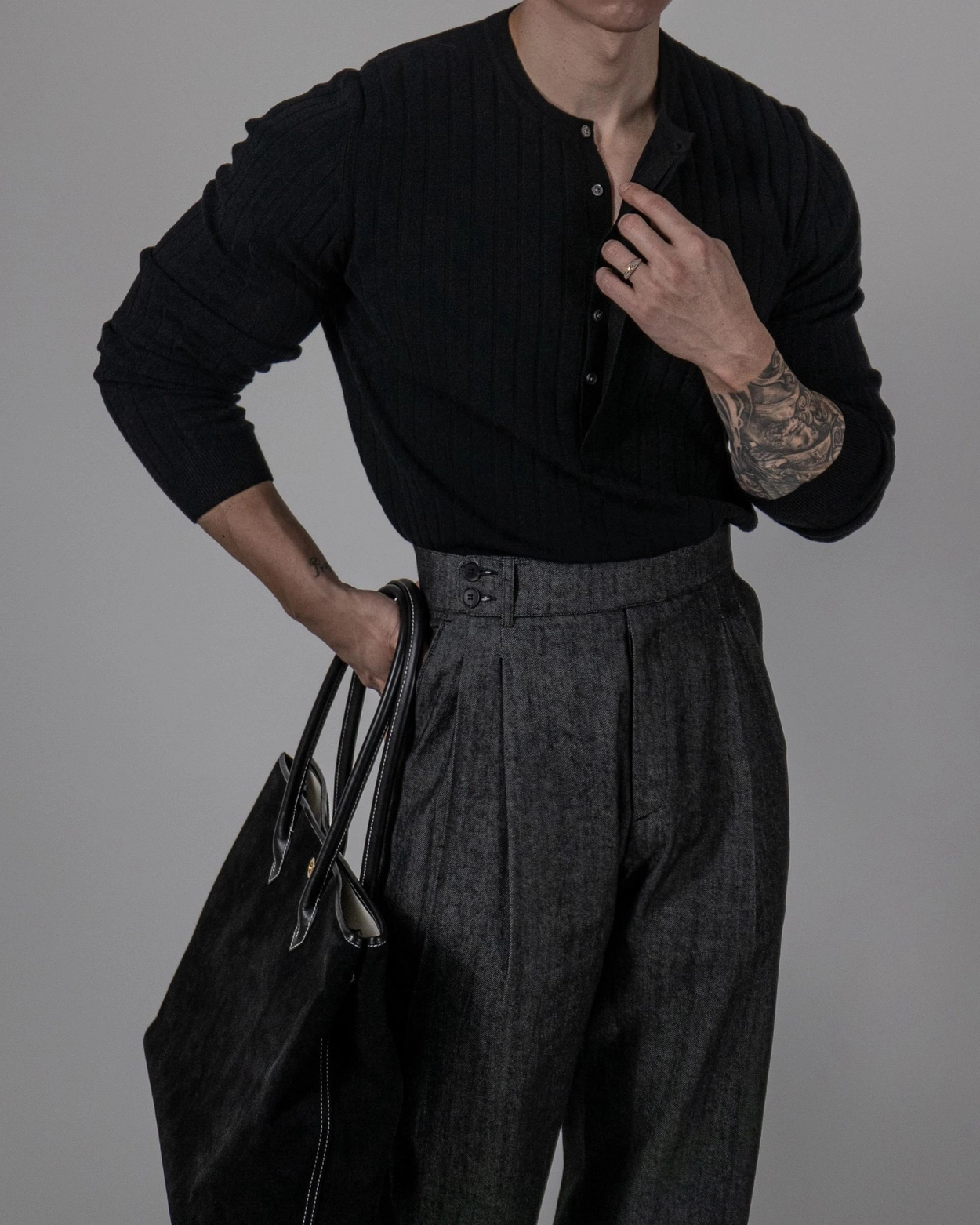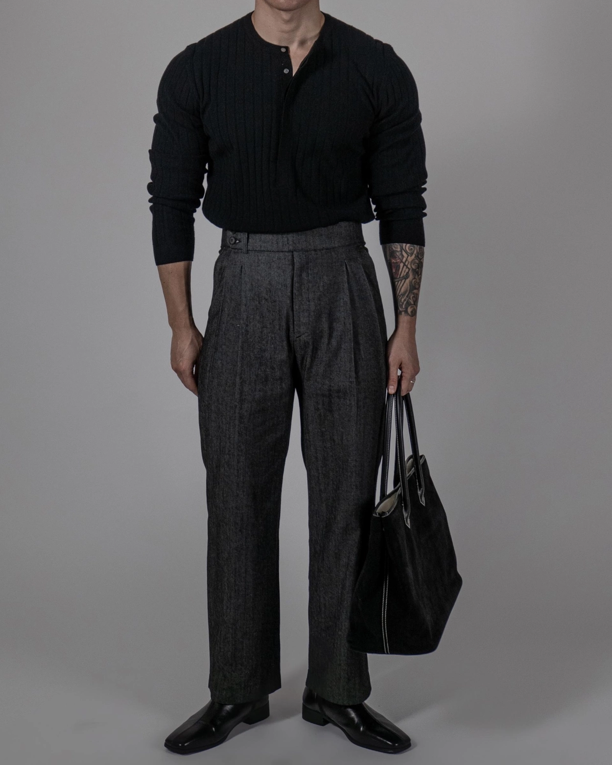 - 這是一款觸感柔軟的羅紋亨利領針織衫,採用羊絨替代紗線製成:)