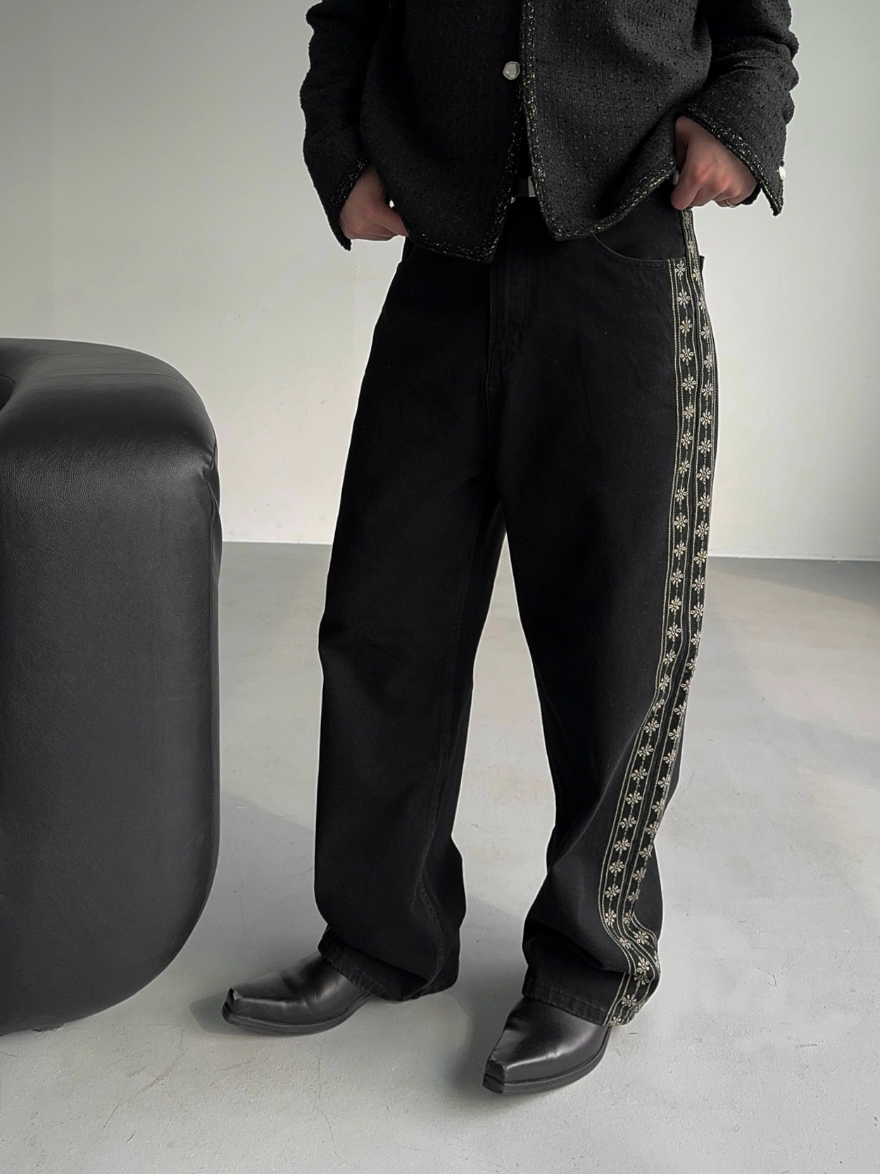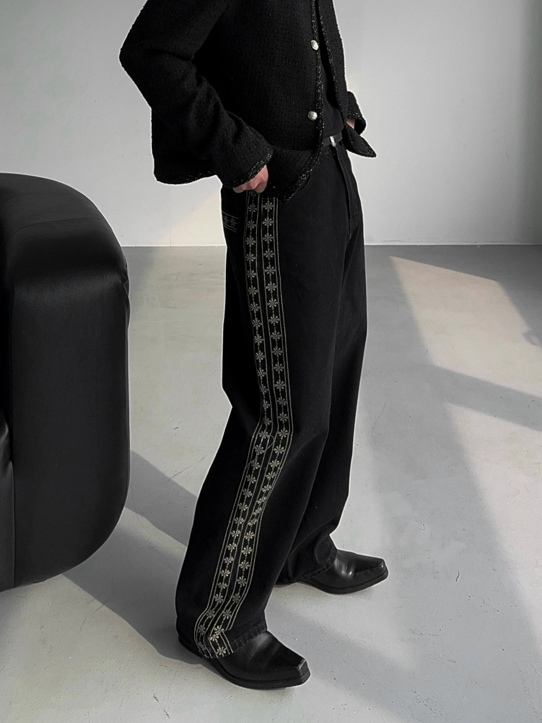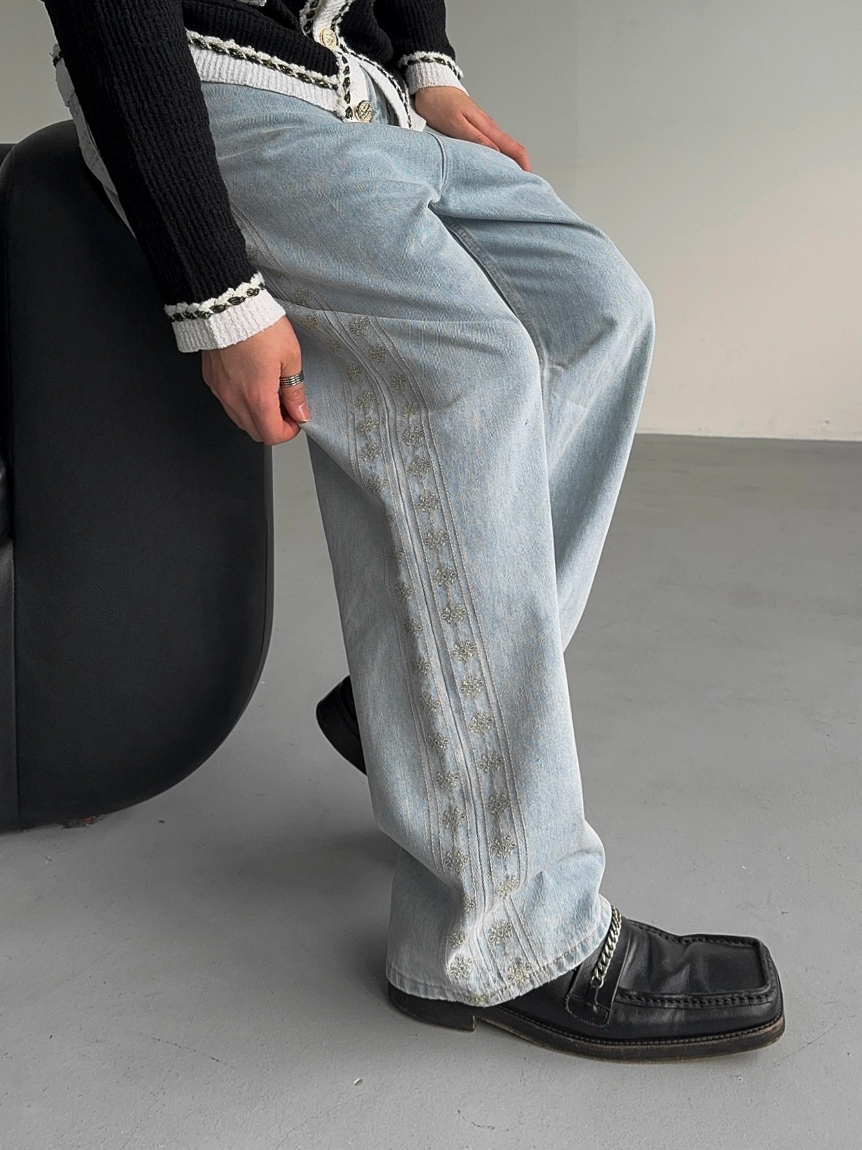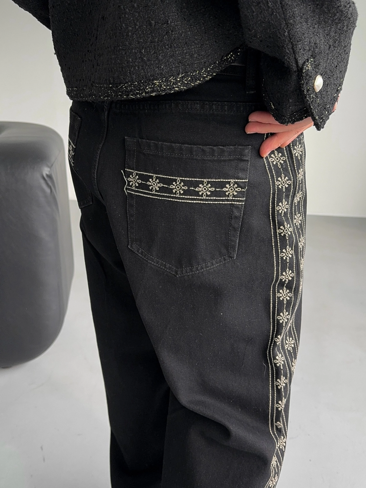 - 純色牛仔麵料,輪廓時尚- 側面刺繡細節增添美感 - 寬版型,更時尚