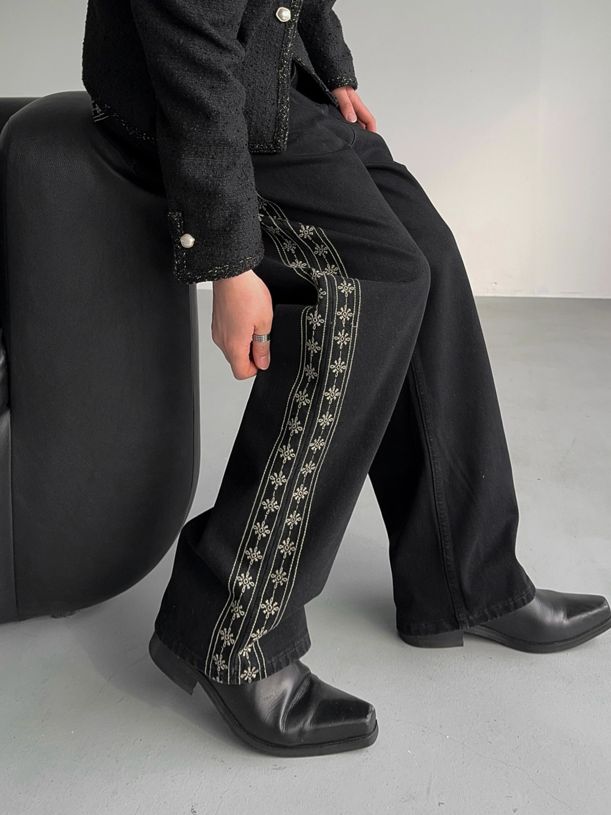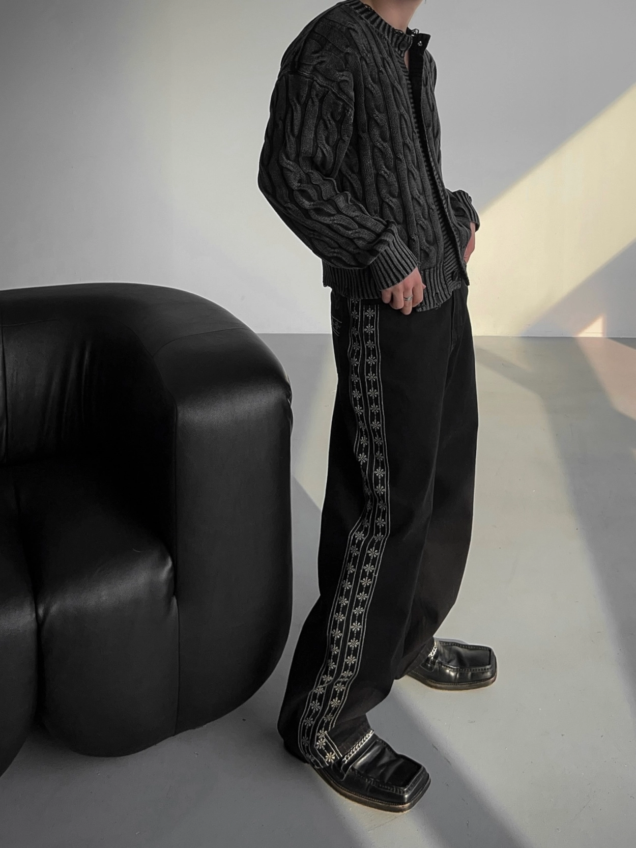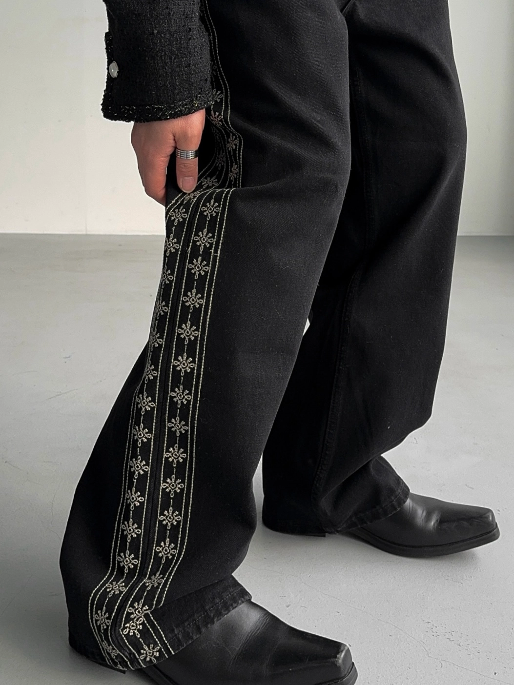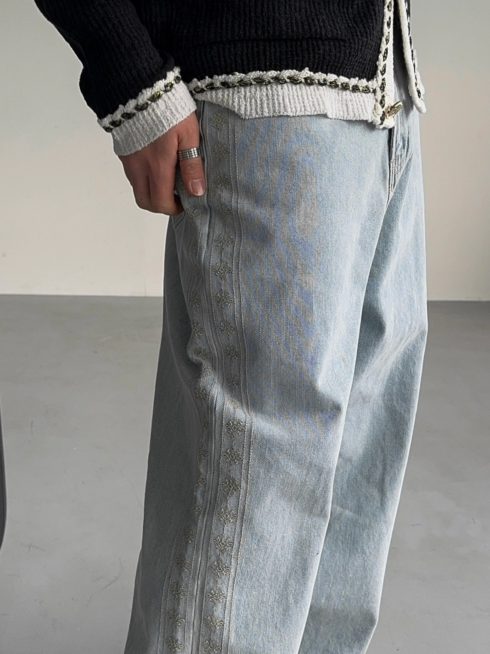 - 純色牛仔麵料,輪廓時尚- 側面刺繡細節增添美感 - 寬版型,更時尚