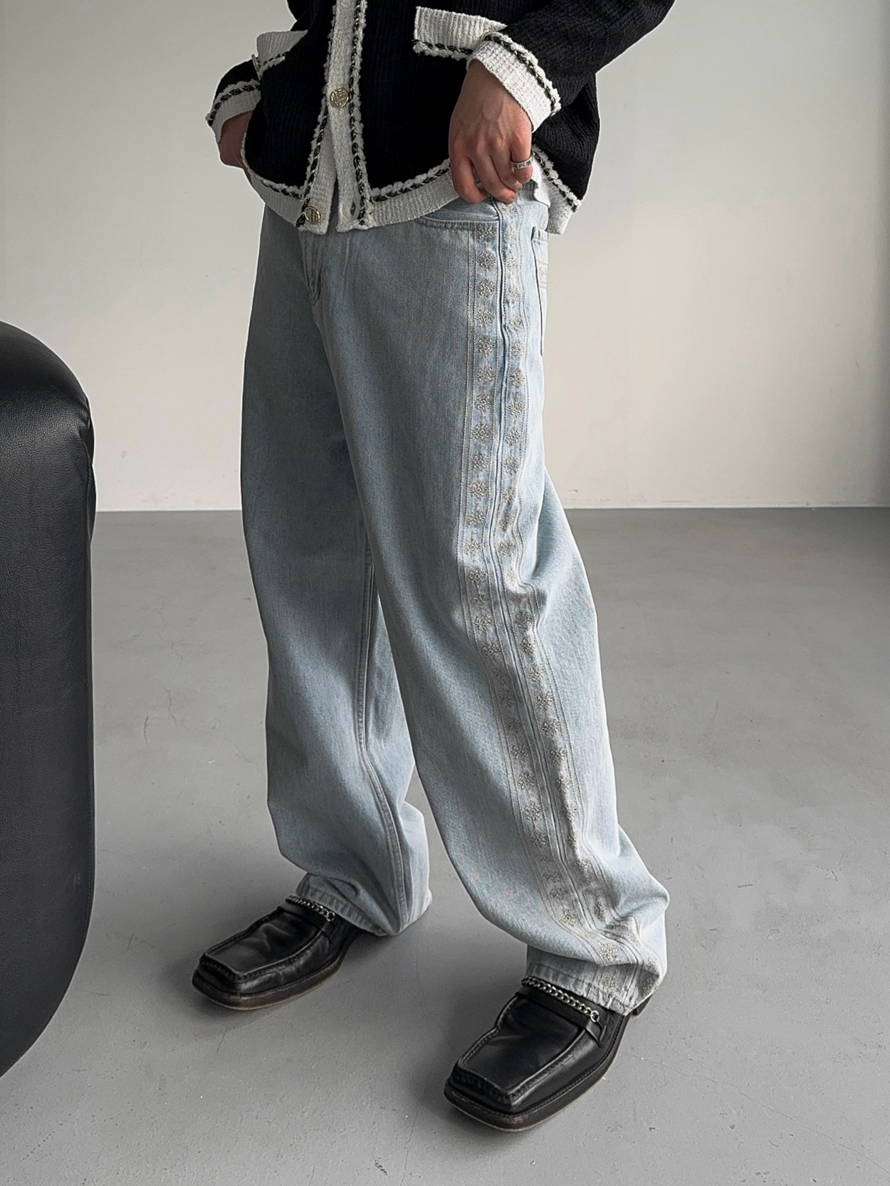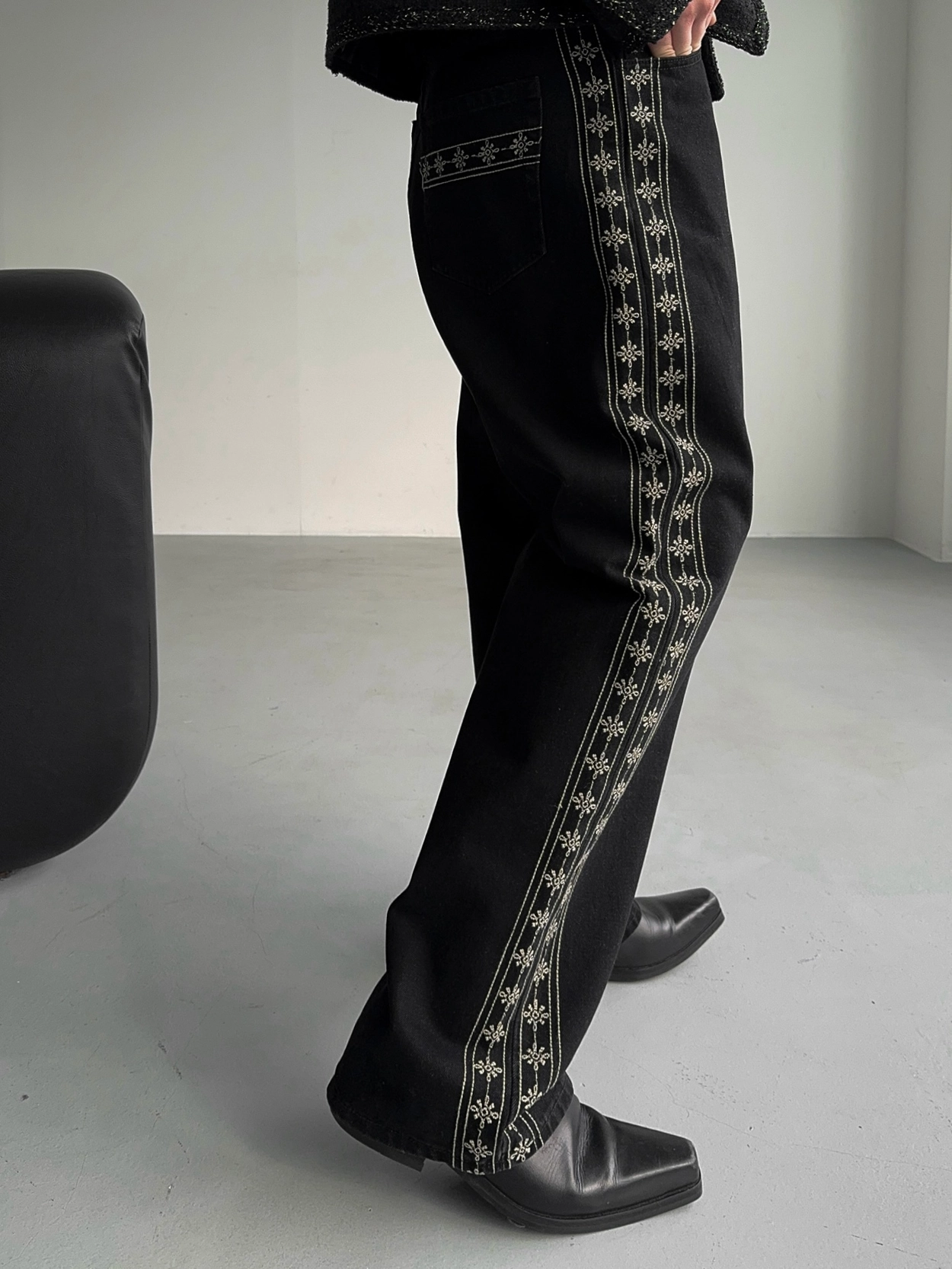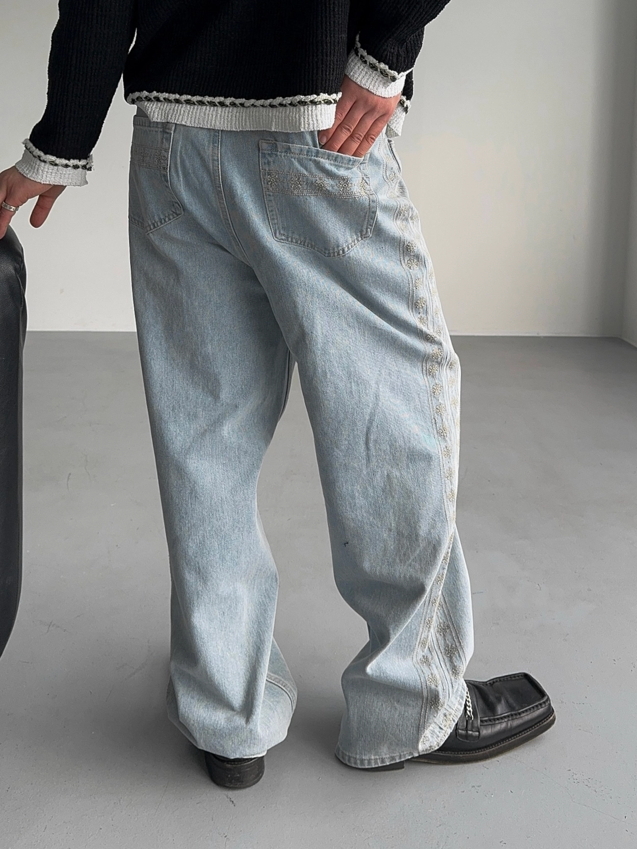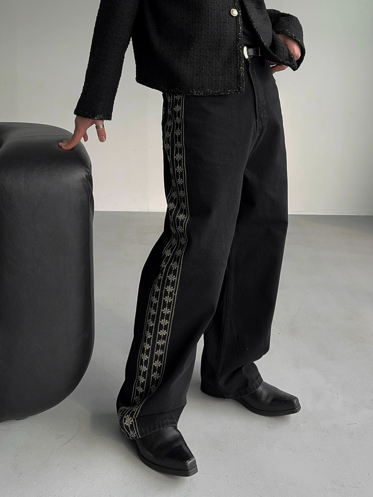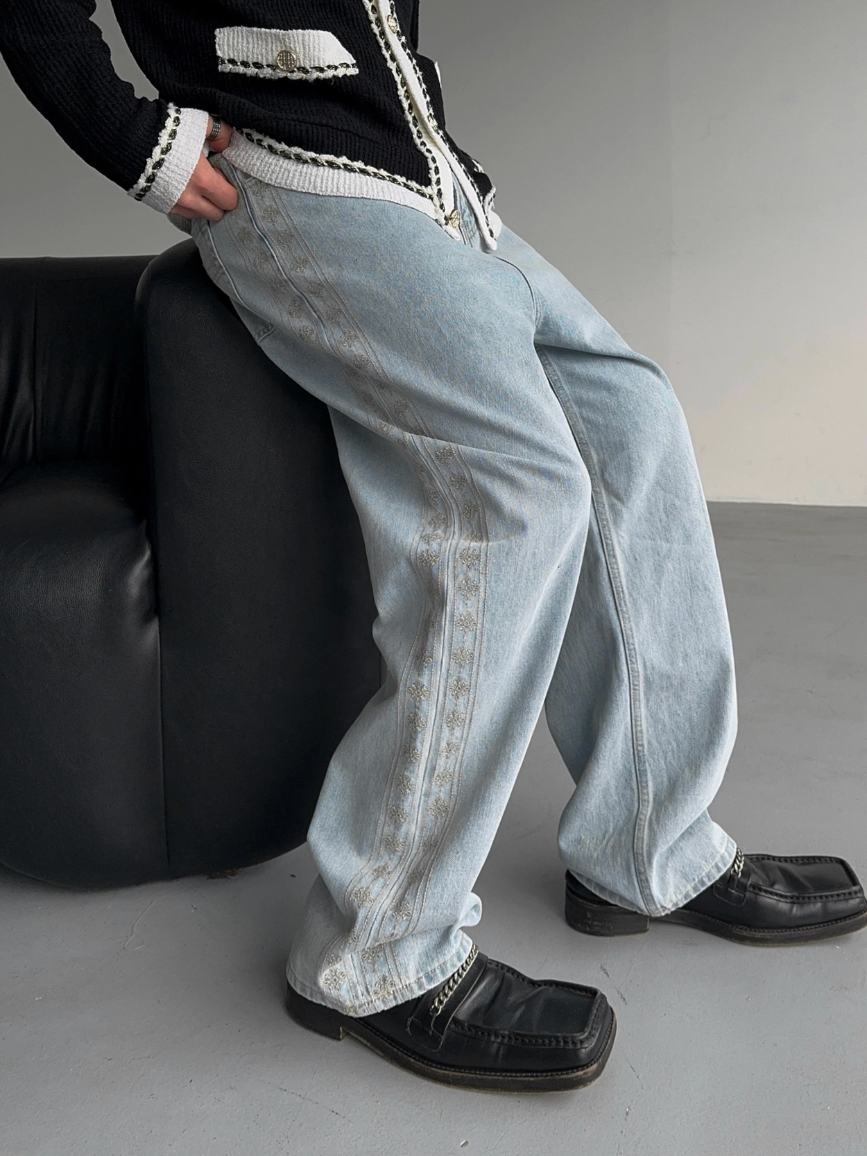 - 純色牛仔麵料,輪廓時尚- 側面刺繡細節增添美感 - 寬版型,更時尚