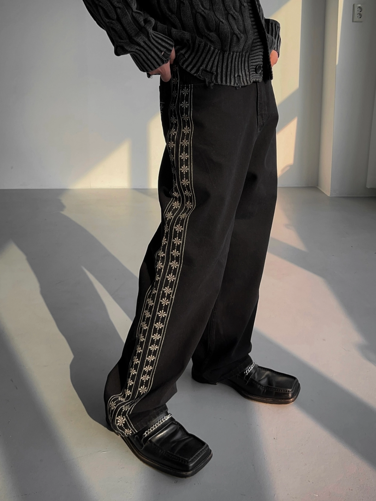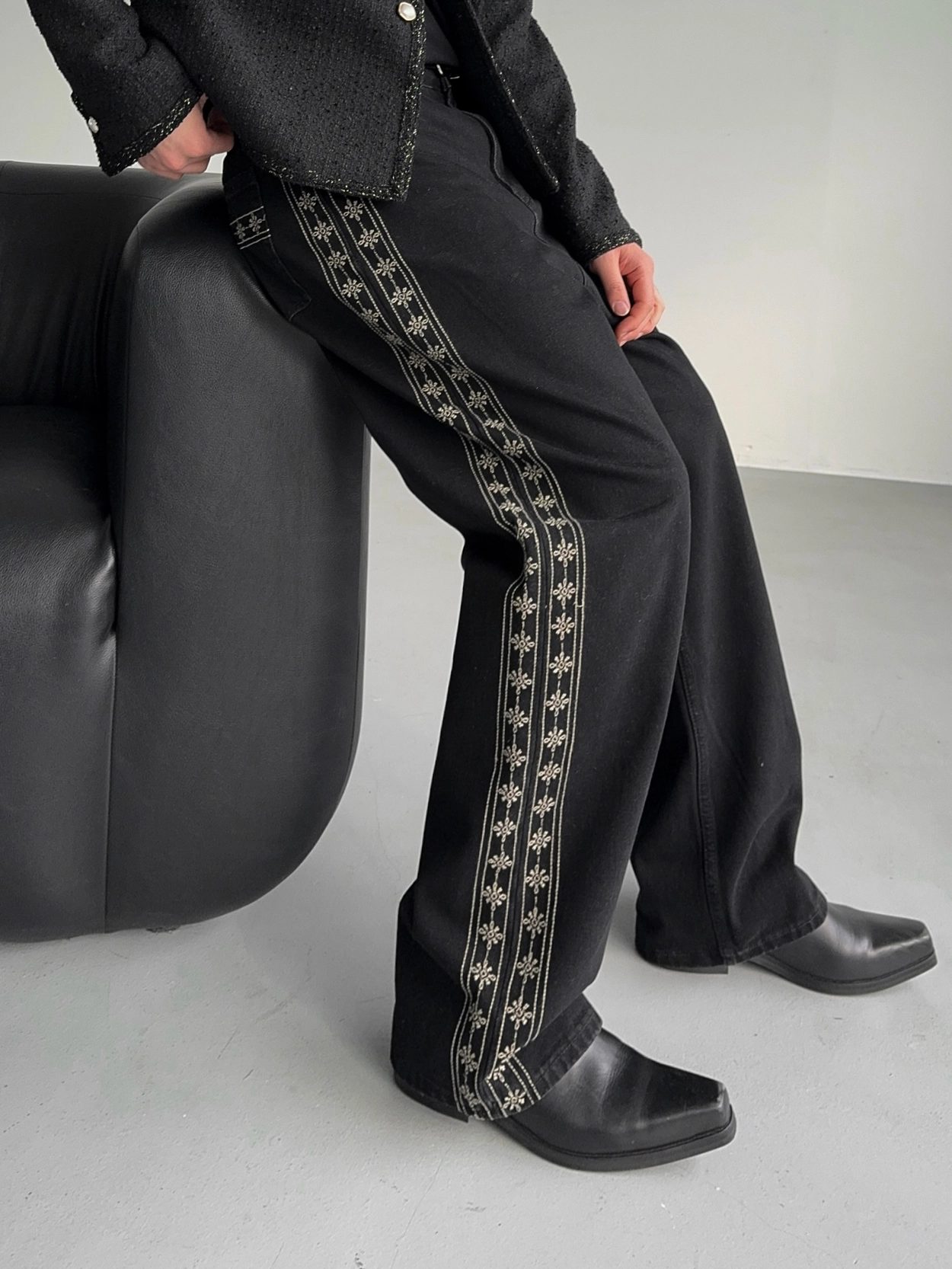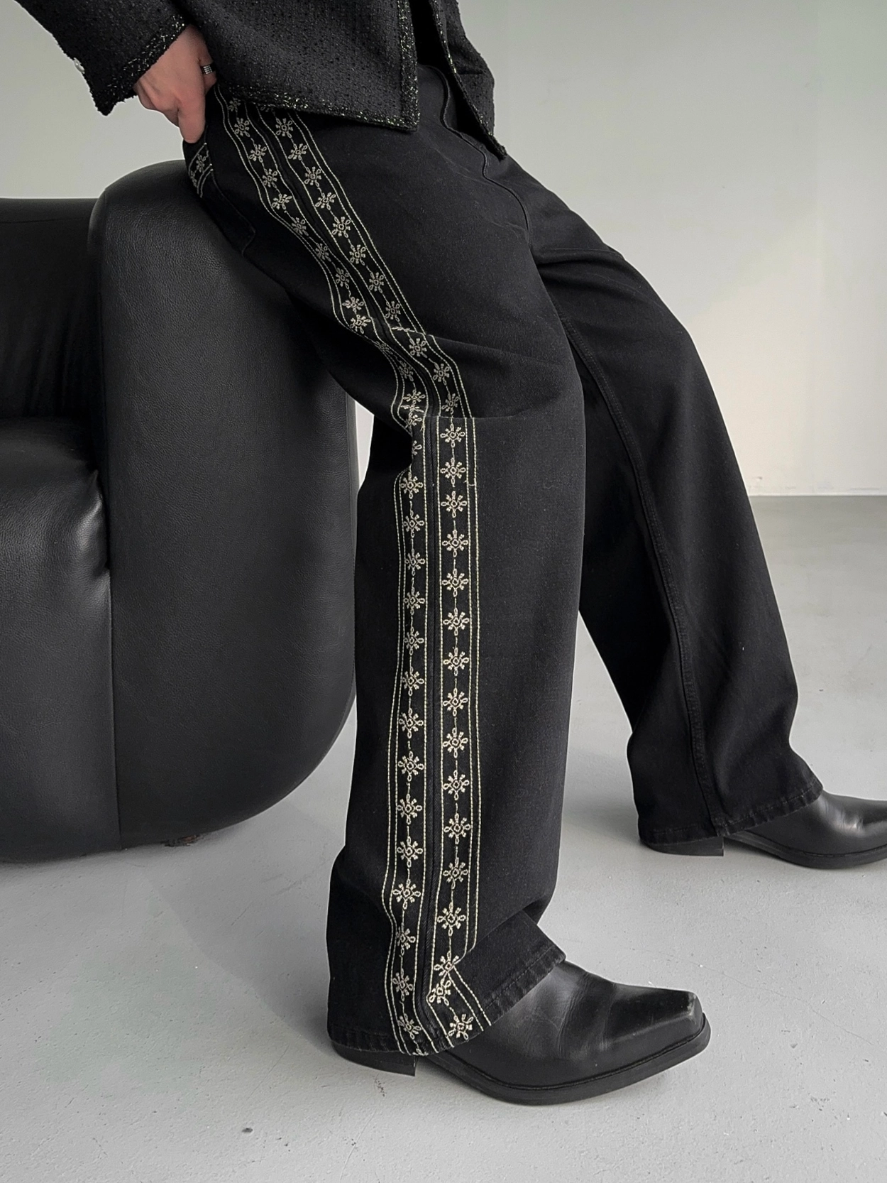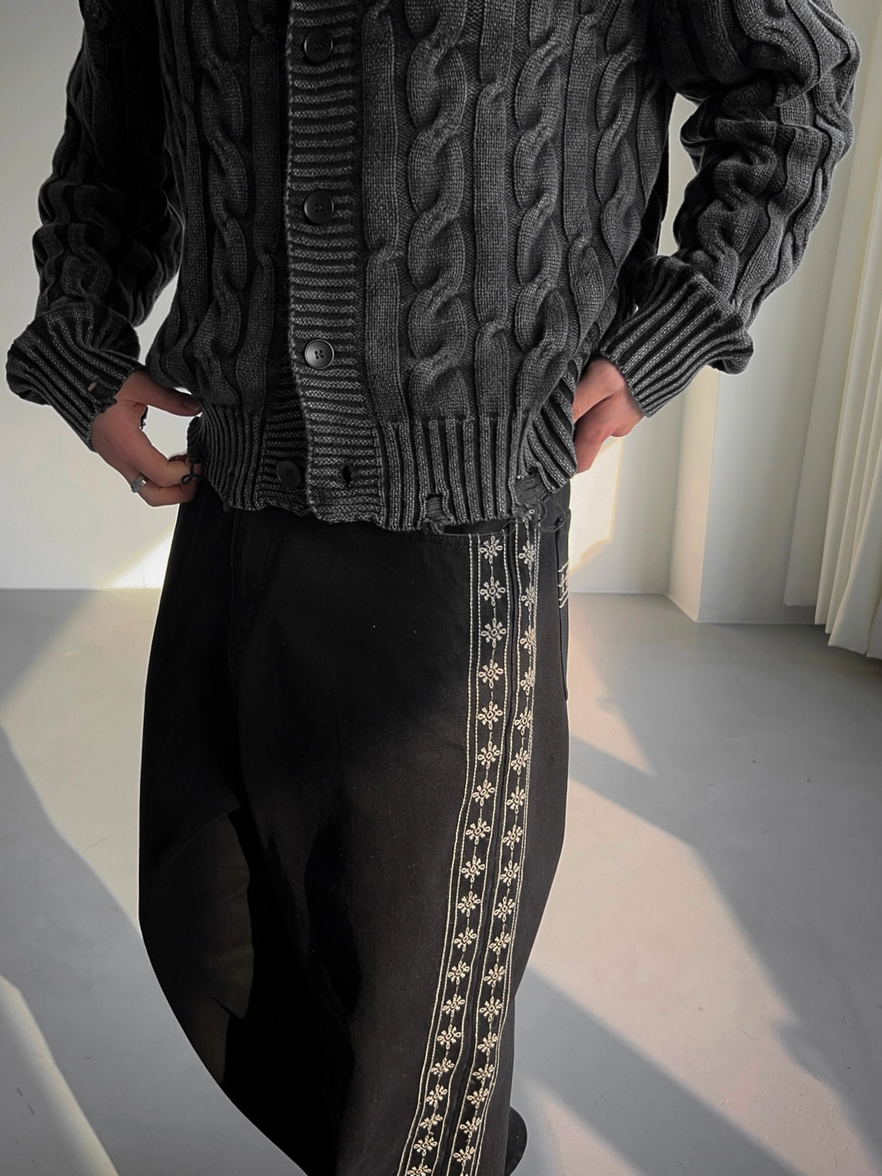 - 純色牛仔麵料,輪廓時尚- 側面刺繡細節增添美感 - 寬版型,更時尚