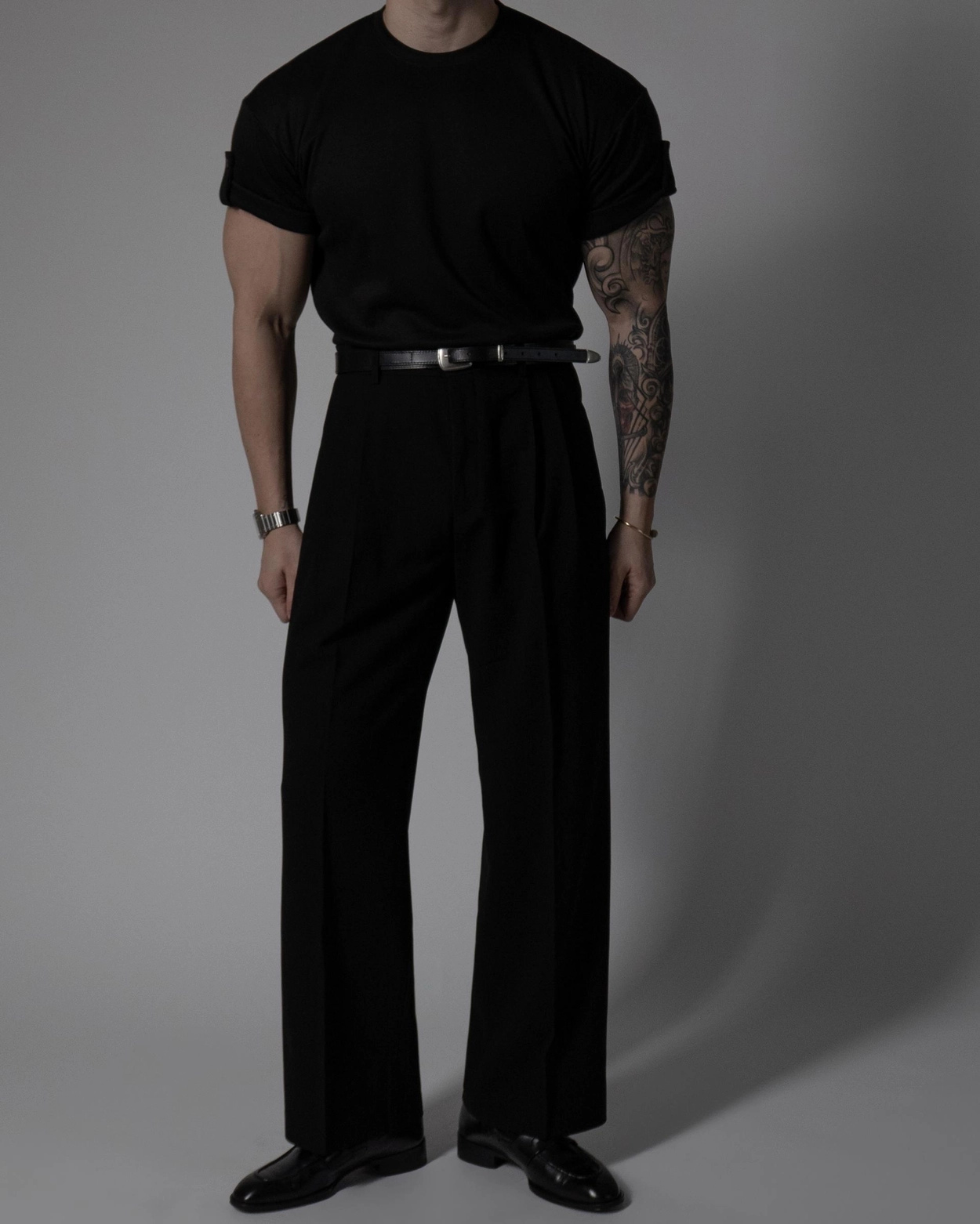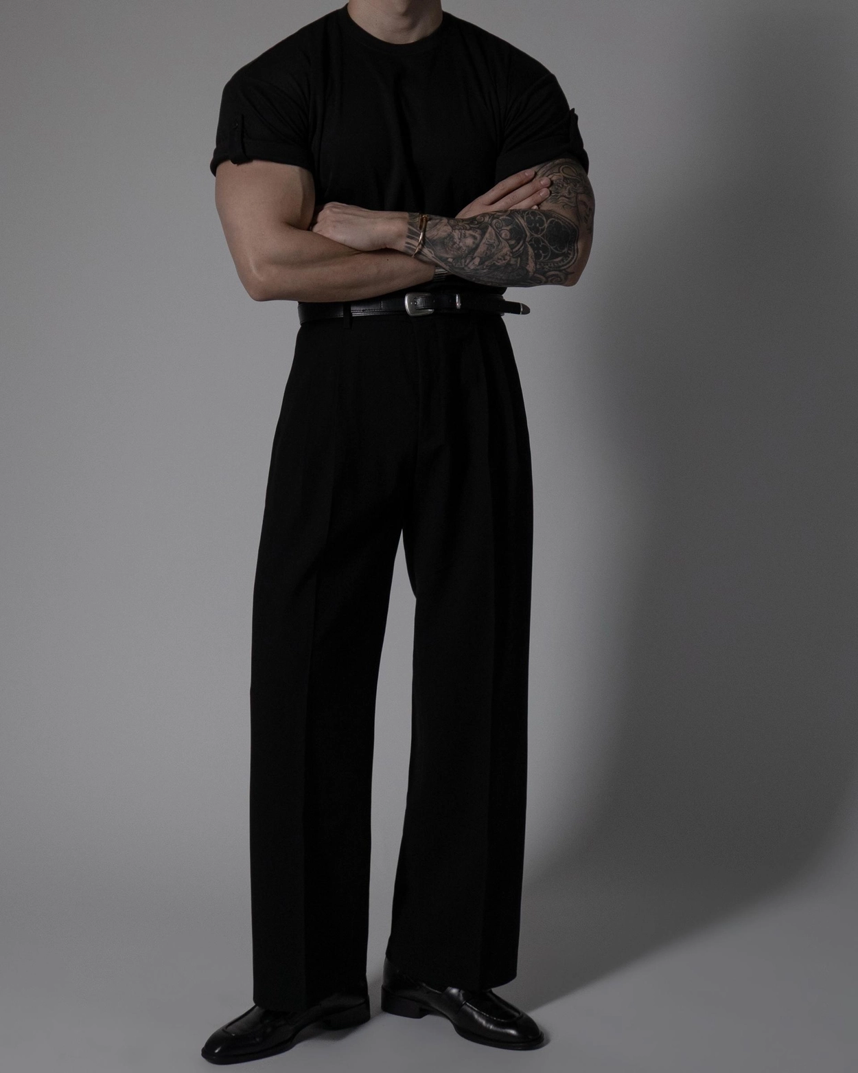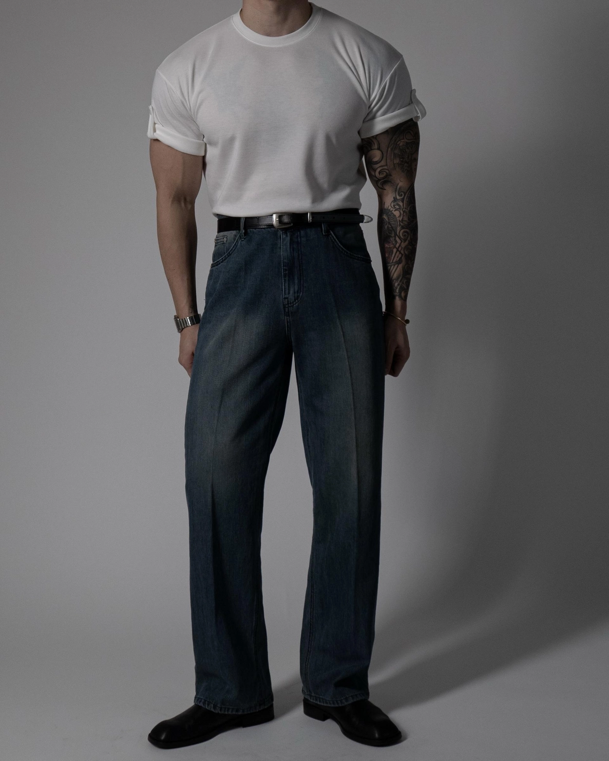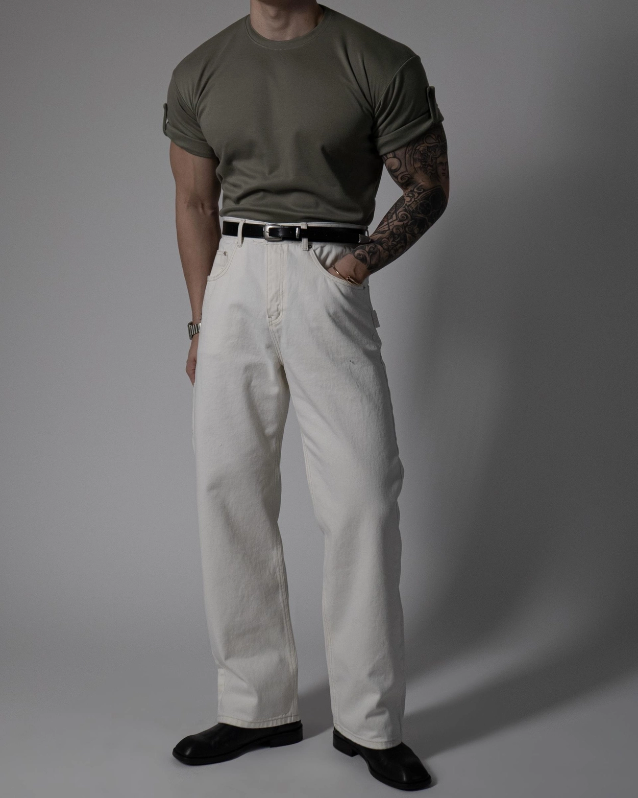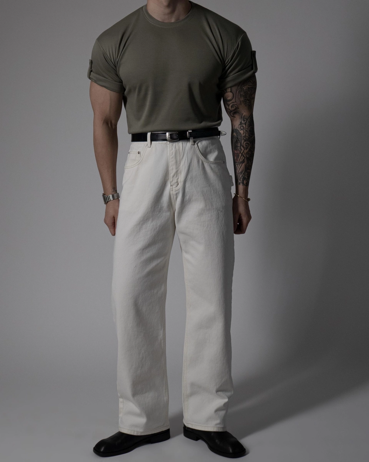 - 獨特設計的 T 卹,帶有捲起袖子的細節