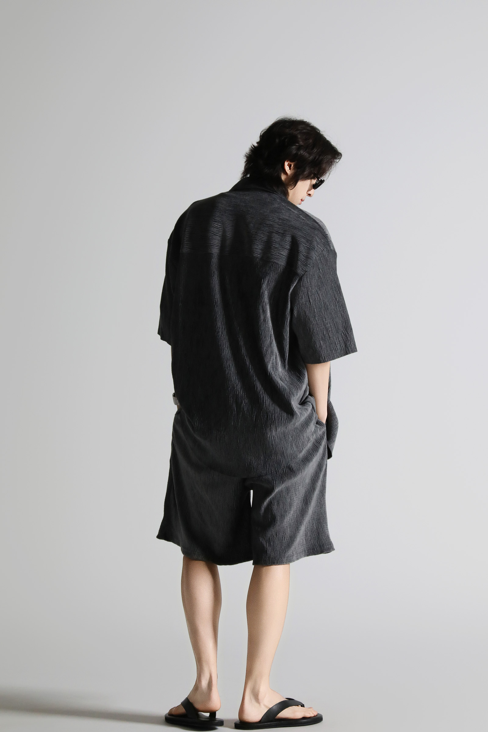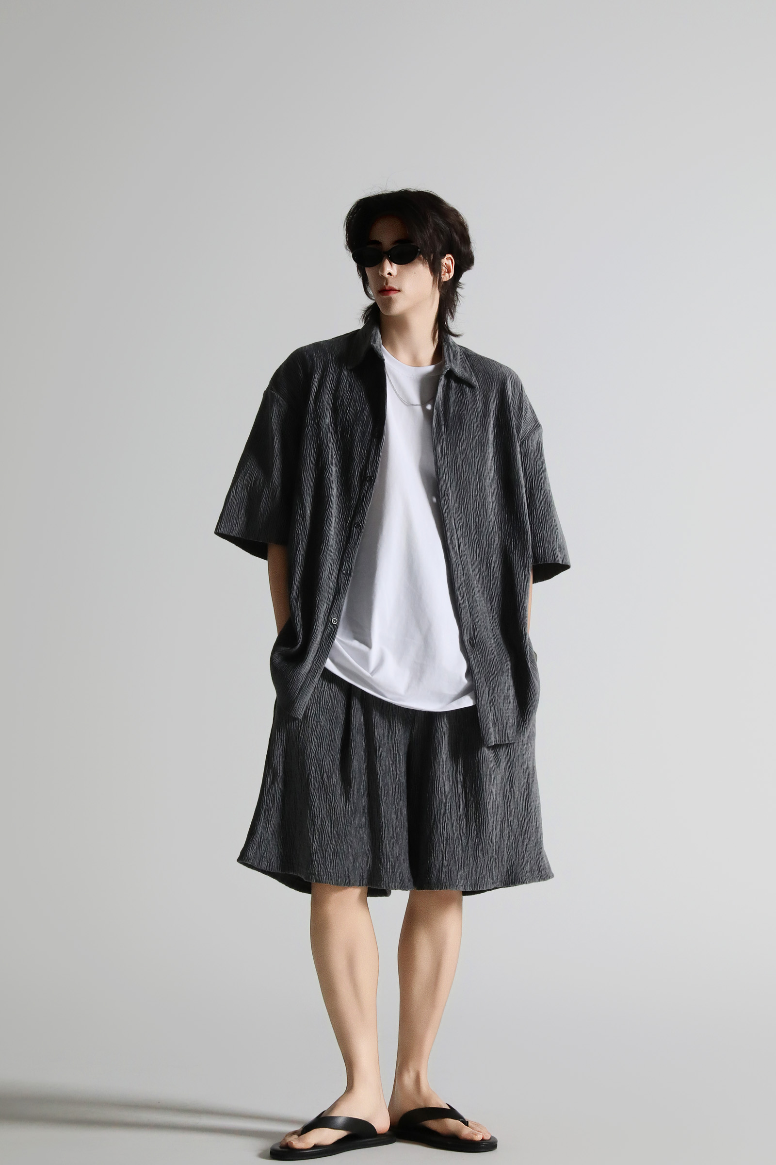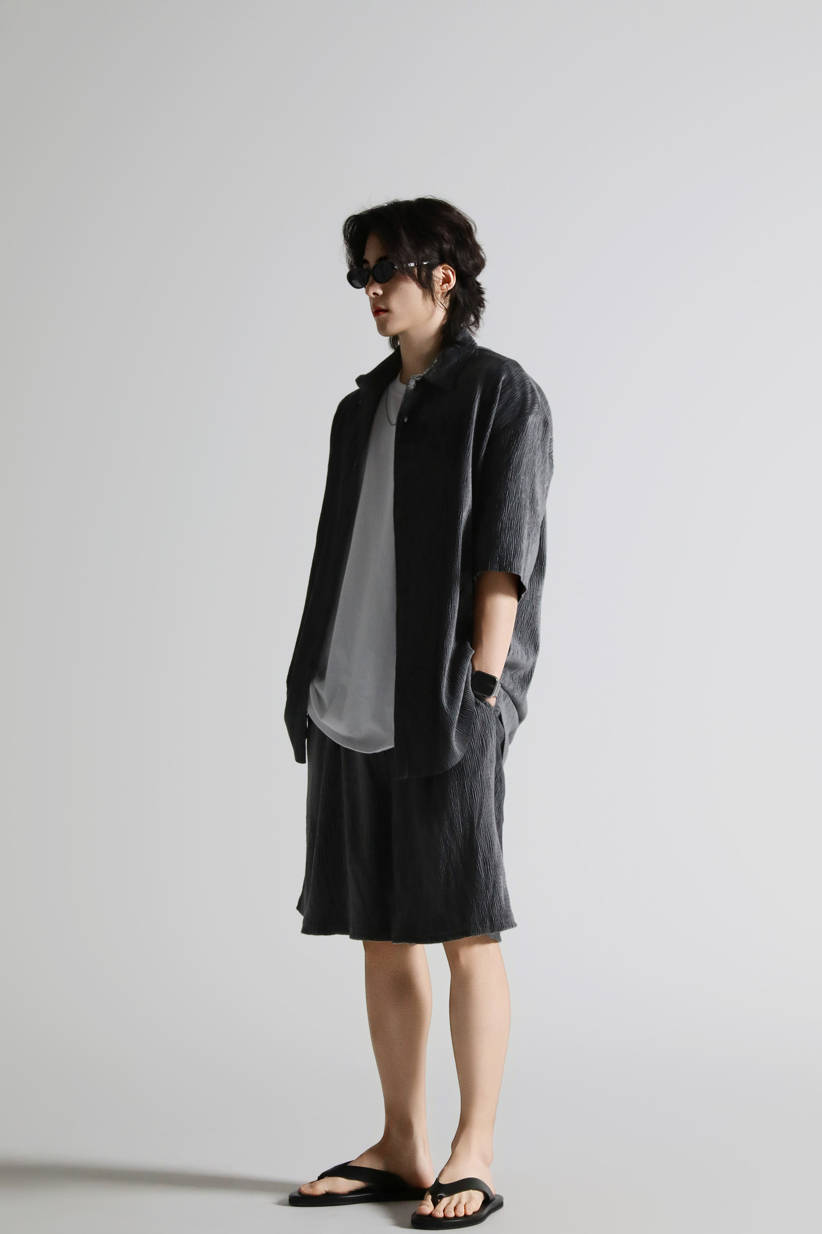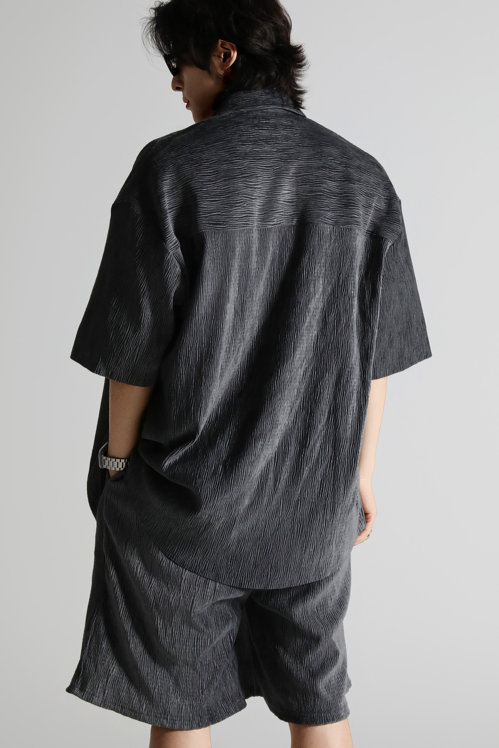 - 短袖襯衫採用輕盈透氣的褶皺布料製成