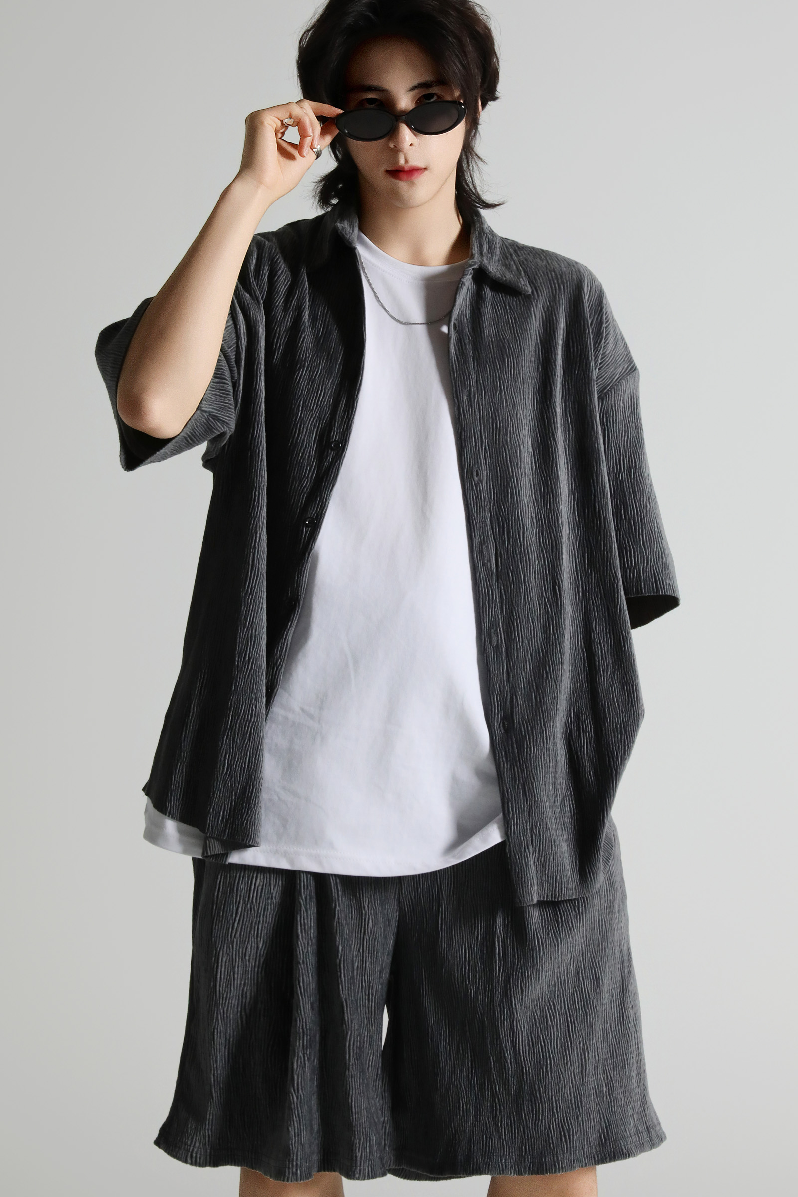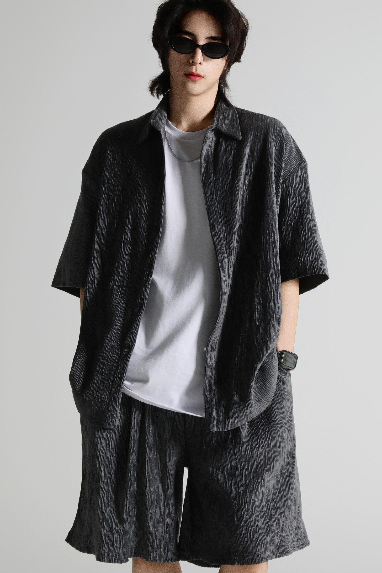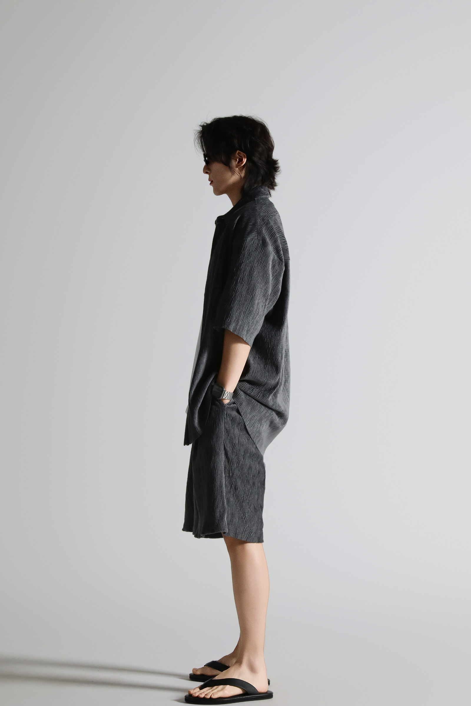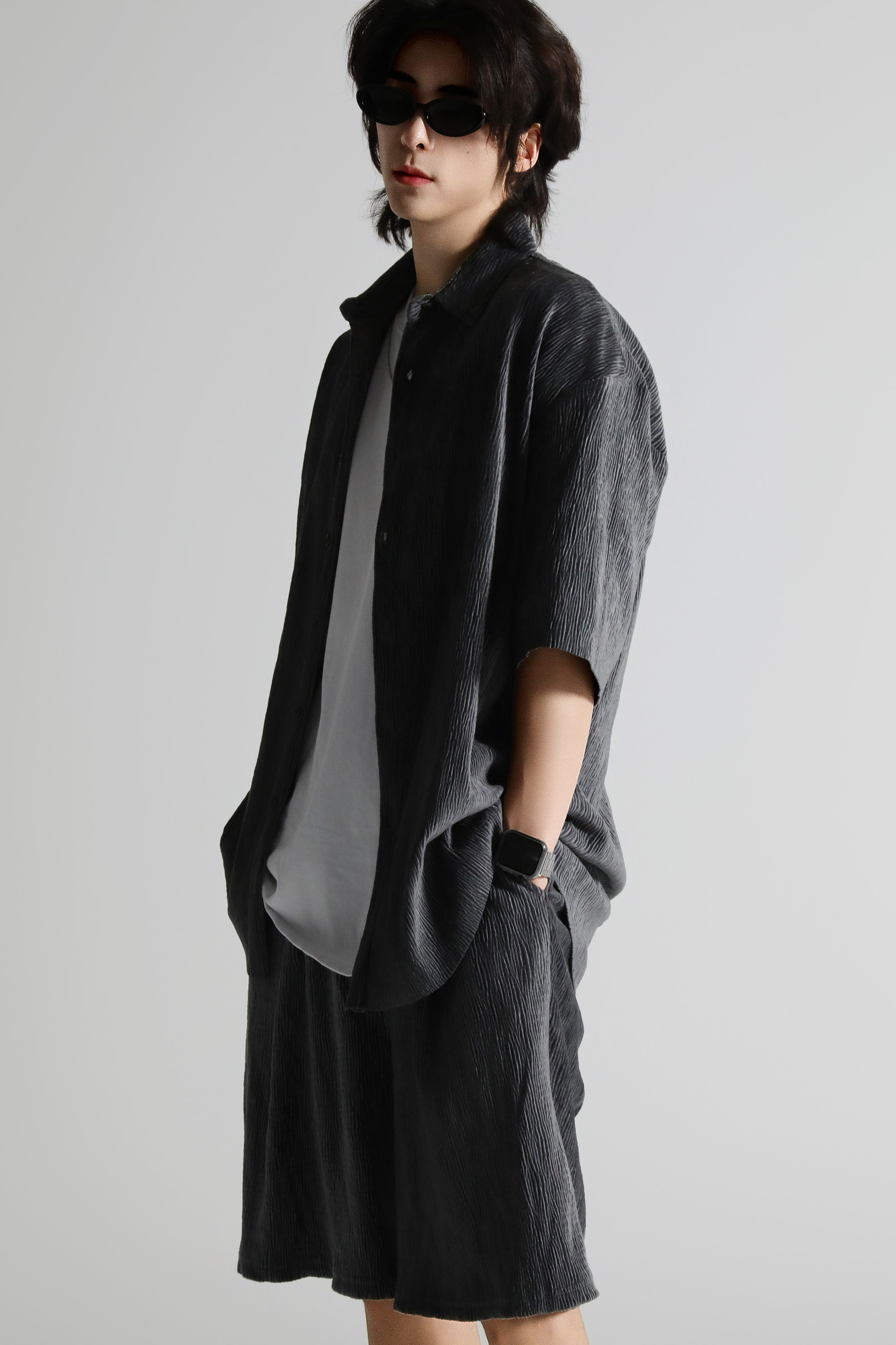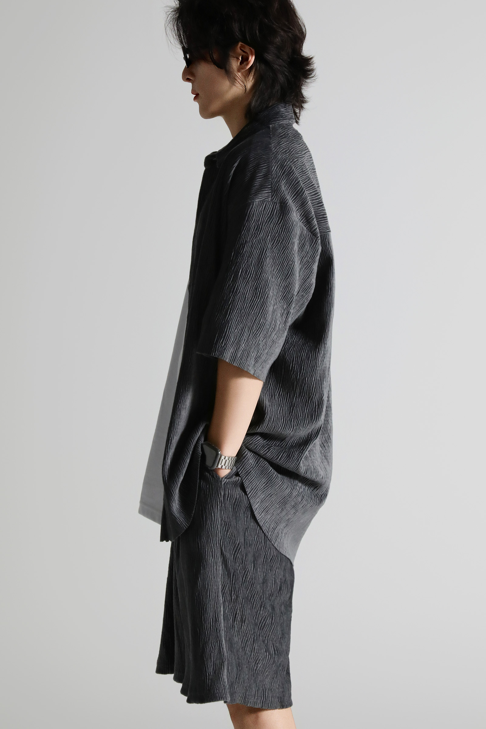 - 短袖襯衫採用輕盈透氣的褶皺布料製成