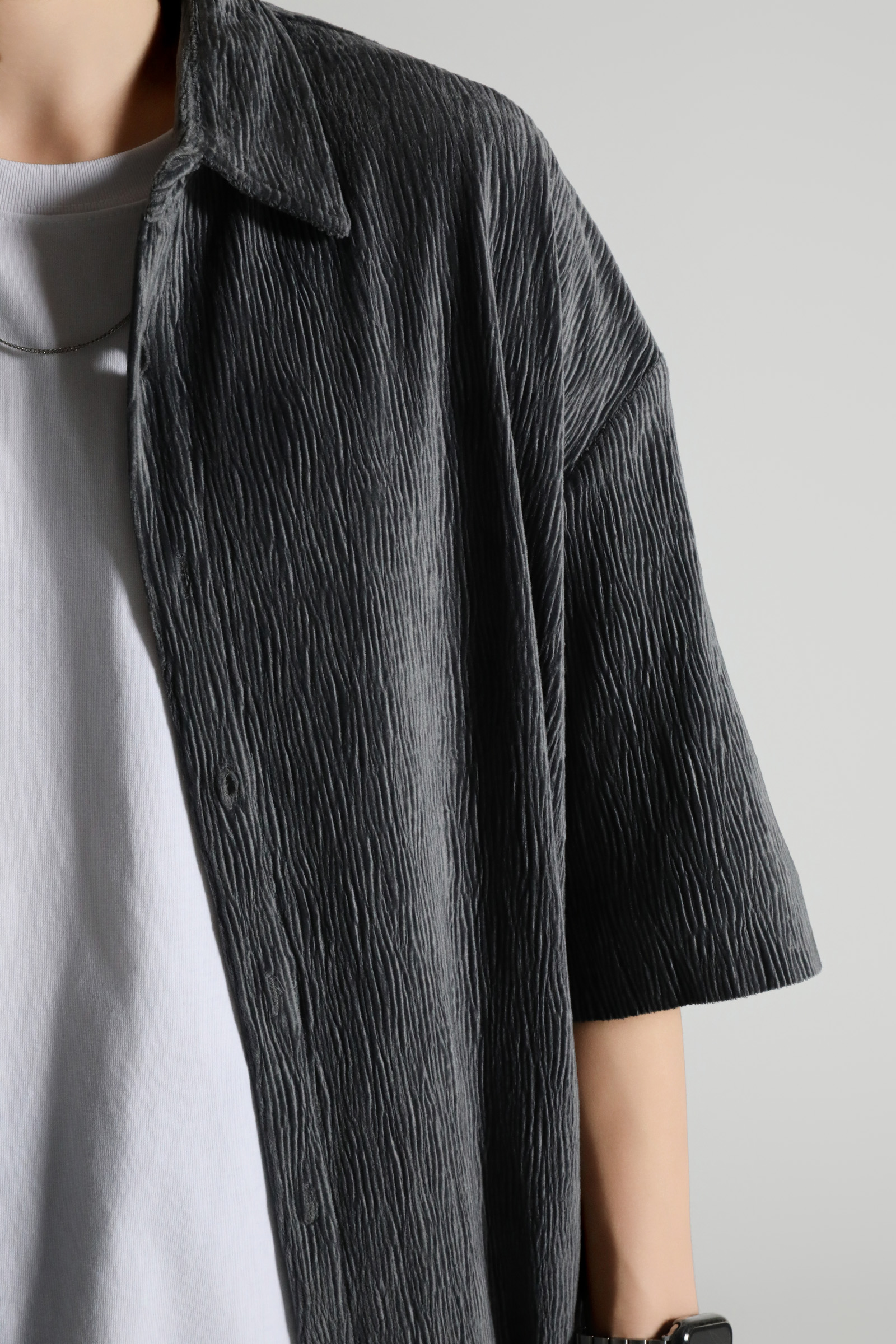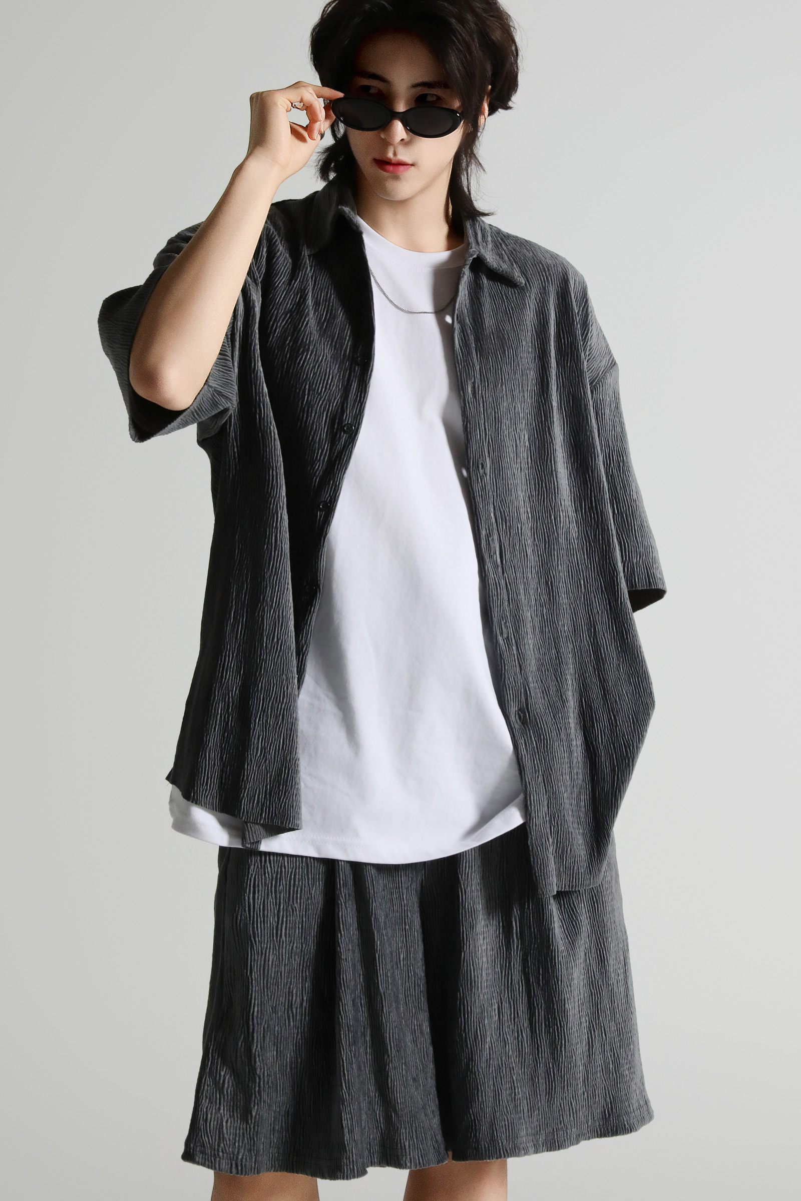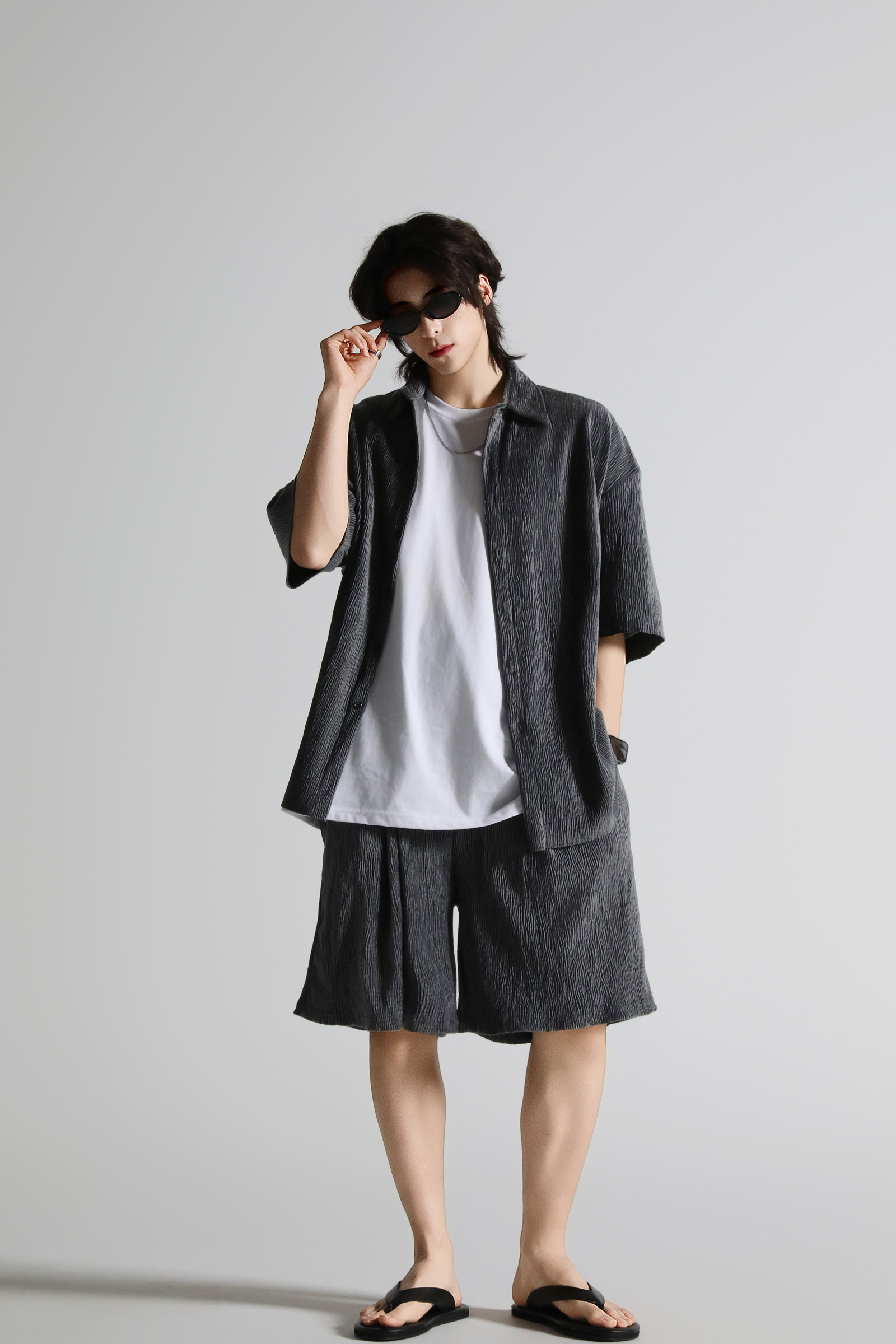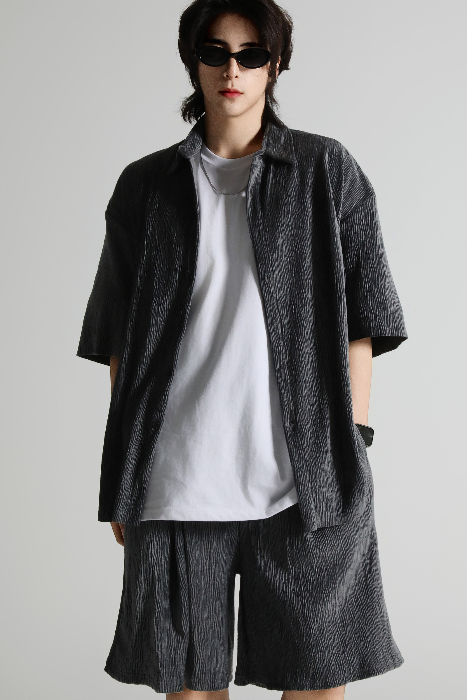 - 短袖襯衫採用輕盈透氣的褶皺布料製成