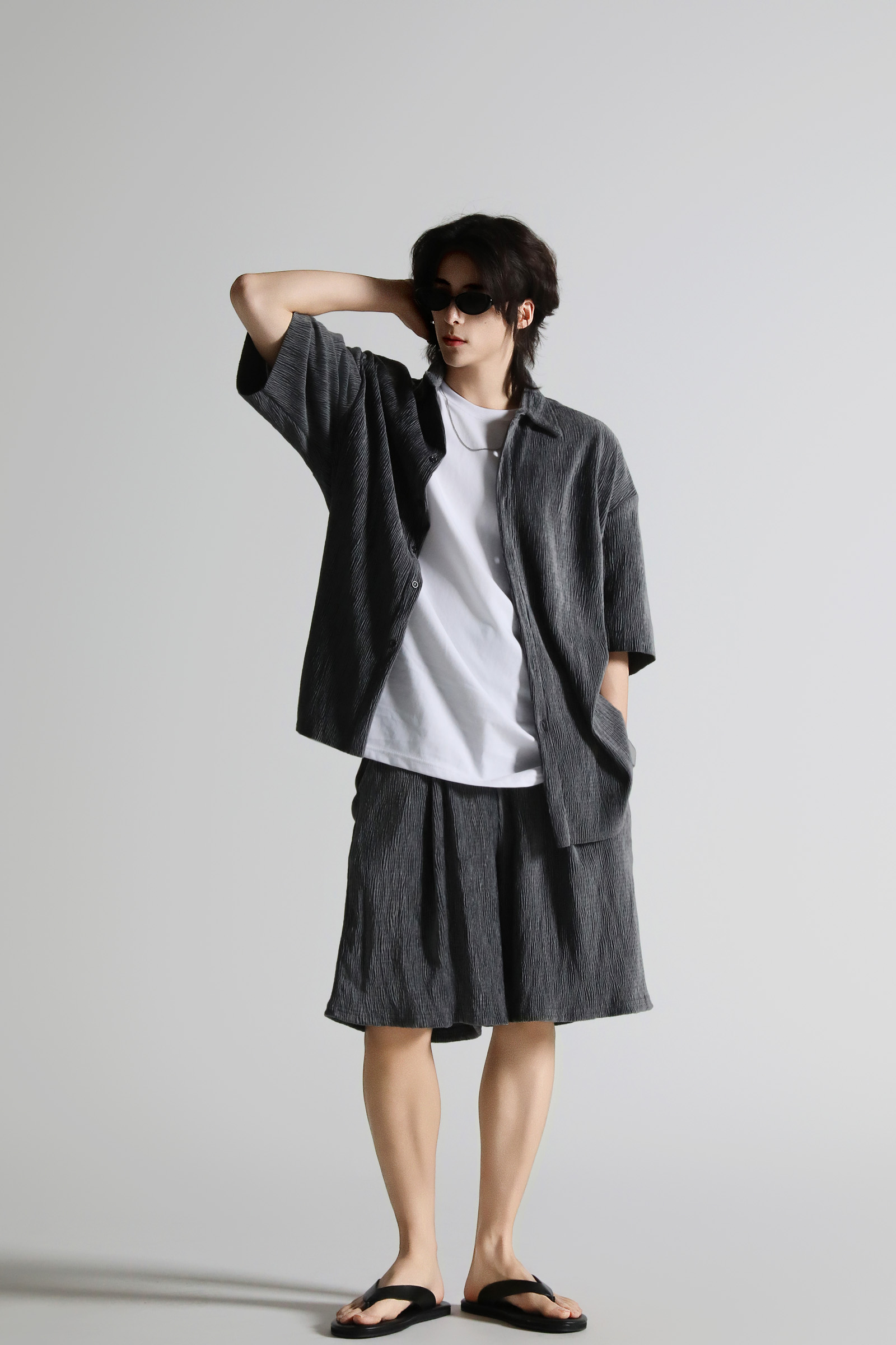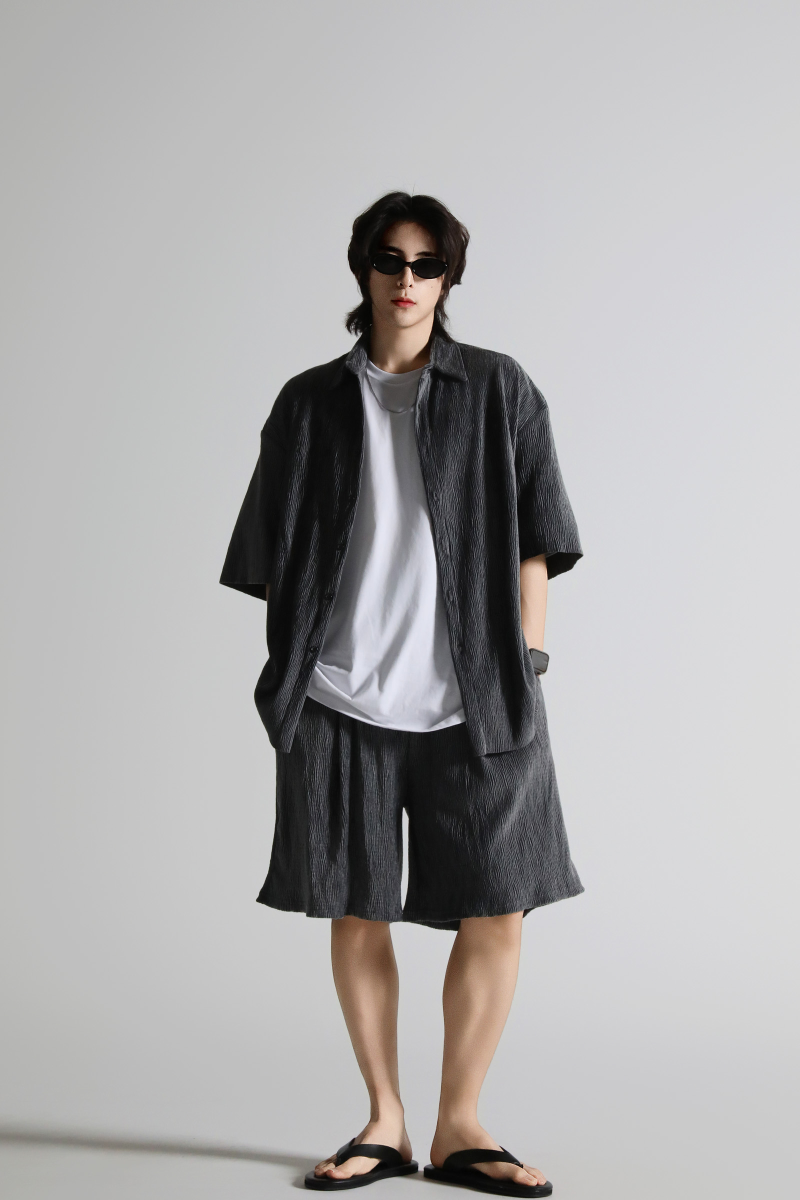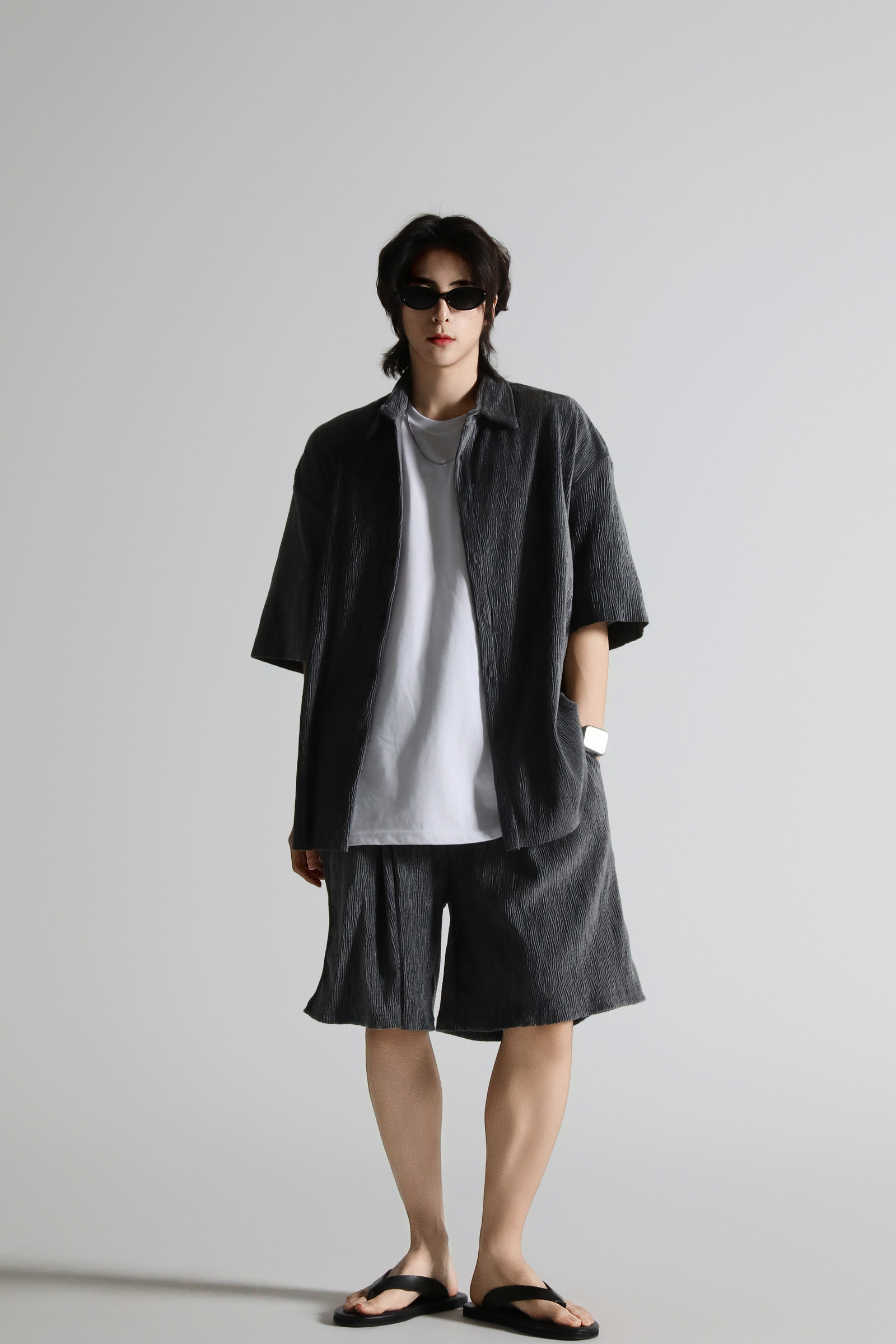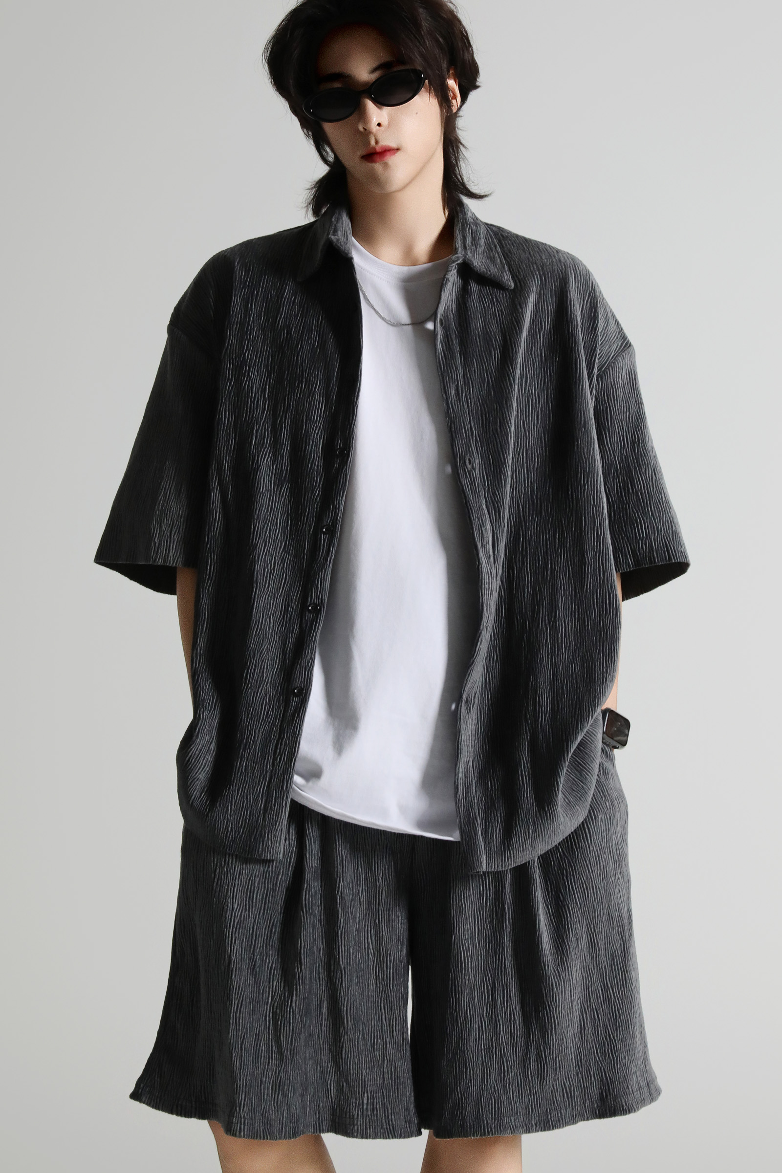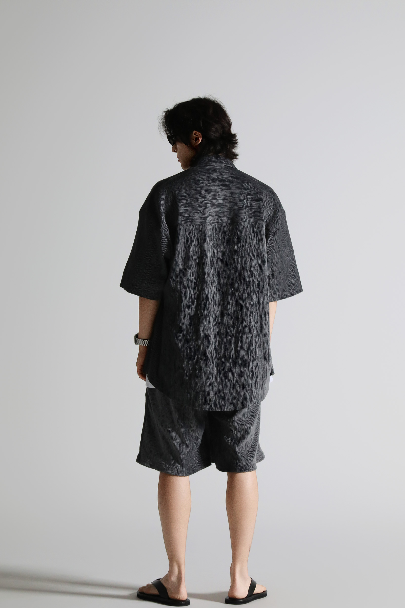 - 短袖襯衫採用輕盈透氣的褶皺布料製成