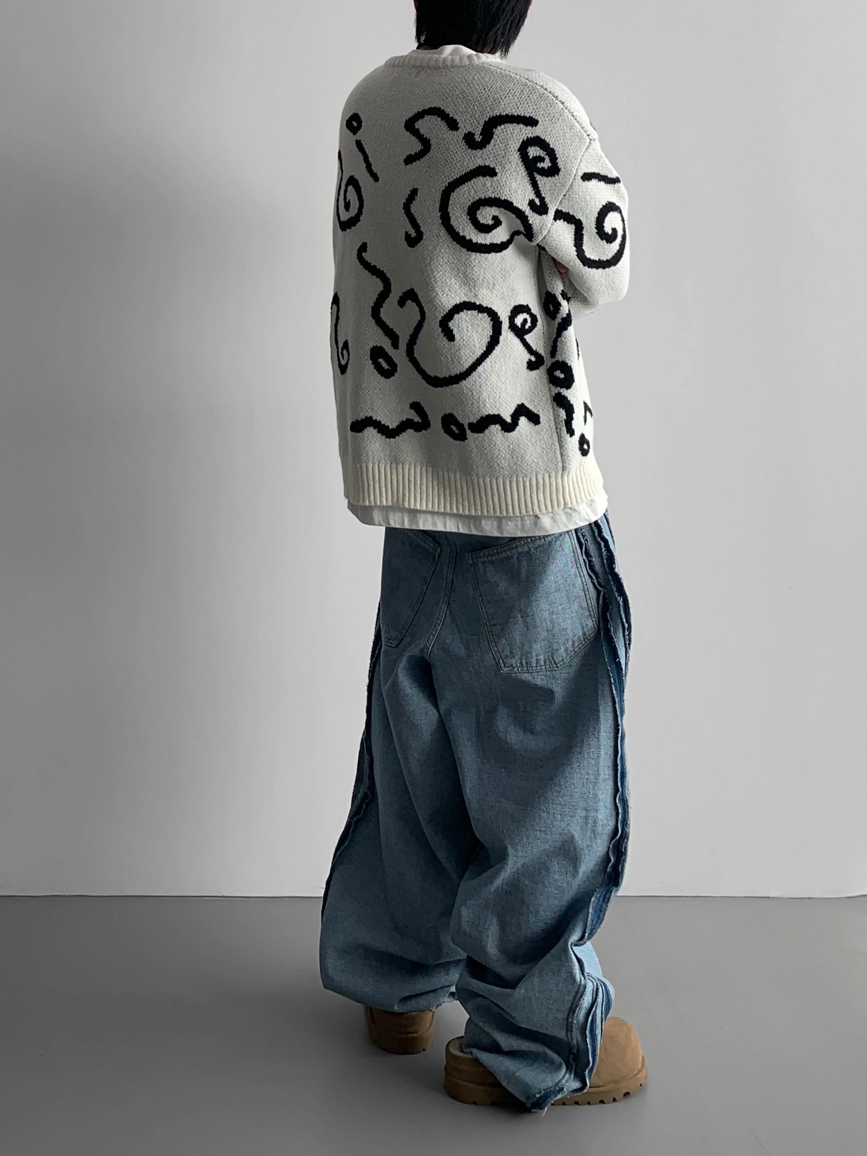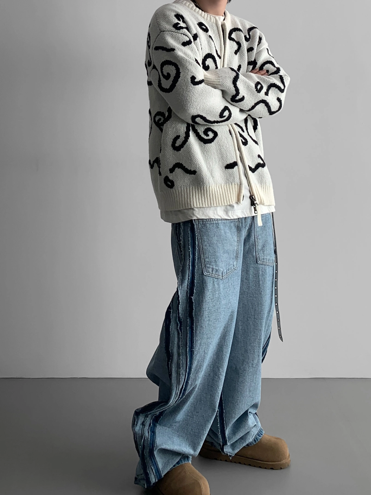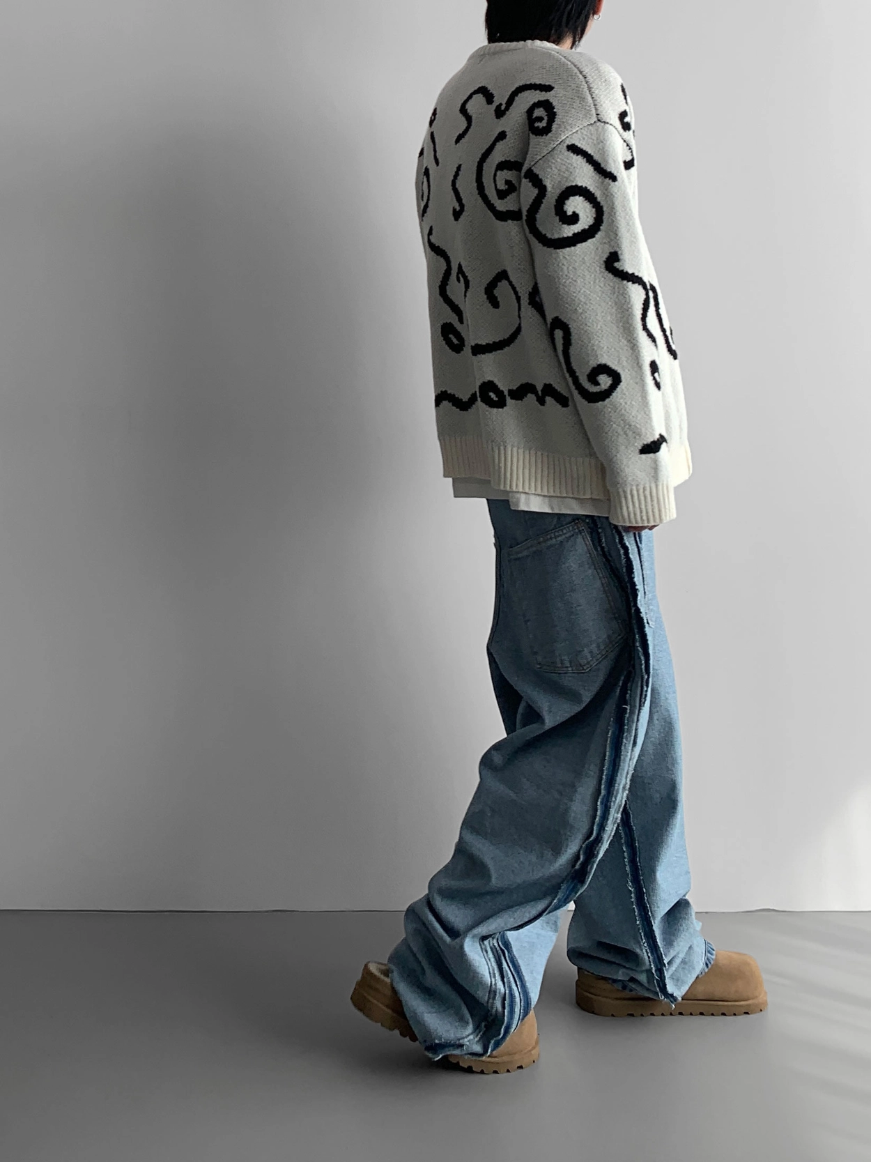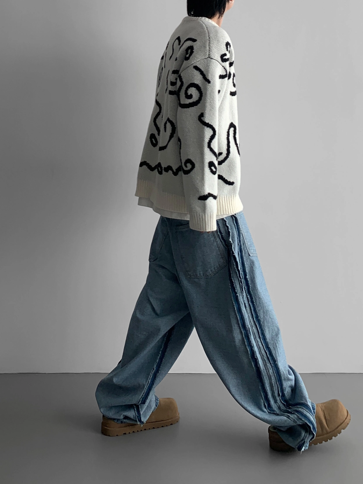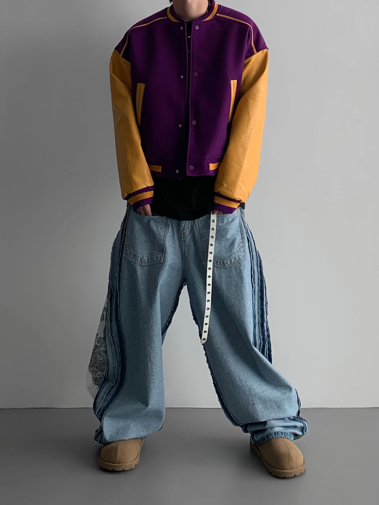 寬鬆的寬氣球輪廓搭配反向口袋設計強調性感,