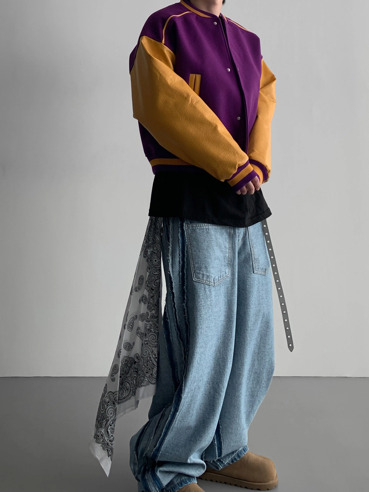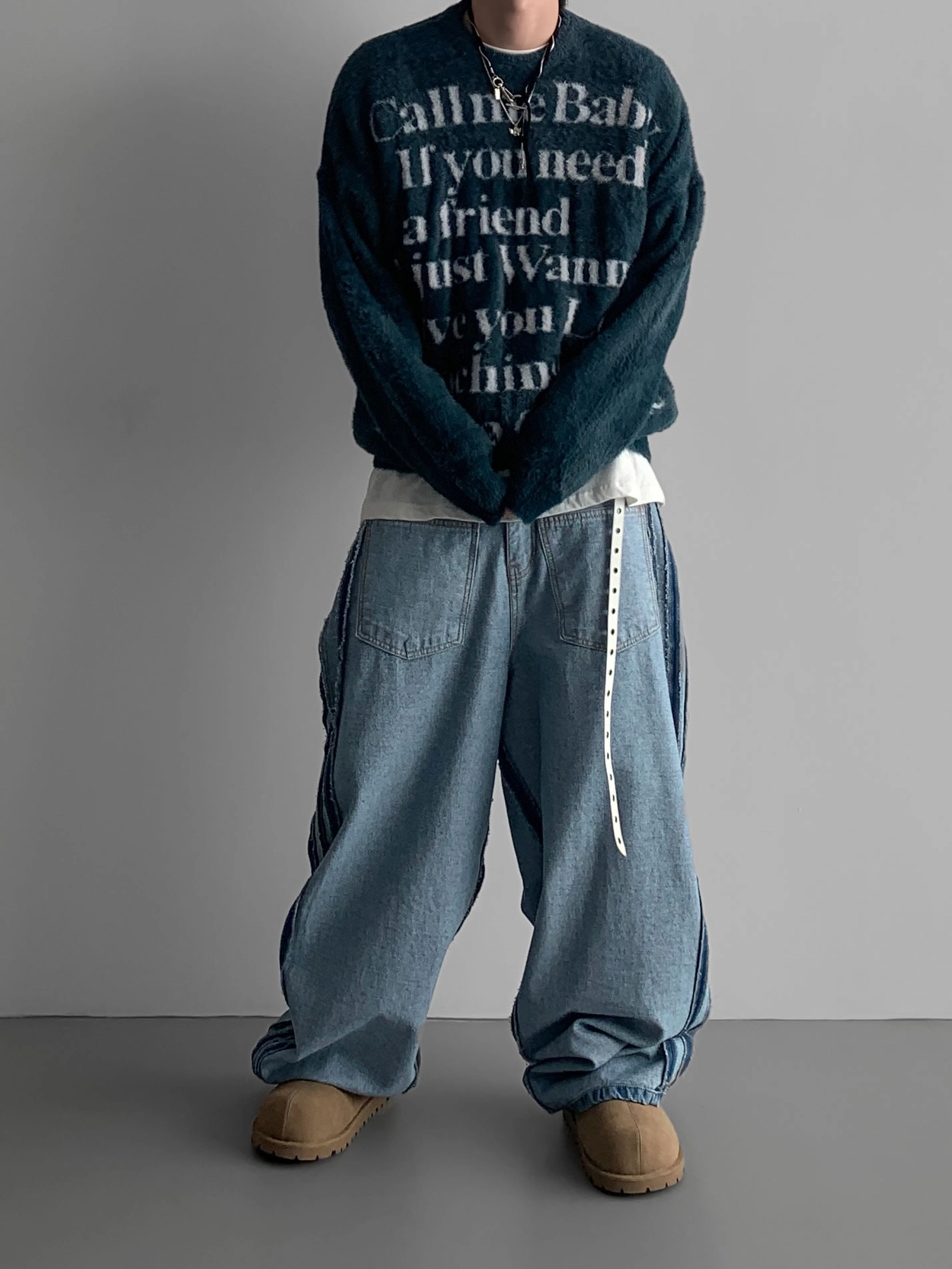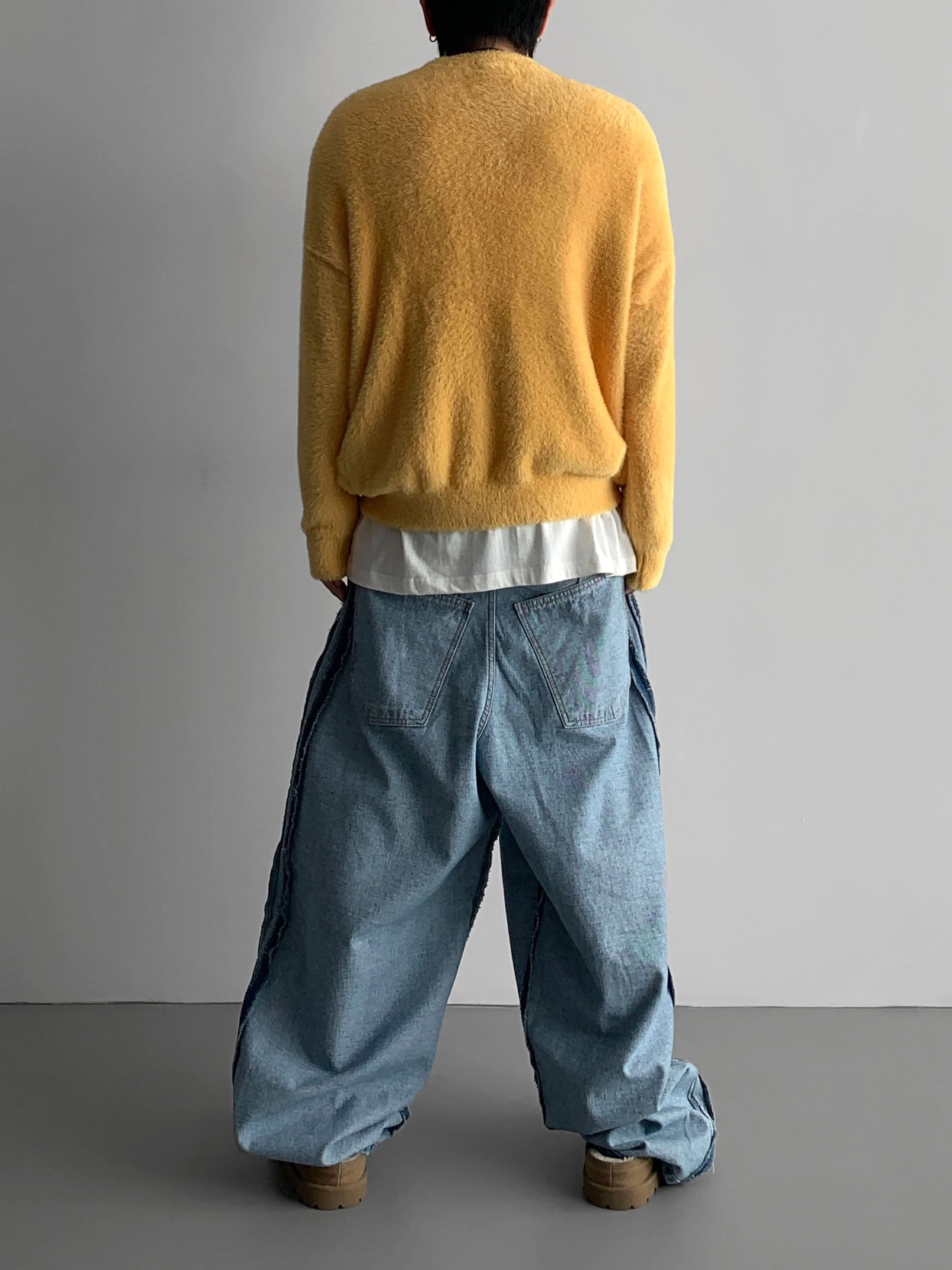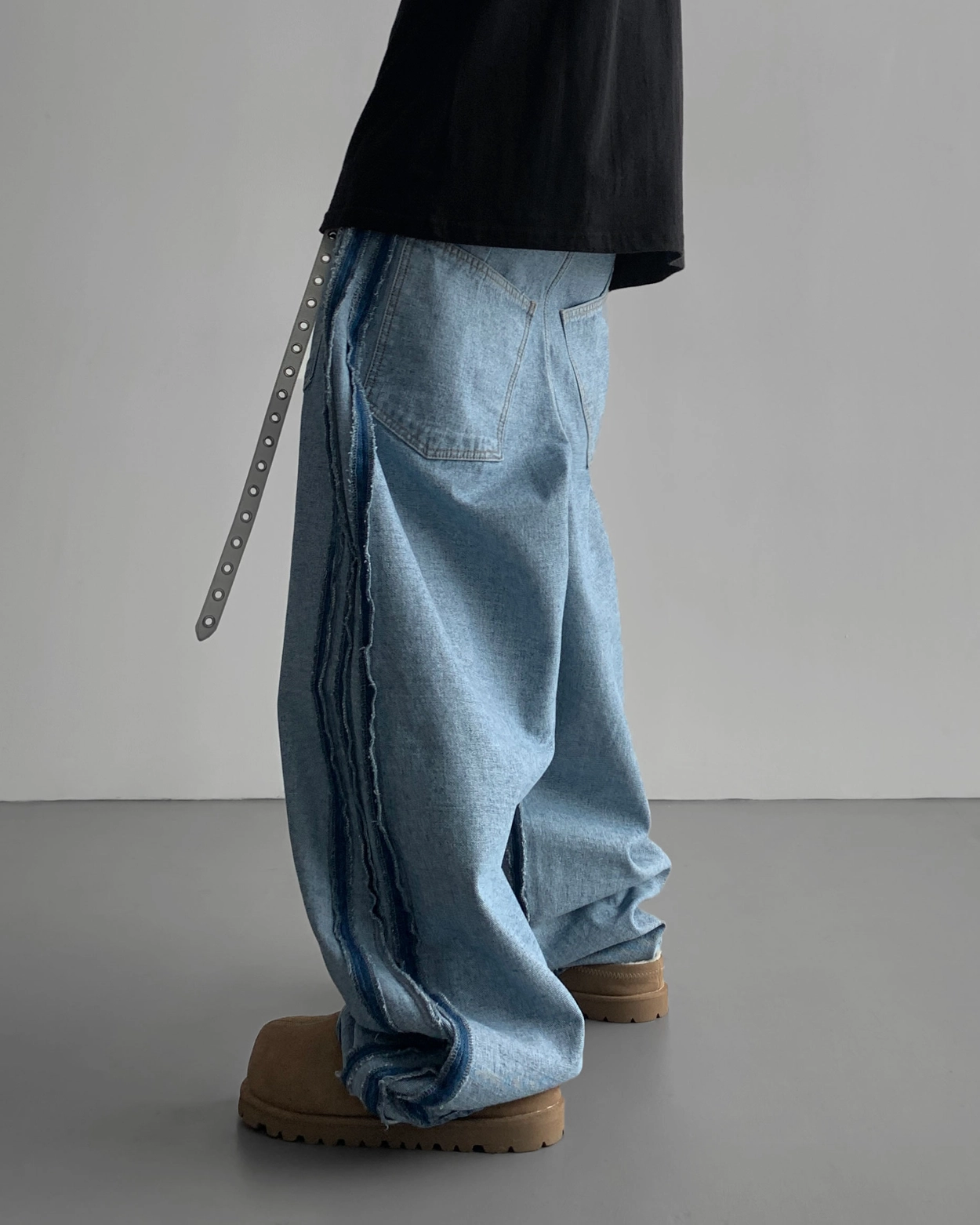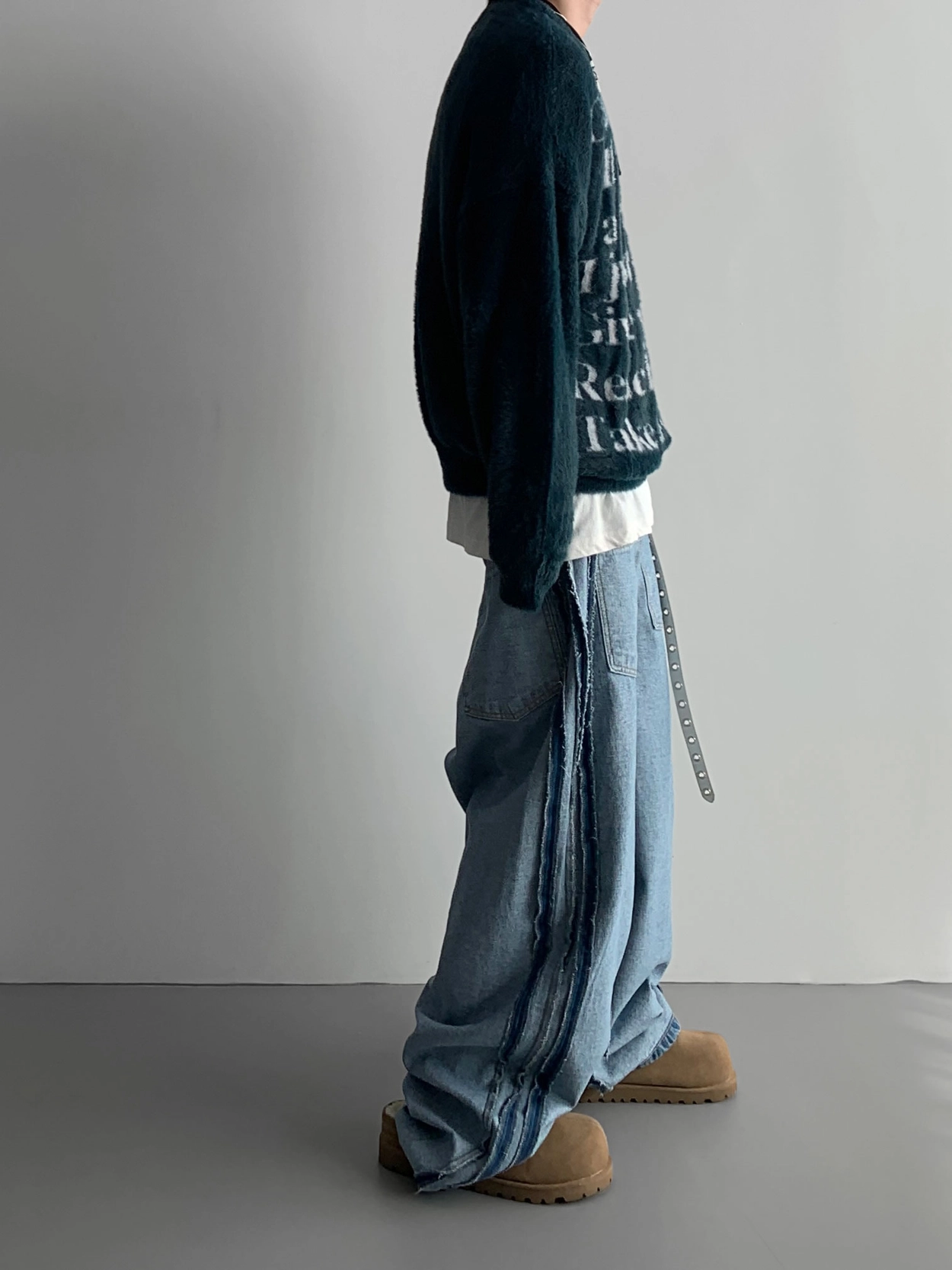 寬鬆的寬氣球輪廓搭配反向口袋設計強調性感,