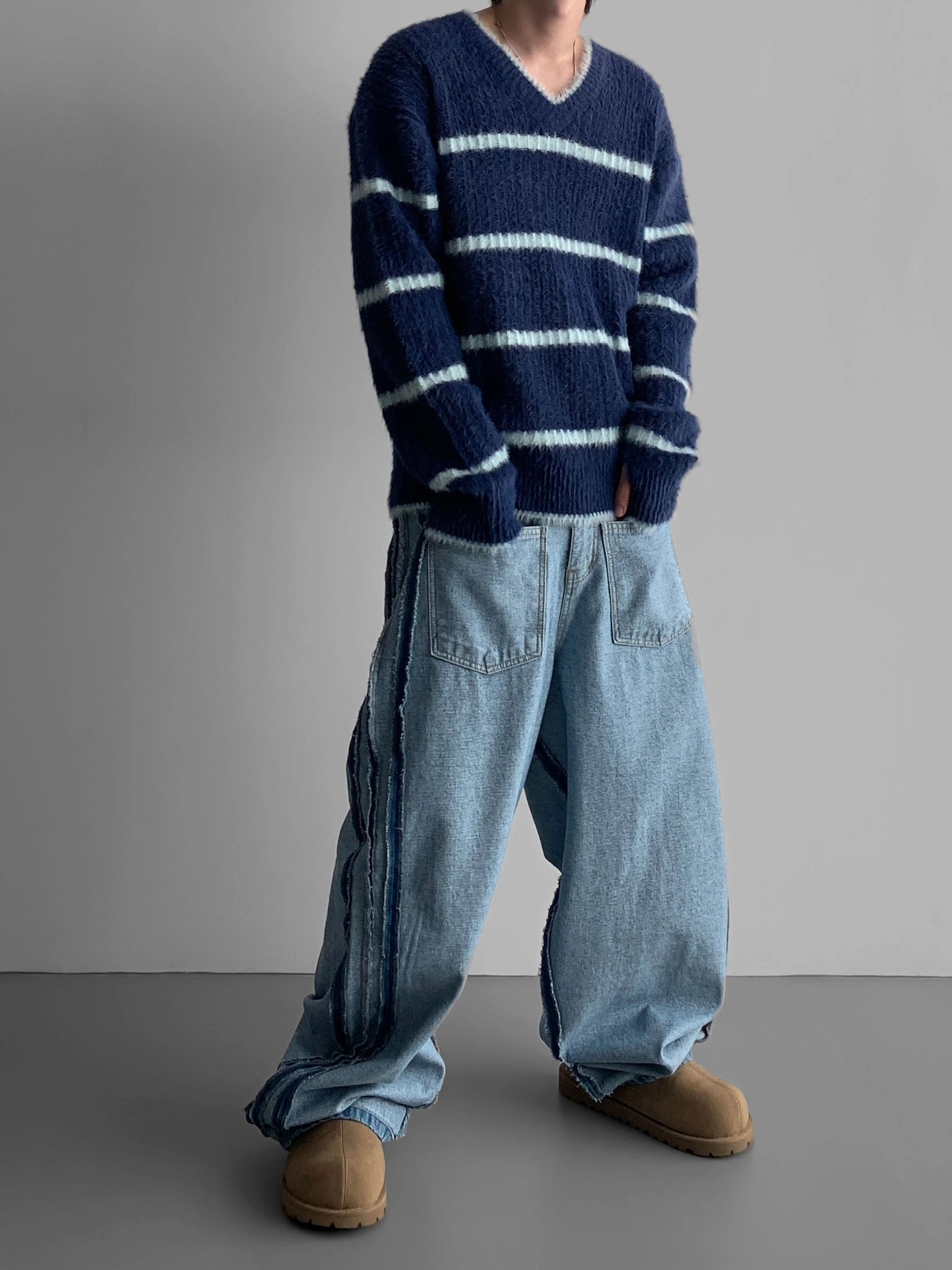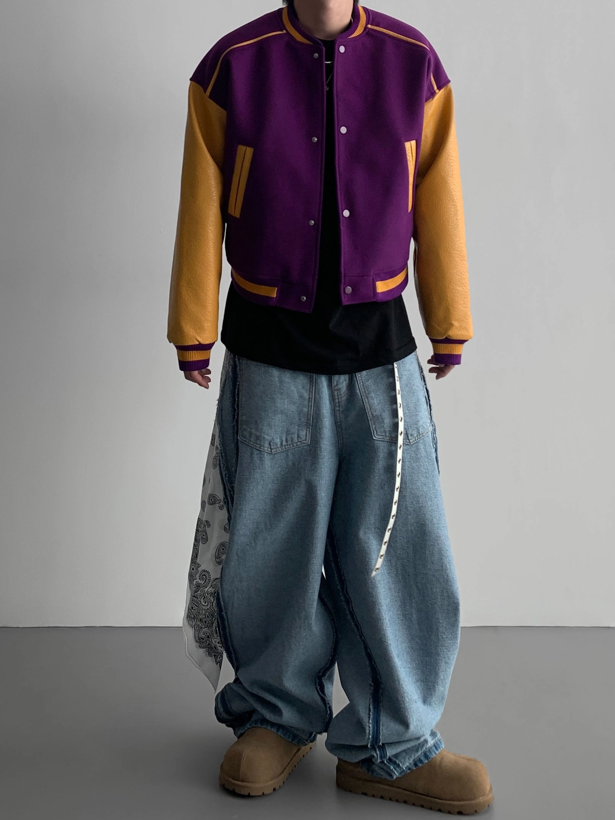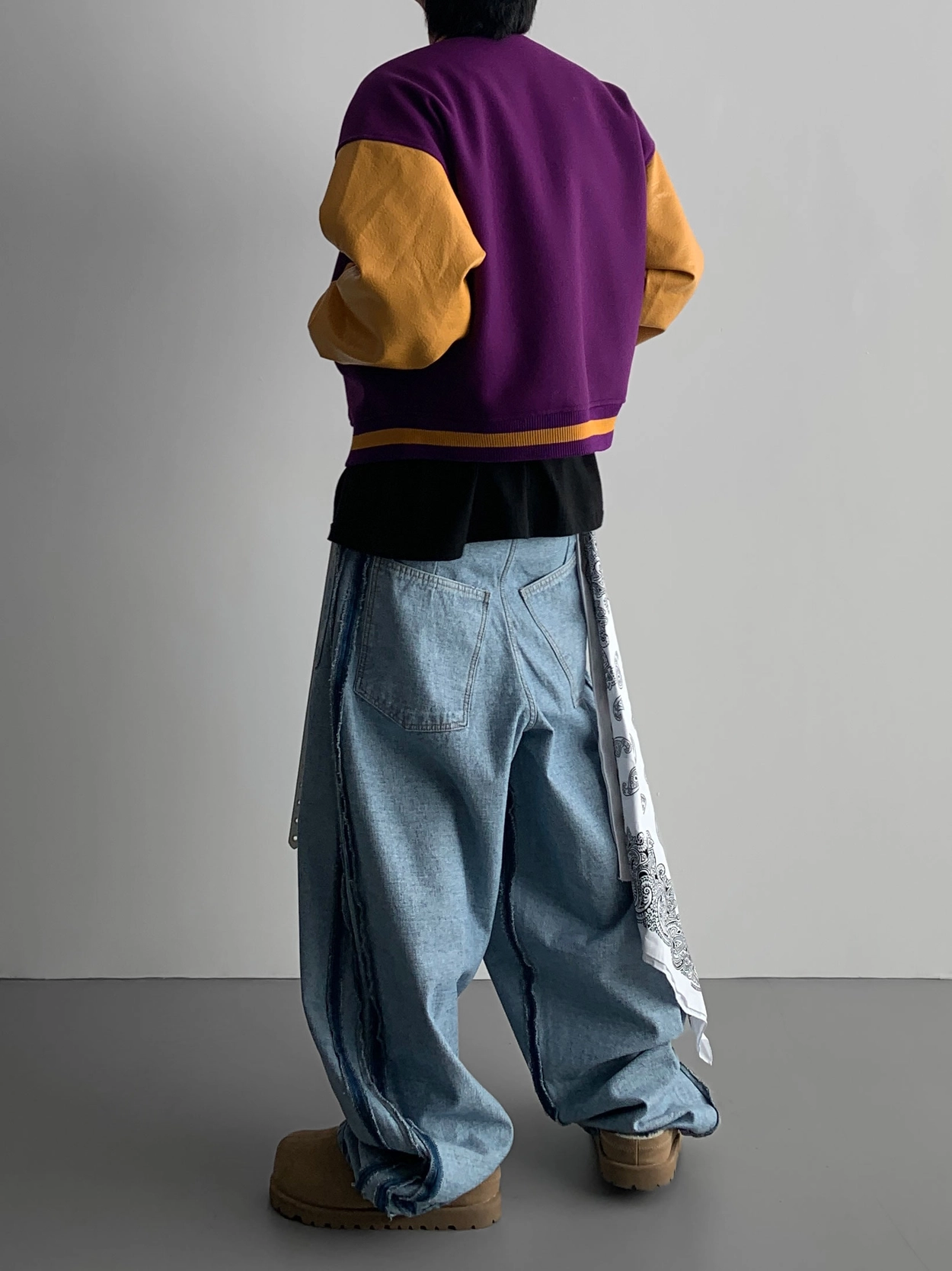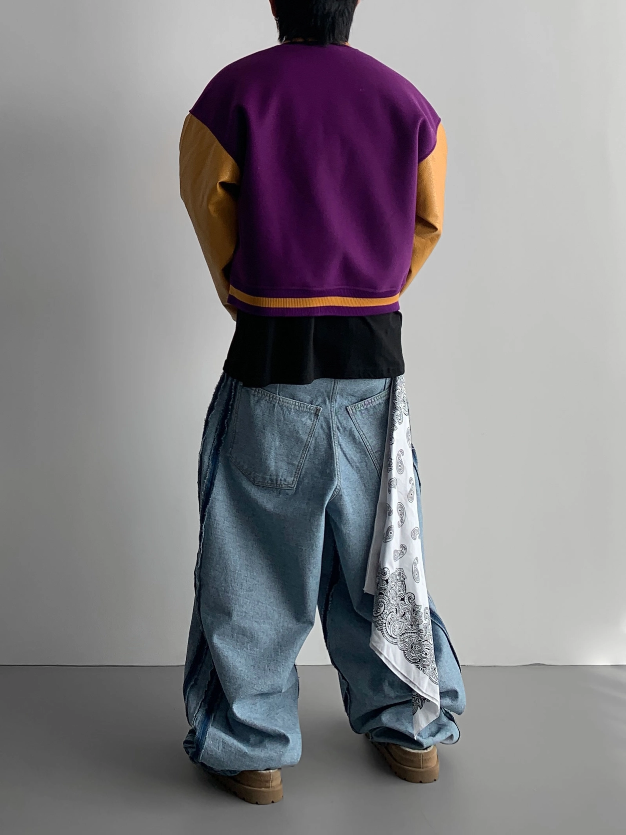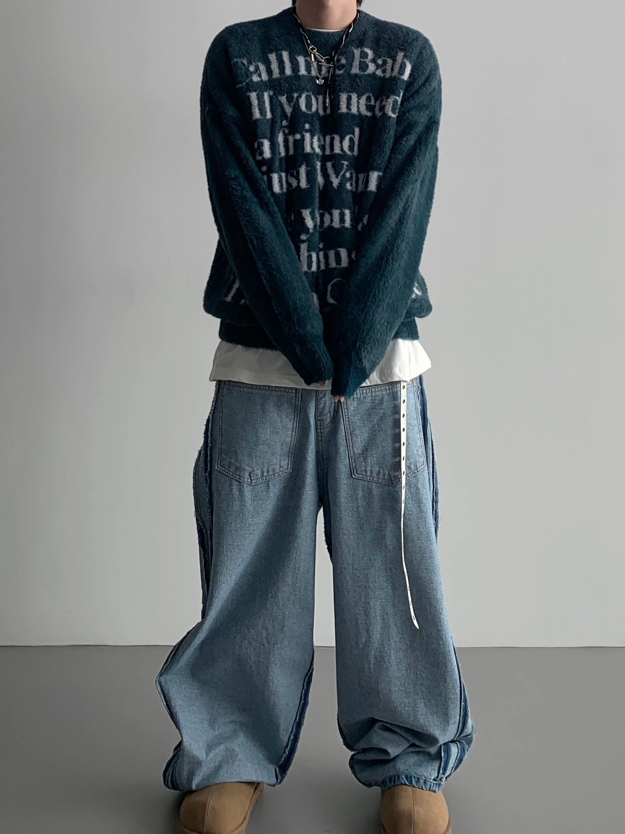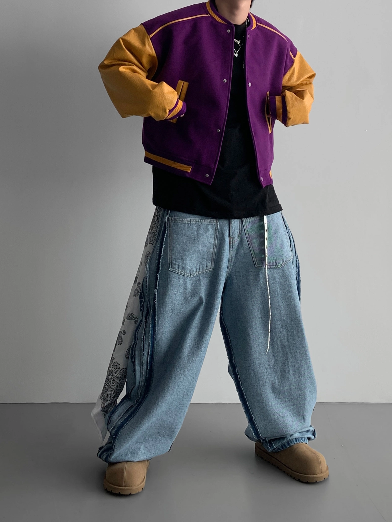 寬鬆的寬氣球輪廓搭配反向口袋設計強調性感,