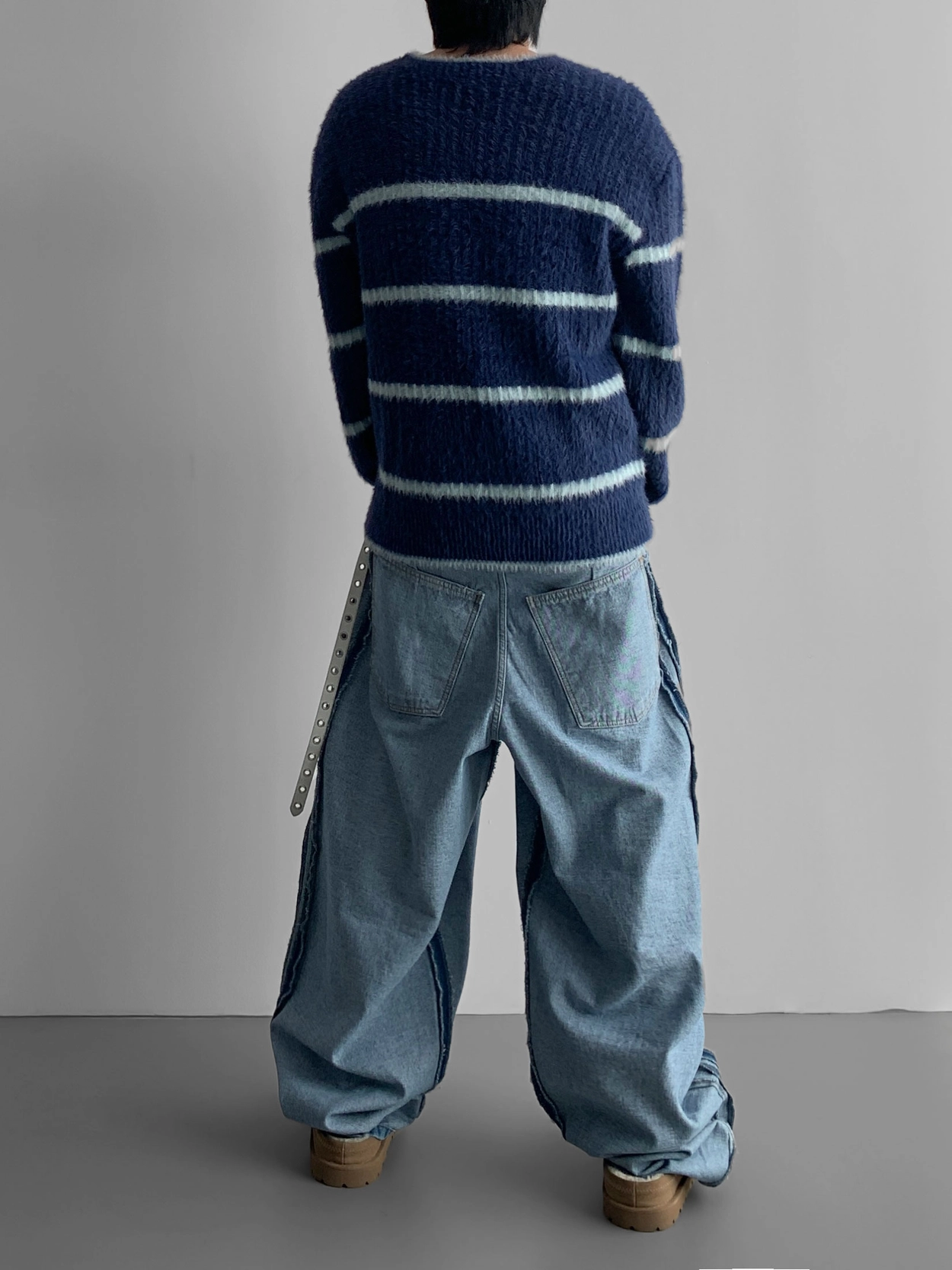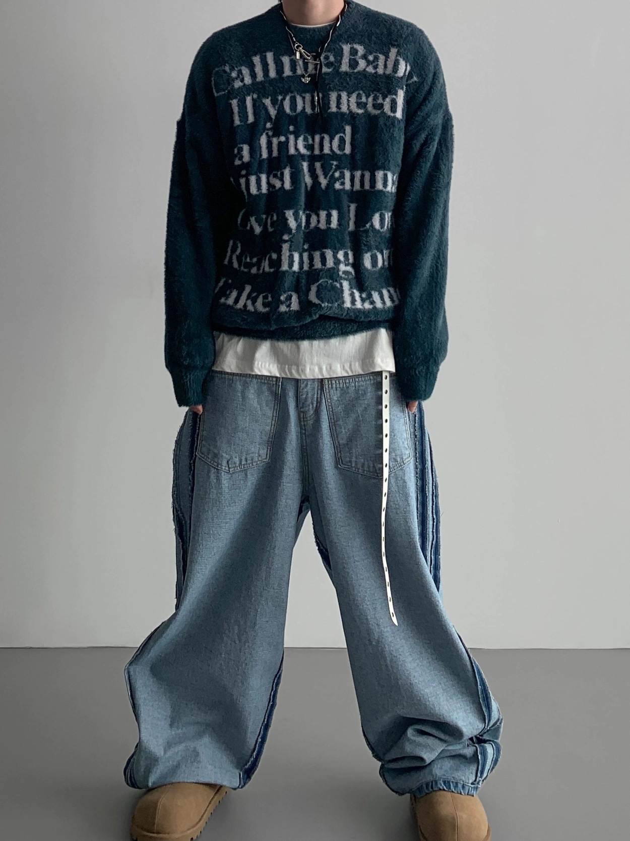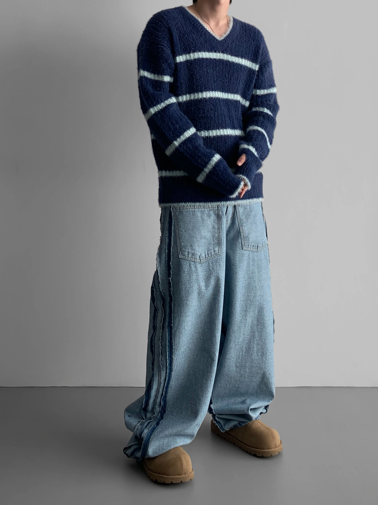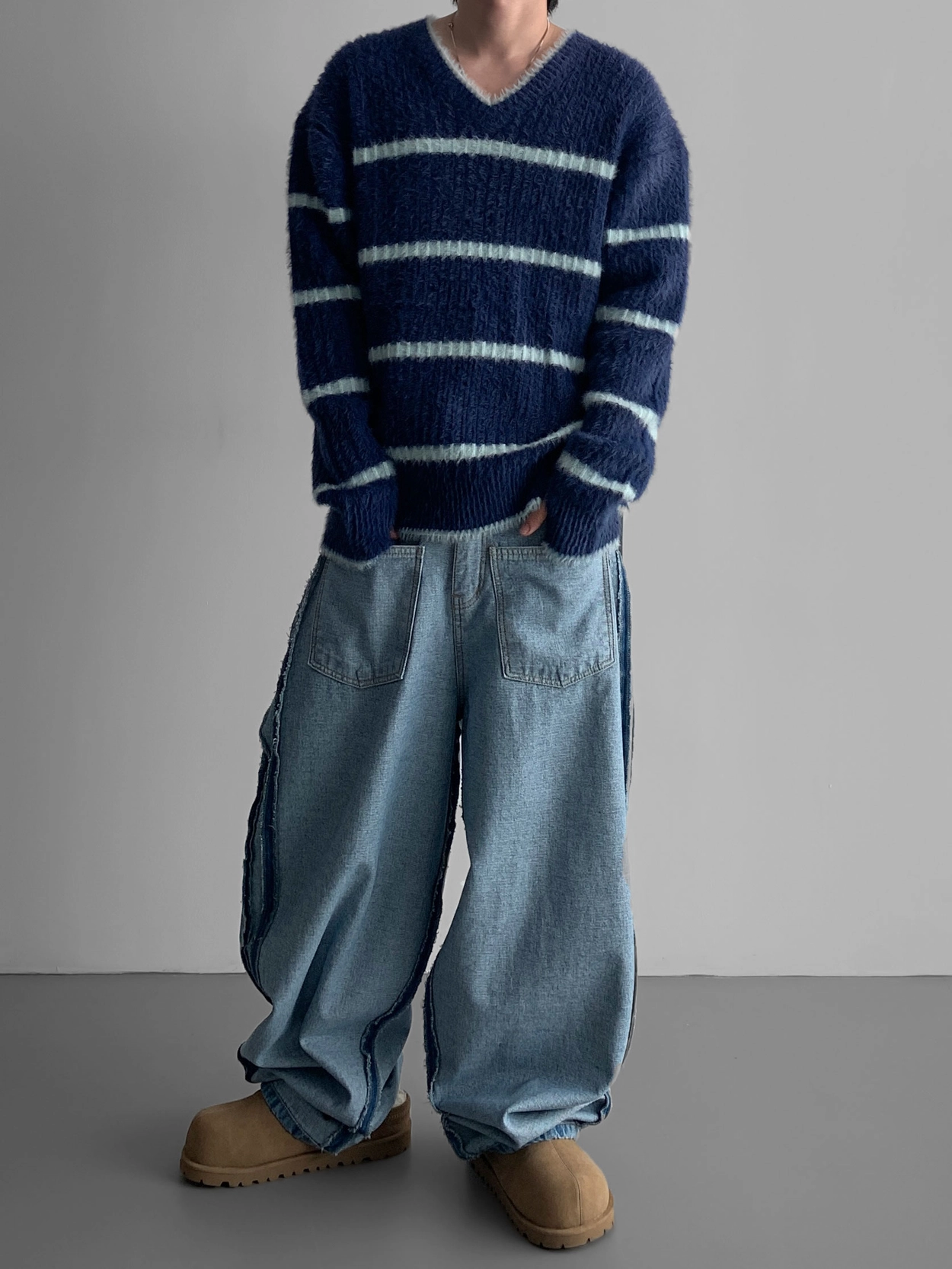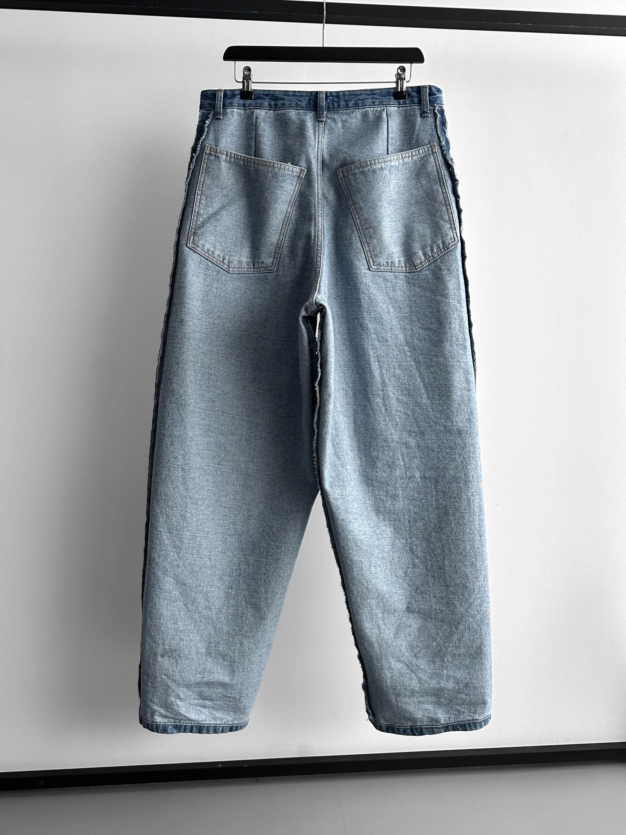 寬鬆的寬氣球輪廓搭配反向口袋設計強調性感,