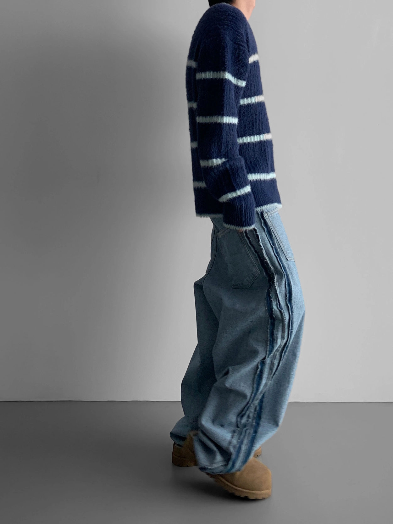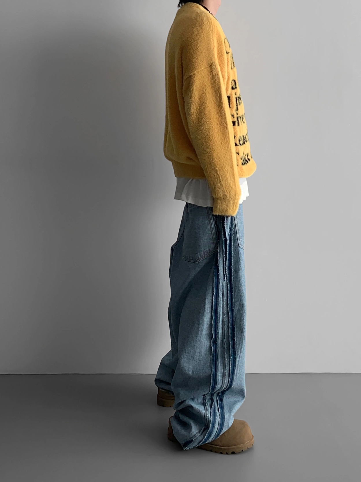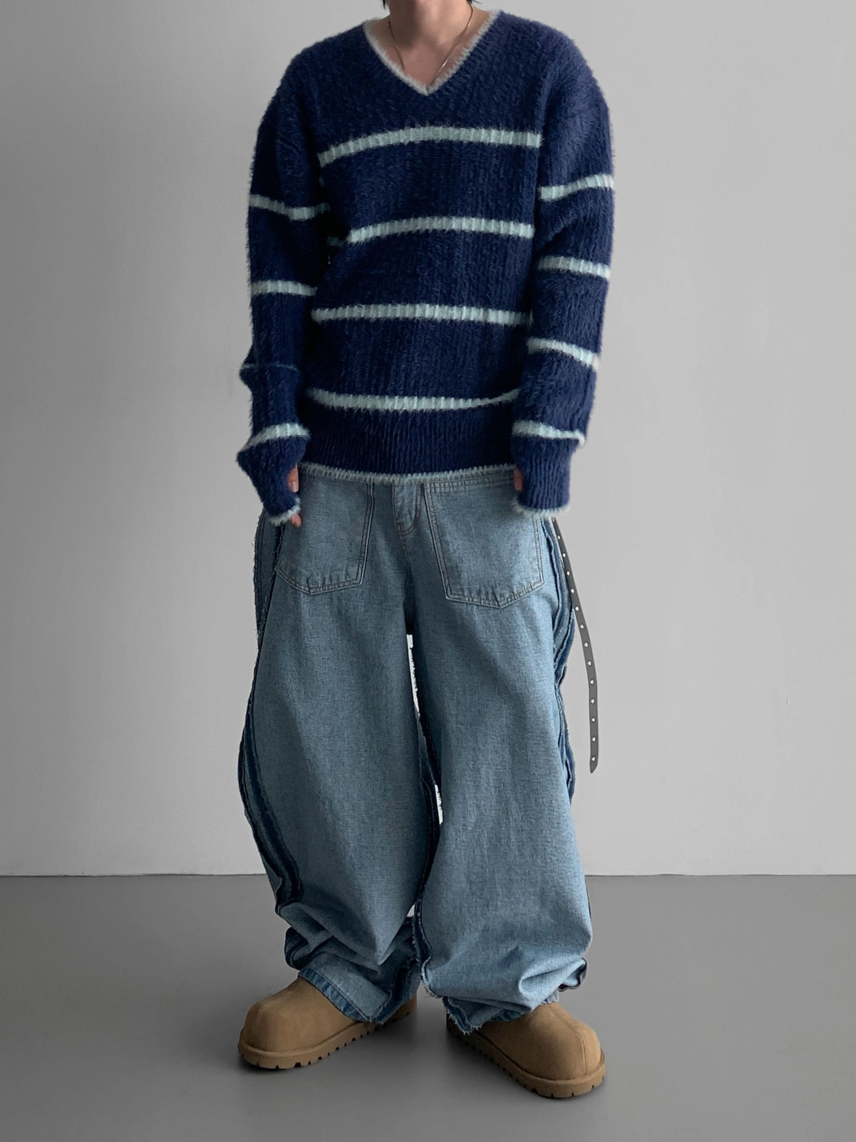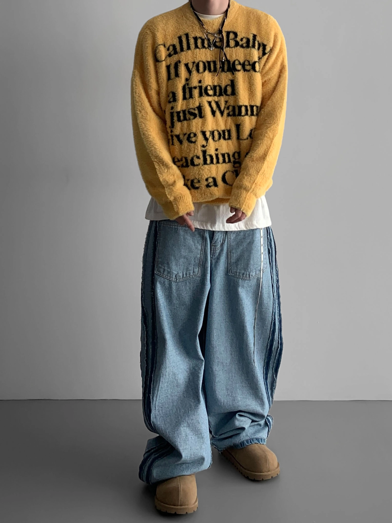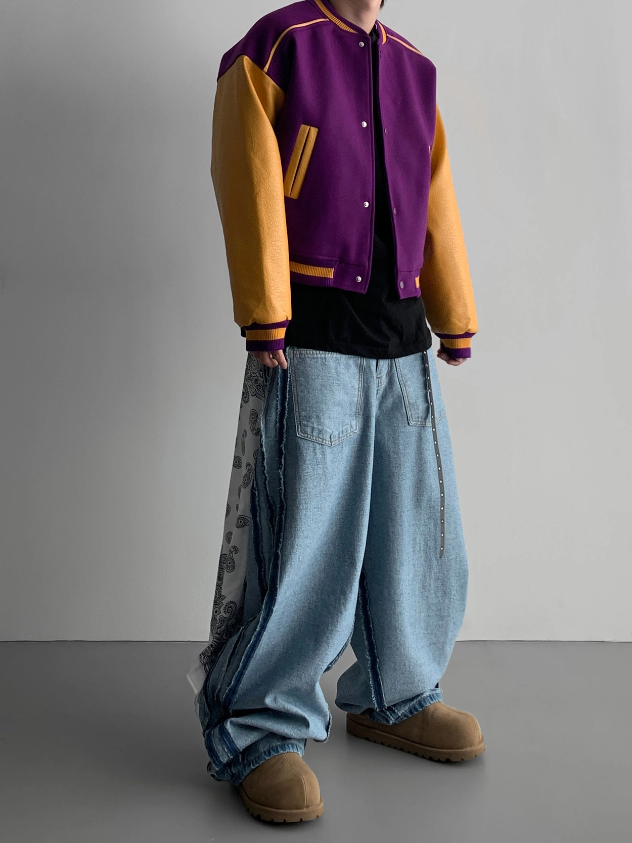 寬鬆的寬氣球輪廓搭配反向口袋設計強調性感,