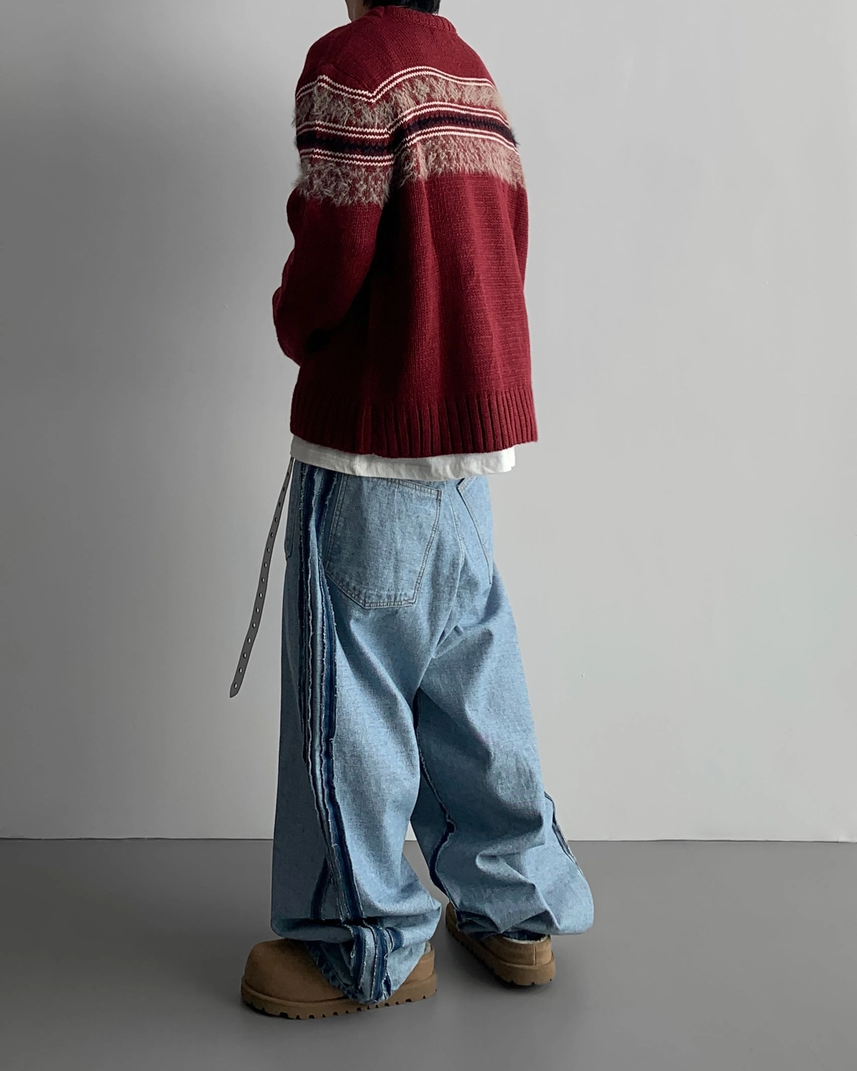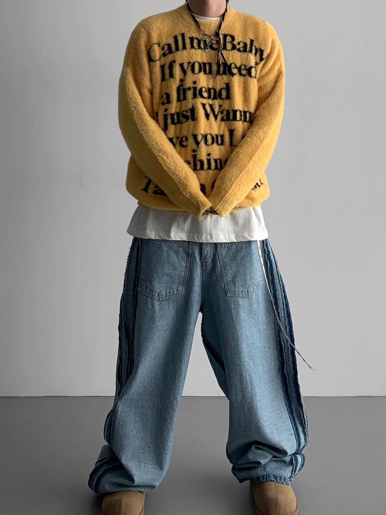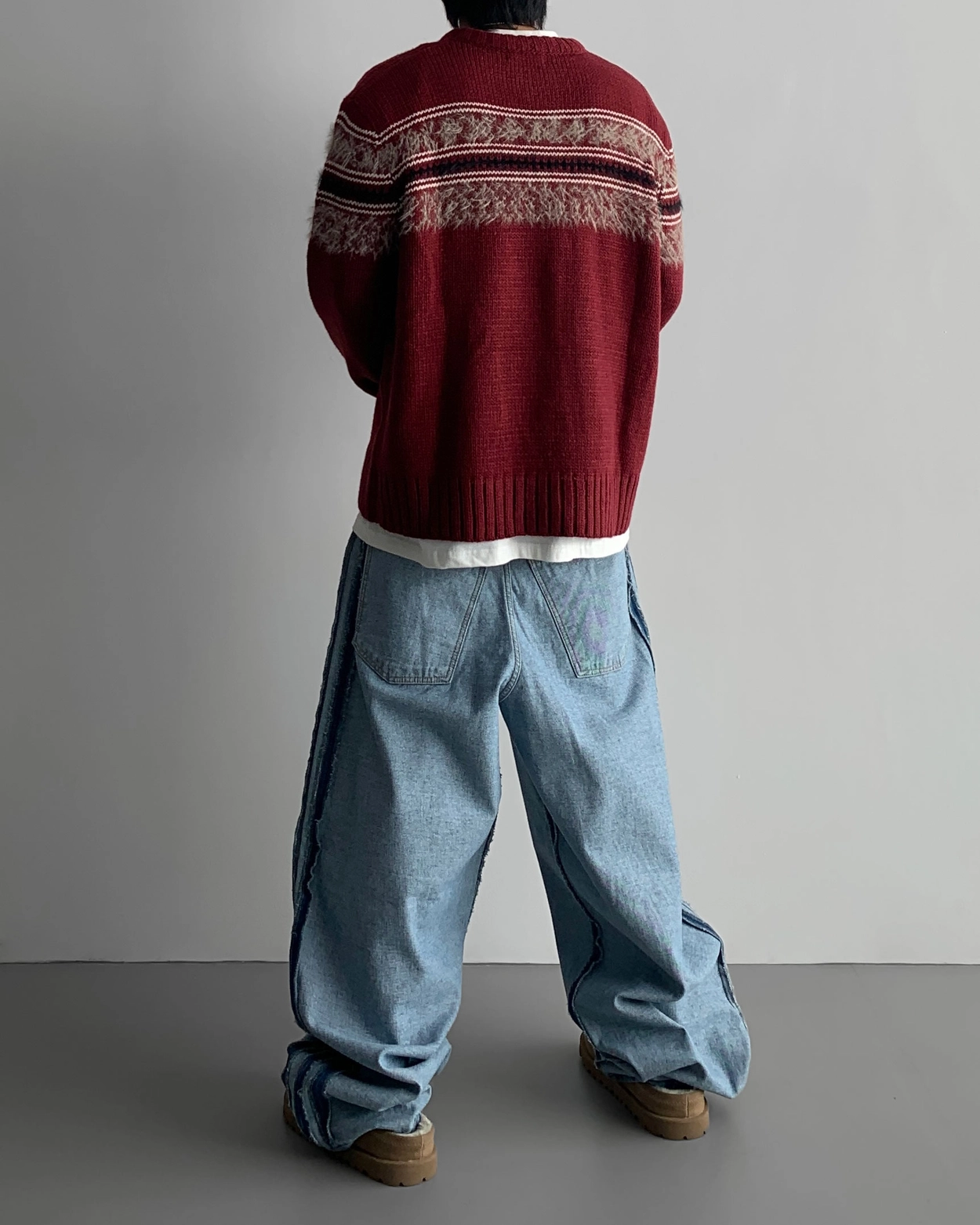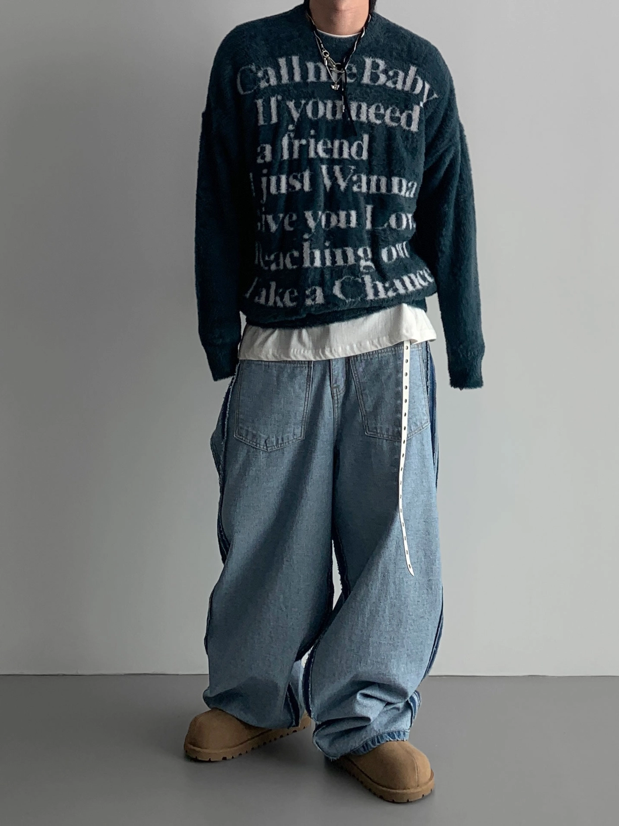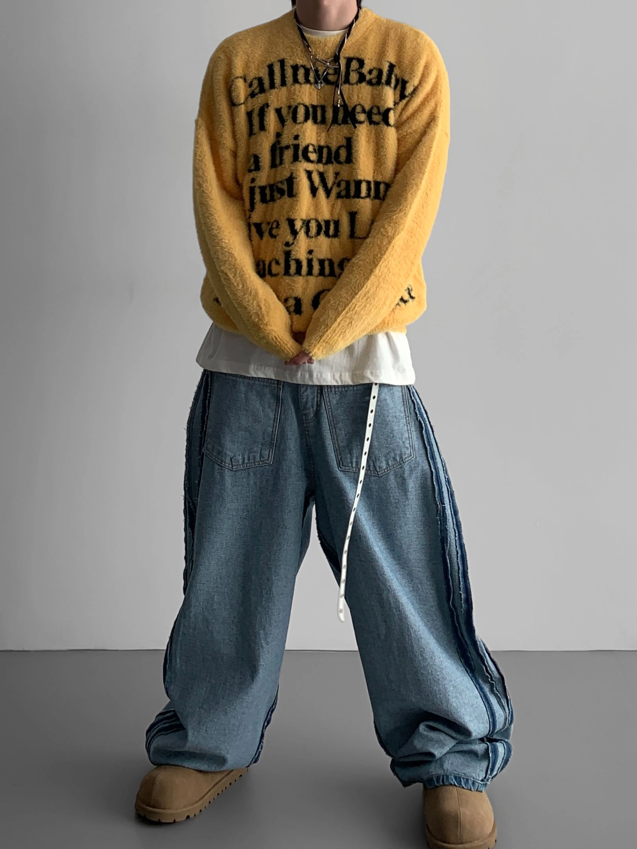 寬鬆的寬氣球輪廓搭配反向口袋設計強調性感,