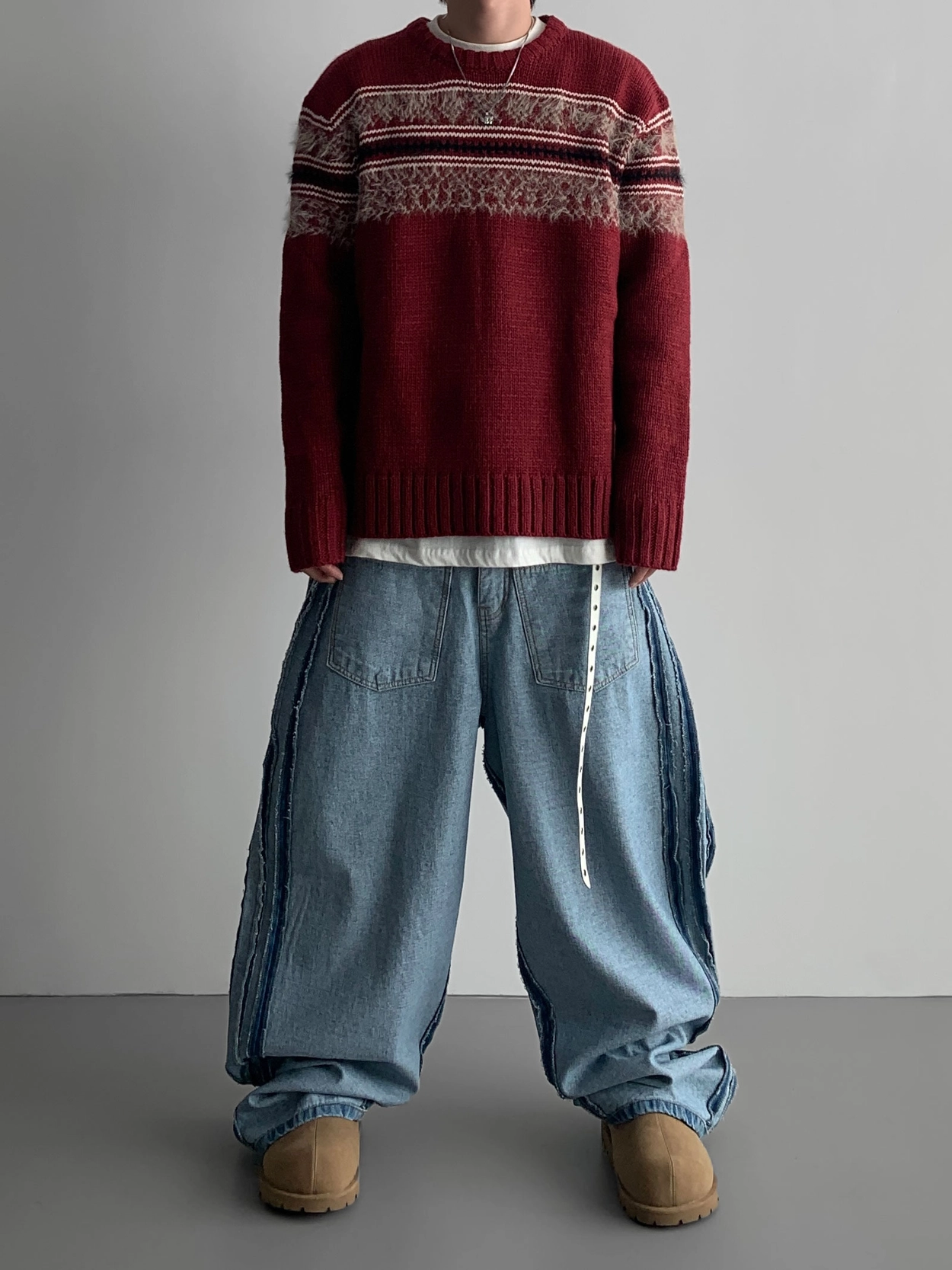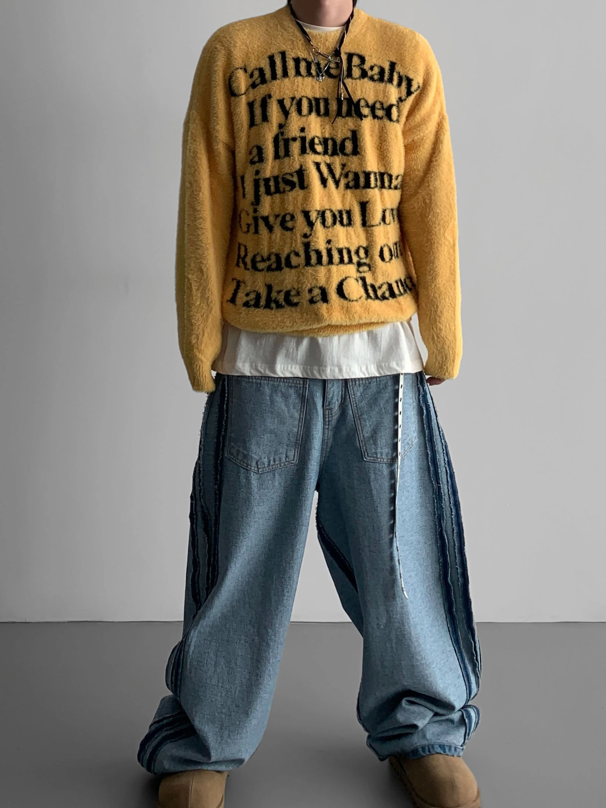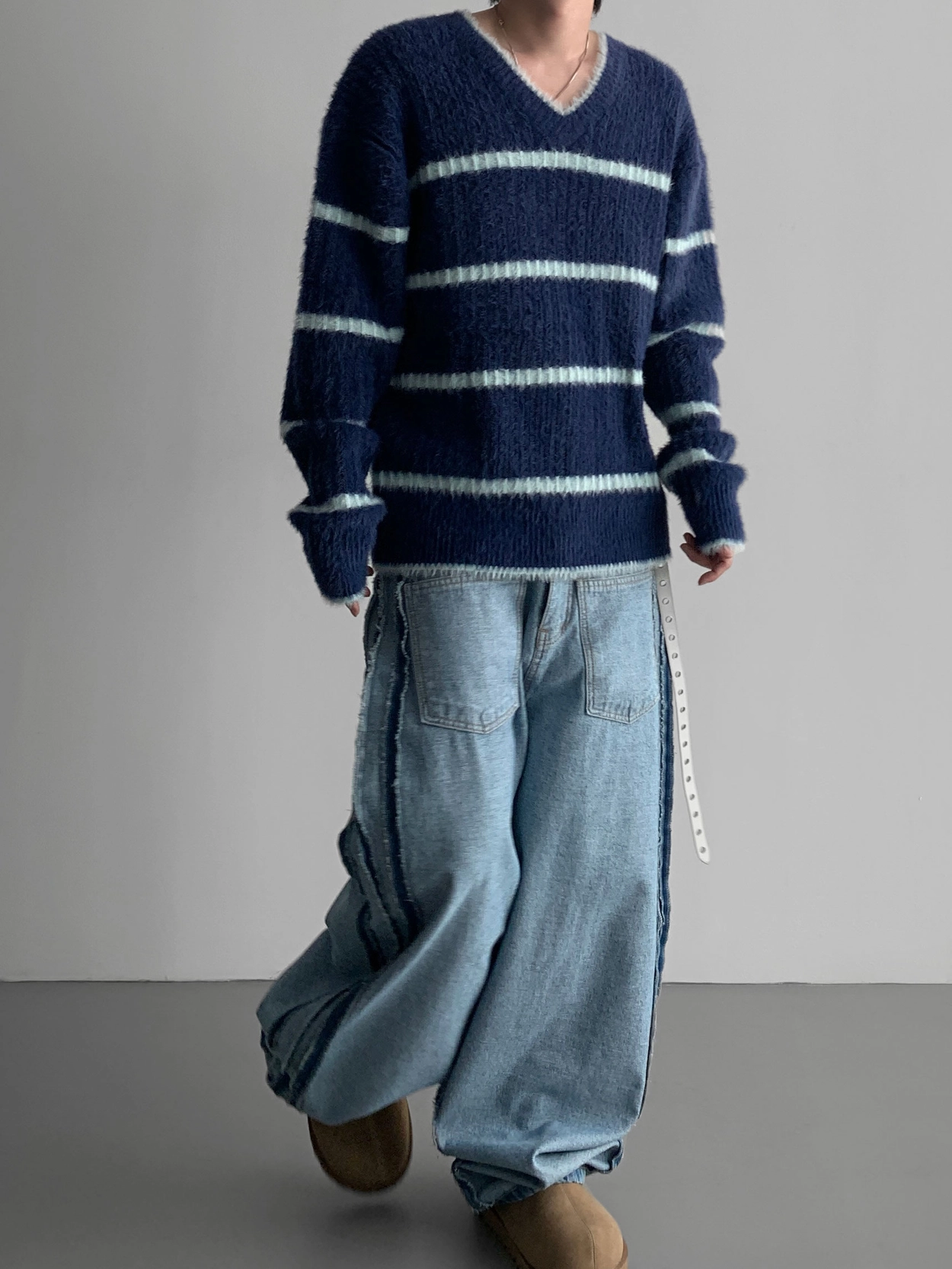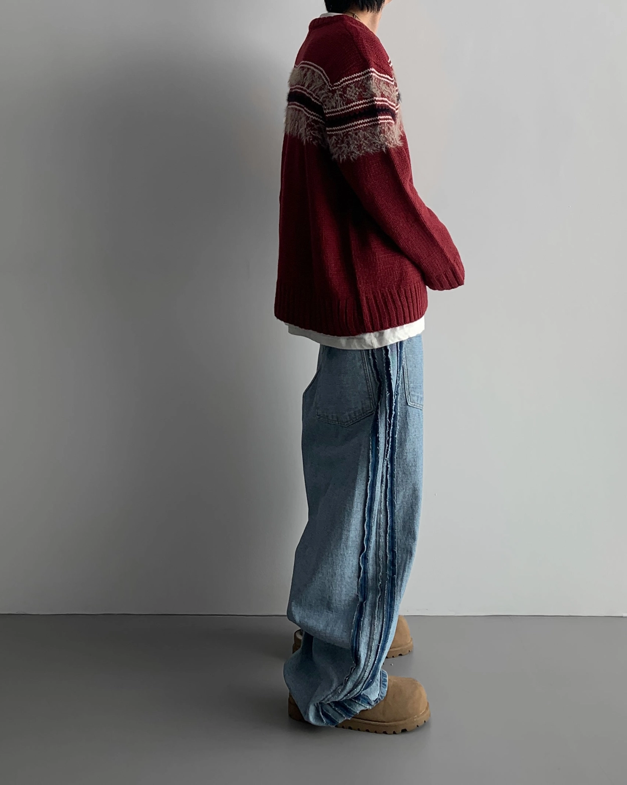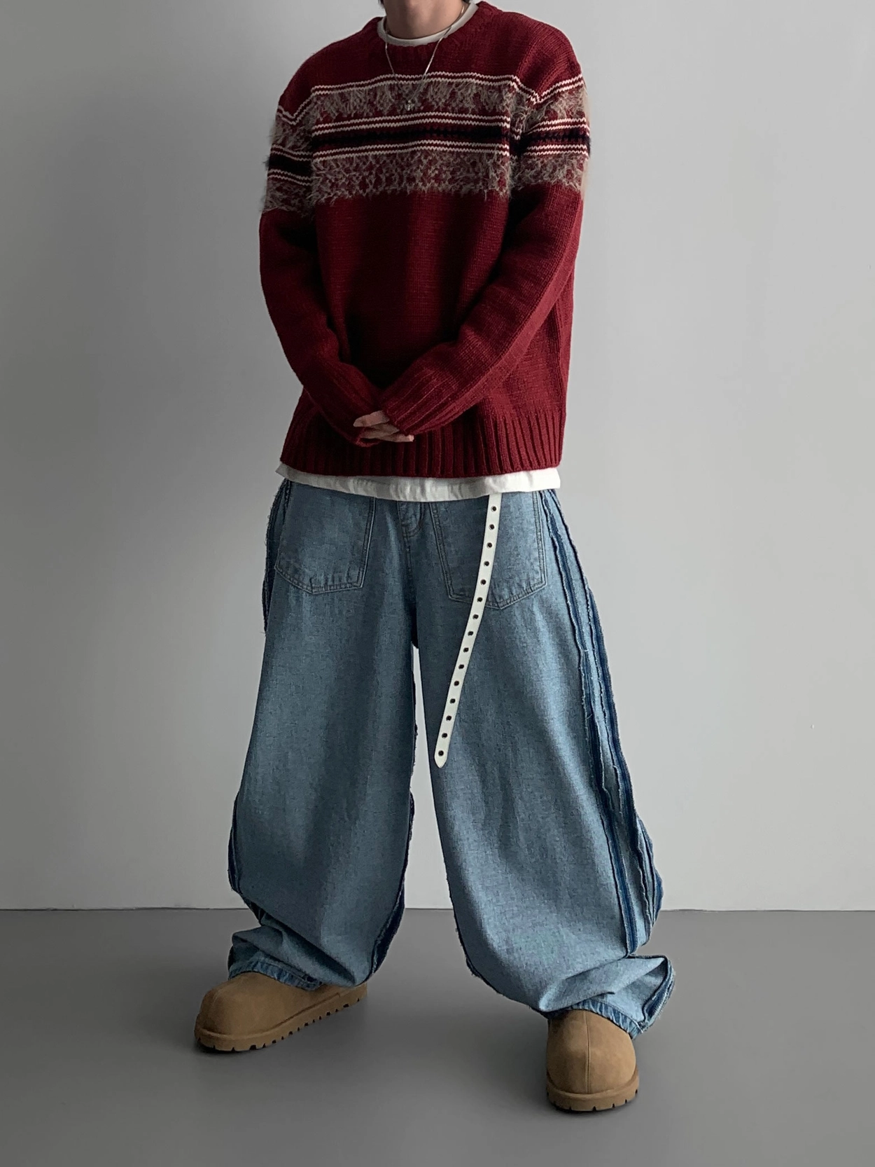 寬鬆的寬氣球輪廓搭配反向口袋設計強調性感,