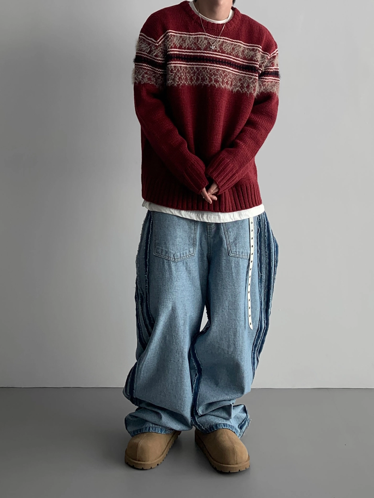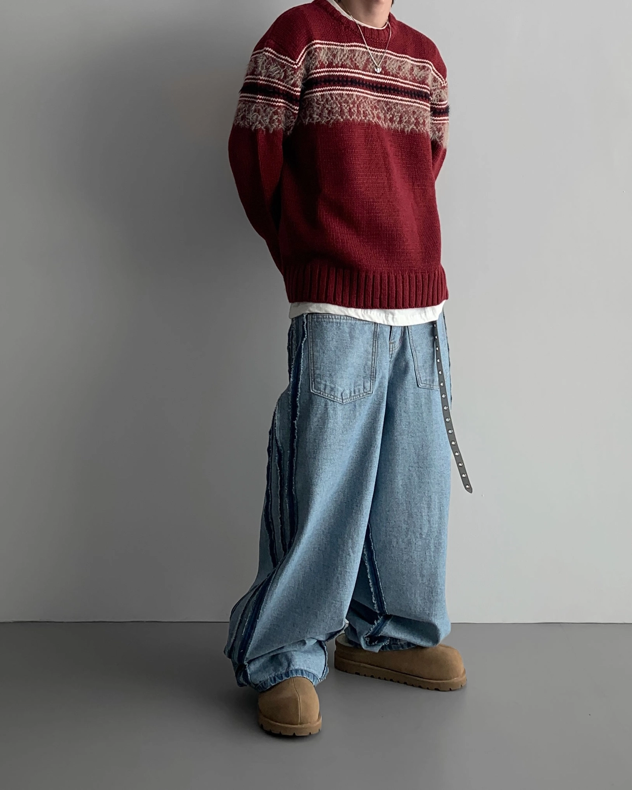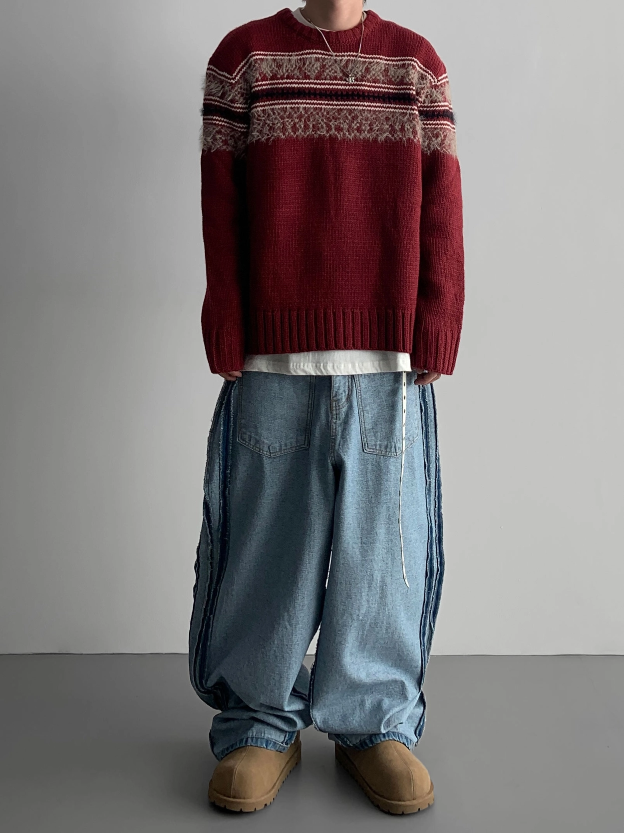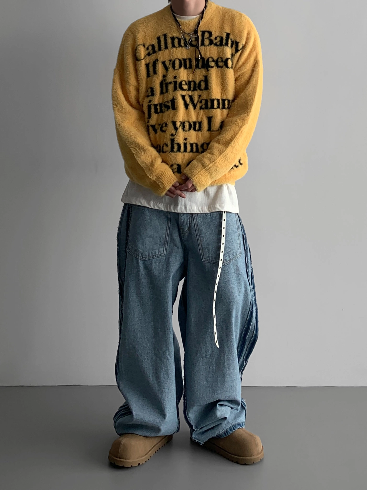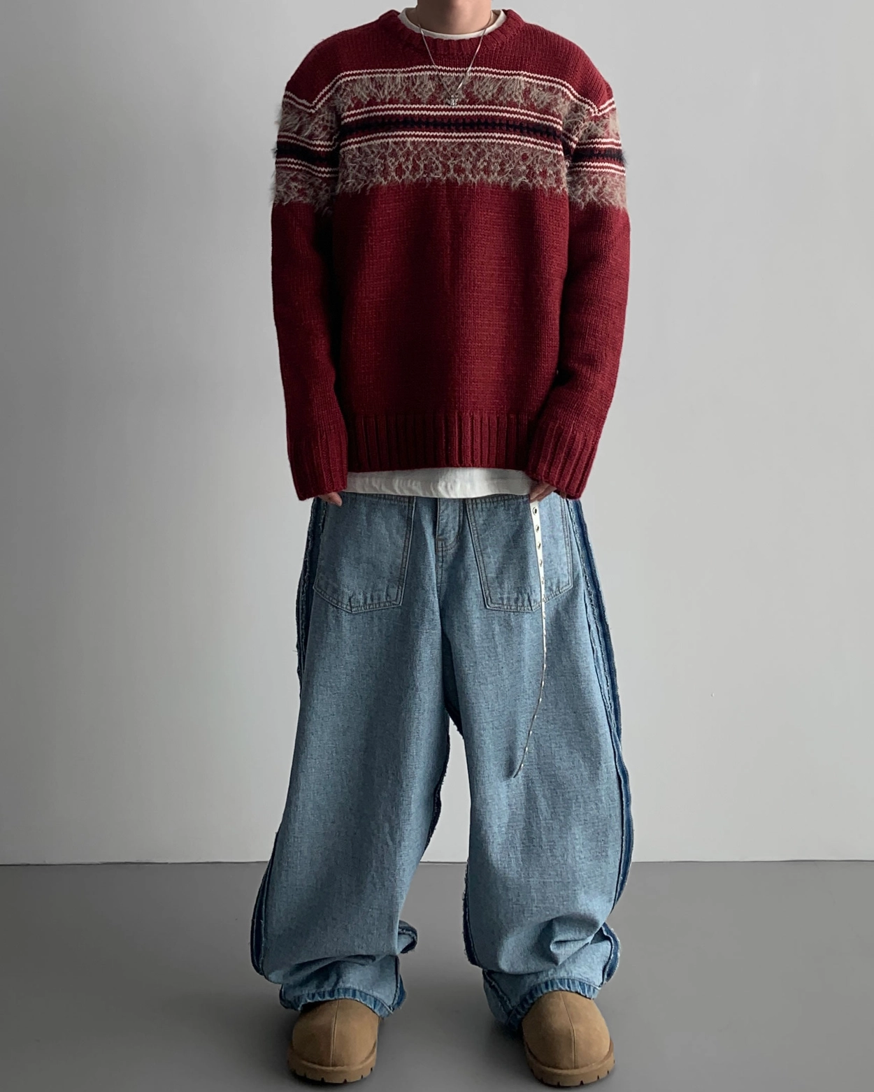 寬鬆的寬氣球輪廓搭配反向口袋設計強調性感,