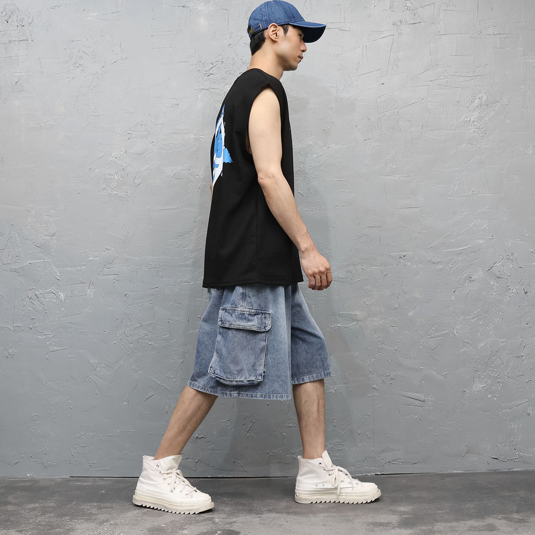 這是一款背心,將街頭風格的圖案與時尚寬鬆的版型相結合,打造出一件無論走到哪裡都能閃耀的時尚單品。