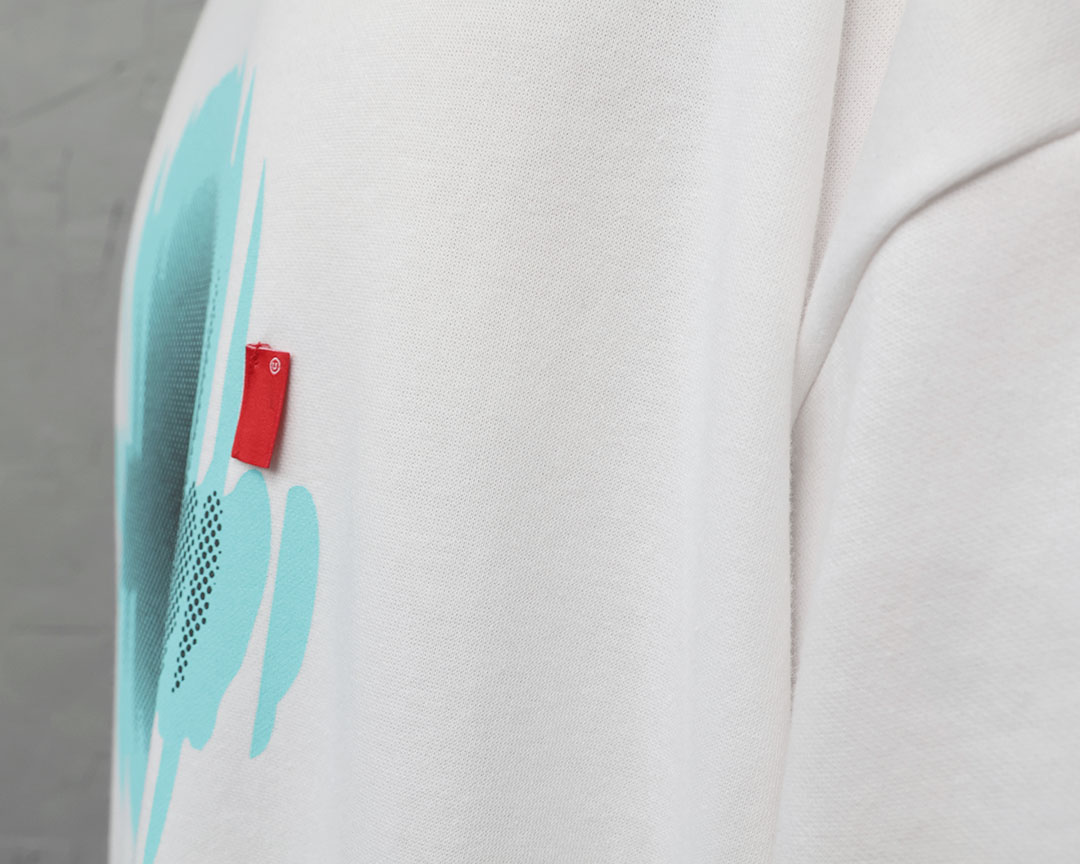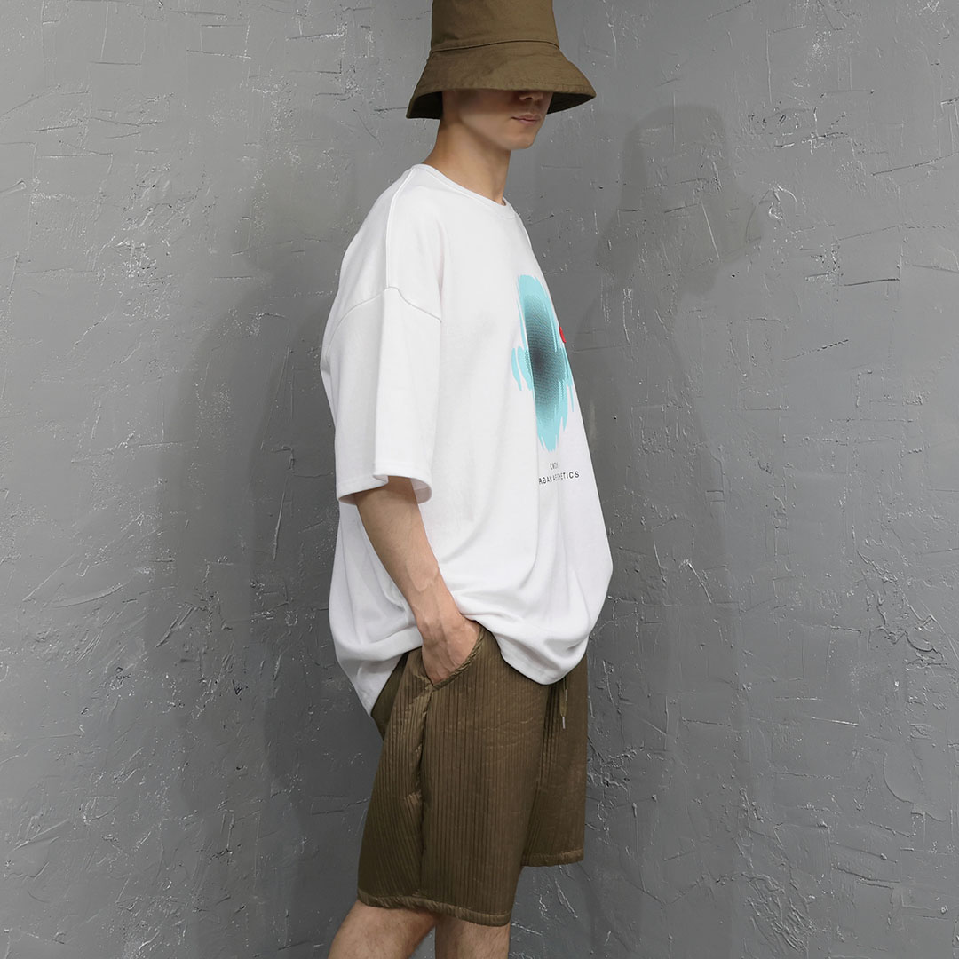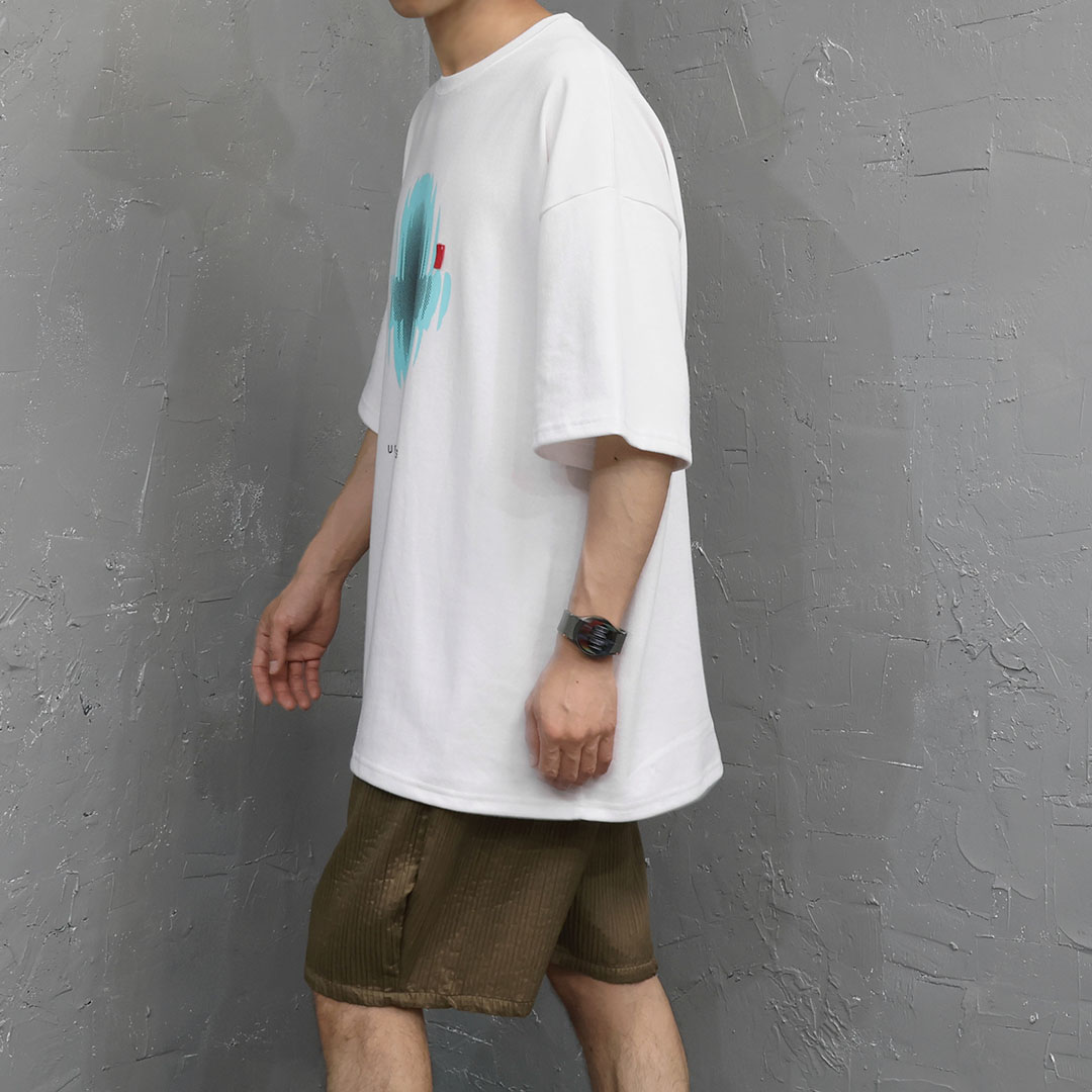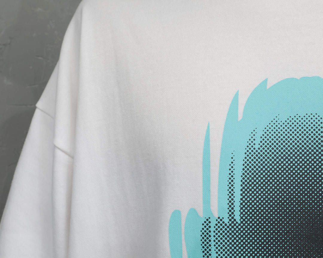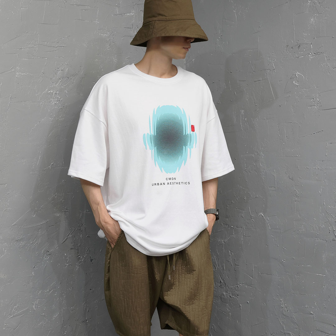 這件商品透過未來主義的插圖印花營造出一種超越簡單 T 恤的氛圍。