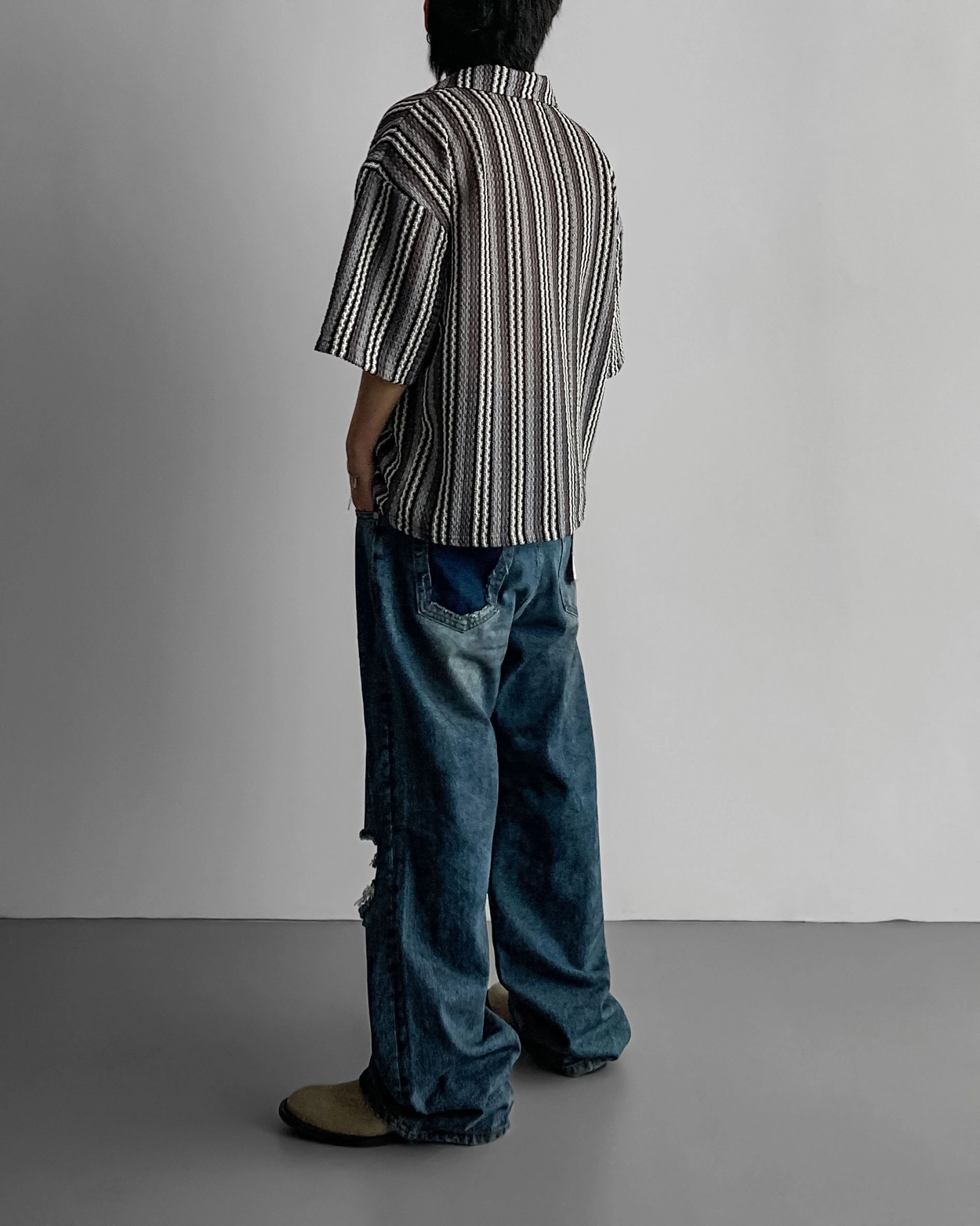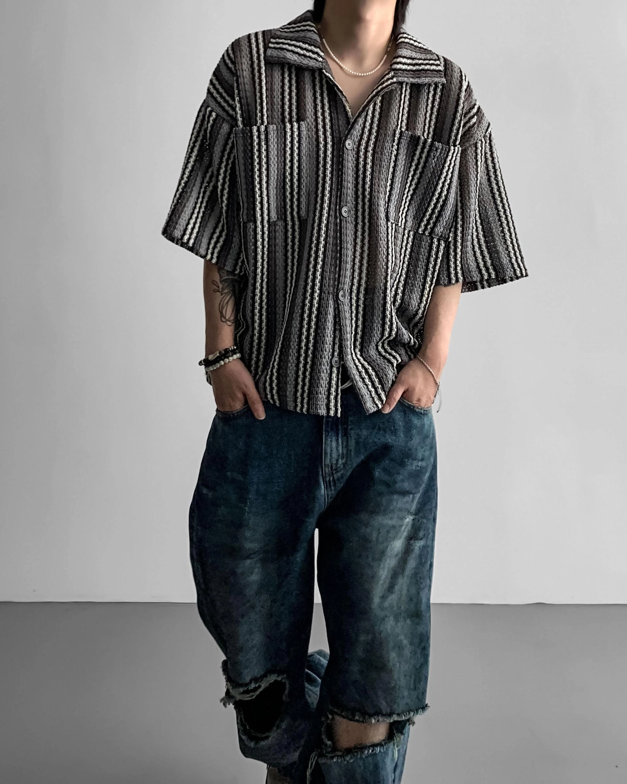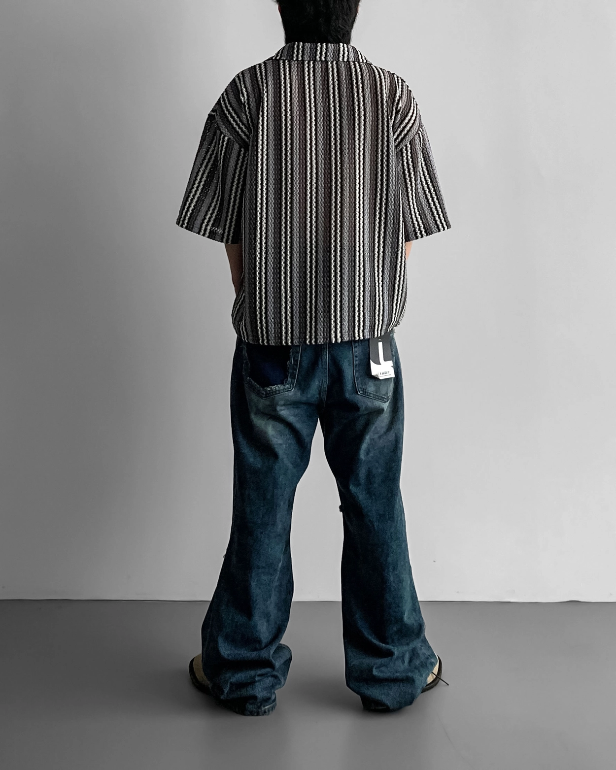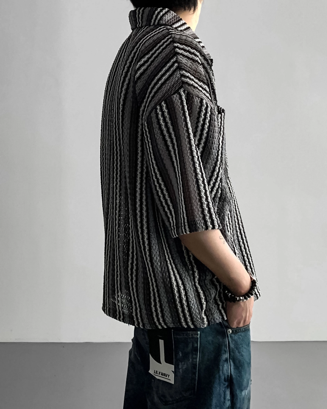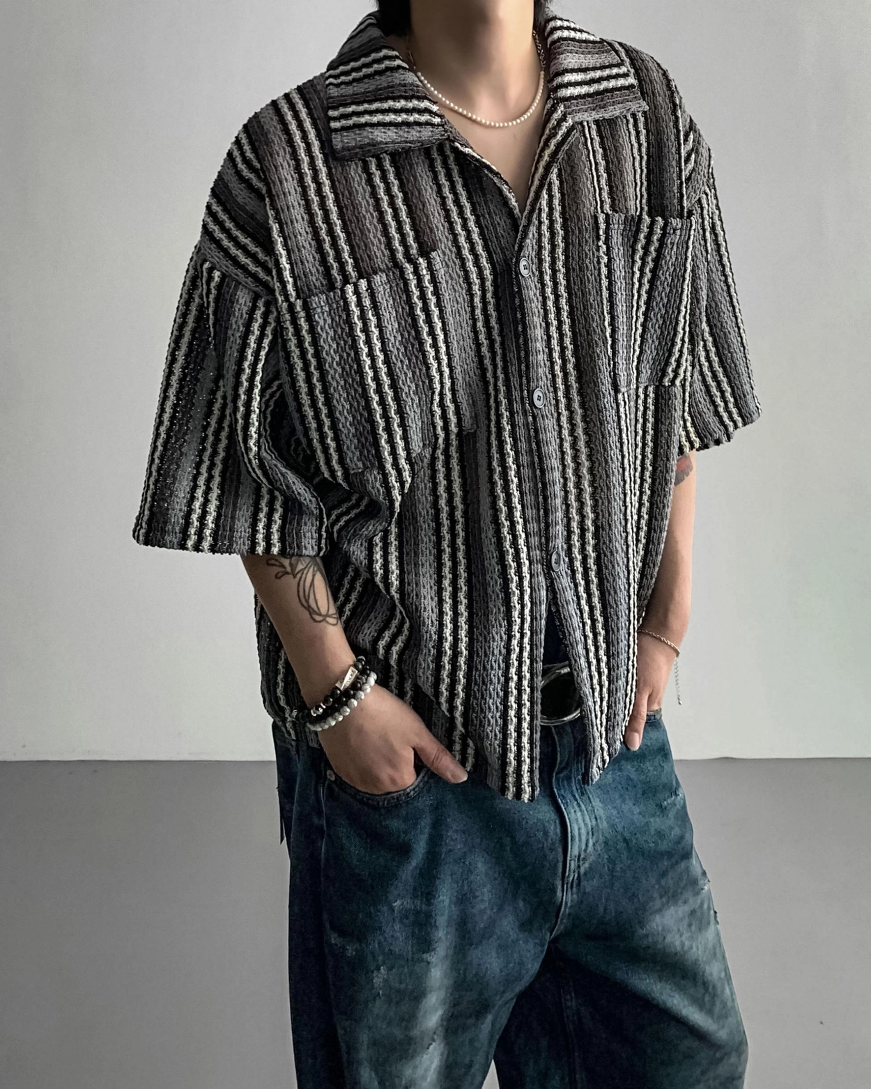 - 這是一件由棉質布料製成的條紋襯衫,穿著舒適,本身就可以成為焦點。