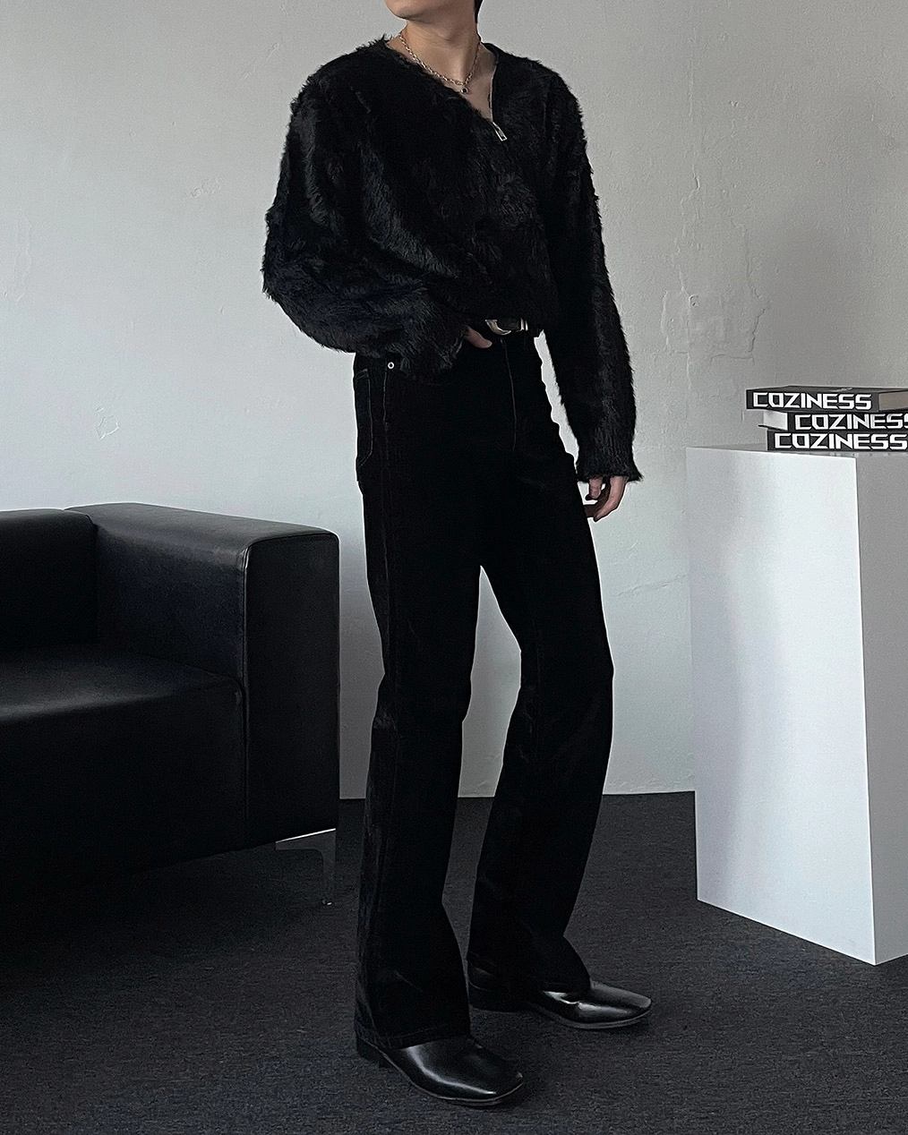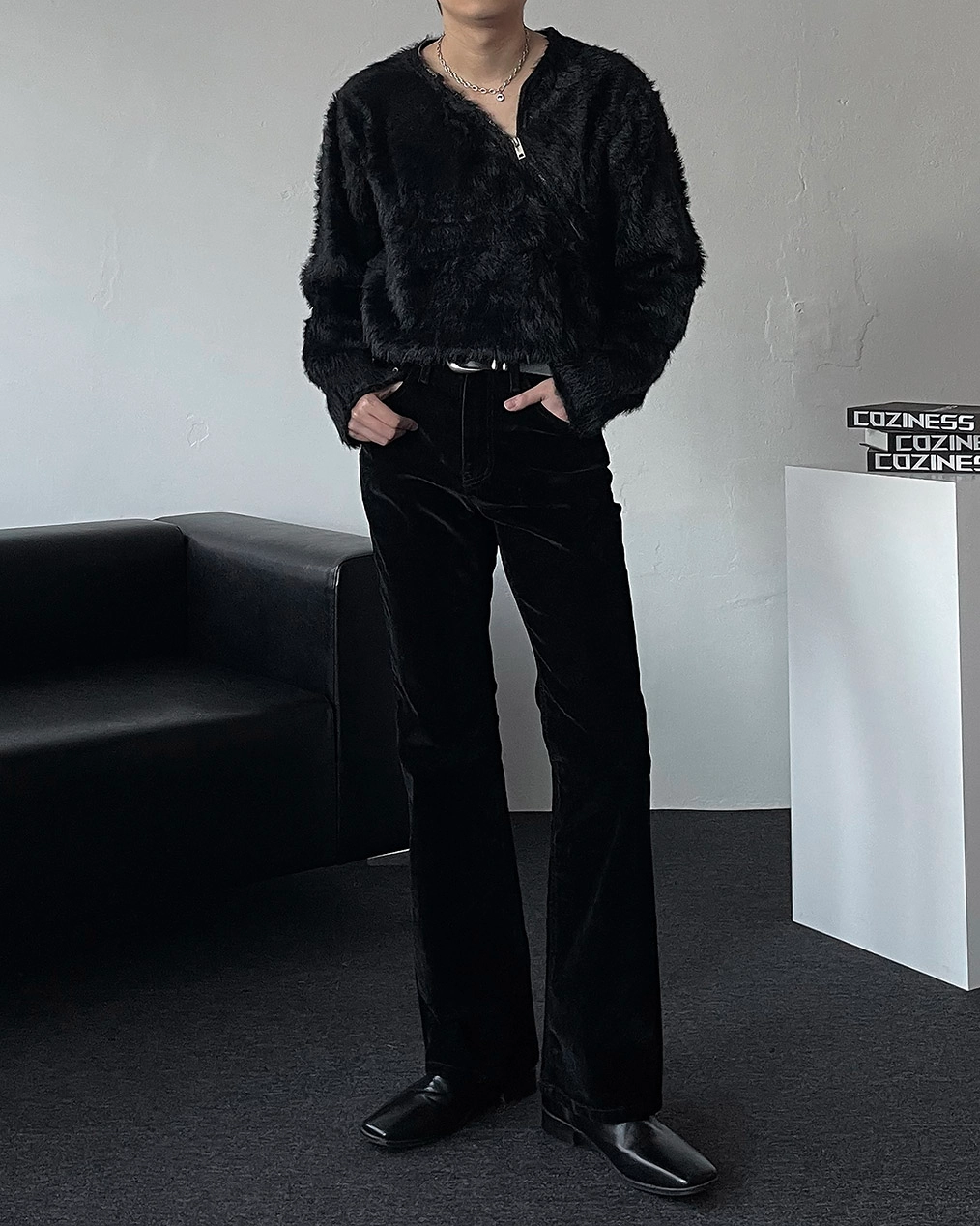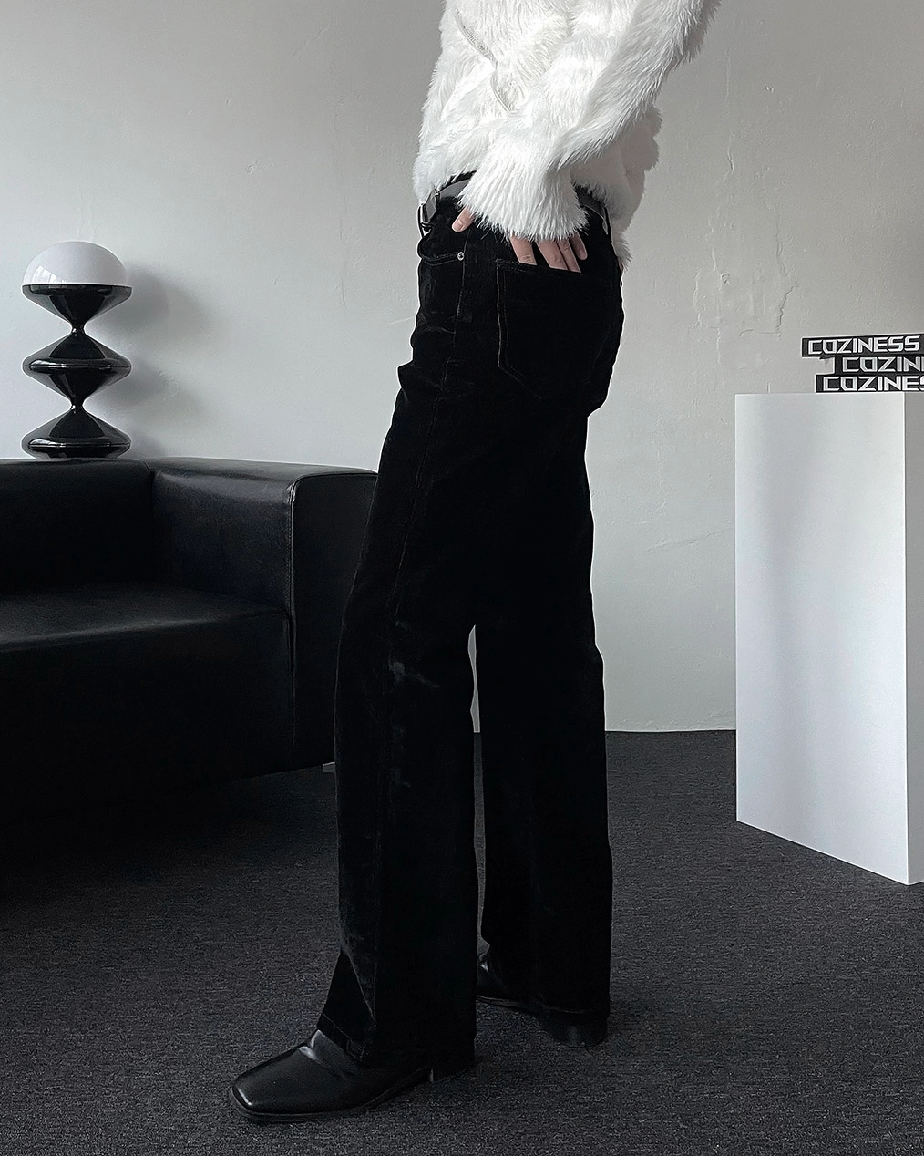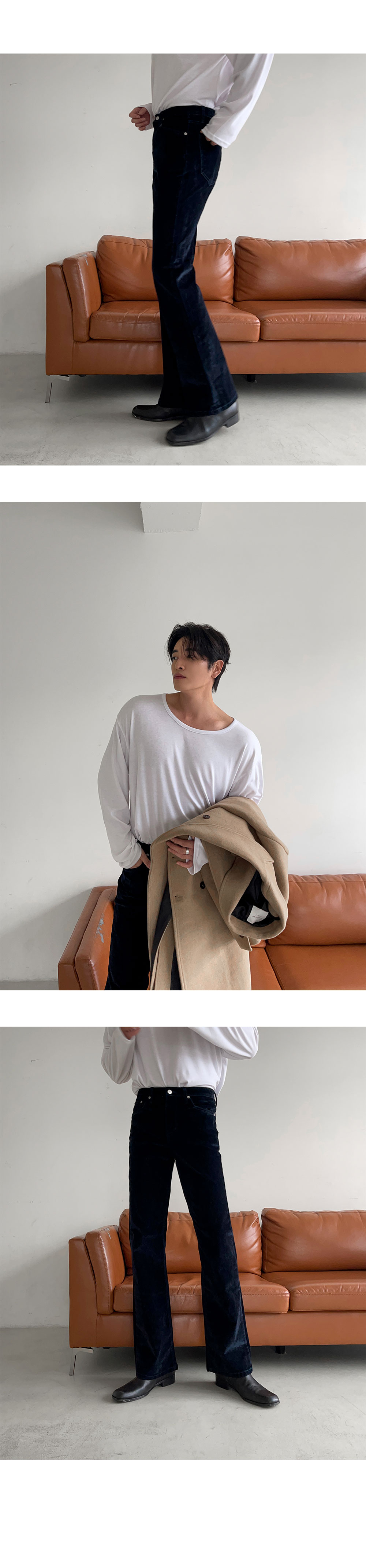 - 合適的天鵝絨牛仔布材質,在秋冬季節具有很高的實用性厚度