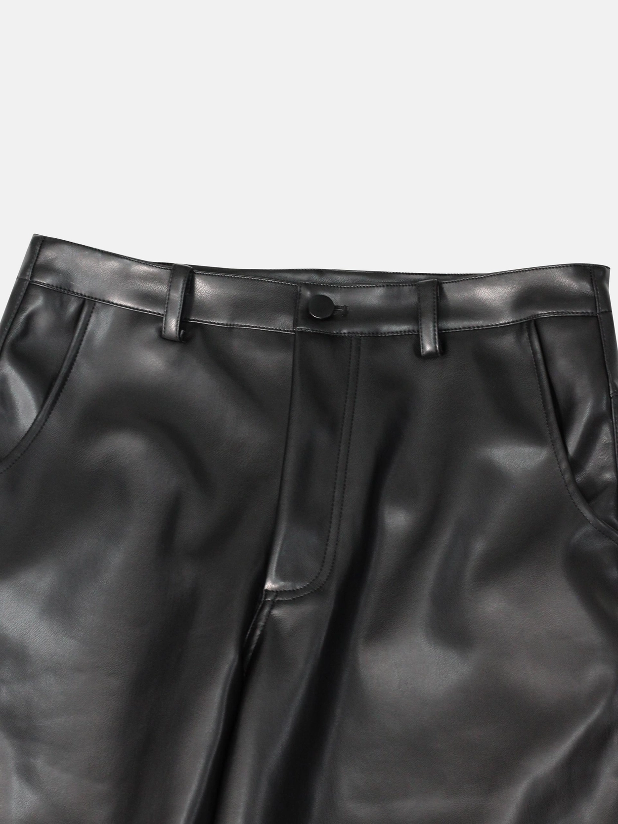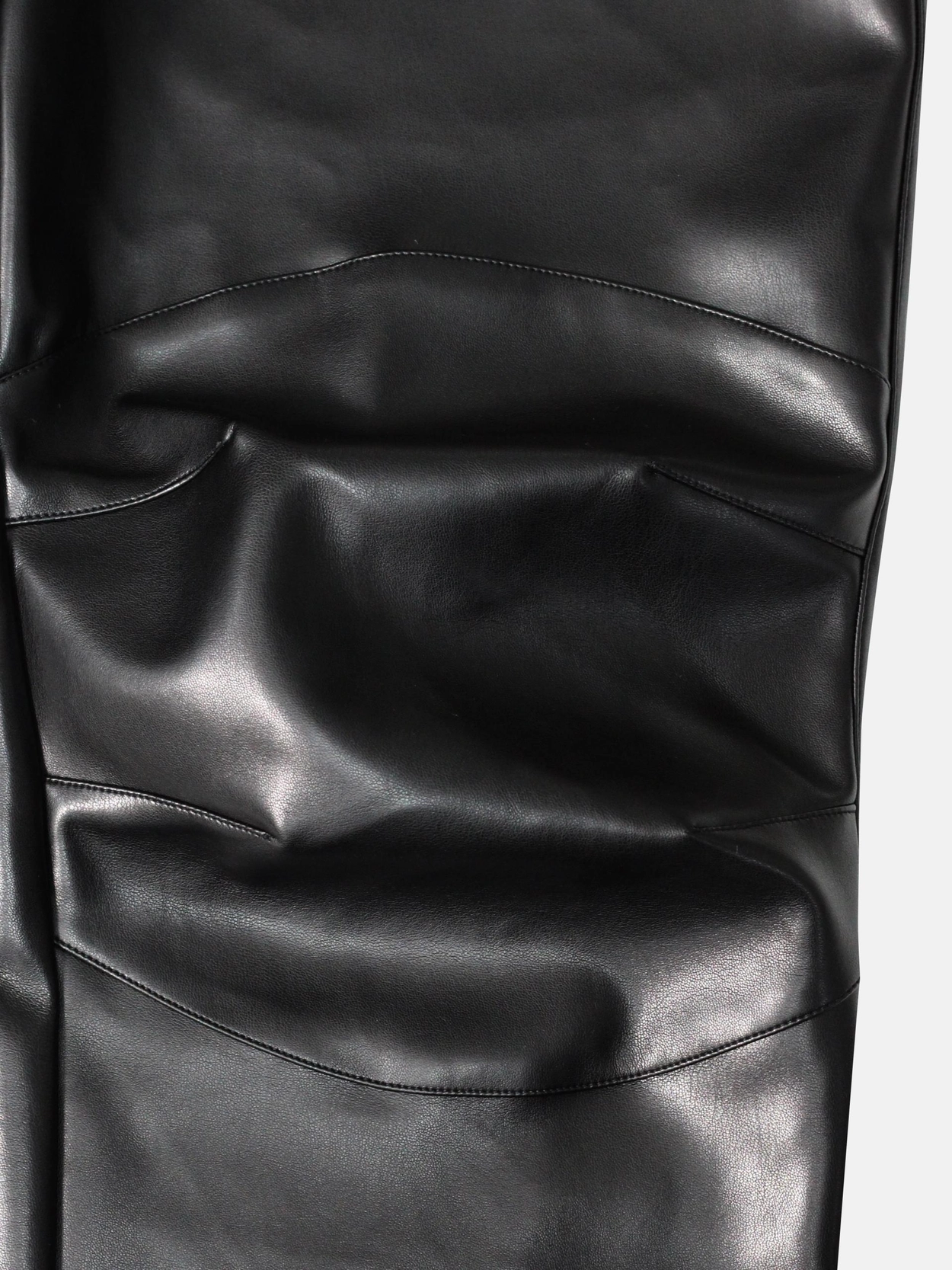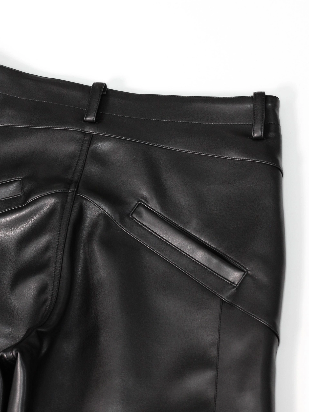 - 與現有的塗層牛仔褲不同,皮褲採用獨特的設計,帶有膝蓋降落傘細節。