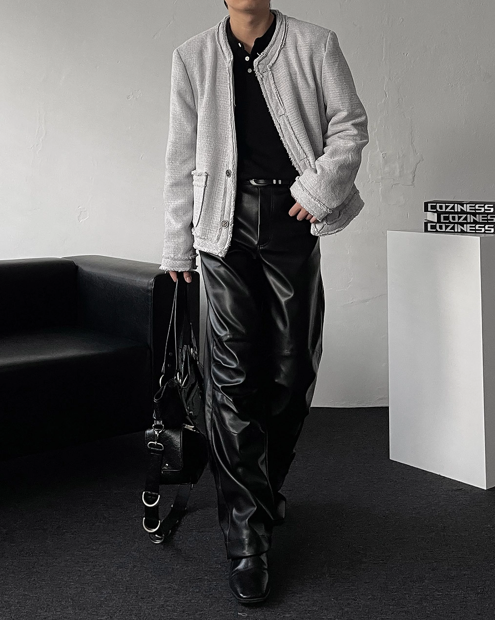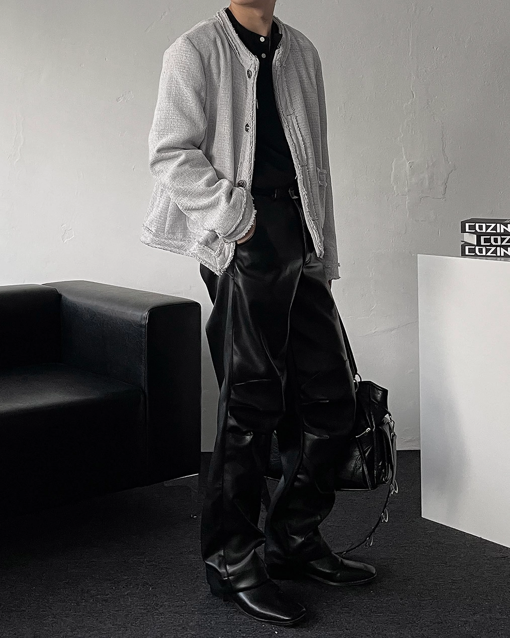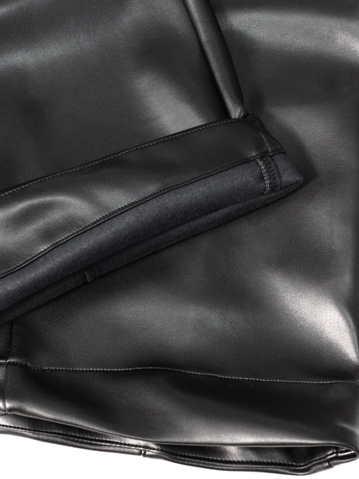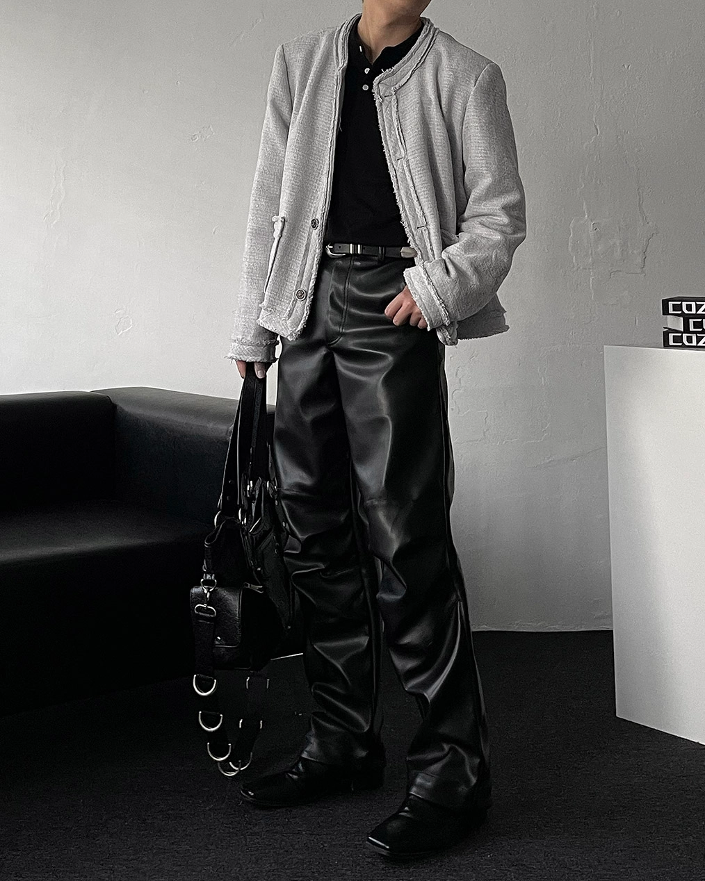 - 與現有的塗層牛仔褲不同,皮褲採用獨特的設計,帶有膝蓋降落傘細節。