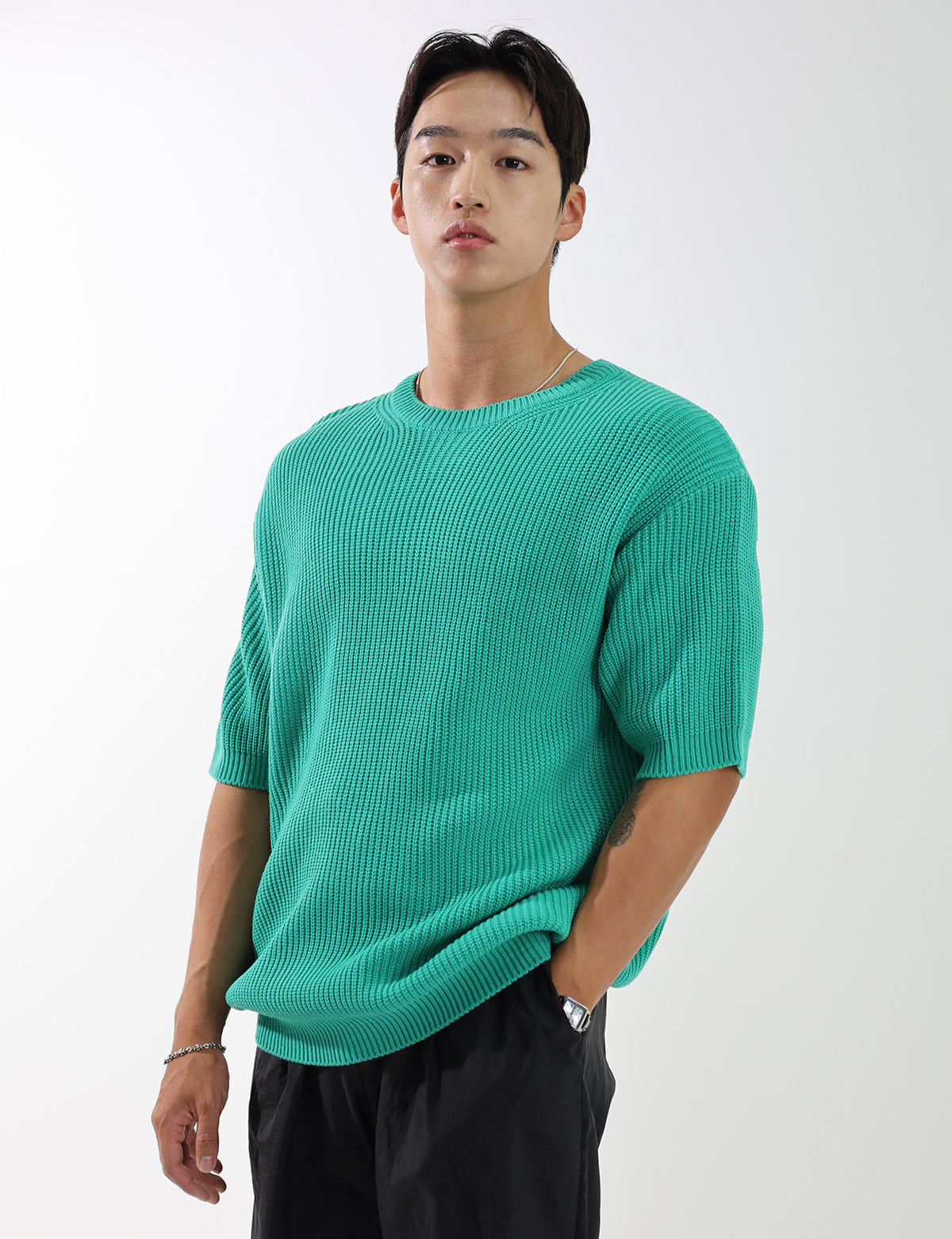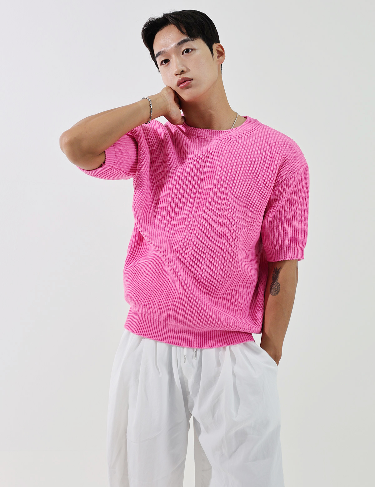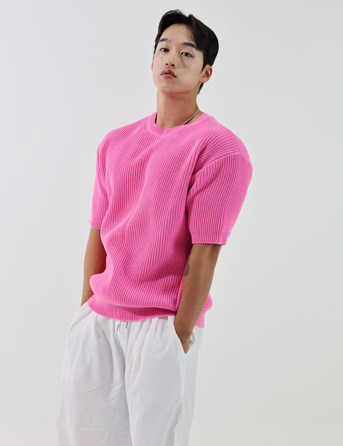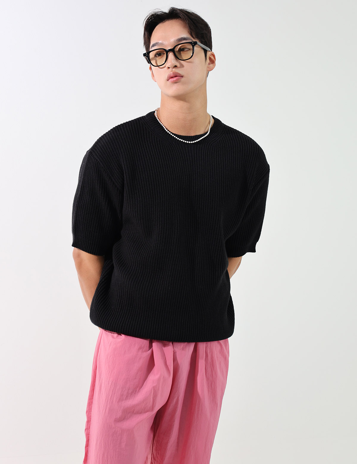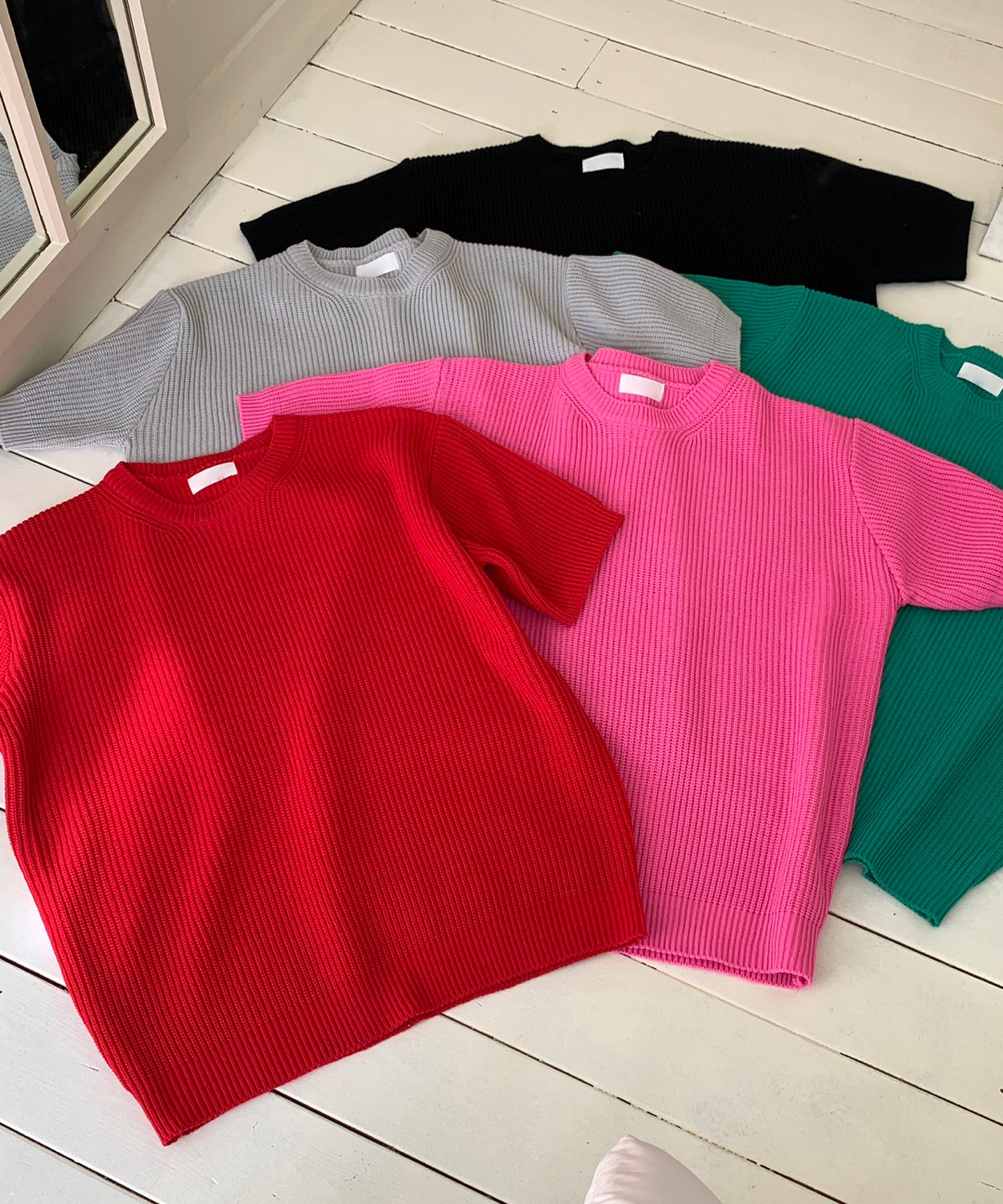 簡潔素色短袖針織衫