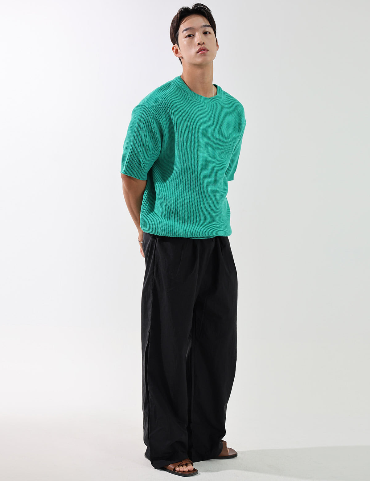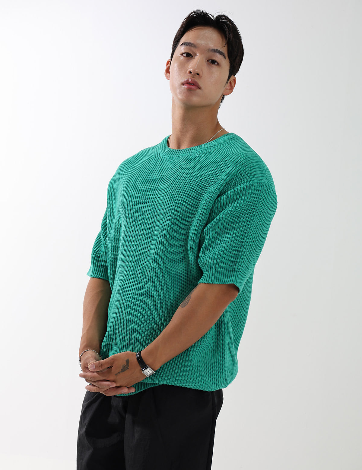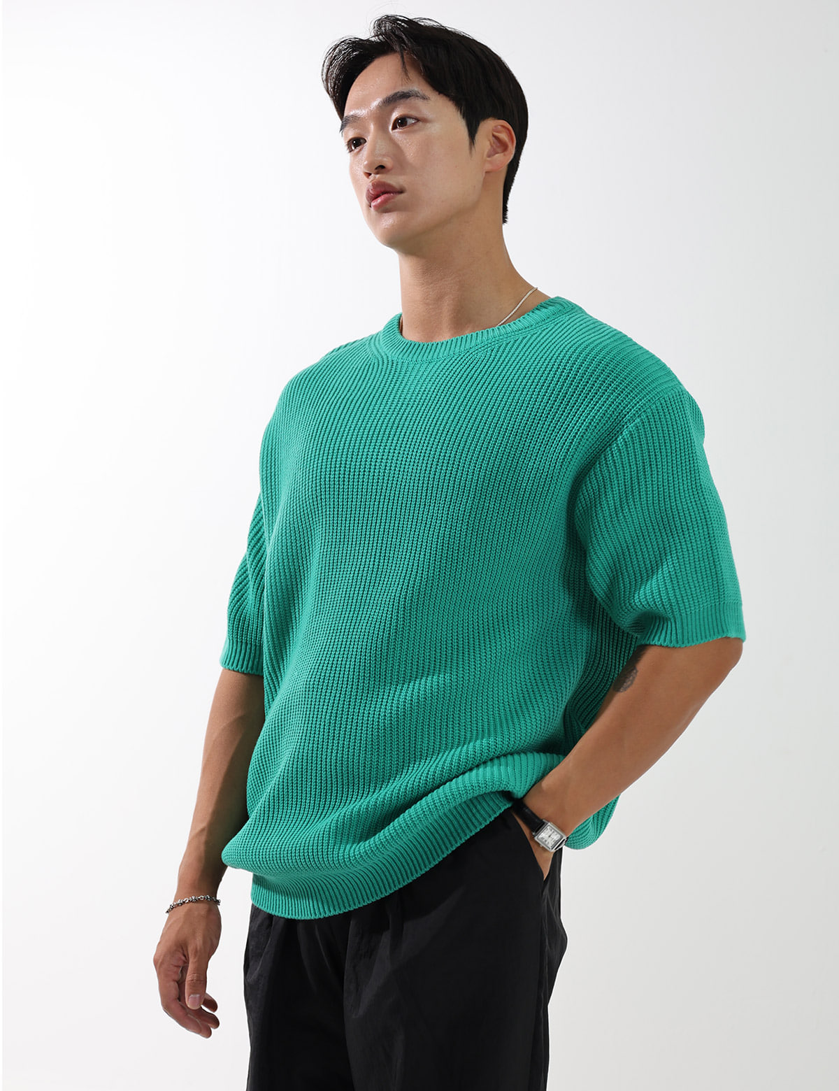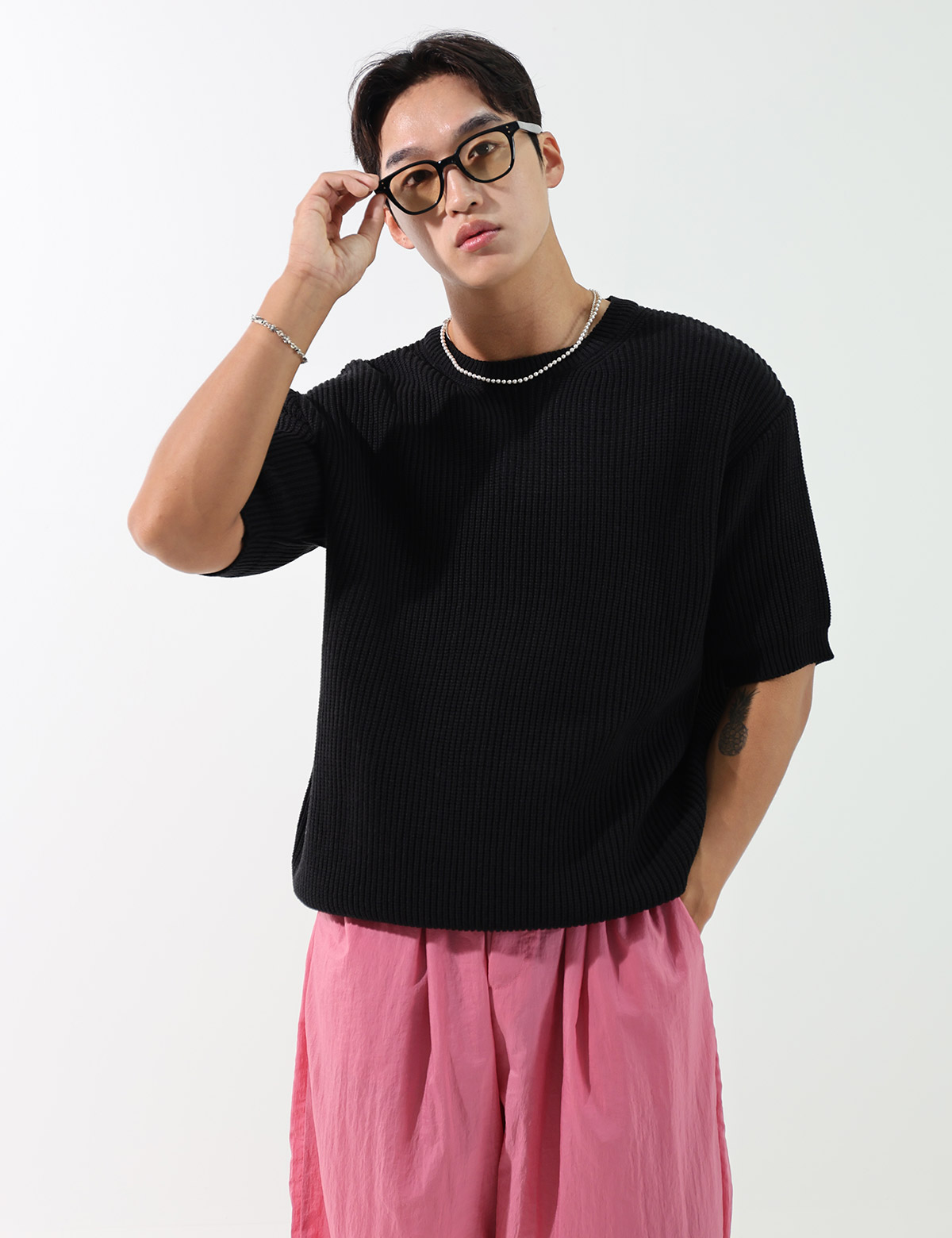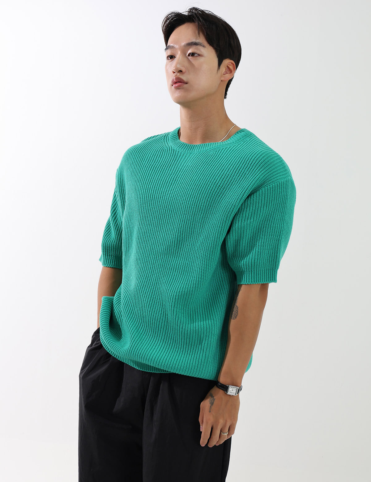 簡潔素色短袖針織衫