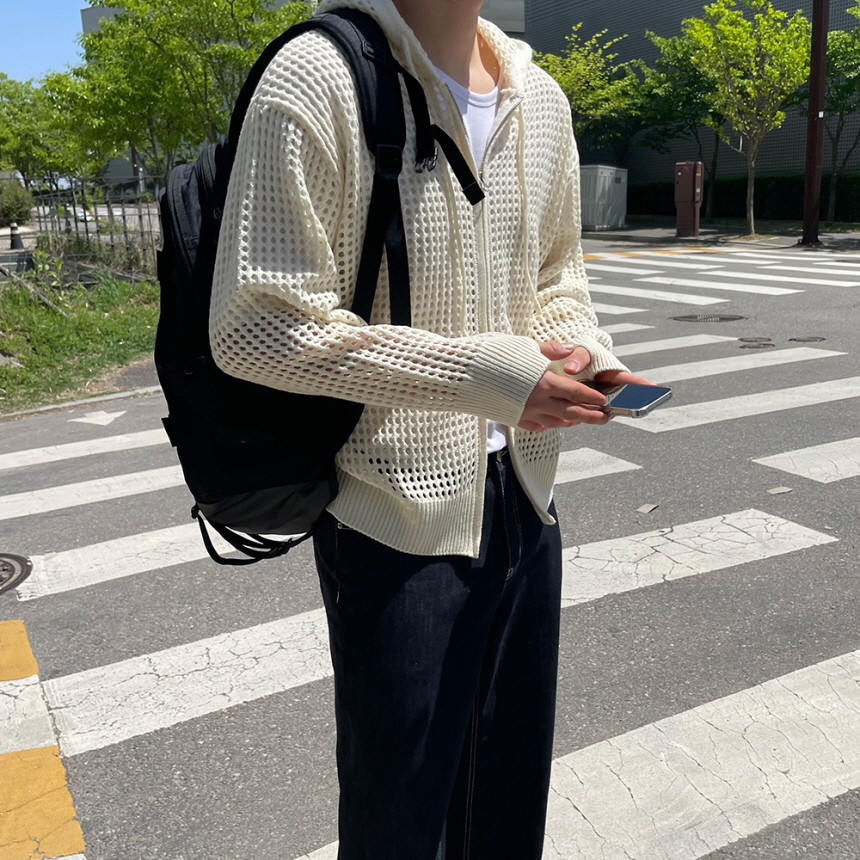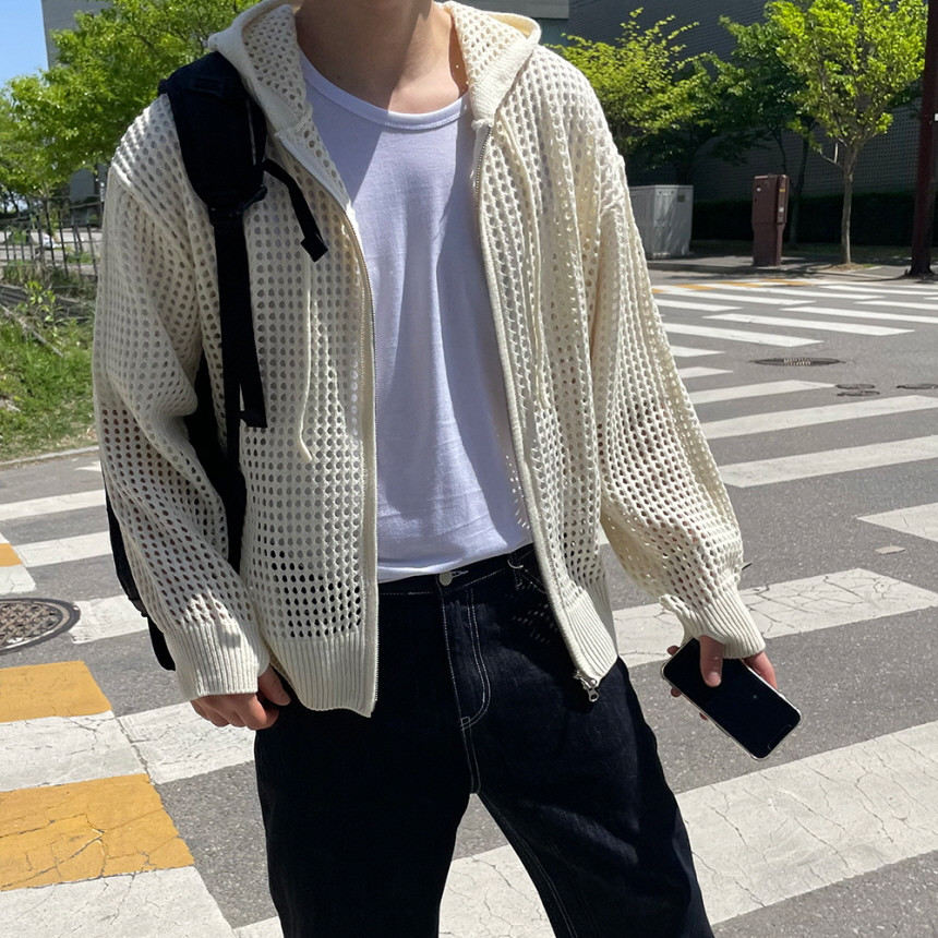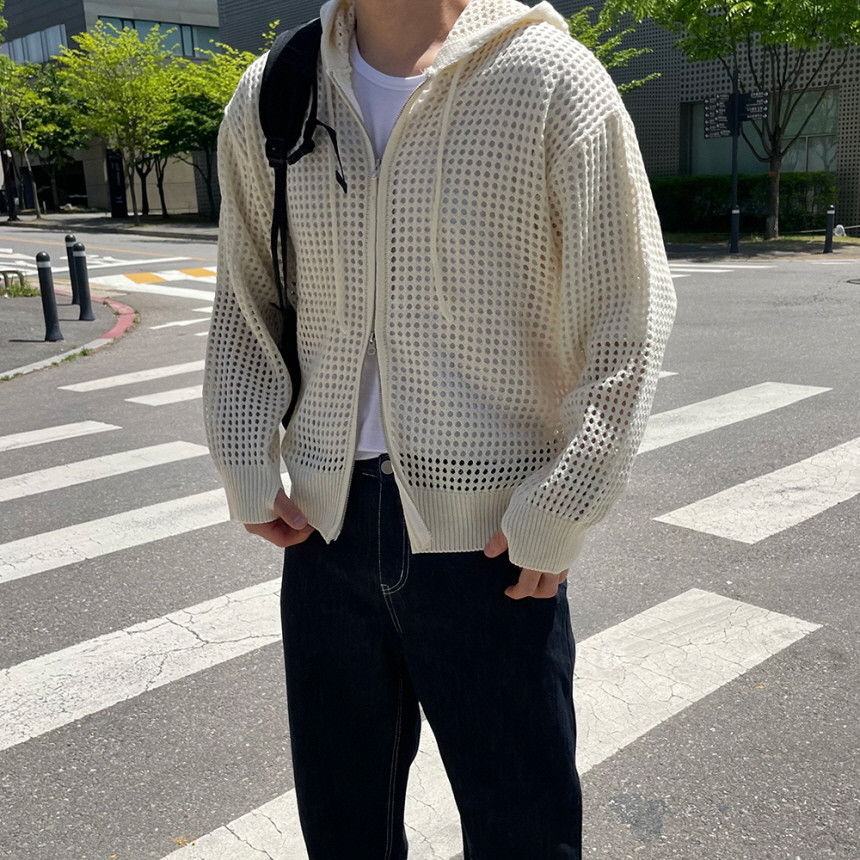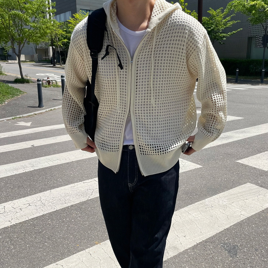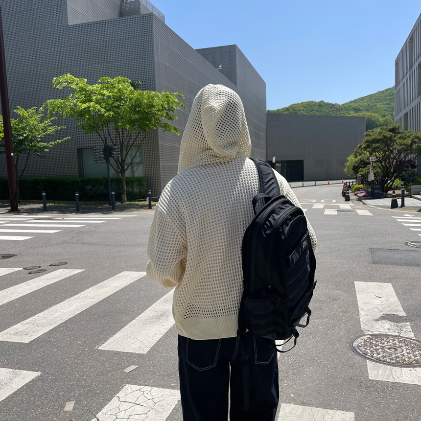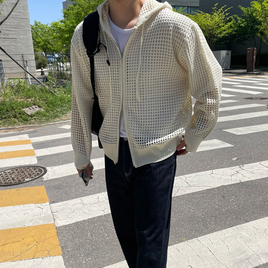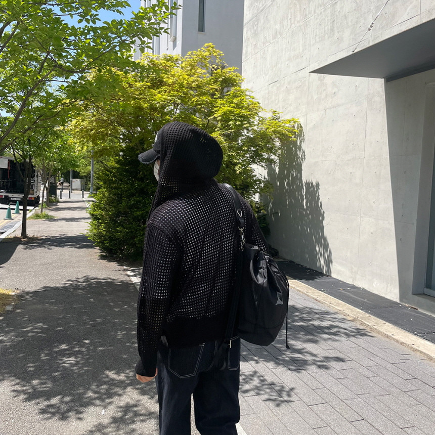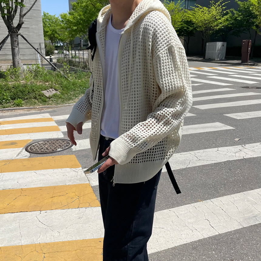- 帶有網狀圖案的 針織連帽衫 ,非常適合在春夏做搭配 : )
