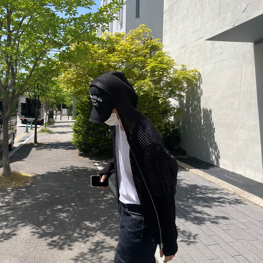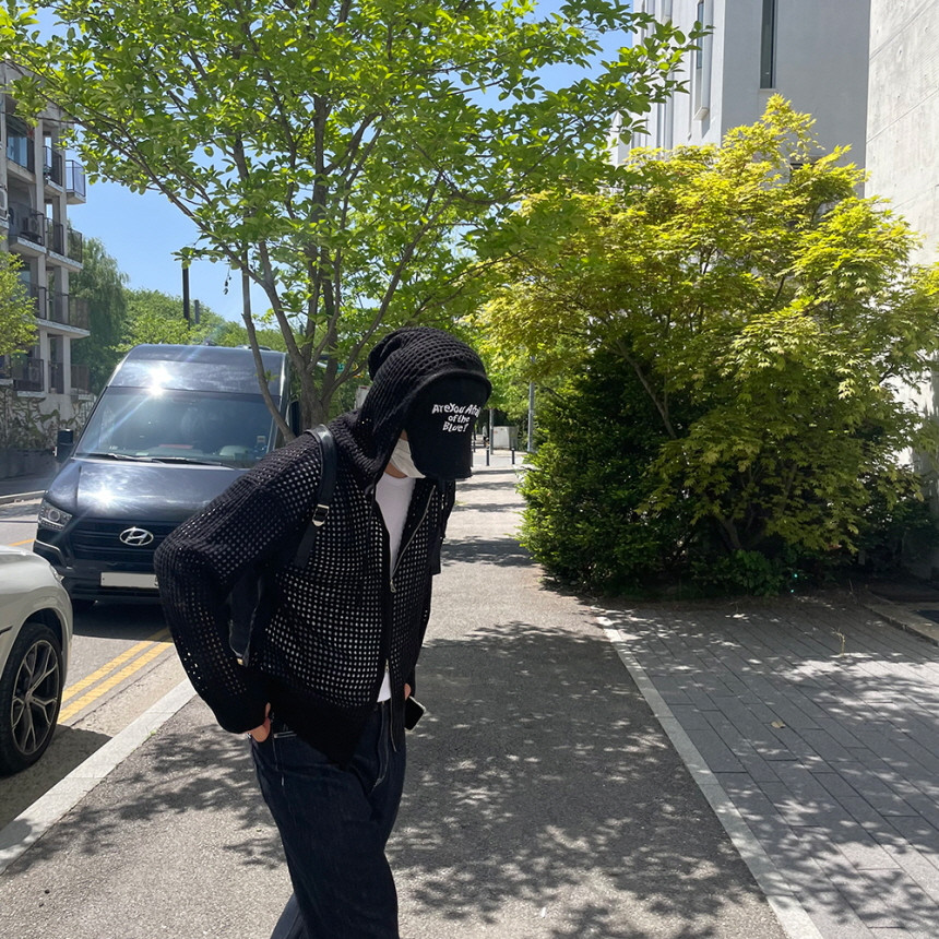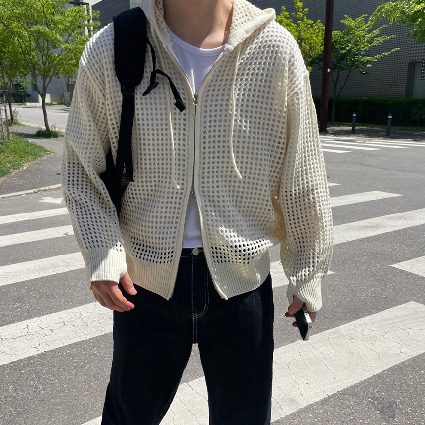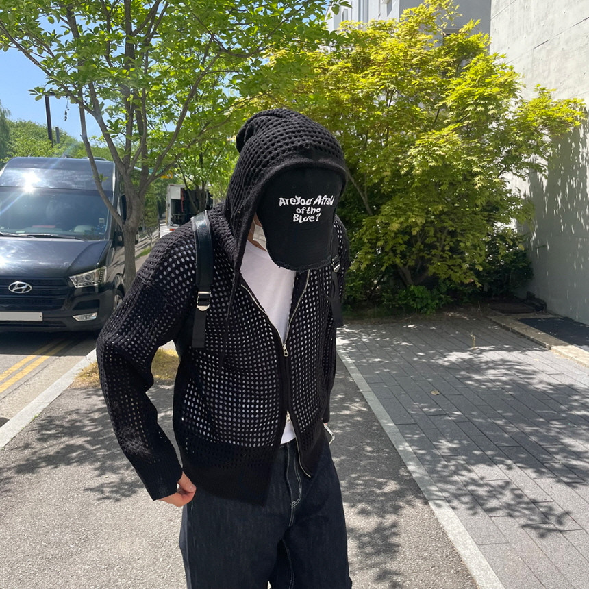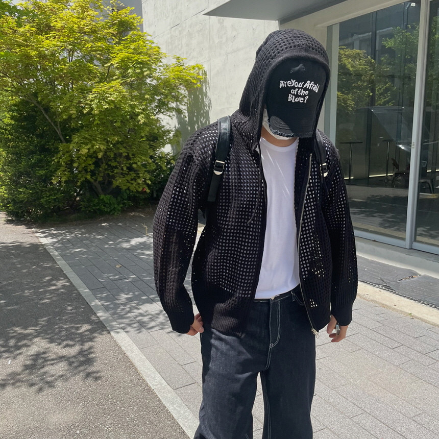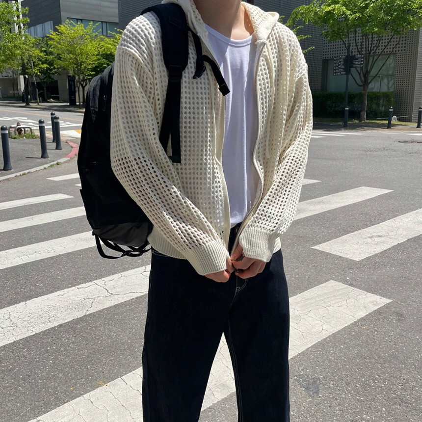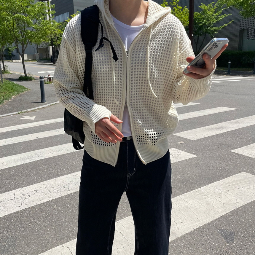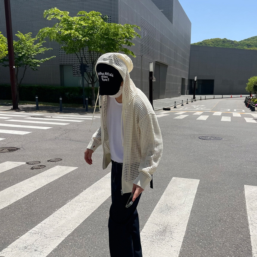 - 帶有網狀圖案的 針織連帽衫 ,非常適合在春夏做搭配 : )