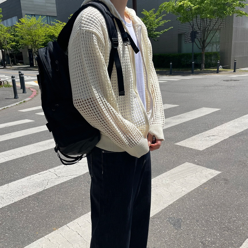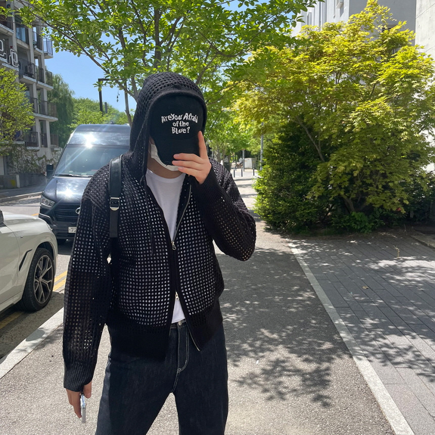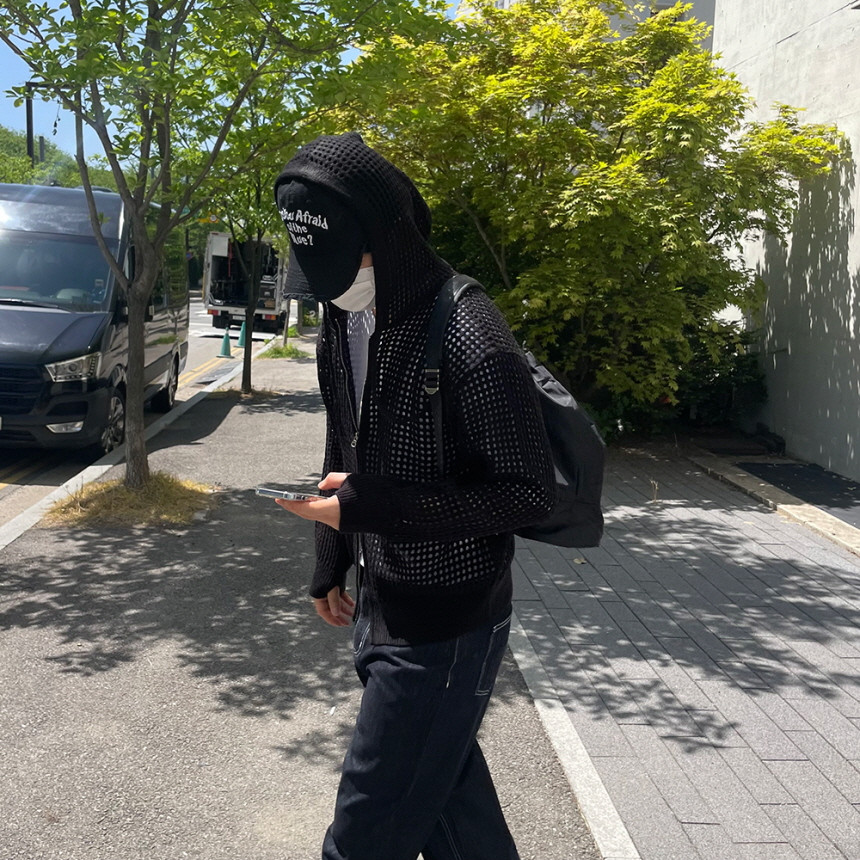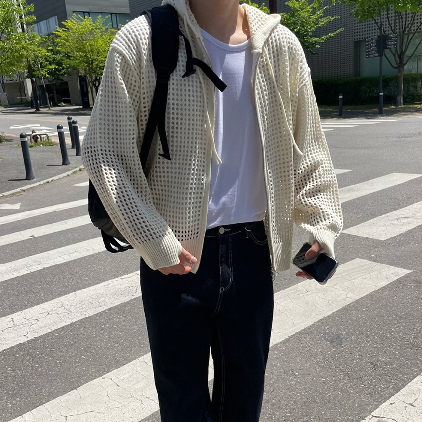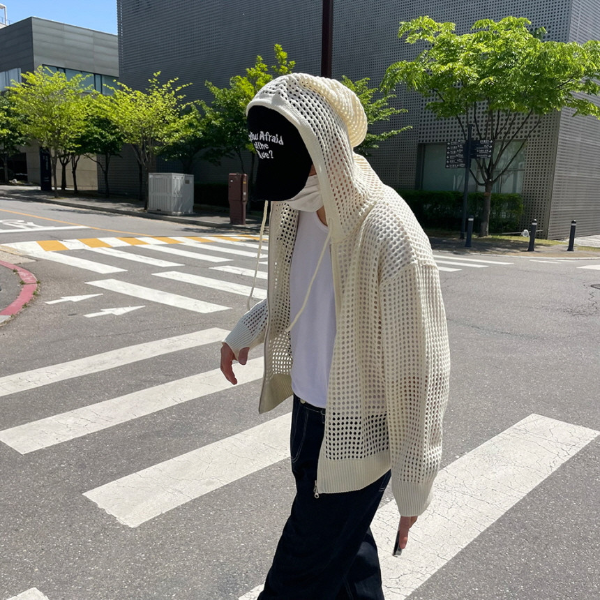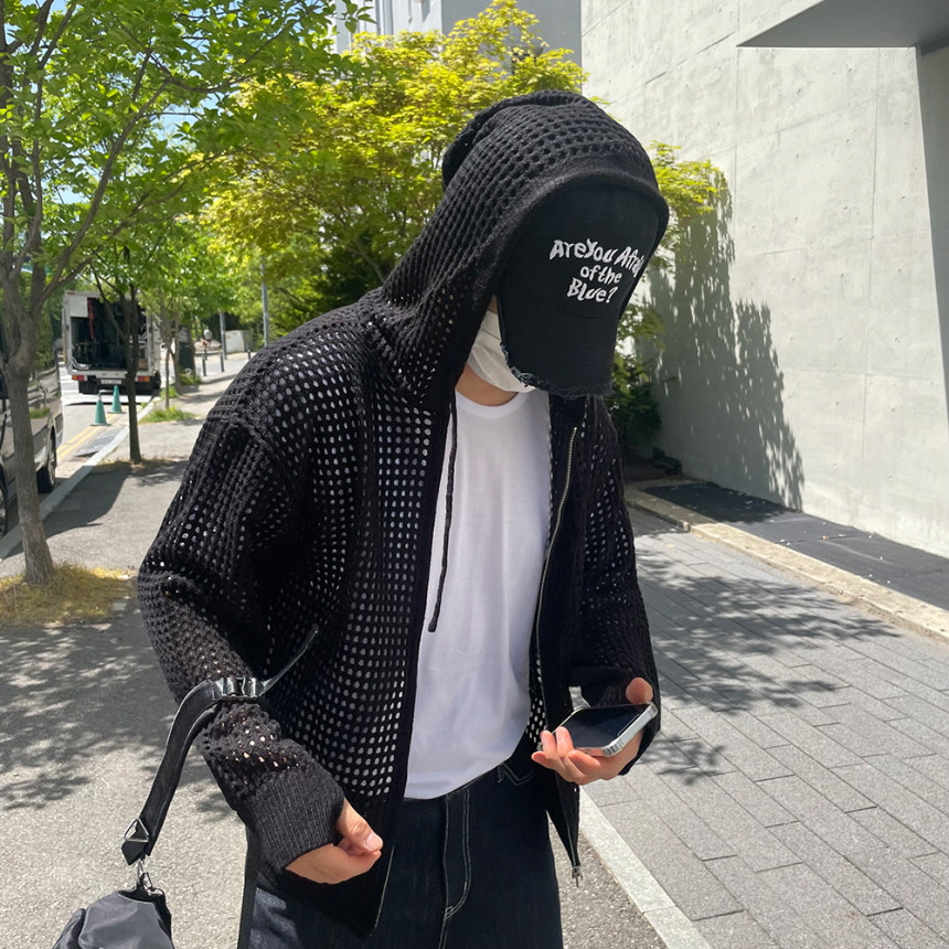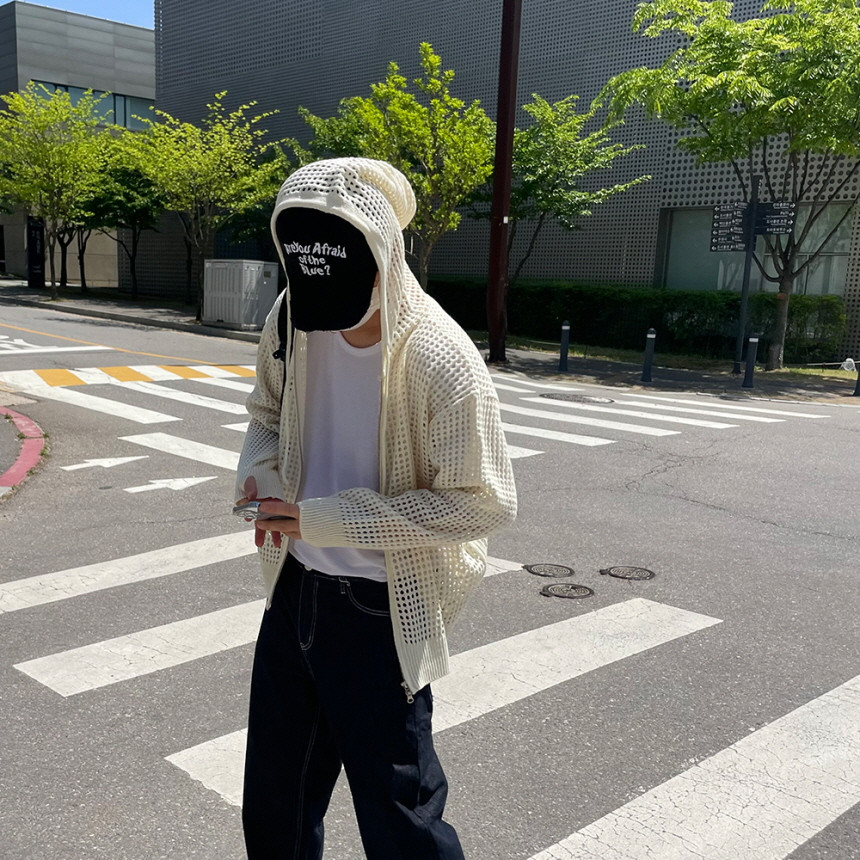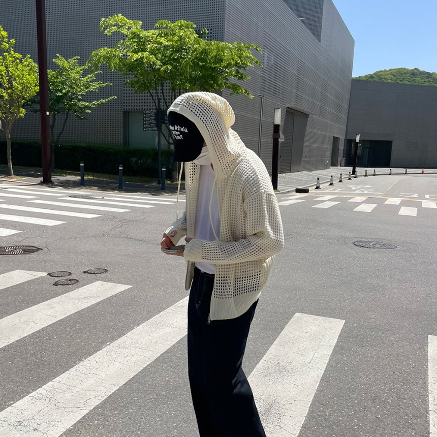 - 帶有網狀圖案的 針織連帽衫 ,非常適合在春夏做搭配 : )