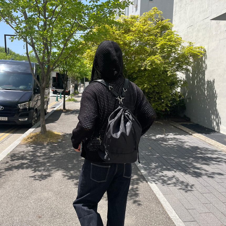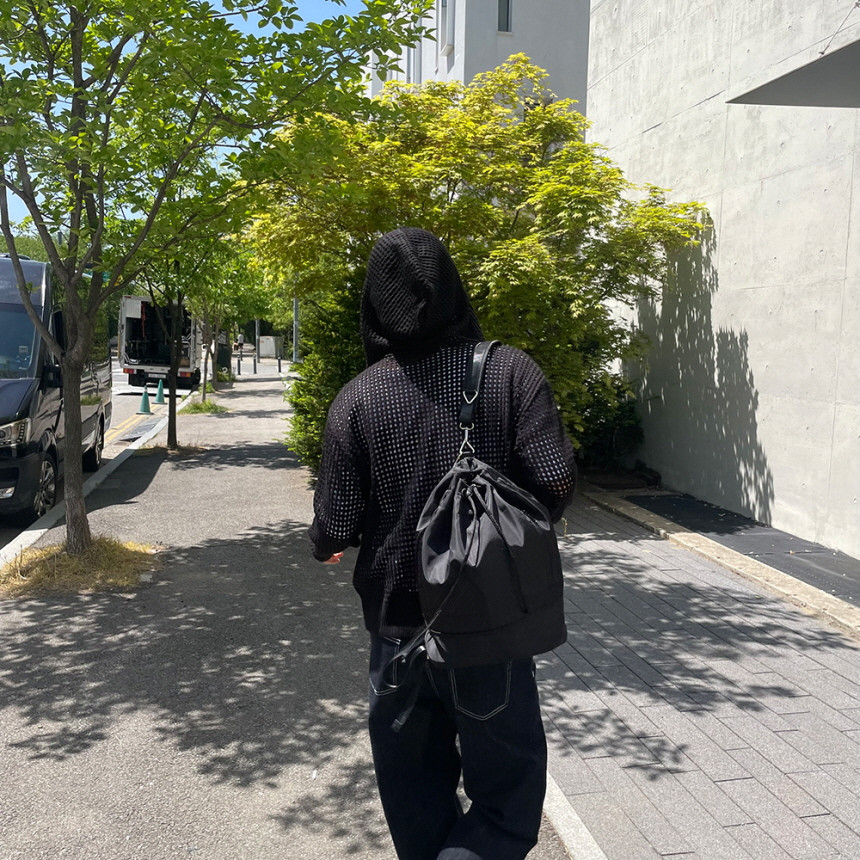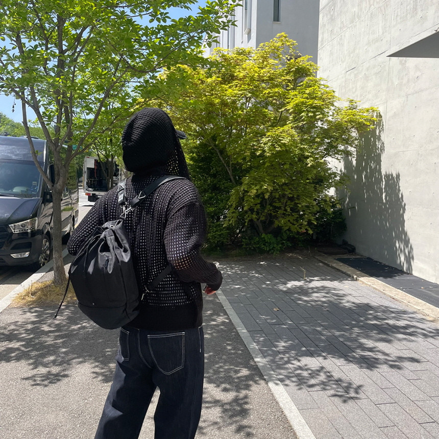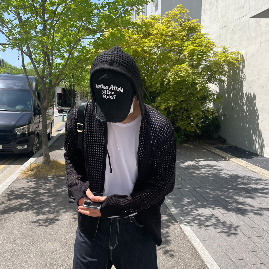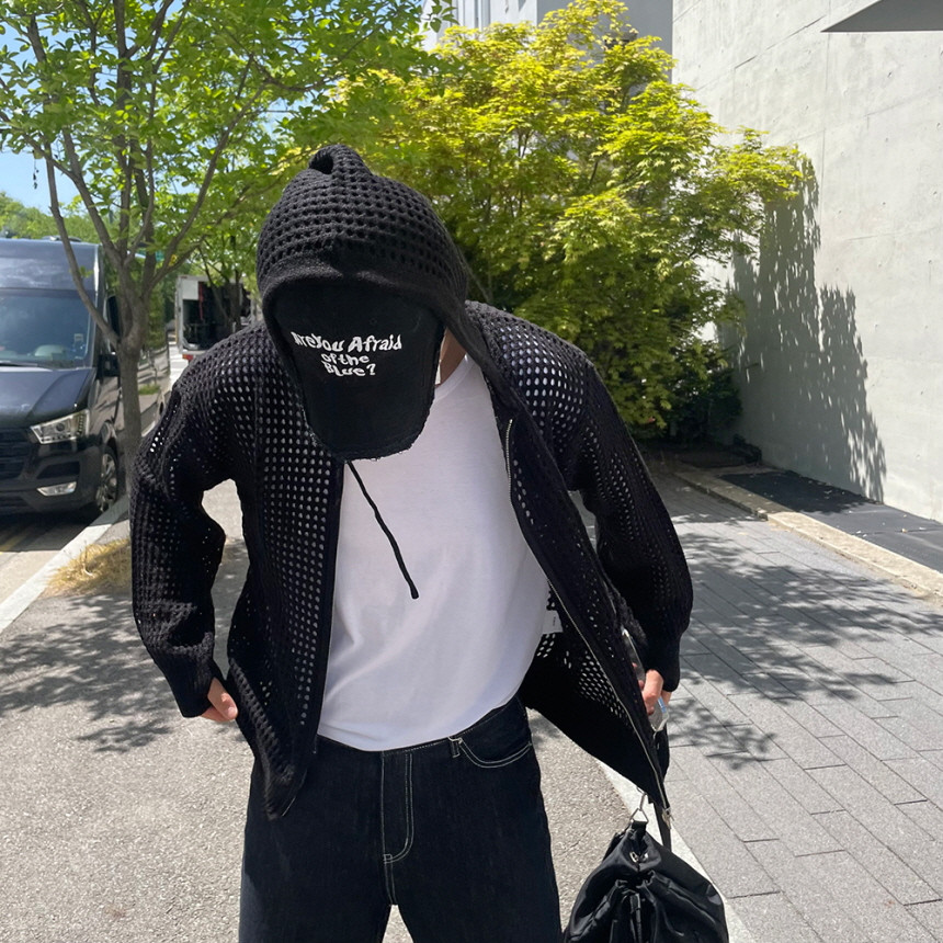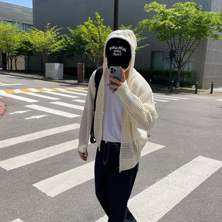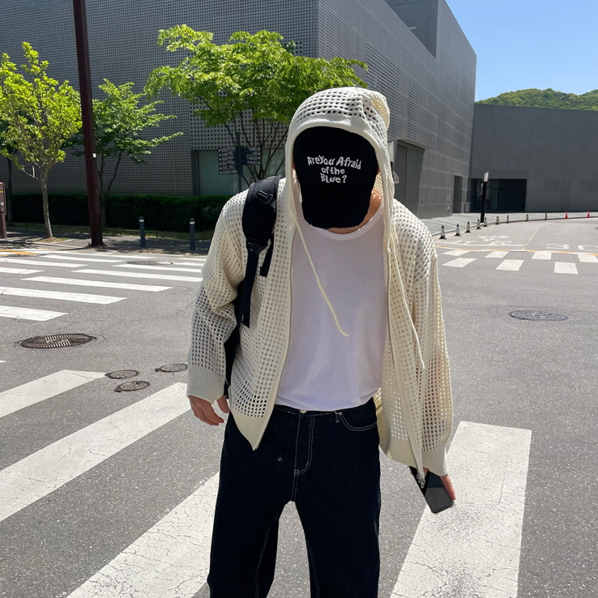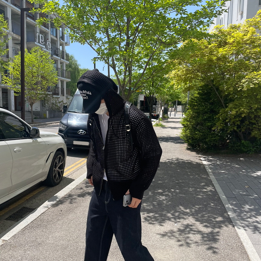 - 帶有網狀圖案的 針織連帽衫 ,非常適合在春夏做搭配 : )