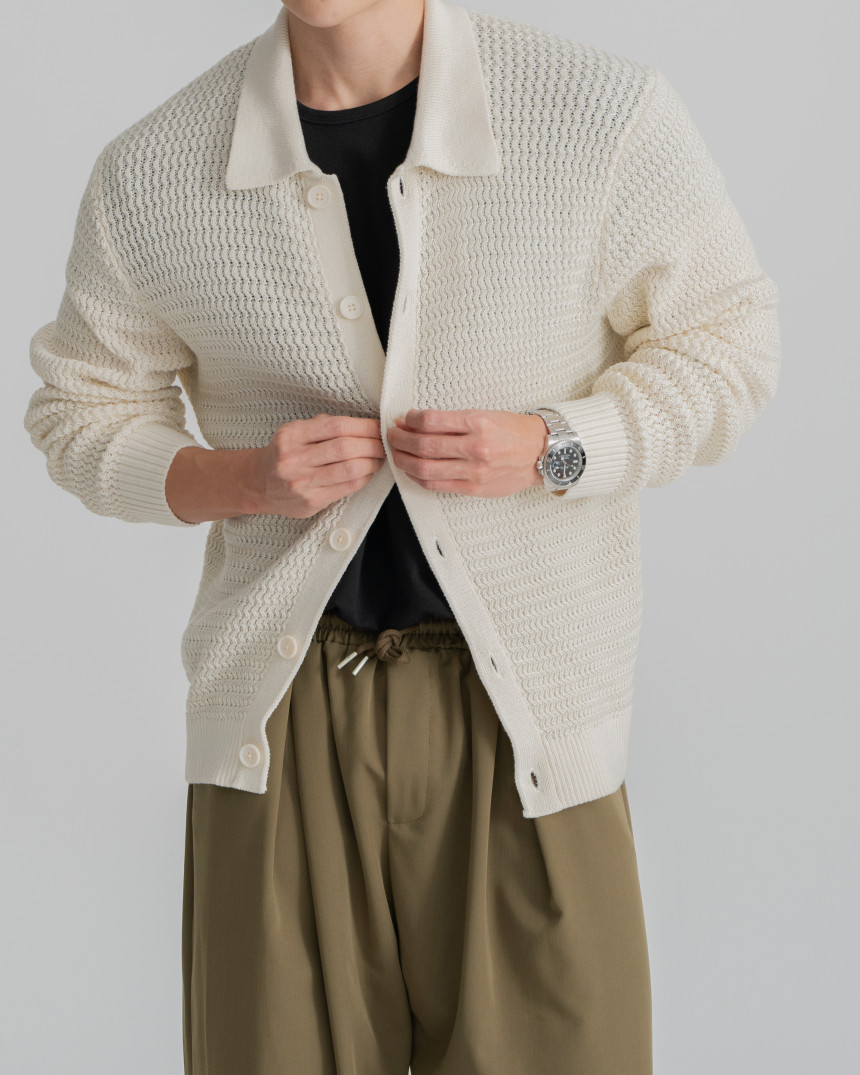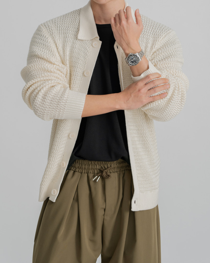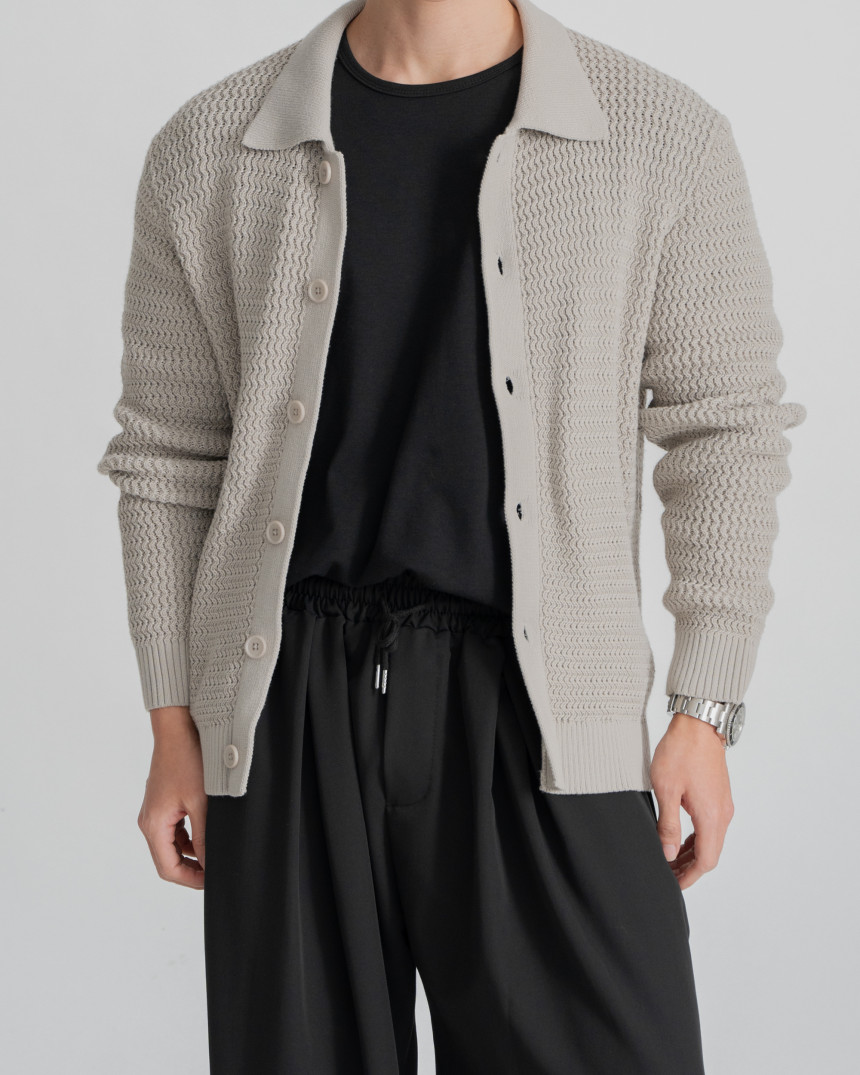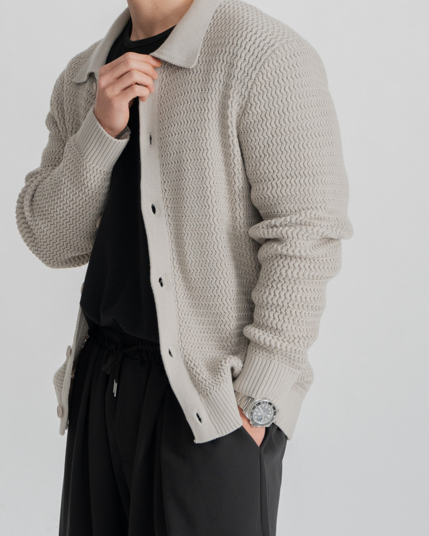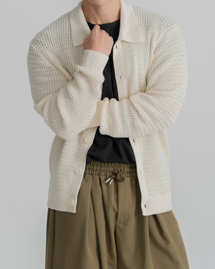 - 標準廓形領開襟衫