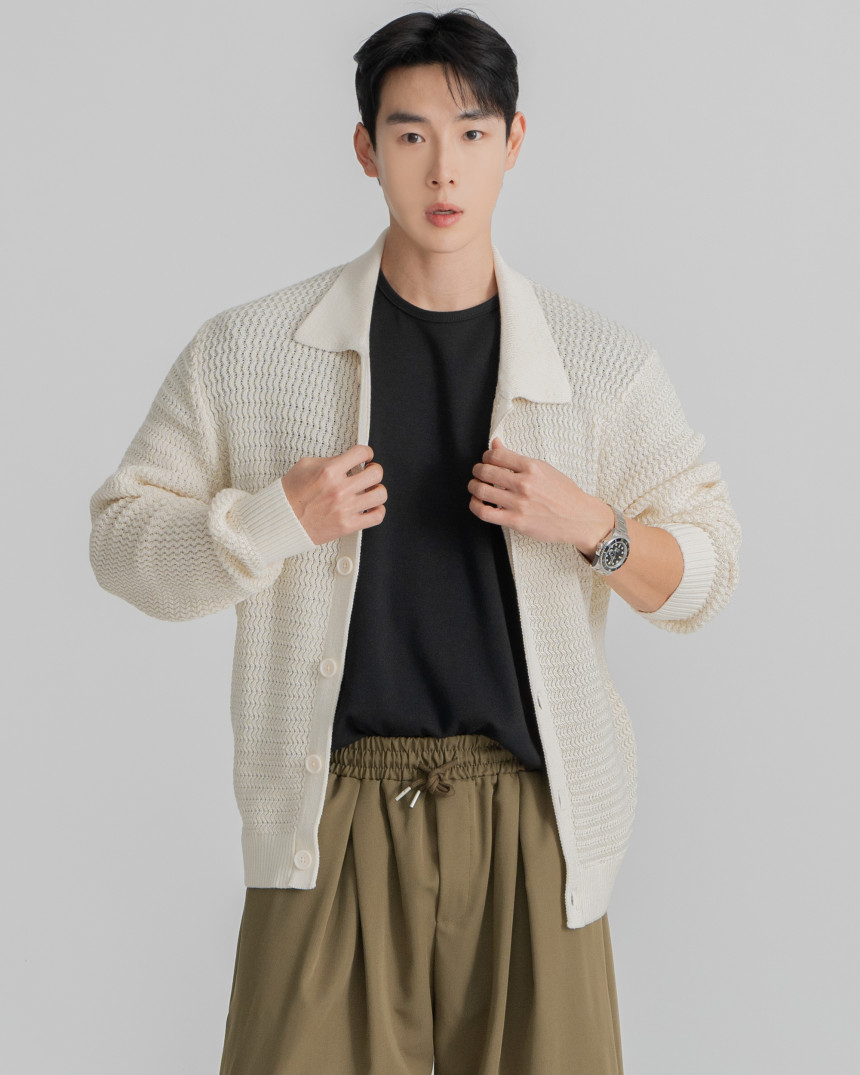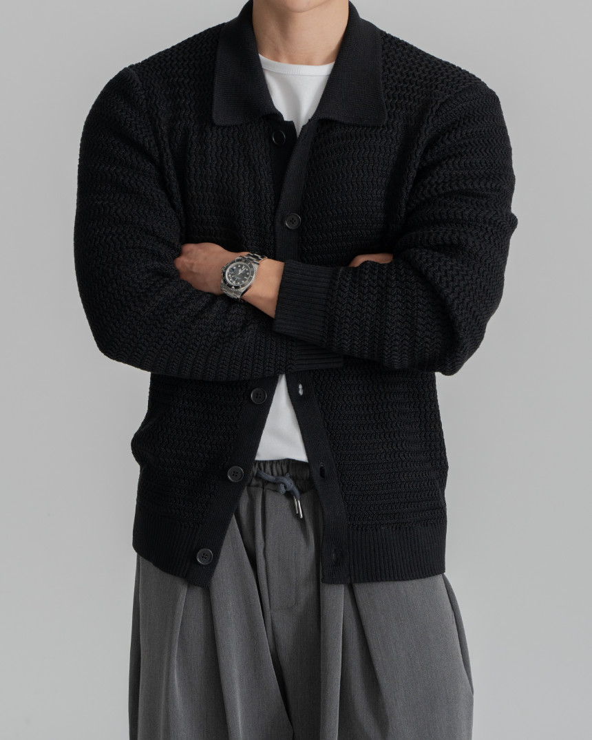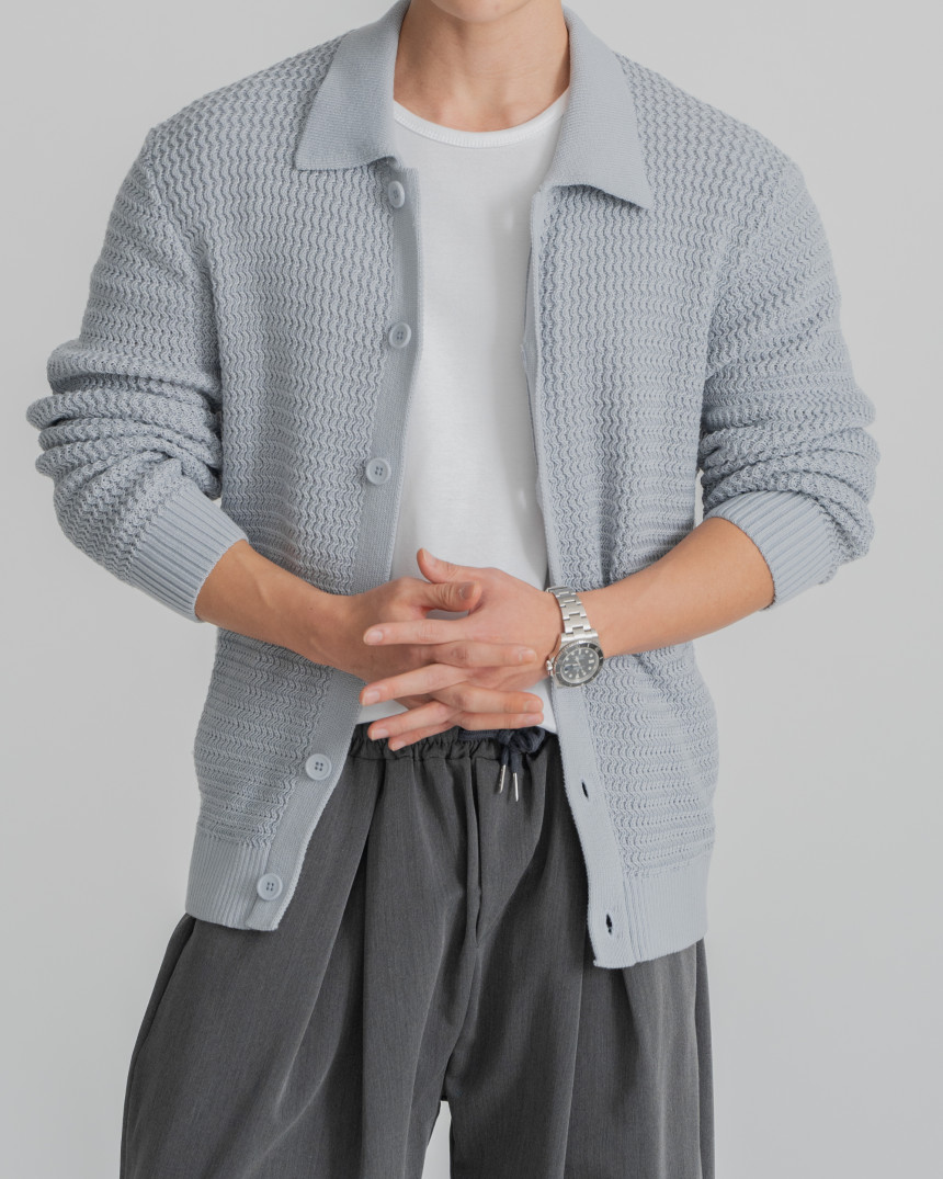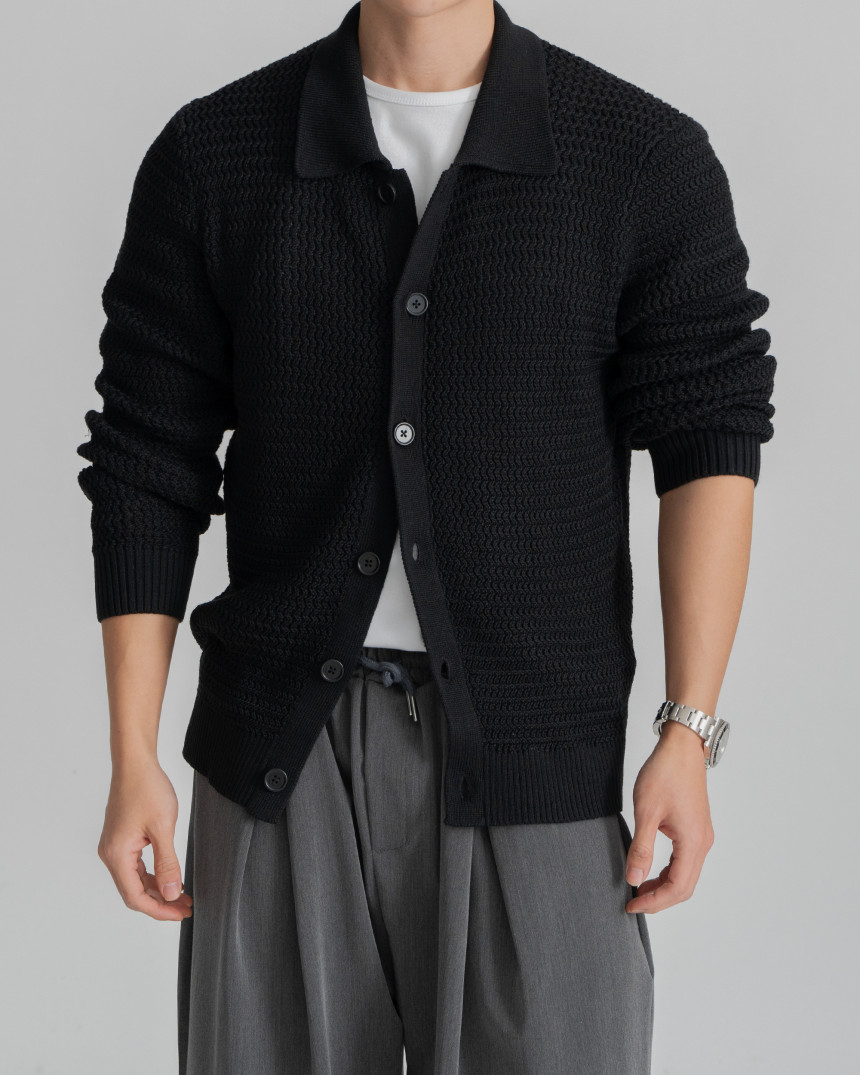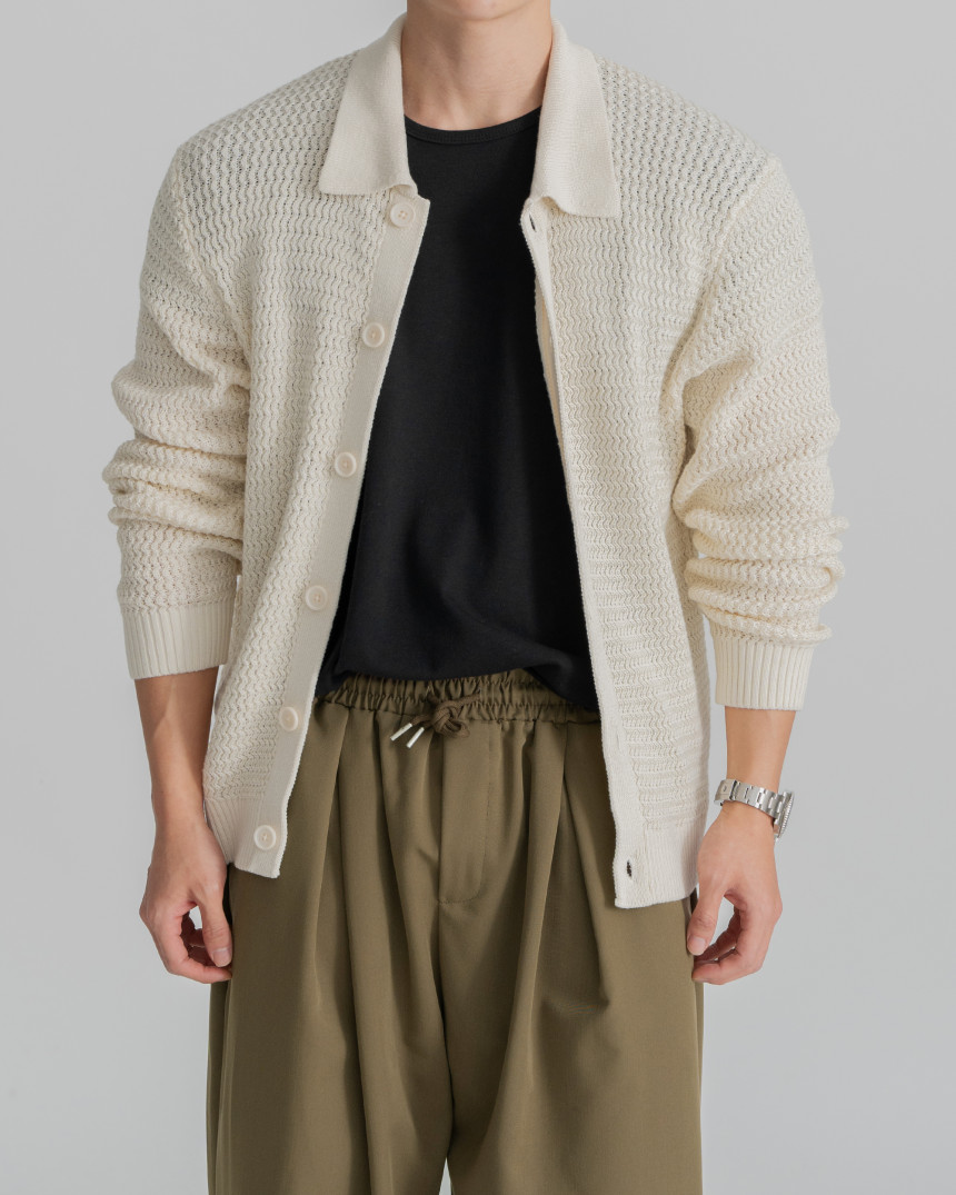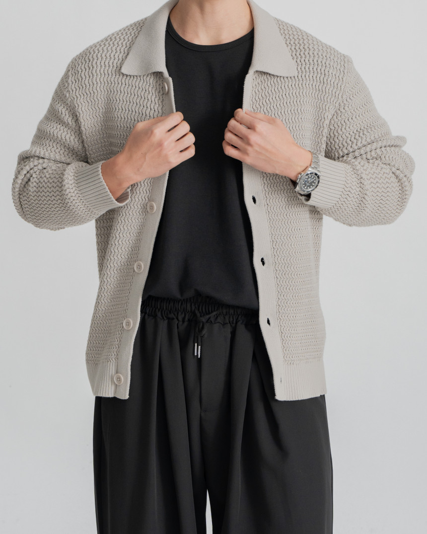 - 標準廓形領開襟衫