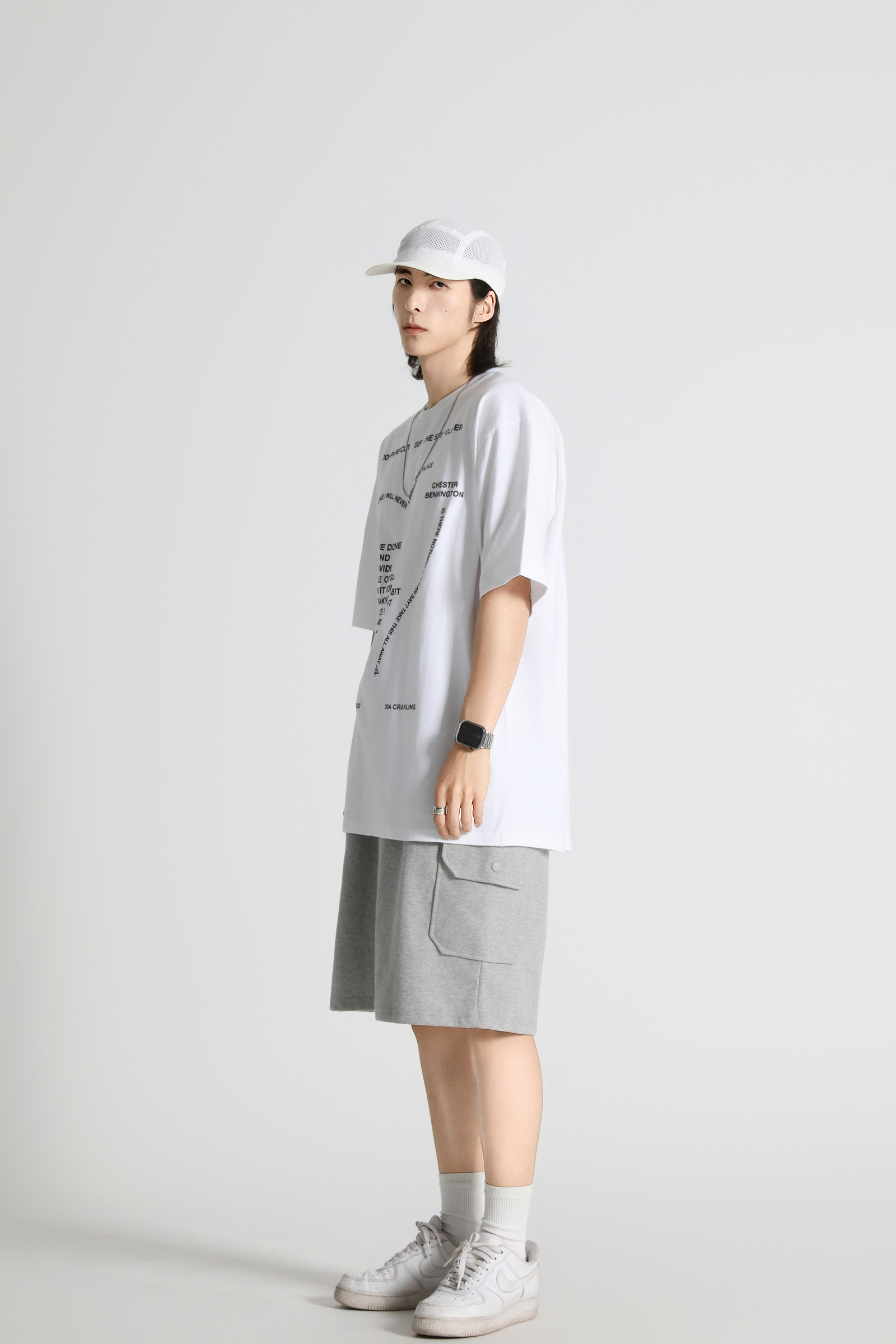 簡潔的圓領上點綴著獨特的字體印花,為整體造型增添亮點。