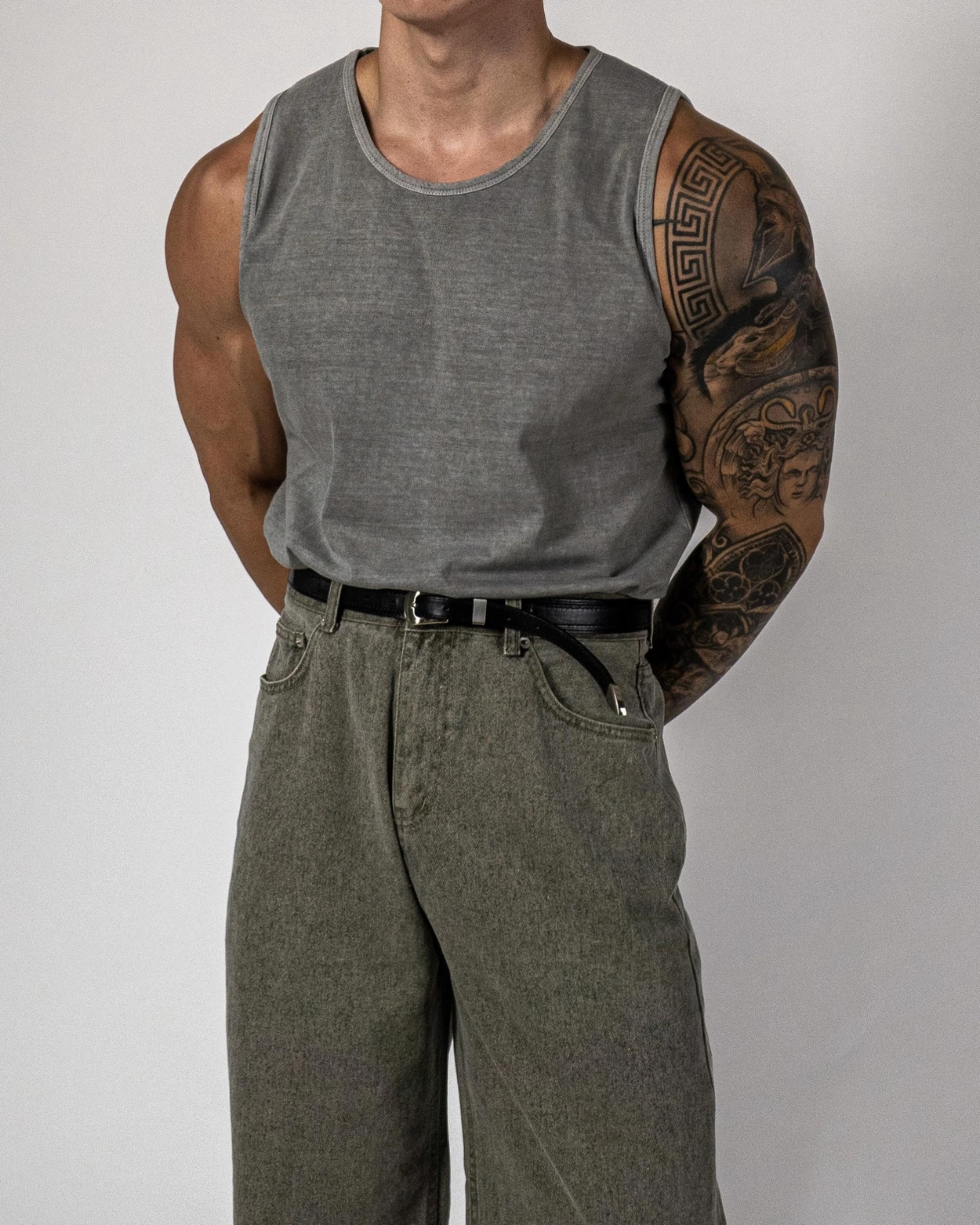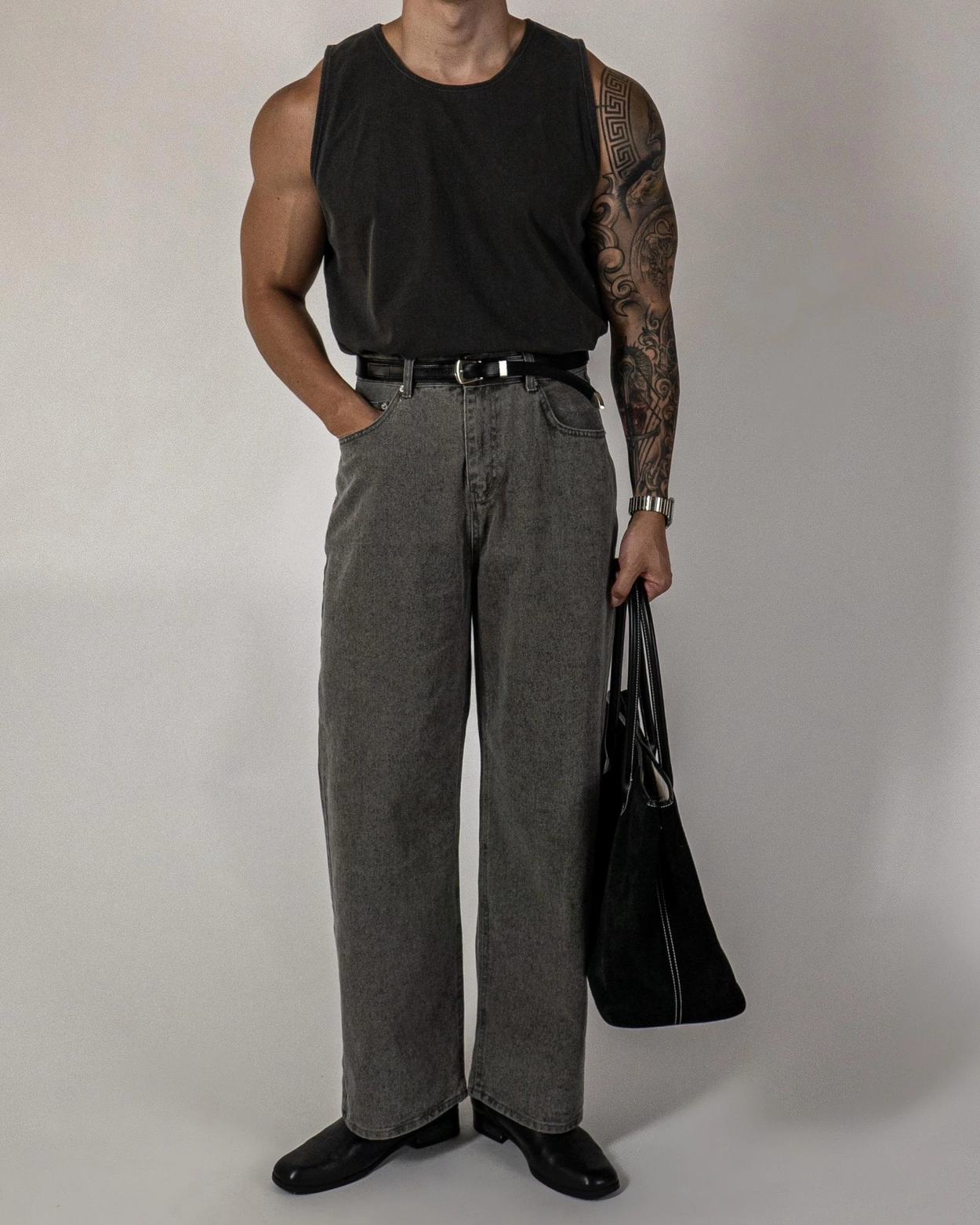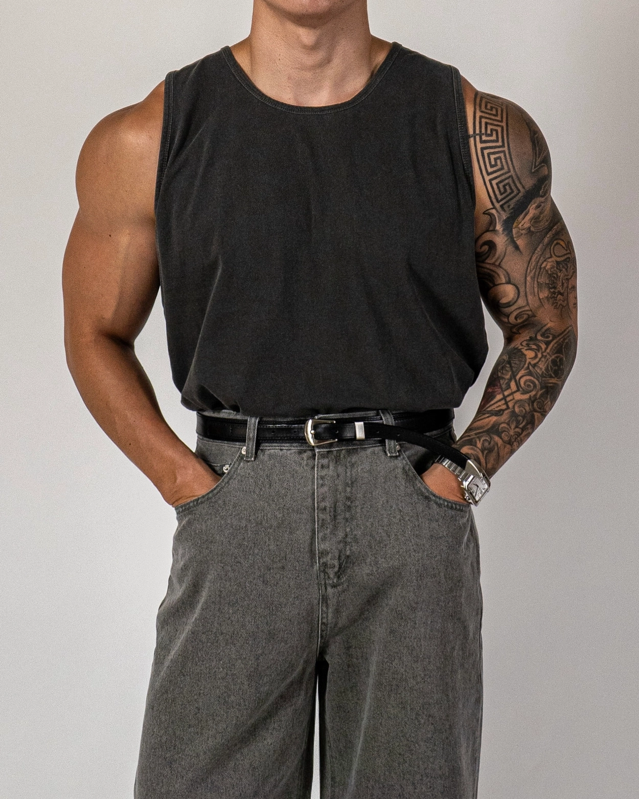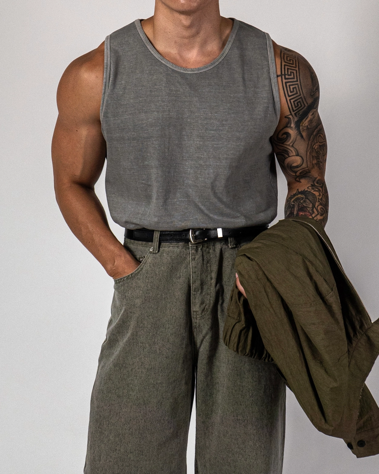 具有自然的水洗質感和不暴露負擔的袖窿線