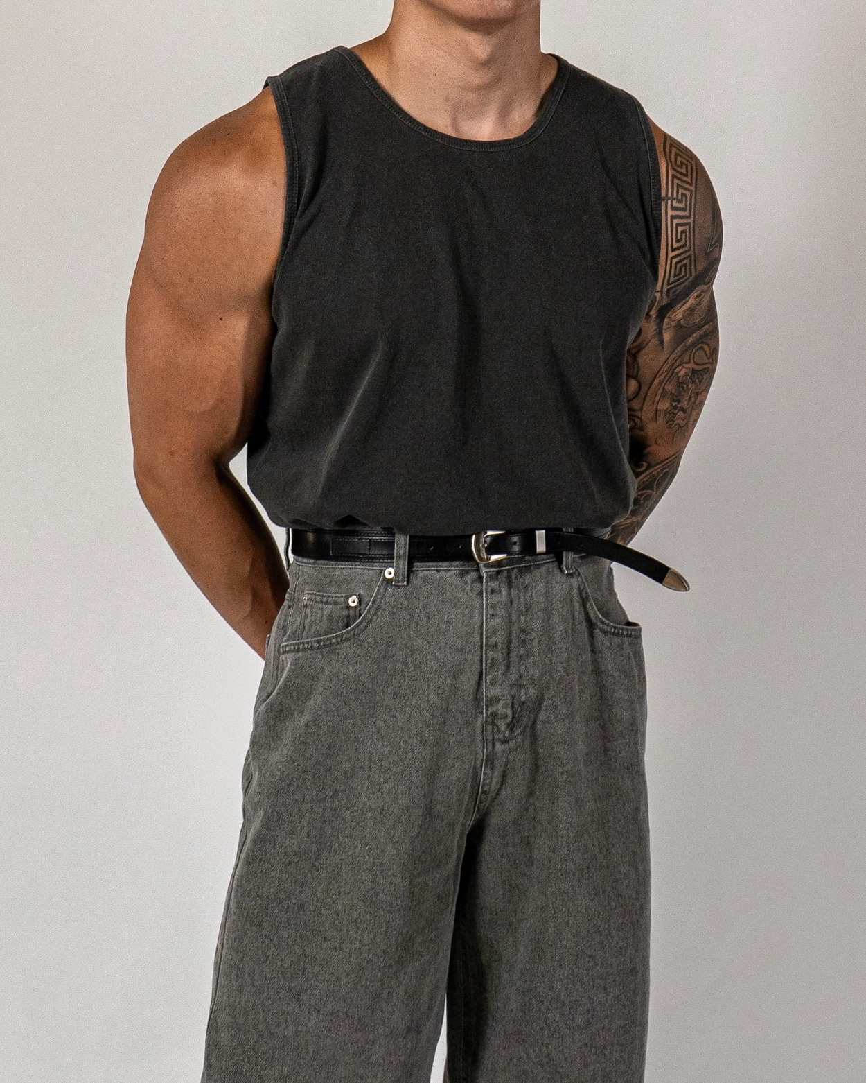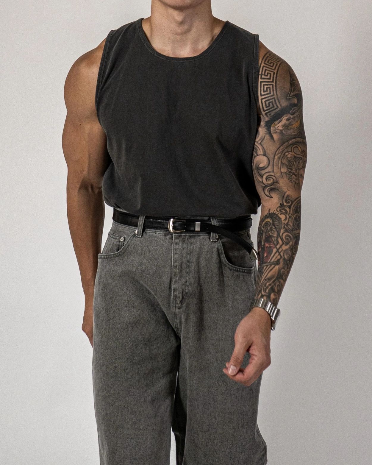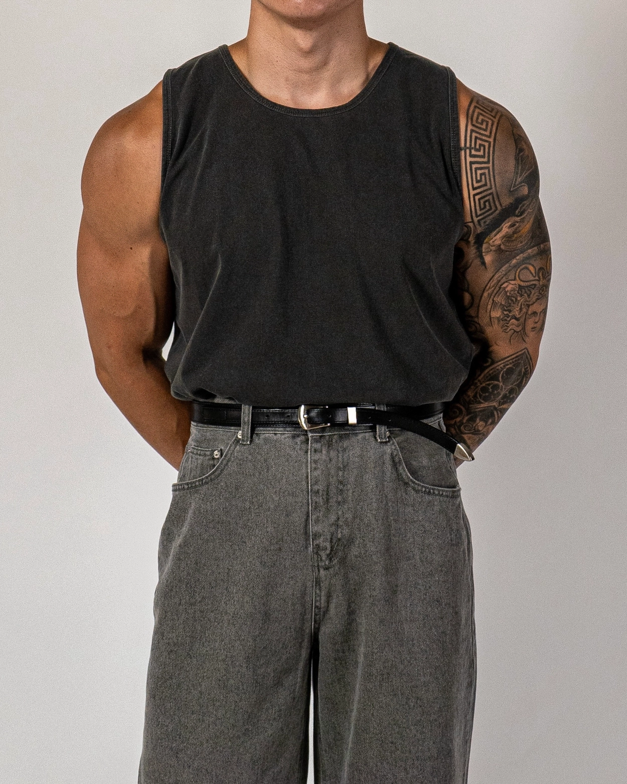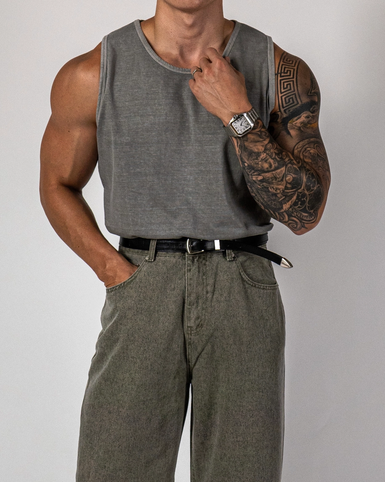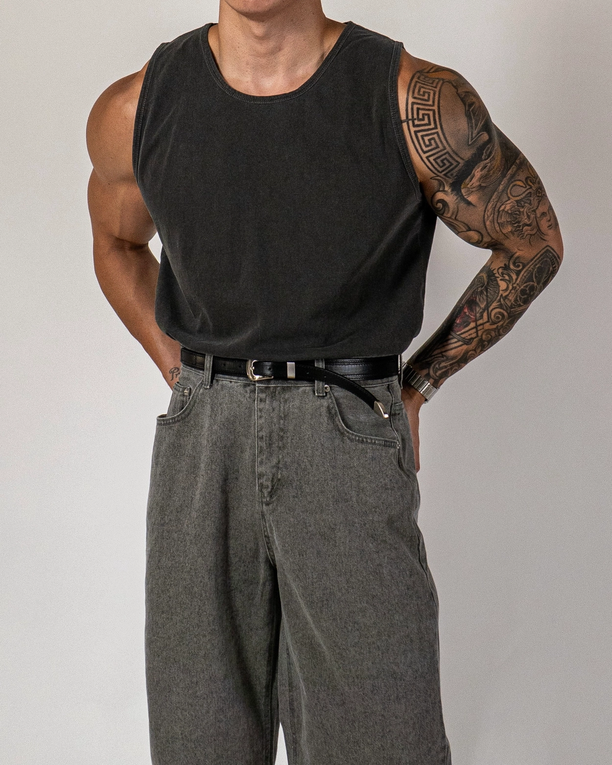 具有自然的水洗質感和不暴露負擔的袖窿線