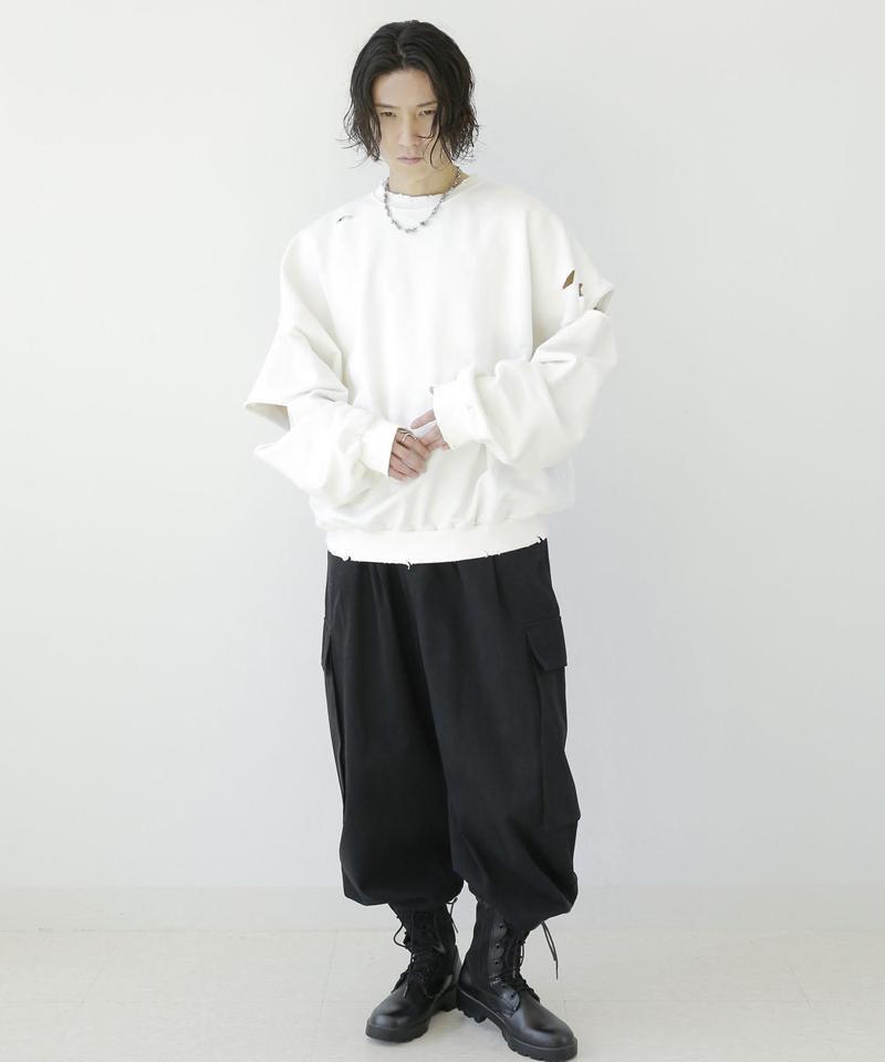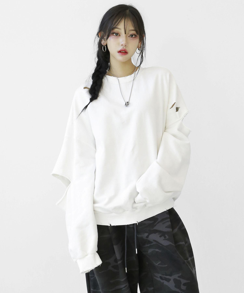 它具有復古風格的舊效果,袖子上有大膽的穿孔設計。