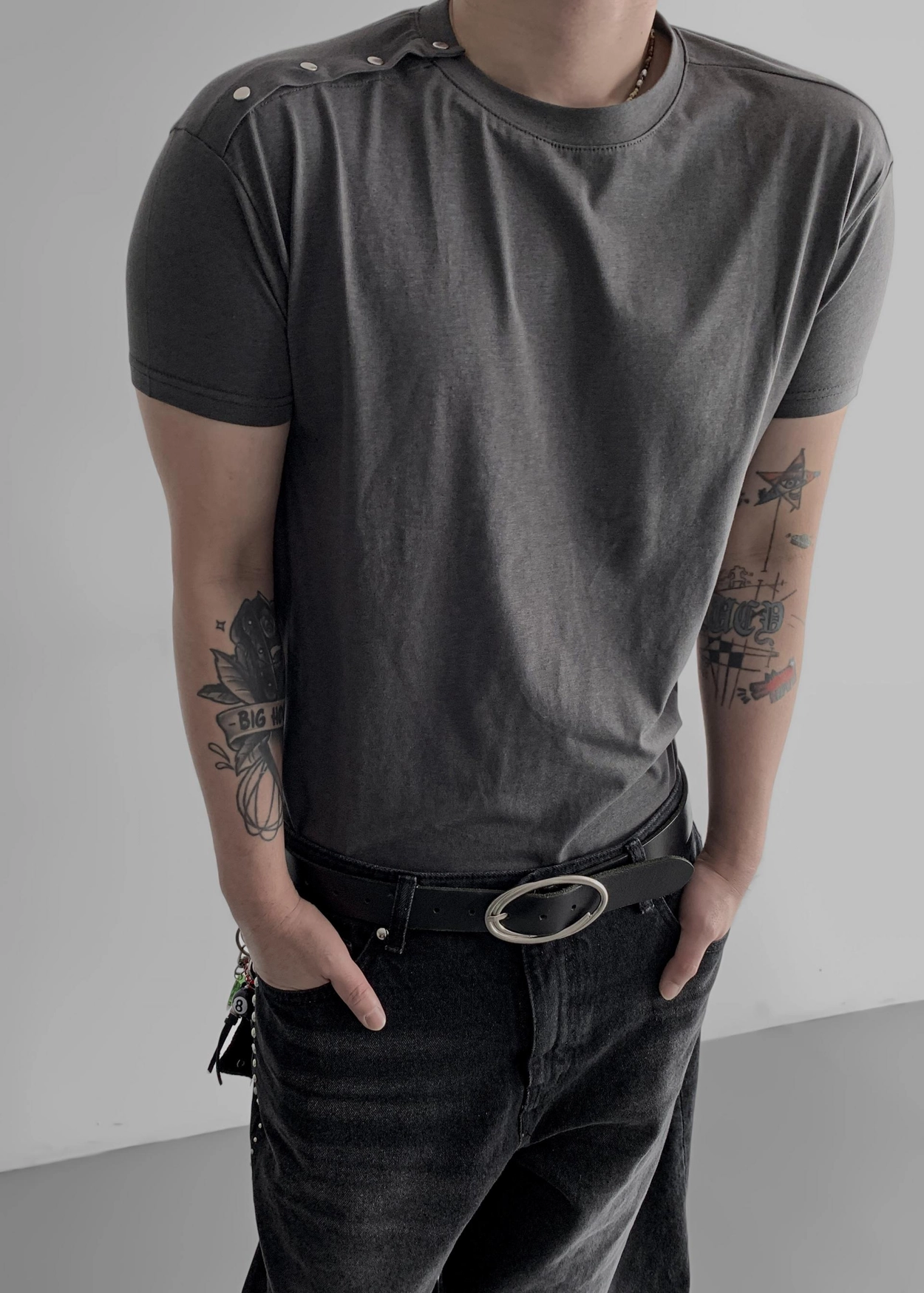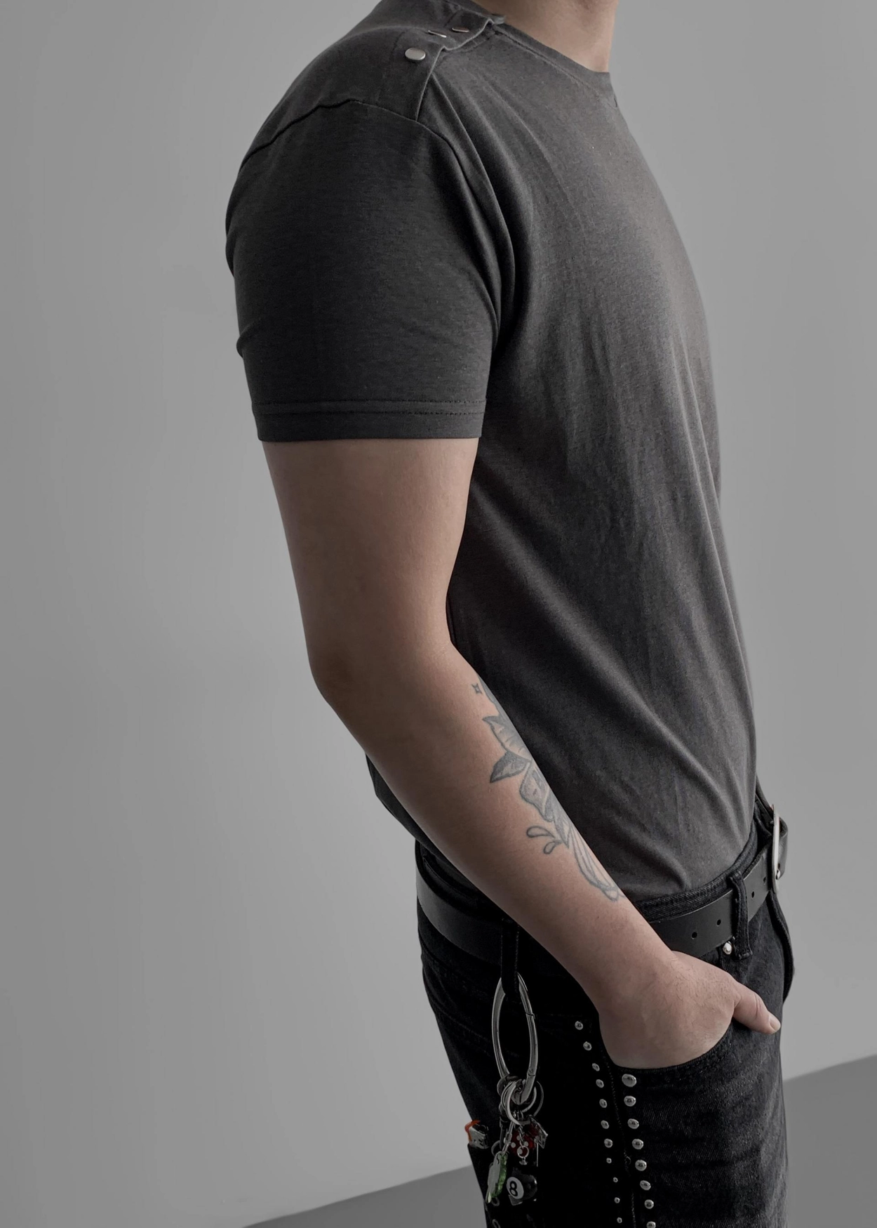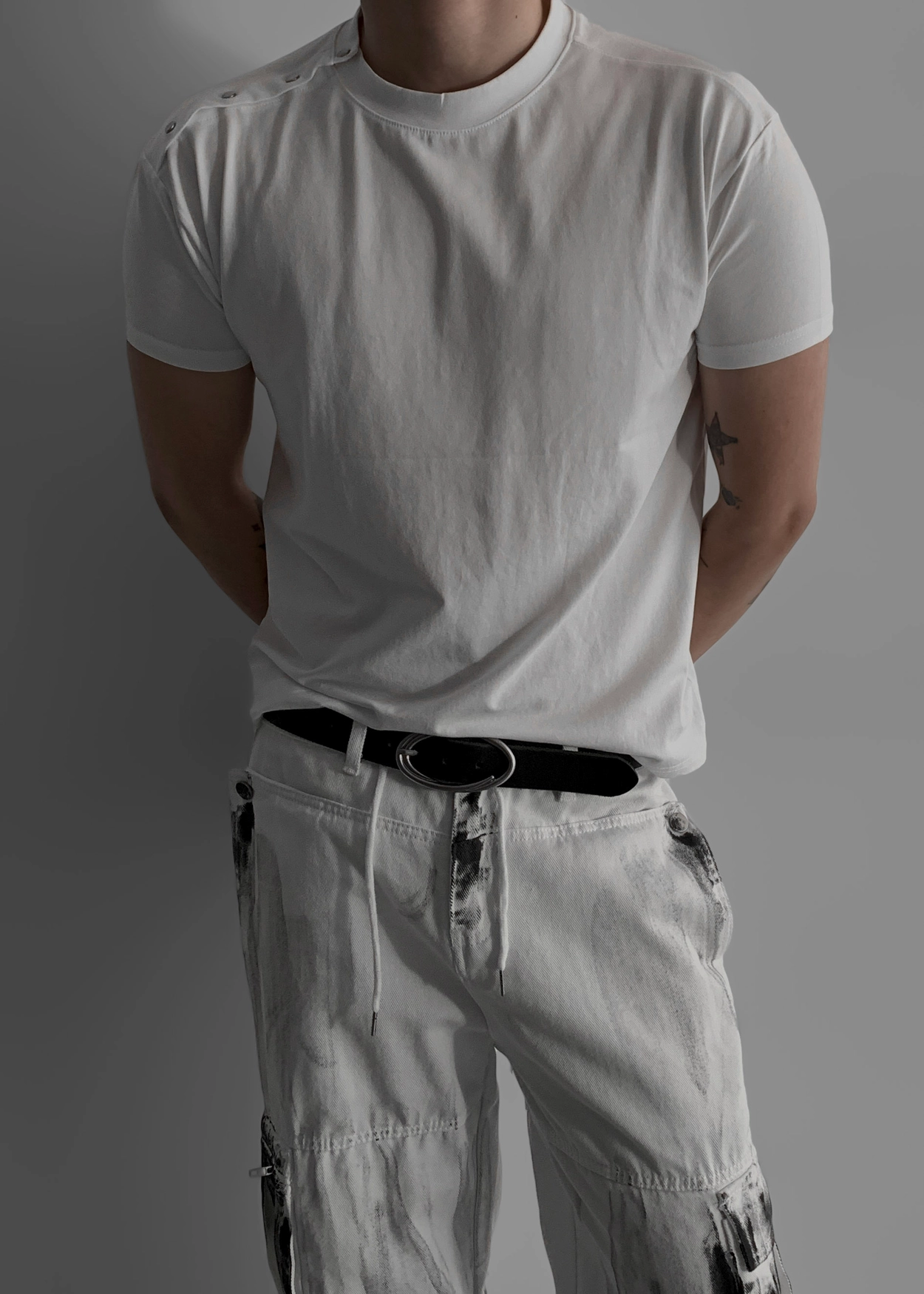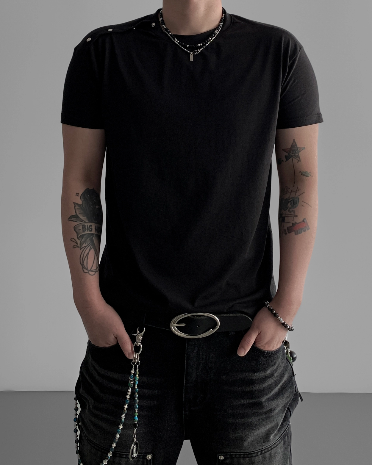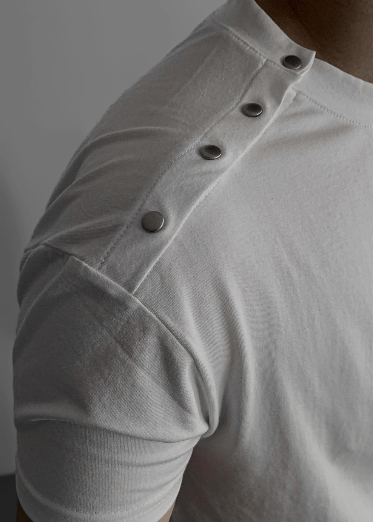 - 採用肌肉剪裁而成的按扣短袖T卹