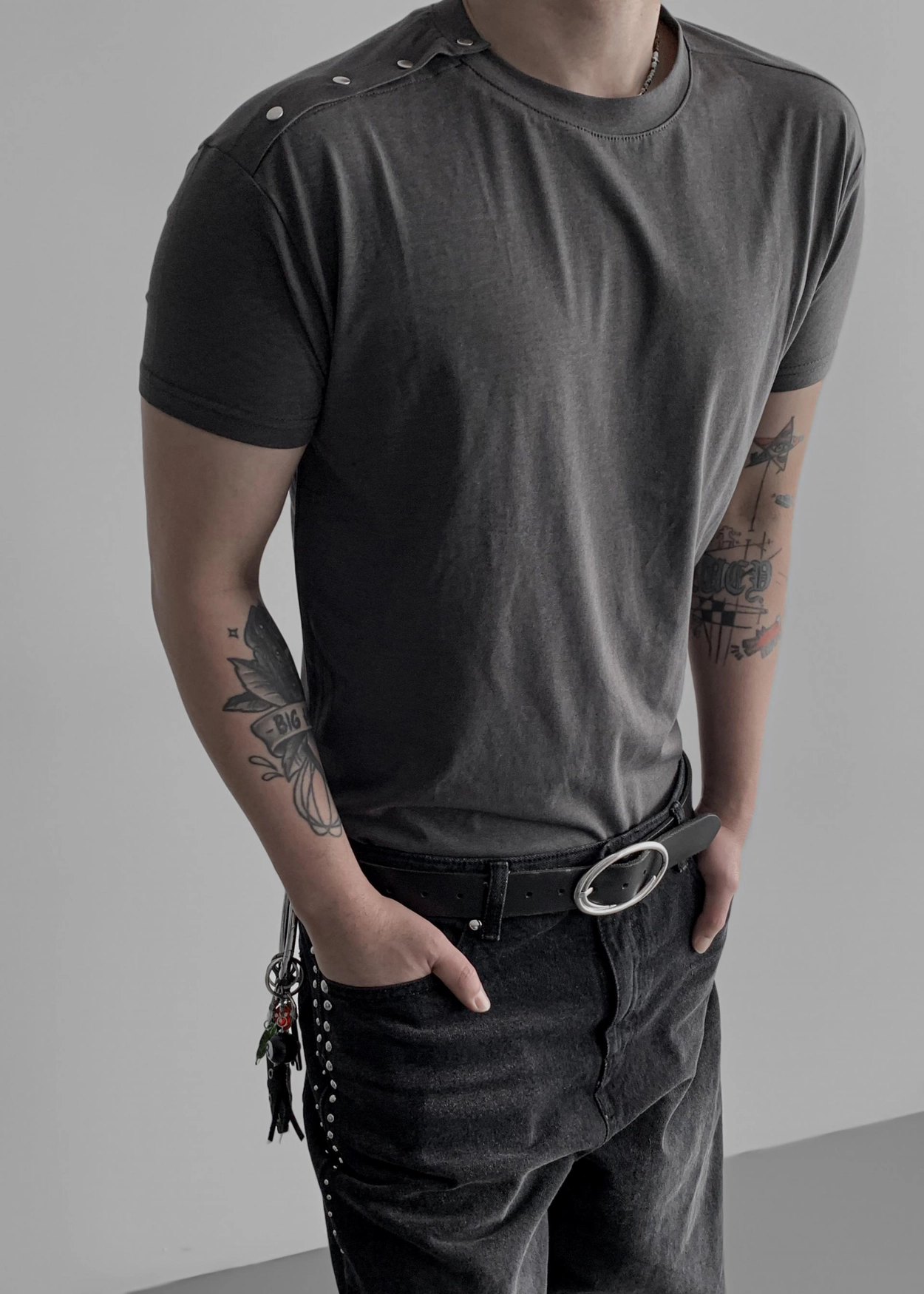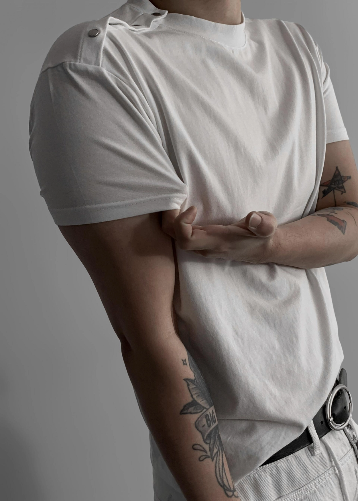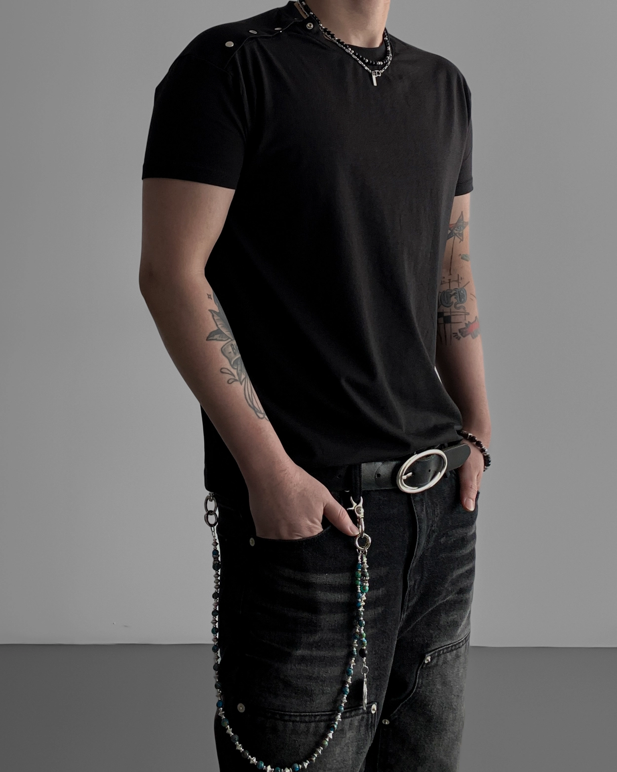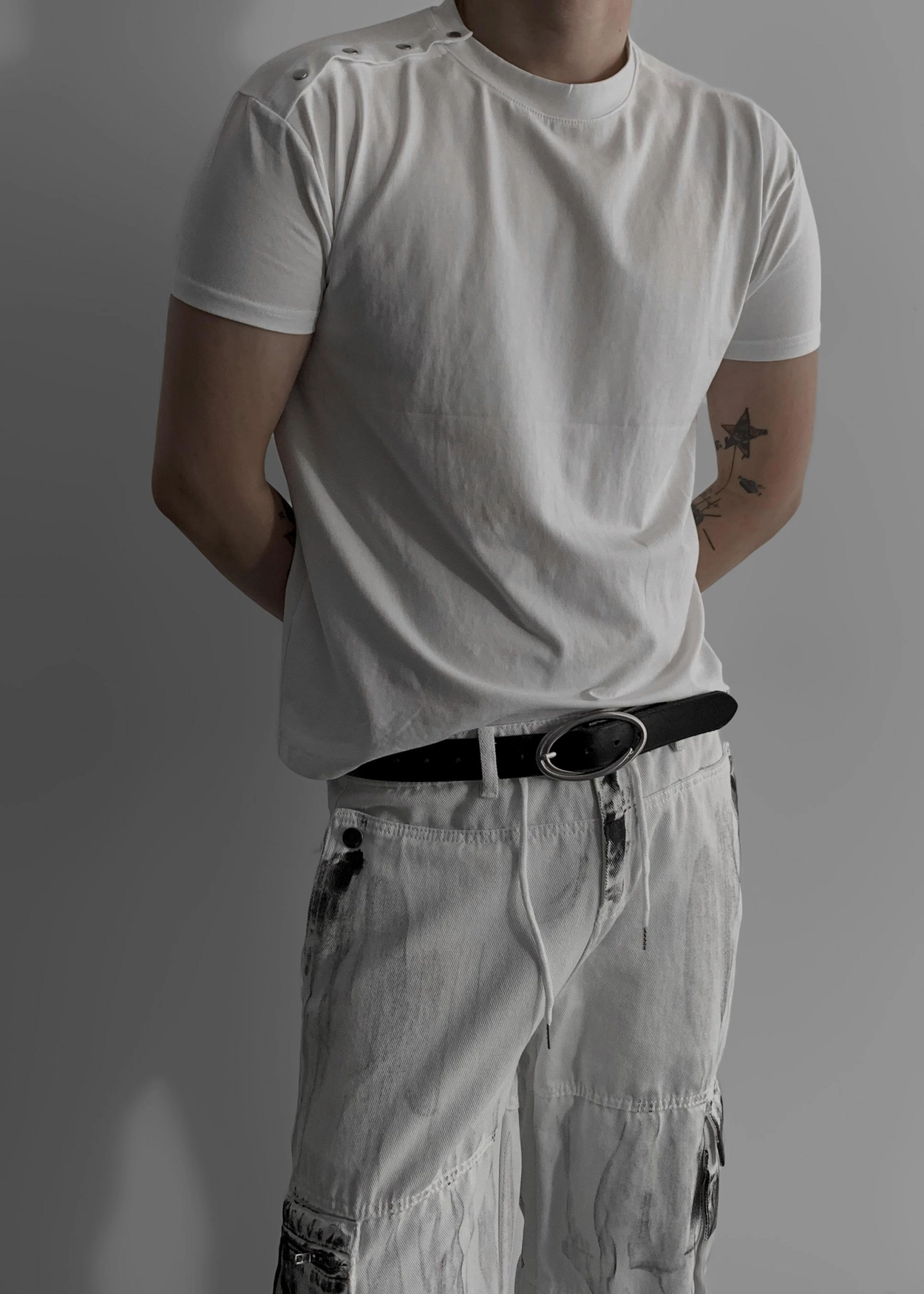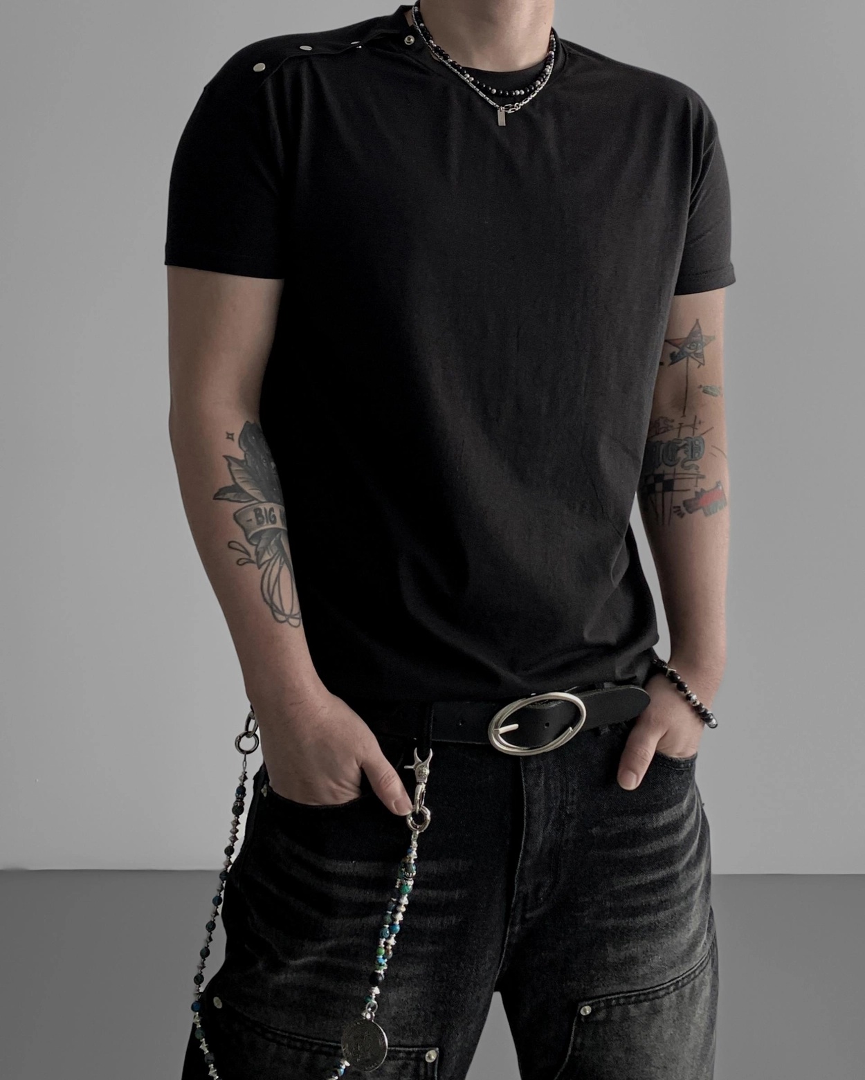 - 採用肌肉剪裁而成的按扣短袖T卹
