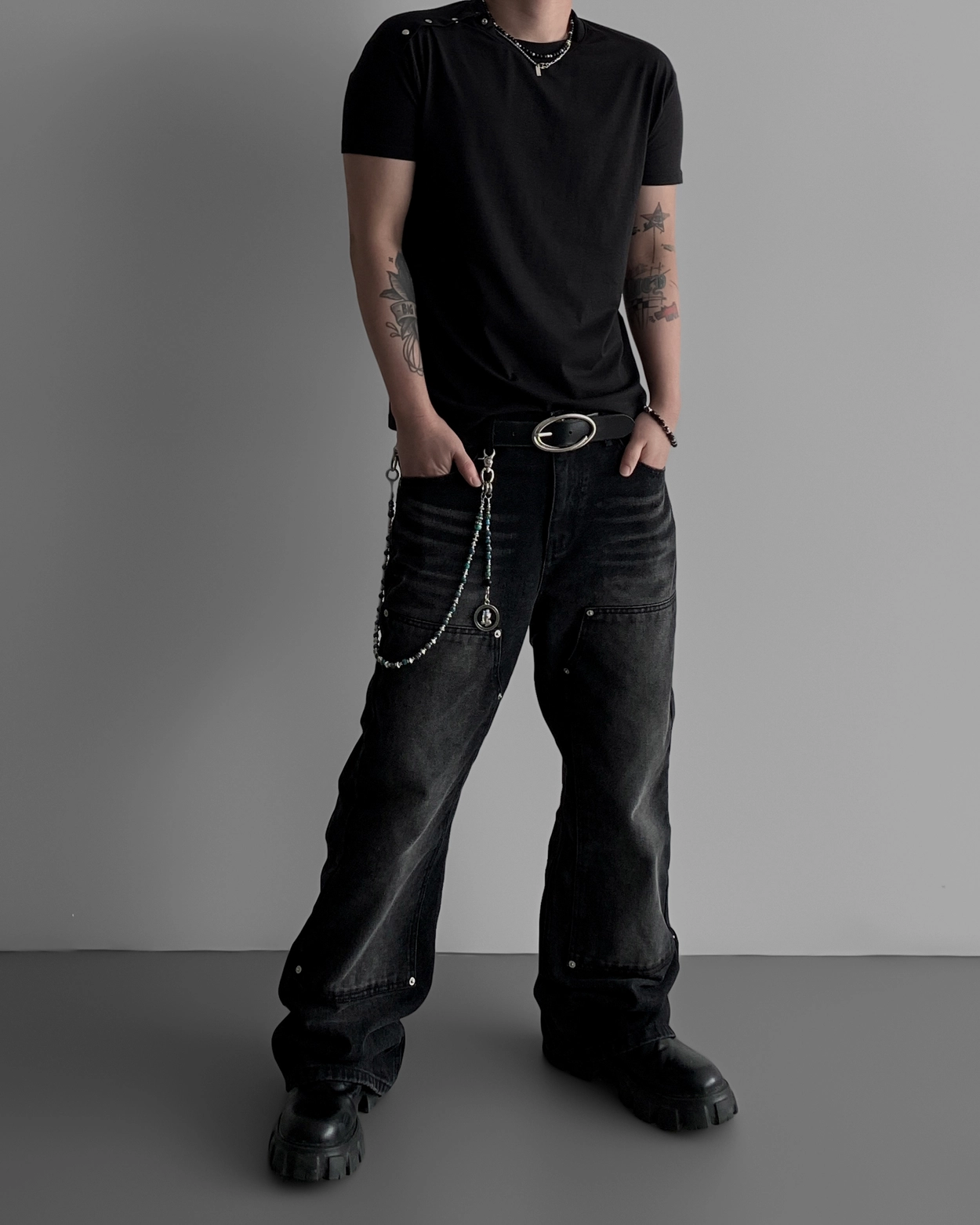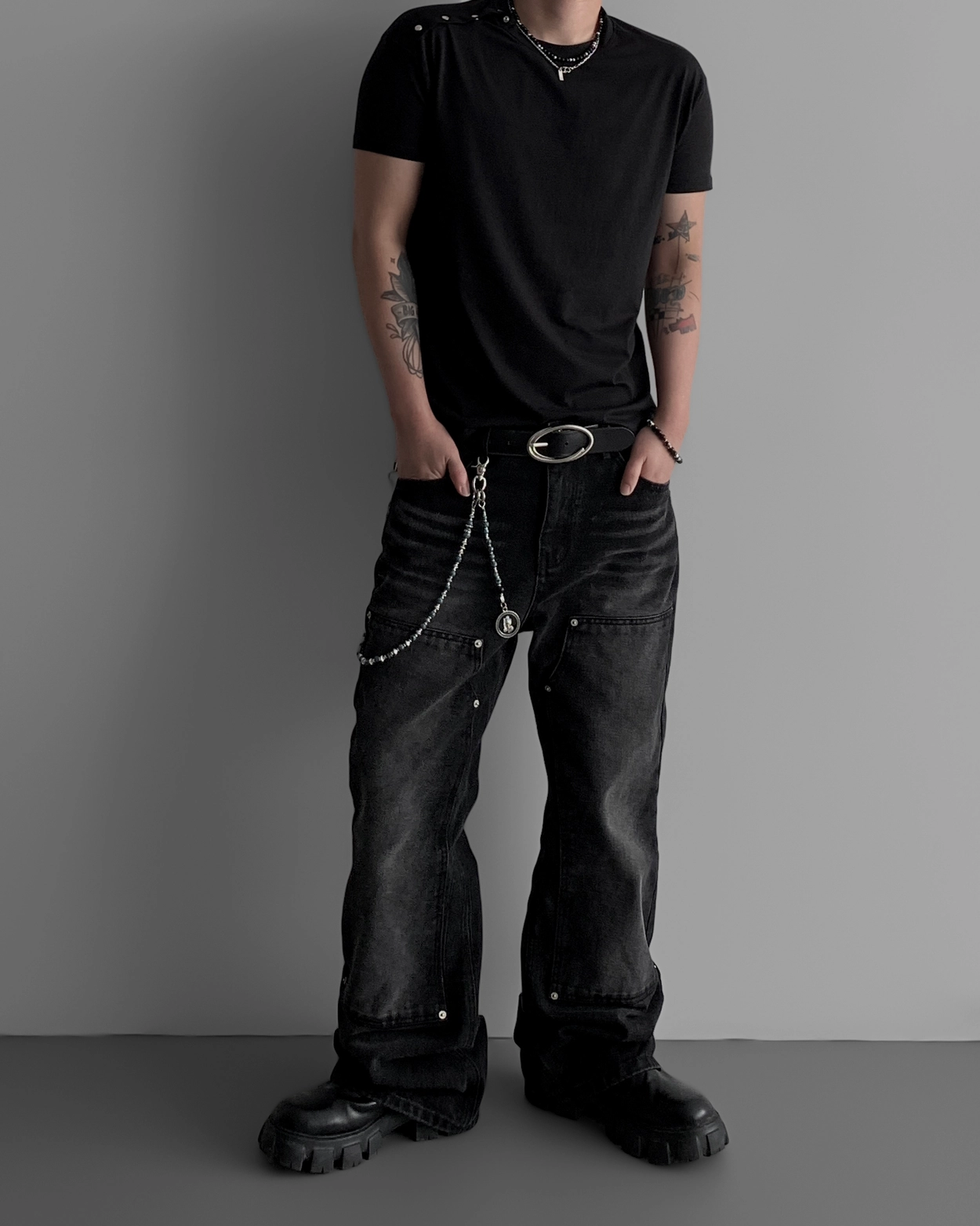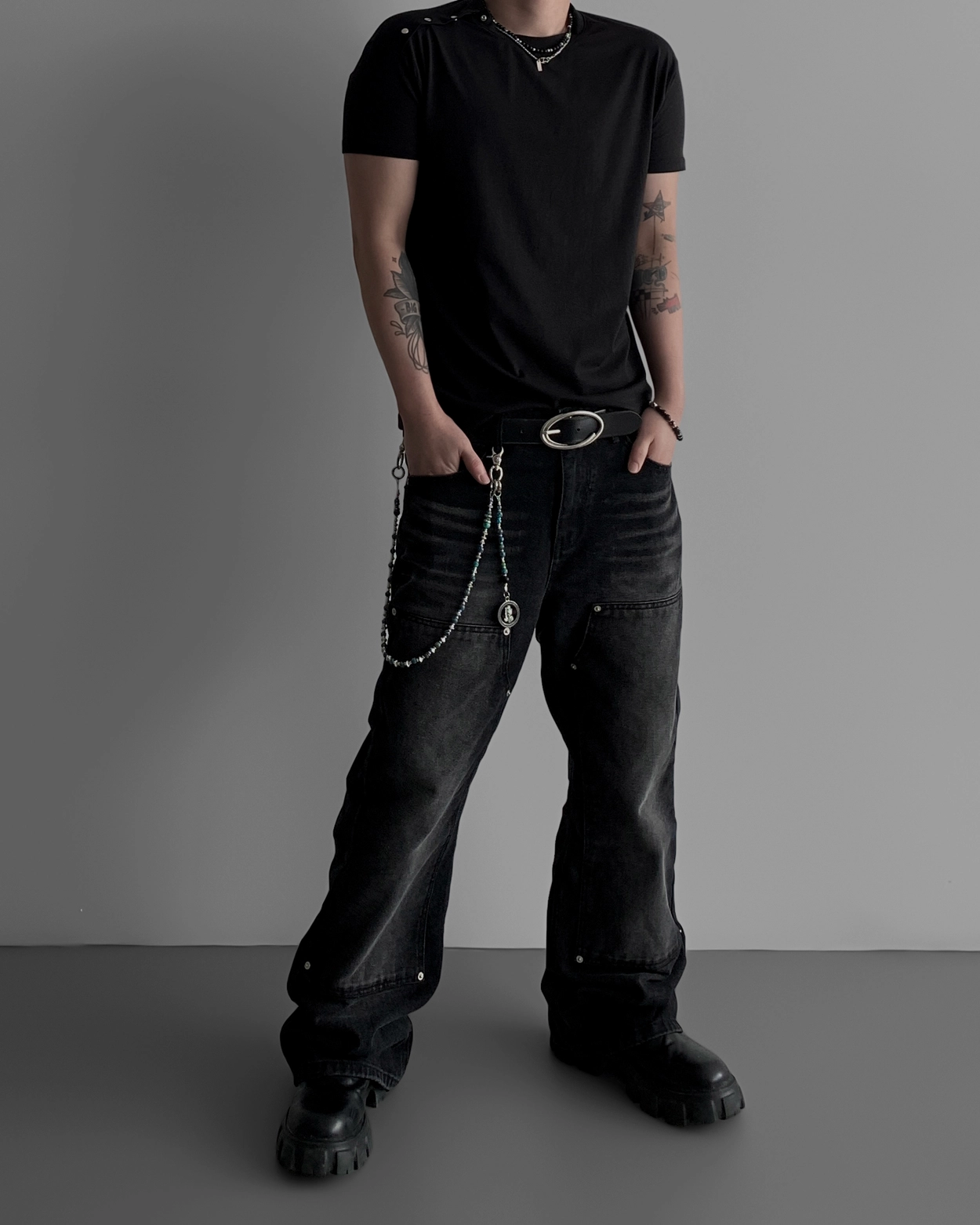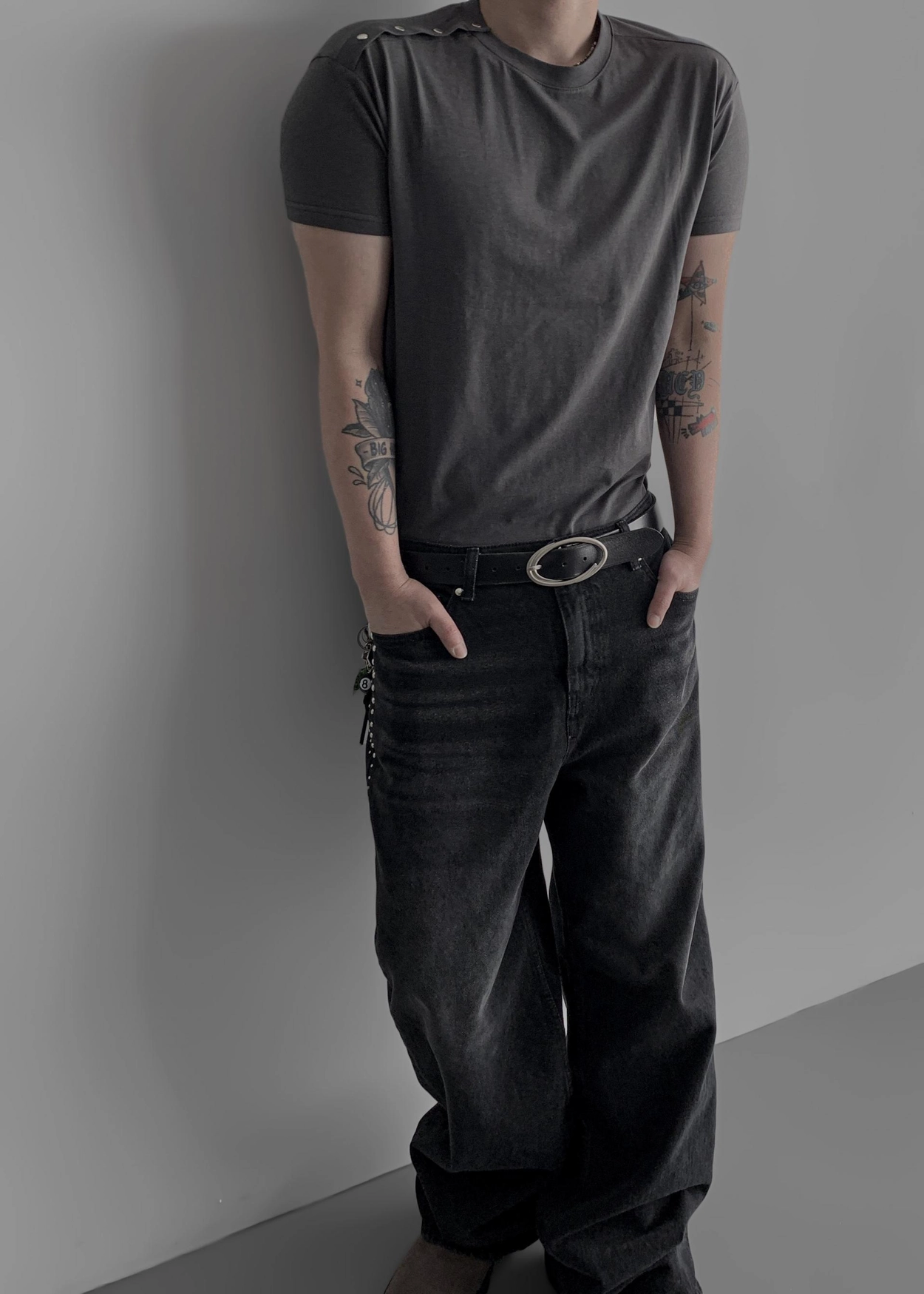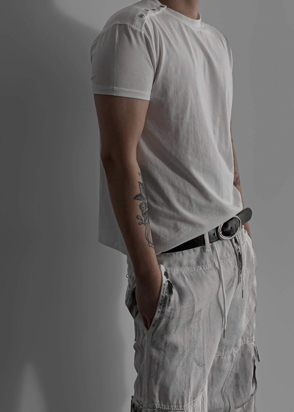 - 採用肌肉剪裁而成的按扣短袖T卹