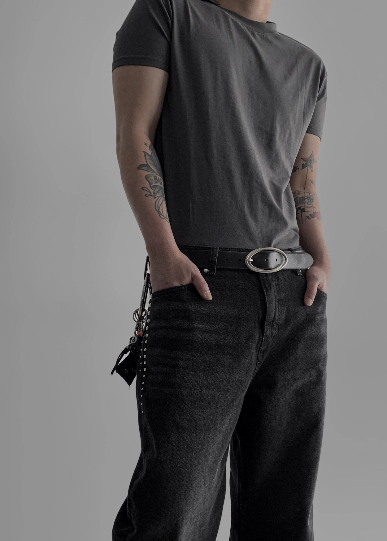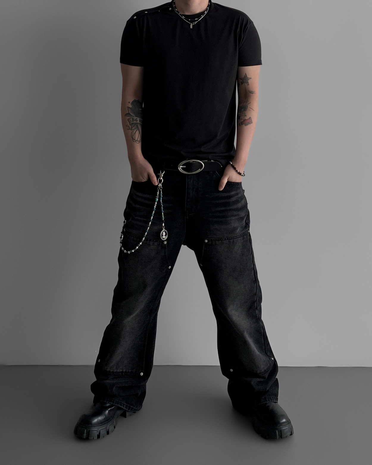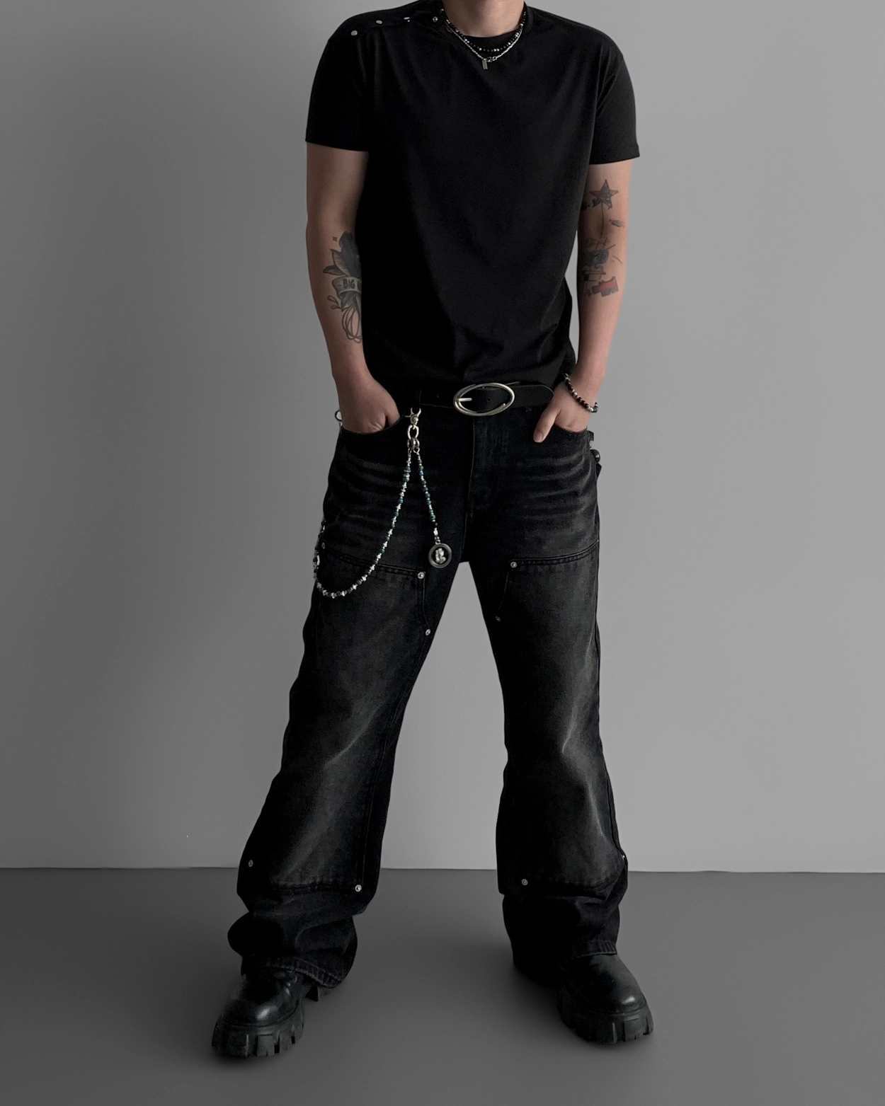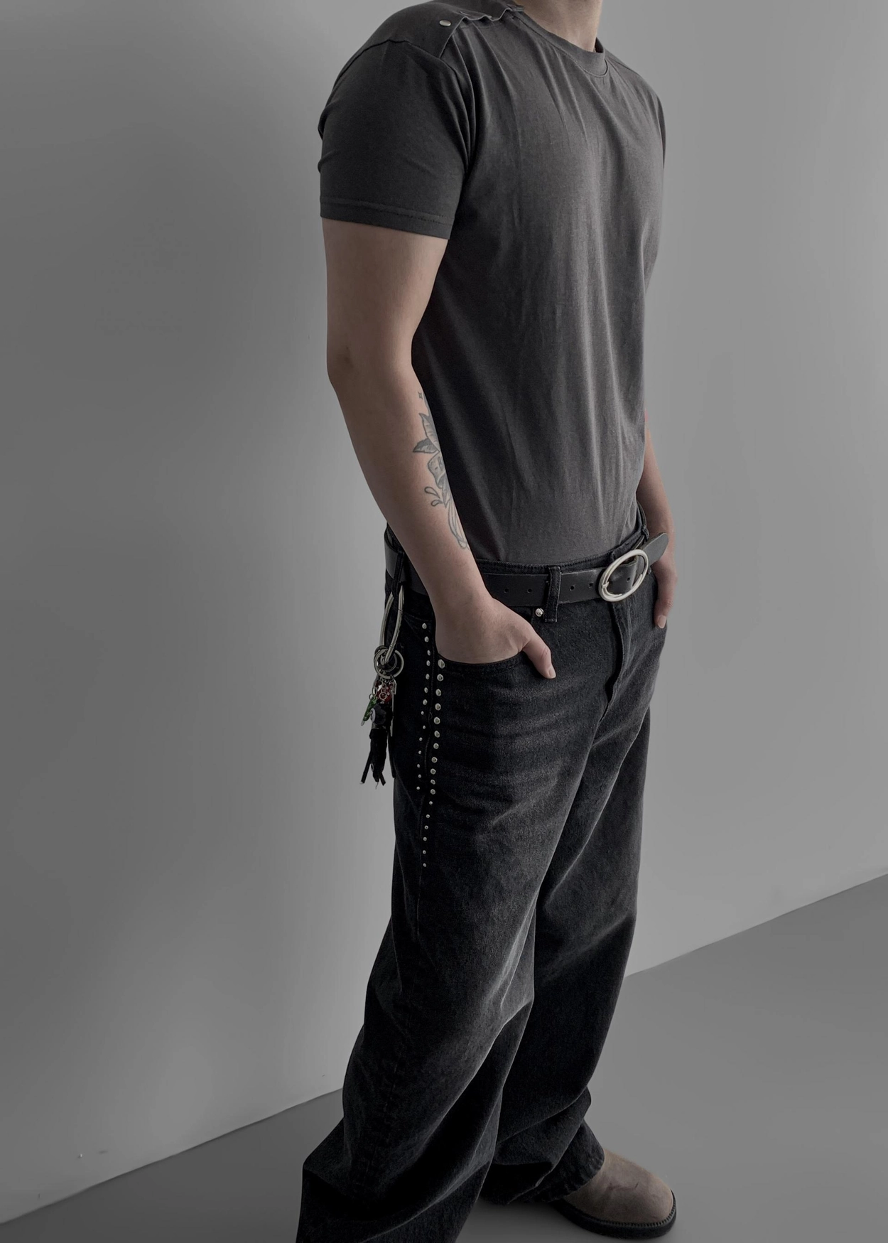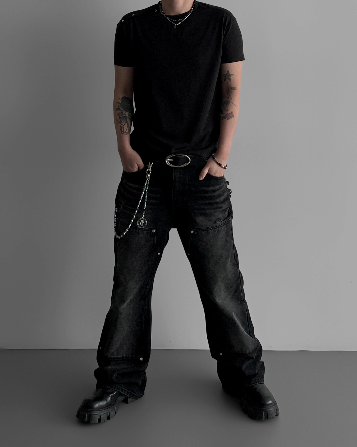 - 採用肌肉剪裁而成的按扣短袖T卹